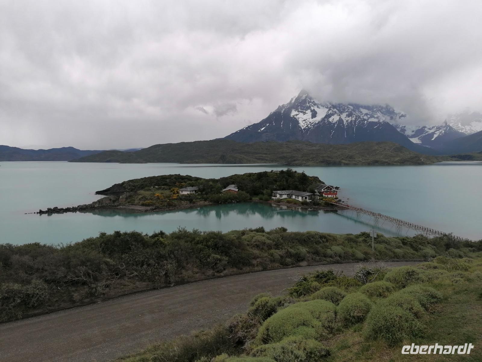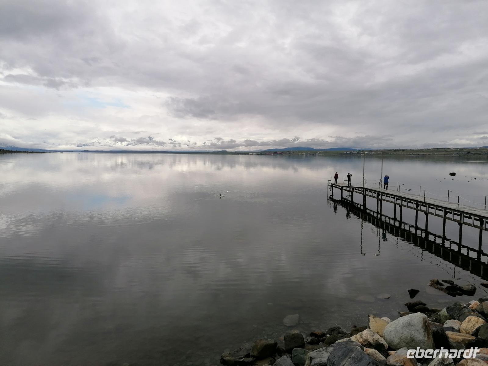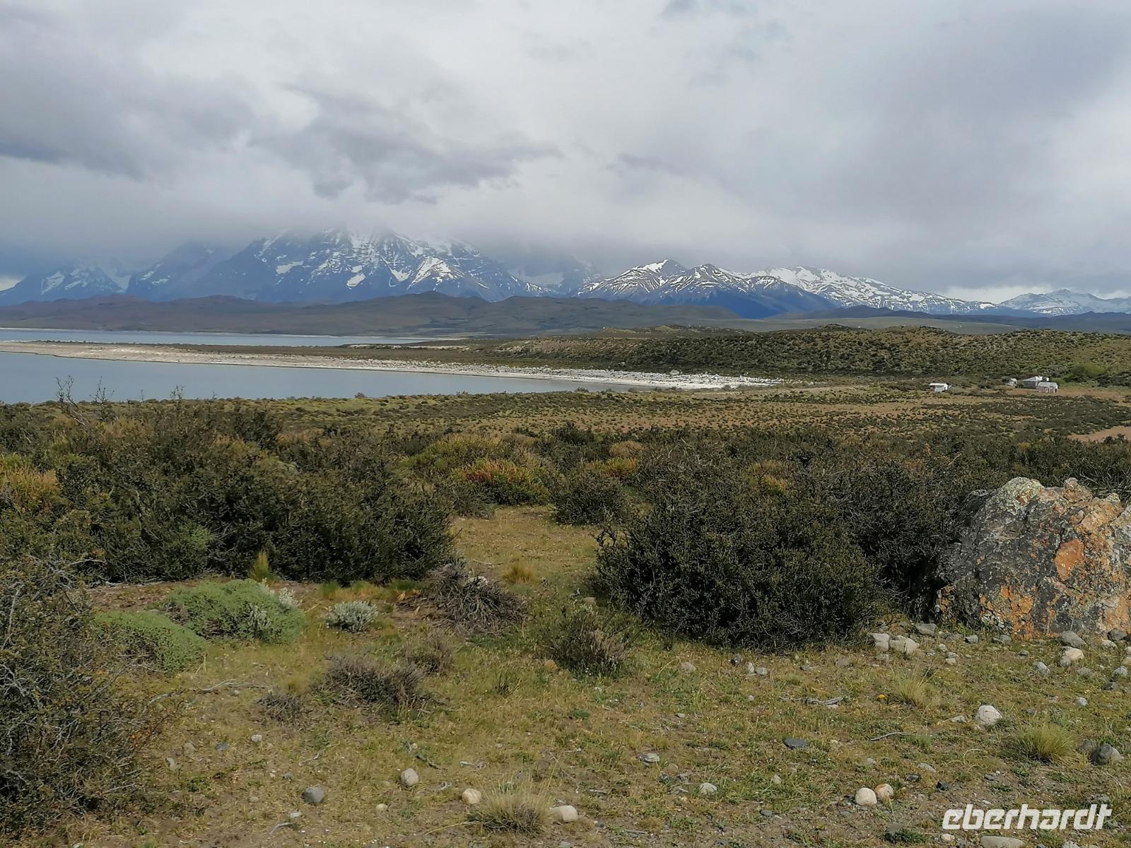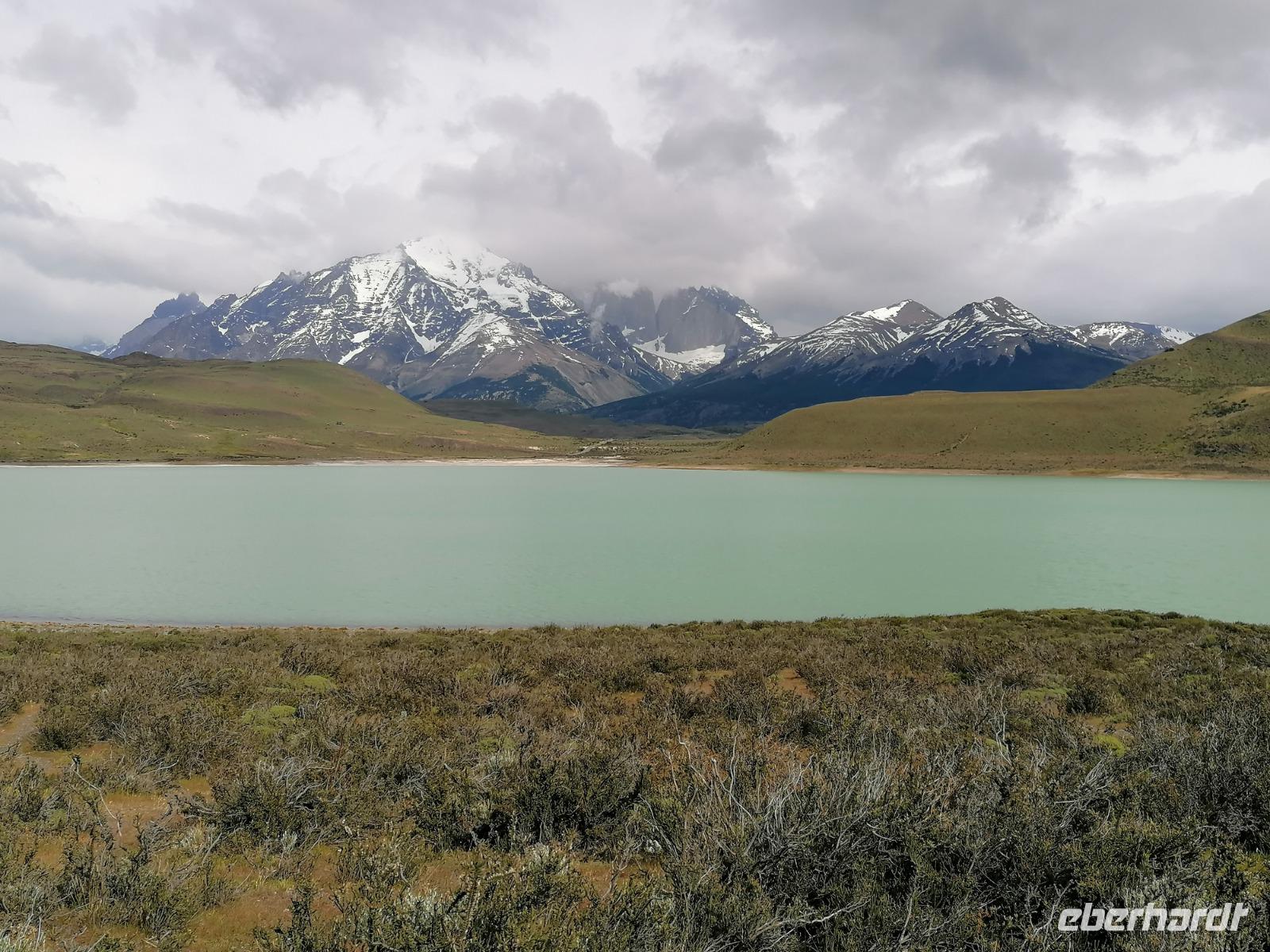 Schon früh am Morgen hieß es Abschied von der chilenischen Hauptstadt Santiago de Chile nehmen. Wir waren erleichtert, dass wir die Tage in Santiago de Chile so positiv gestalten konnten. Aber jetzt freuen wir uns auf Patagonien. Mit dem ersten Flieger flogen wir von der Hauptstadt nach Punta Arenas. Nachdem alle Koffer eingetroffen waren, wie uns mit Wasser versorgt hatten, gingen wir zum Bus. Leider hatten wir nicht ganz so viel Glück mit dem Wetter, aber wir waren guter Dinge und freuten uns auf Patagonien. In Puntarenas war es am Vortag zu Ausschreitungen gekommen, sodass wir nicht ins Zentrum fuhren. Nach einer kleinen Fahrtstrecke machten wir unseren ersten Stopp. Bei einem kleinen Café holen wir unser Frühstück nach und stärken uns mit einem frischen Sandwich und einen Kaffee. Weiter führt uns unser Route nach Puerto Natales. Hier machten wir einen kleinen Spaziergang entlang der Promenade und knipsen viele Bilder von dem wunderschönen Bergpanorama in Hintergrund und der Strandpromenade. Da wir mittlerweile die Mittagszeit erreicht hatten, beschlossen wir in einem Restaurant zu speisen. Wir bestellten frischen Fisch, Meeresspinne, Muscheln und andere Leckereien. Nach dem Mittagessen hielten wir noch bei einem kleinen Supermarkt und fuhren weiter in den Nationalpark Torres del Paine. Die letzte Teilstrecke unsere Route führte über eine Schotterstraße bis hin in unser Hotel, das mitten in den Nationalpark Torres del Paine gelegen war. Auch hier war das Wetter uns nicht hold, aber wir wärmten uns im hoteleigenen Restaurant und genossen den Ausblick auf die Bergkette.