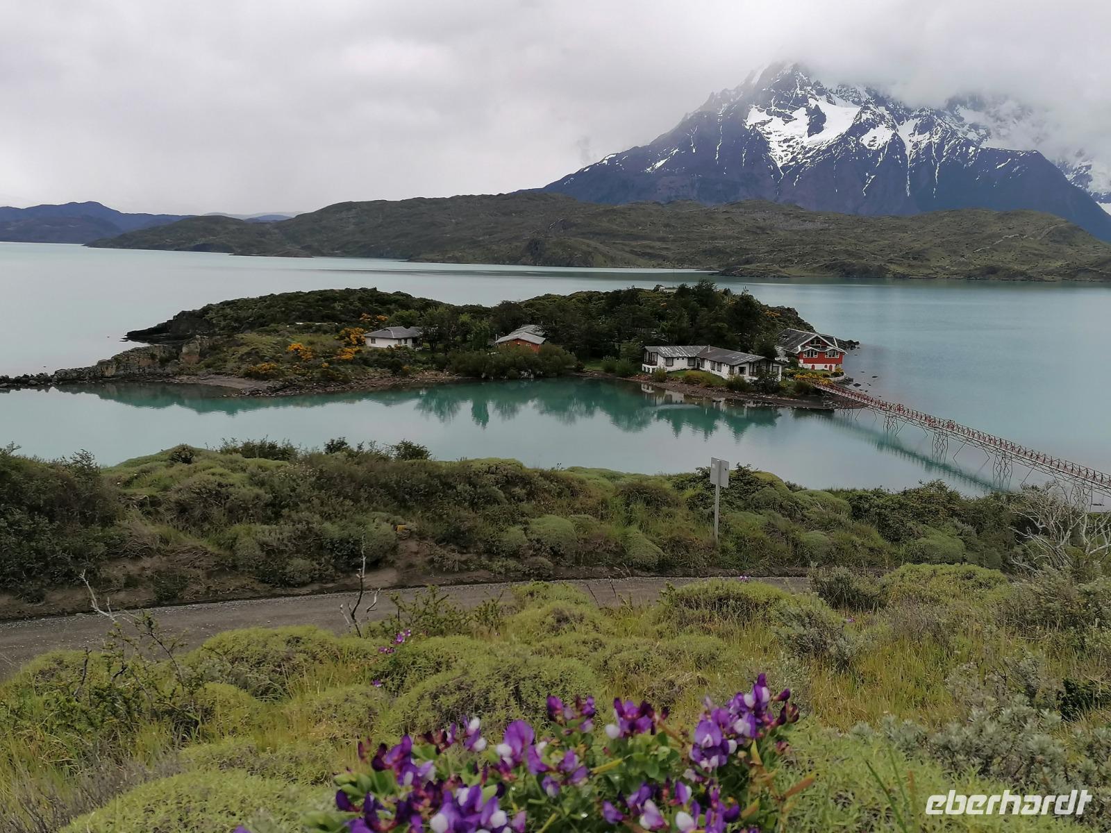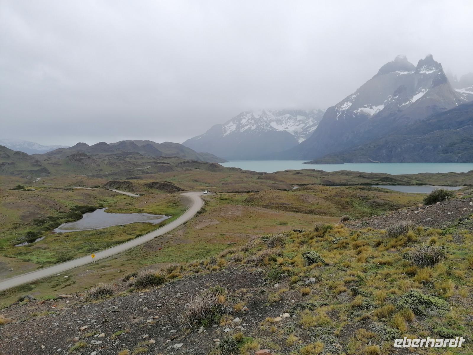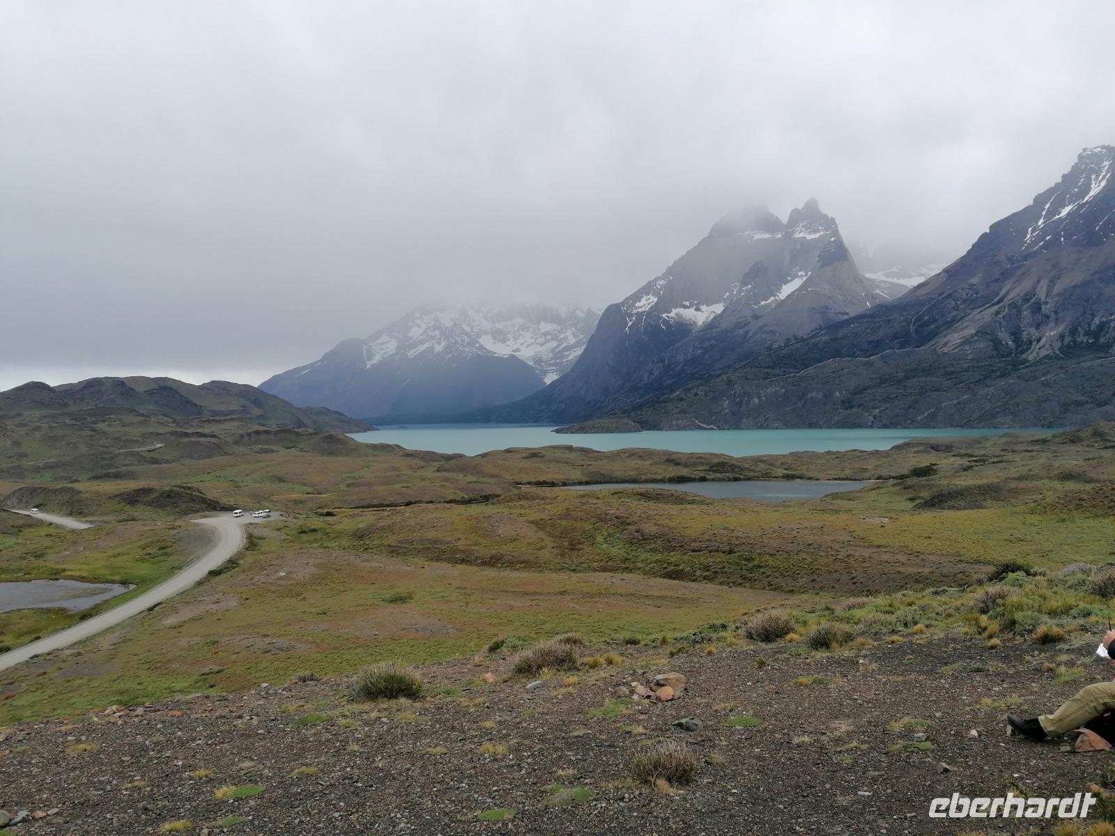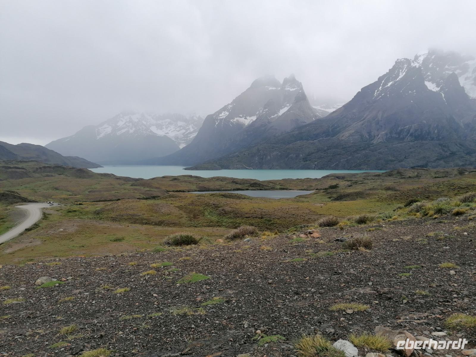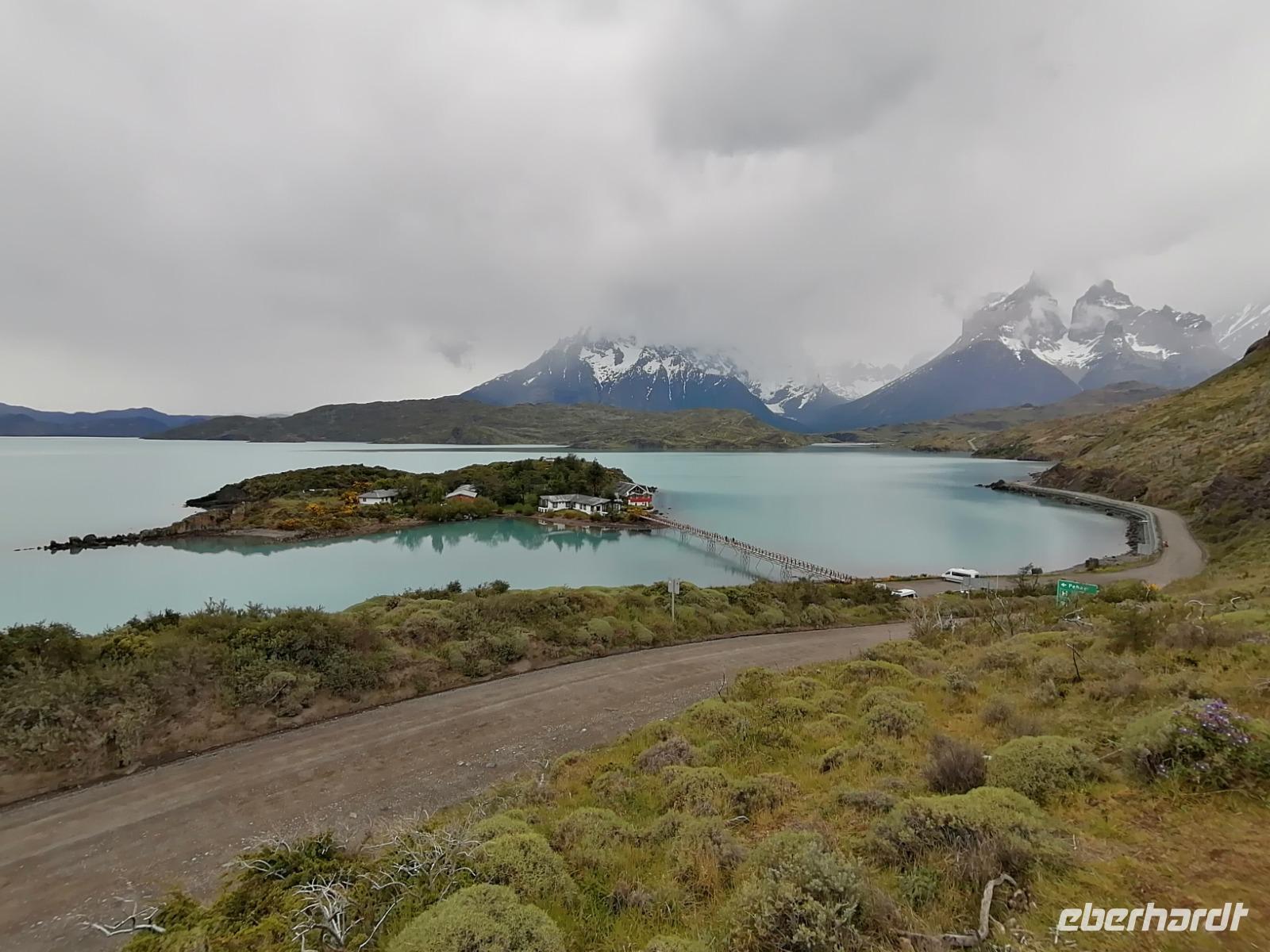 Schon früh am Morgen hieß es Abschied von der chilenischen Hauptstadt Santiago de Chile nehmen. Wir waren erleichtert, dass wir die Tage in Santiago de Chile so positiv gestalten konnten. Aber jetzt freuen wir uns auf Patagonien. Mit dem ersten Flieger flogen wir von der Hauptstadt nach Punta Arenas. Nachdem alle Koffer eingetroffen waren, wie uns mit Wasser versorgt hatten, gingen wir zum Bus. Leider hatten wir nicht ganz so viel Glück mit dem Wetter, aber wir waren guter Dinge und freuten uns auf Patagonien. In Puntarenas war es am Vortag zu Ausschreitungen gekommen, sodass wir nicht ins Zentrum fuhren. Nach einer kleinen Fahrtstrecke machten wir unseren ersten Stopp. Bei einem kleinen Café holen wir unser Frühstück nach und stärken uns mit einem frischen Sandwich und einen Kaffee. Weiter führt uns unser Route nach Puerto Natales. Hier machten wir einen kleinen Spaziergang entlang der Promenade und knipsen viele Bilder von dem wunderschönen Bergpanorama in Hintergrund und der Strandpromenade. Da wir mittlerweile die Mittagszeit erreicht hatten, beschlossen wir in einem Restaurant zu speisen. Wir bestellten frischen Fisch, Meeresspinne, Muscheln und andere Leckereien. Nach dem Mittagessen hielten wir noch bei einem kleinen Supermarkt und fuhren weiter in den Nationalpark Torres del Paine. Die letzte Teilstrecke unsere Route führte über eine Schotterstraße bis hin in unser Hotel, das mitten in den Nationalpark Torres del Paine gelegen war. Auch hier war das Wetter uns nicht hold, aber wir wärmten uns im hoteleigenen Restaurant und genossen den Ausblick auf die Bergkette.