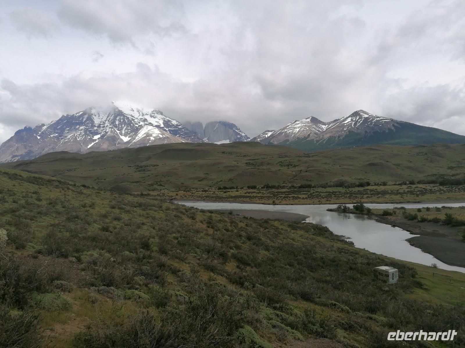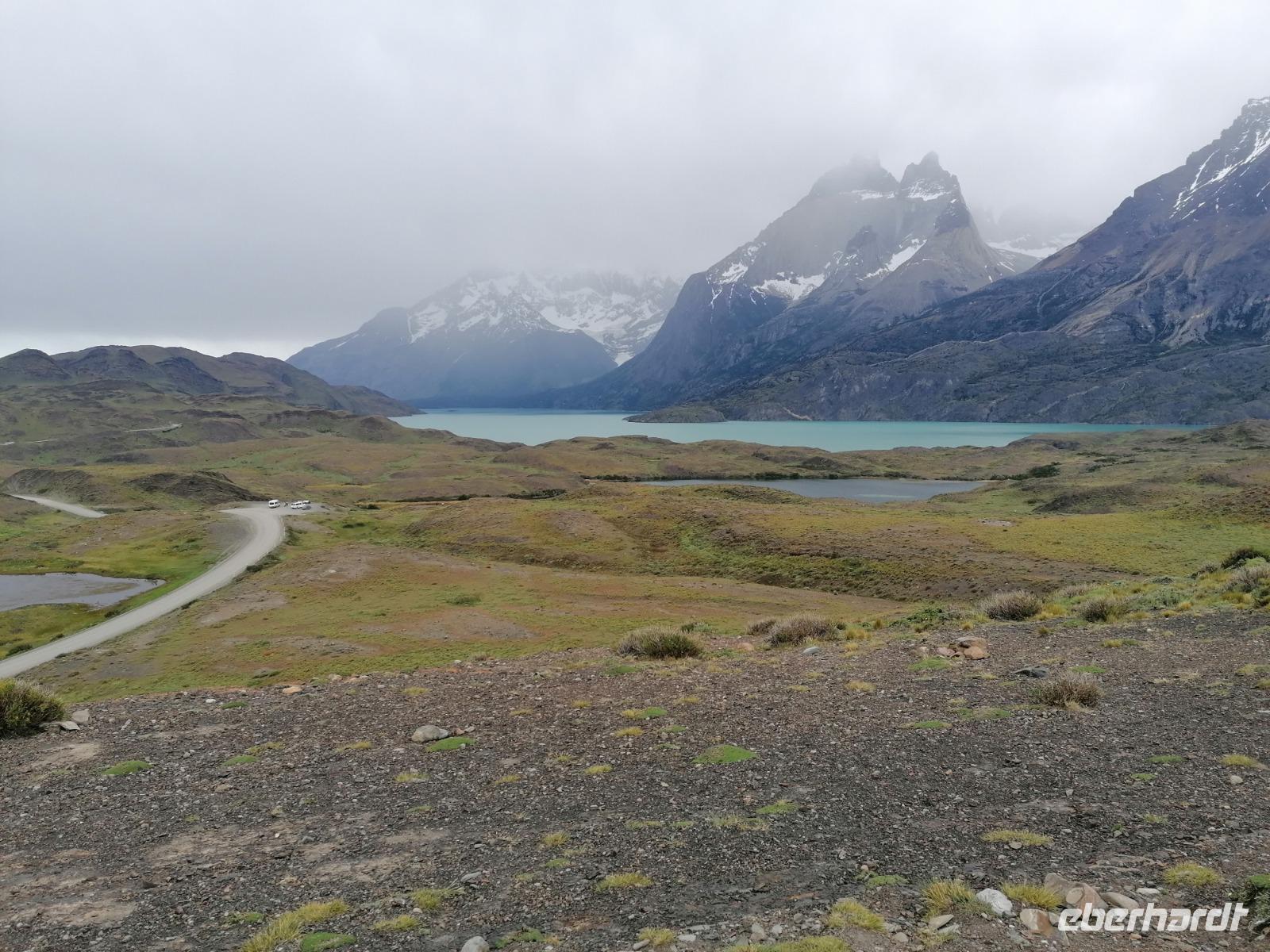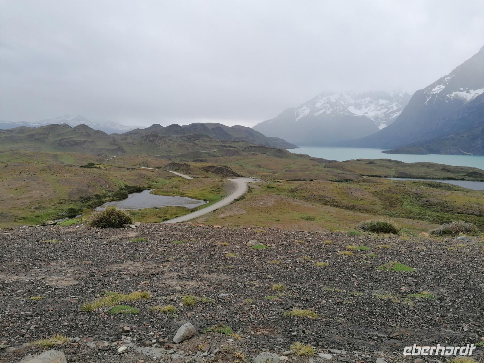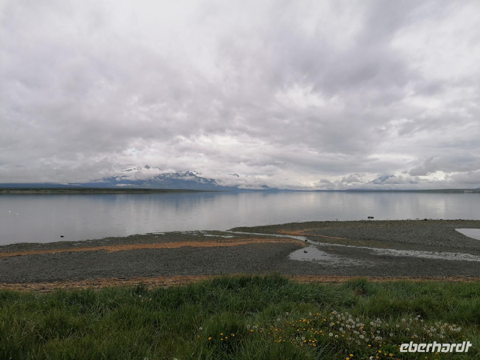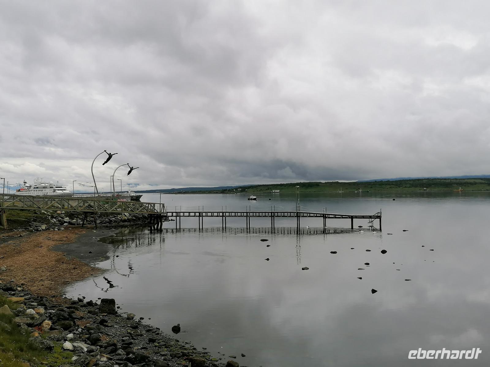 Schon früh am Morgen hieß es Abschied von der chilenischen Hauptstadt Santiago de Chile nehmen. Wir waren erleichtert, dass wir die Tage in Santiago de Chile so positiv gestalten konnten. Aber jetzt freuen wir uns auf Patagonien. Mit dem ersten Flieger flogen wir von der Hauptstadt nach Punta Arenas. Nachdem alle Koffer eingetroffen waren, wie uns mit Wasser versorgt hatten, gingen wir zum Bus. Leider hatten wir nicht ganz so viel Glück mit dem Wetter, aber wir waren guter Dinge und freuten uns auf Patagonien. In Puntarenas war es am Vortag zu Ausschreitungen gekommen, sodass wir nicht ins Zentrum fuhren. Nach einer kleinen Fahrtstrecke machten wir unseren ersten Stopp. Bei einem kleinen Café holen wir unser Frühstück nach und stärken uns mit einem frischen Sandwich und einen Kaffee. Weiter führt uns unser Route nach Puerto Natales. Hier machten wir einen kleinen Spaziergang entlang der Promenade und knipsen viele Bilder von dem wunderschönen Bergpanorama in Hintergrund und der Strandpromenade. Da wir mittlerweile die Mittagszeit erreicht hatten, beschlossen wir in einem Restaurant zu speisen. Wir bestellten frischen Fisch, Meeresspinne, Muscheln und andere Leckereien. Nach dem Mittagessen hielten wir noch bei einem kleinen Supermarkt und fuhren weiter in den Nationalpark Torres del Paine. Die letzte Teilstrecke unsere Route führte über eine Schotterstraße bis hin in unser Hotel, das mitten in den Nationalpark Torres del Paine gelegen war. Auch hier war das Wetter uns nicht hold, aber wir wärmten uns im hoteleigenen Restaurant und genossen den Ausblick auf die Bergkette.