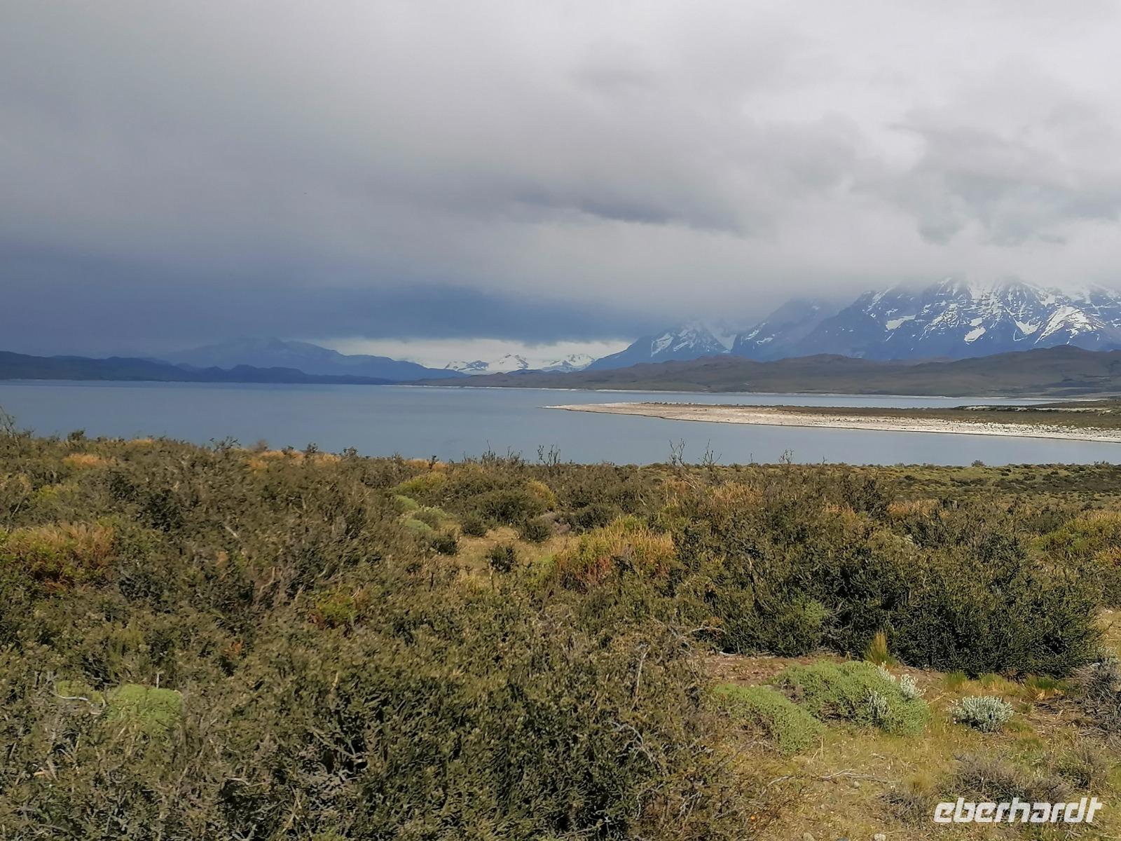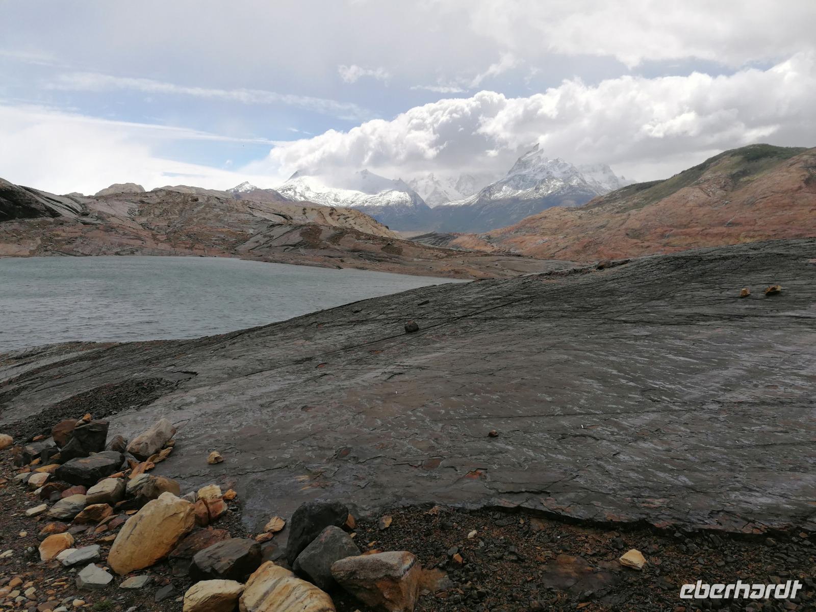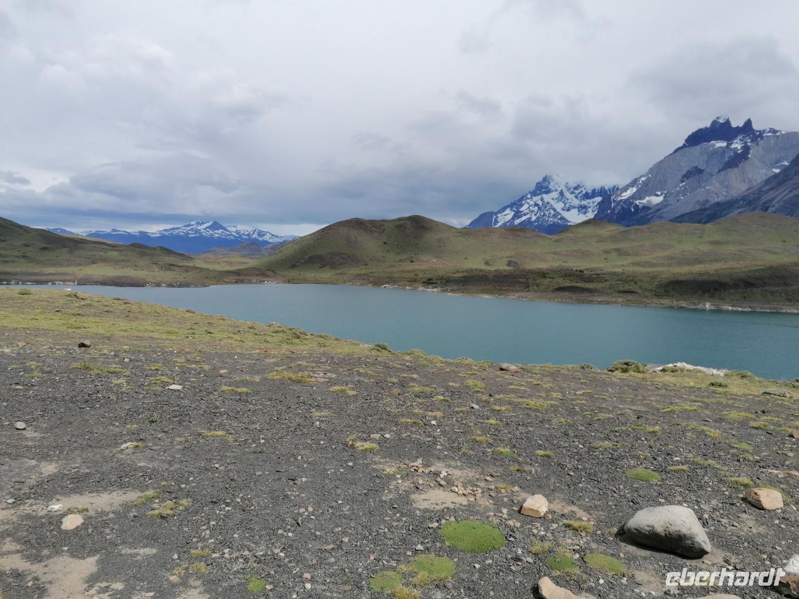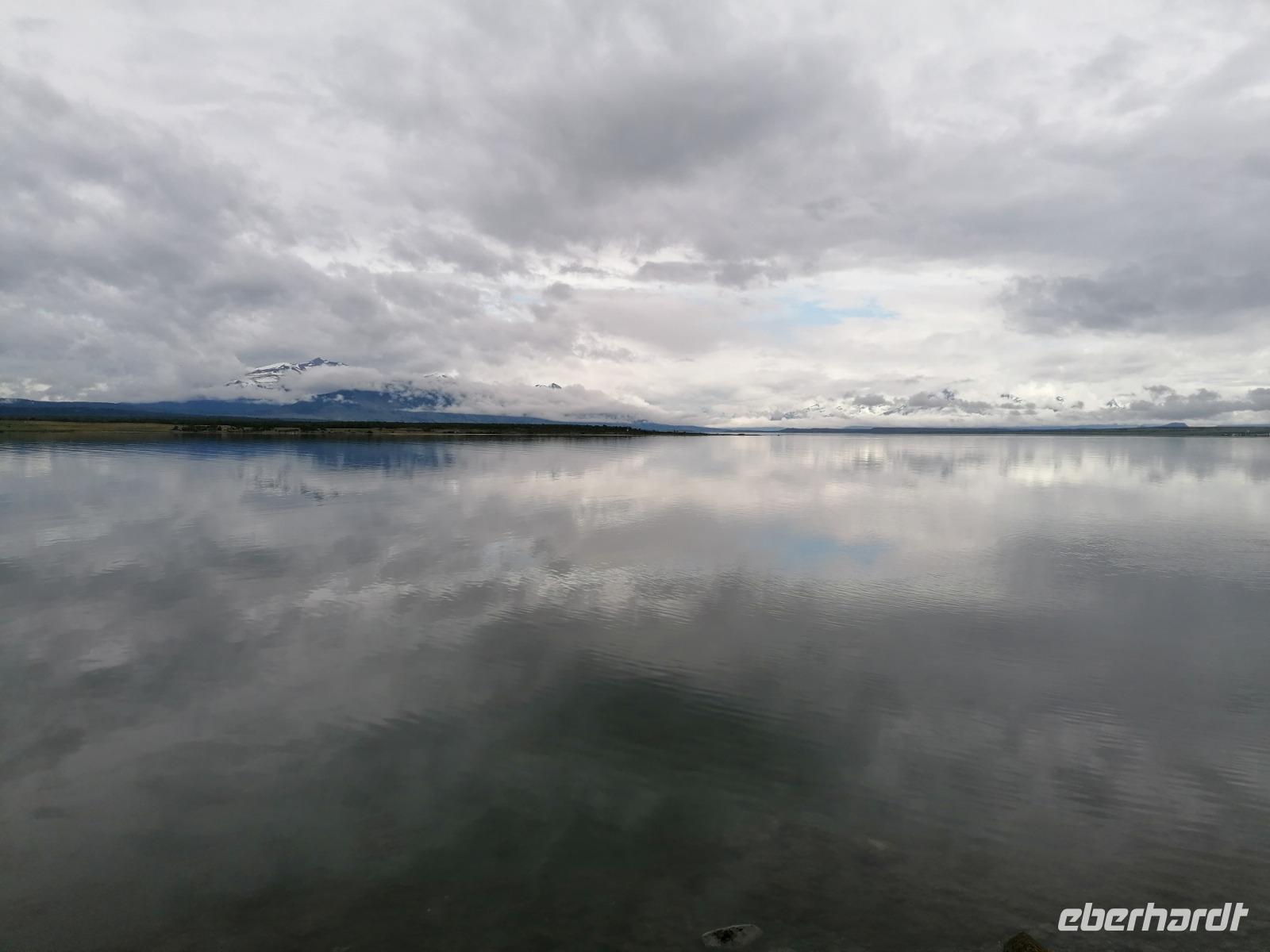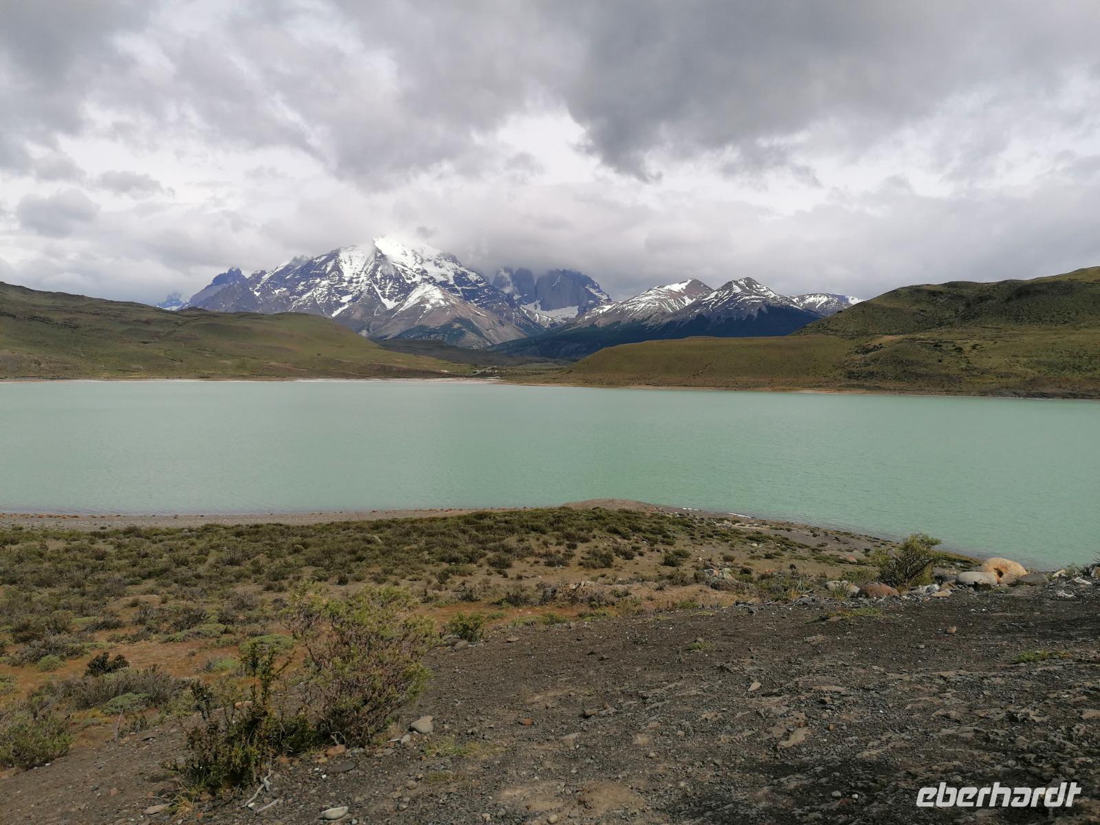 Schon früh am Morgen hieß es Abschied von der chilenischen Hauptstadt Santiago de Chile nehmen. Wir waren erleichtert, dass wir die Tage in Santiago de Chile so positiv gestalten konnten. Aber jetzt freuen wir uns auf Patagonien. Mit dem ersten Flieger flogen wir von der Hauptstadt nach Punta Arenas. Nachdem alle Koffer eingetroffen waren, wie uns mit Wasser versorgt hatten, gingen wir zum Bus. Leider hatten wir nicht ganz so viel Glück mit dem Wetter, aber wir waren guter Dinge und freuten uns auf Patagonien. In Puntarenas war es am Vortag zu Ausschreitungen gekommen, sodass wir nicht ins Zentrum fuhren. Nach einer kleinen Fahrtstrecke machten wir unseren ersten Stopp. Bei einem kleinen Café holen wir unser Frühstück nach und stärken uns mit einem frischen Sandwich und einen Kaffee. Weiter führt uns unser Route nach Puerto Natales. Hier machten wir einen kleinen Spaziergang entlang der Promenade und knipsen viele Bilder von dem wunderschönen Bergpanorama in Hintergrund und der Strandpromenade. Da wir mittlerweile die Mittagszeit erreicht hatten, beschlossen wir in einem Restaurant zu speisen. Wir bestellten frischen Fisch, Meeresspinne, Muscheln und andere Leckereien. Nach dem Mittagessen hielten wir noch bei einem kleinen Supermarkt und fuhren weiter in den Nationalpark Torres del Paine. Die letzte Teilstrecke unsere Route führte über eine Schotterstraße bis hin in unser Hotel, das mitten in den Nationalpark Torres del Paine gelegen war. Auch hier war das Wetter uns nicht hold, aber wir wärmten uns im hoteleigenen Restaurant und genossen den Ausblick auf die Bergkette.