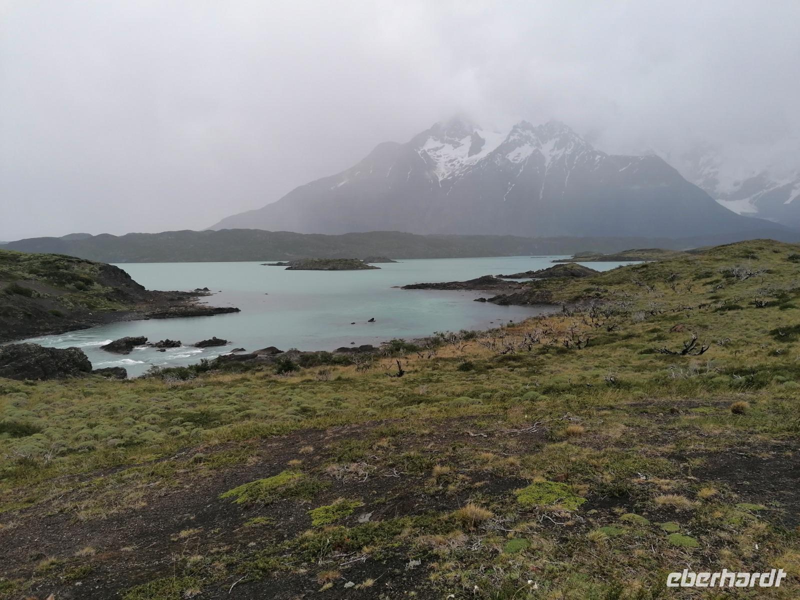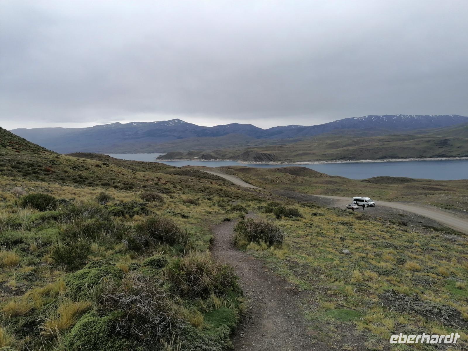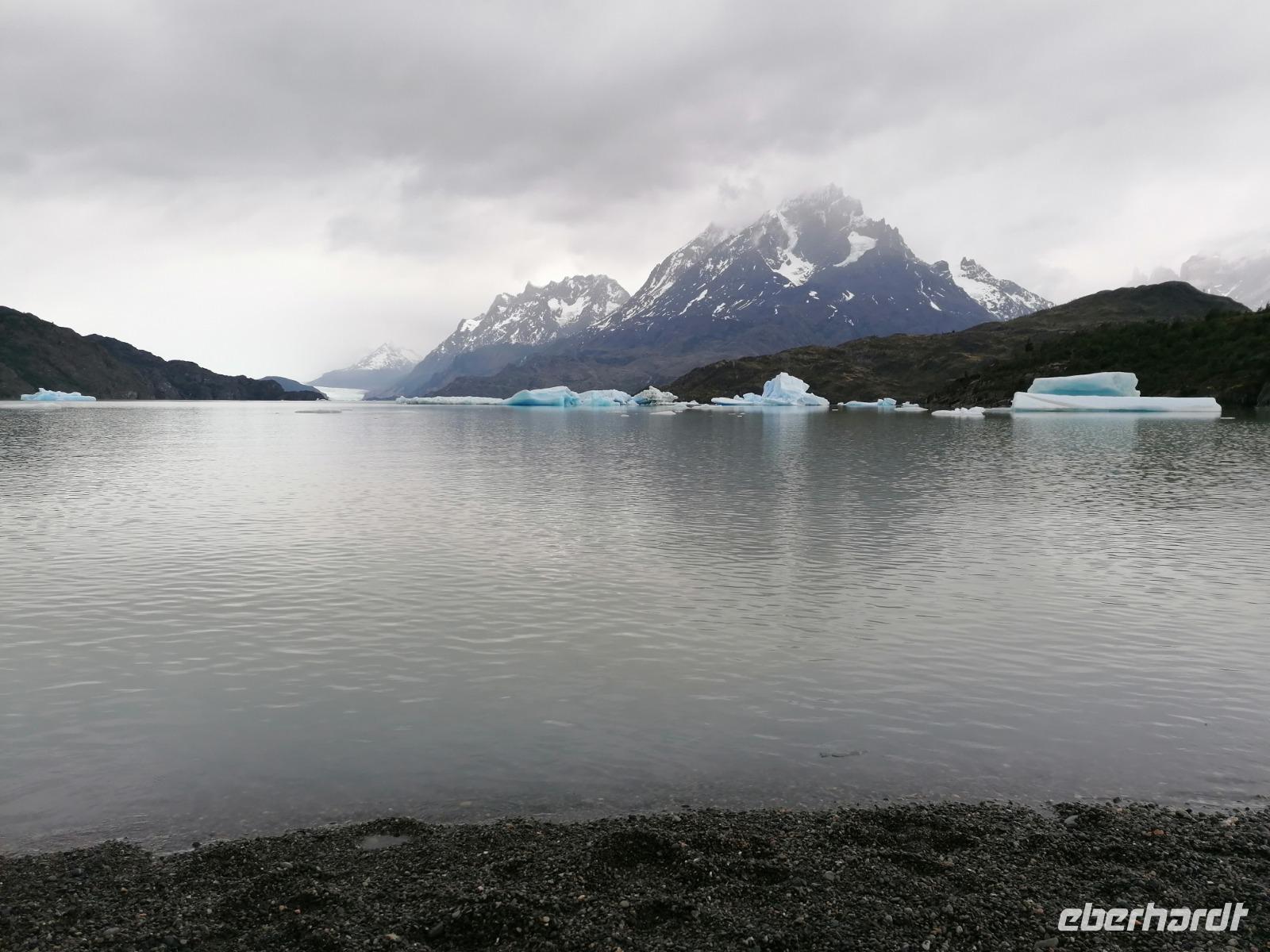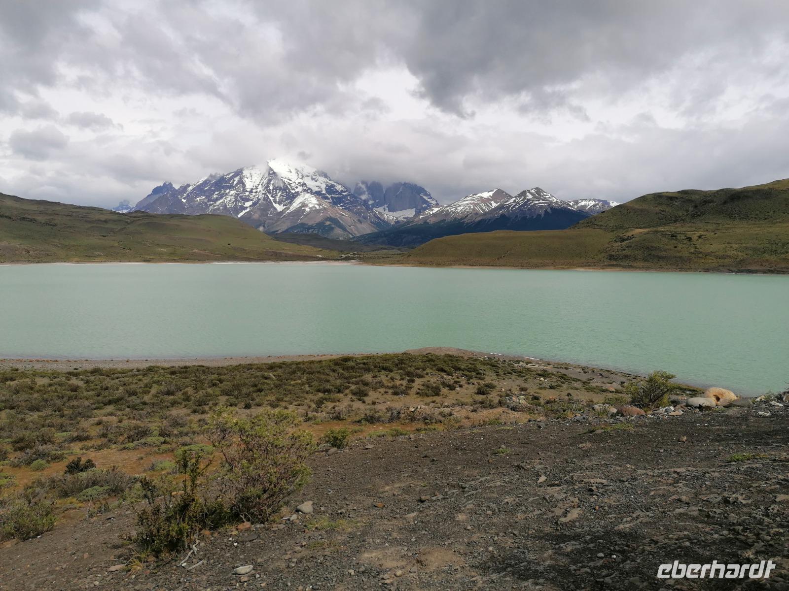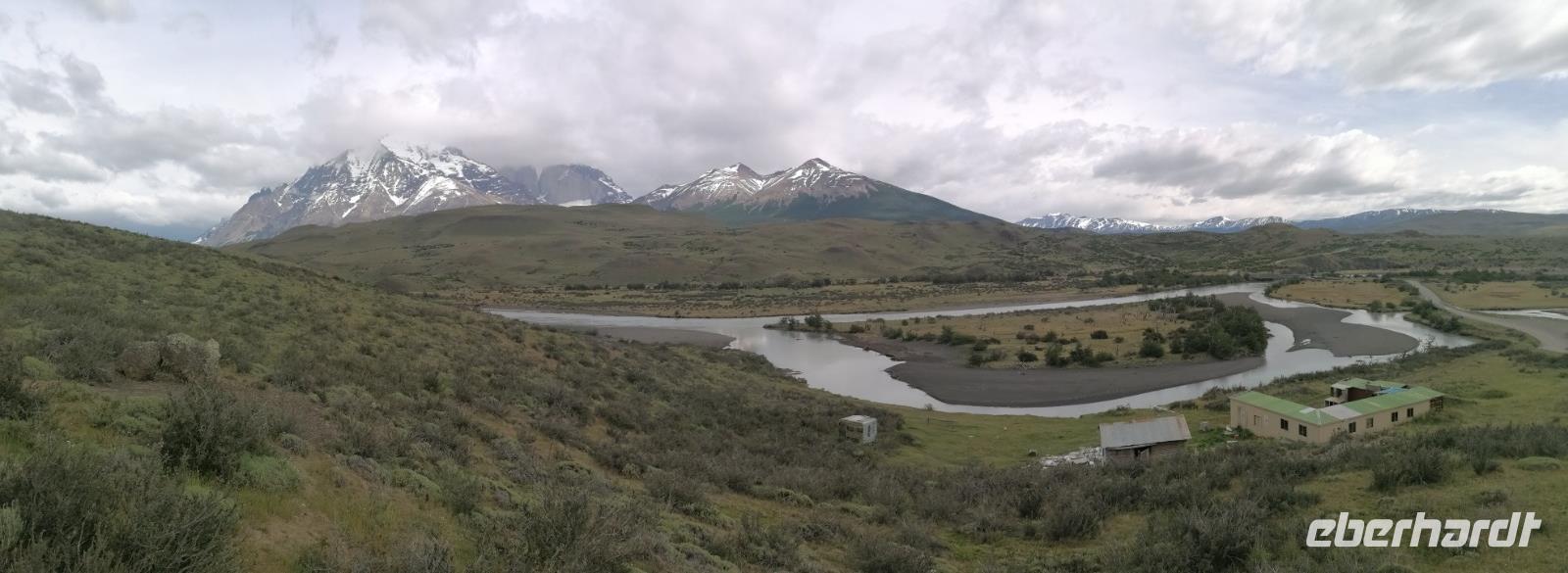 Schon früh am Morgen hieß es Abschied von der chilenischen Hauptstadt Santiago de Chile nehmen. Wir waren erleichtert, dass wir die Tage in Santiago de Chile so positiv gestalten konnten. Aber jetzt freuen wir uns auf Patagonien. Mit dem ersten Flieger flogen wir von der Hauptstadt nach Punta Arenas. Nachdem alle Koffer eingetroffen waren, wie uns mit Wasser versorgt hatten, gingen wir zum Bus. Leider hatten wir nicht ganz so viel Glück mit dem Wetter, aber wir waren guter Dinge und freuten uns auf Patagonien. In Puntarenas war es am Vortag zu Ausschreitungen gekommen, sodass wir nicht ins Zentrum fuhren. Nach einer kleinen Fahrtstrecke machten wir unseren ersten Stopp. Bei einem kleinen Café holen wir unser Frühstück nach und stärken uns mit einem frischen Sandwich und einen Kaffee. Weiter führt uns unser Route nach Puerto Natales. Hier machten wir einen kleinen Spaziergang entlang der Promenade und knipsen viele Bilder von dem wunderschönen Bergpanorama in Hintergrund und der Strandpromenade. Da wir mittlerweile die Mittagszeit erreicht hatten, beschlossen wir in einem Restaurant zu speisen. Wir bestellten frischen Fisch, Meeresspinne, Muscheln und andere Leckereien. Nach dem Mittagessen hielten wir noch bei einem kleinen Supermarkt und fuhren weiter in den Nationalpark Torres del Paine. Die letzte Teilstrecke unsere Route führte über eine Schotterstraße bis hin in unser Hotel, das mitten in den Nationalpark Torres del Paine gelegen war. Auch hier war das Wetter uns nicht hold, aber wir wärmten uns im hoteleigenen Restaurant und genossen den Ausblick auf die Bergkette.