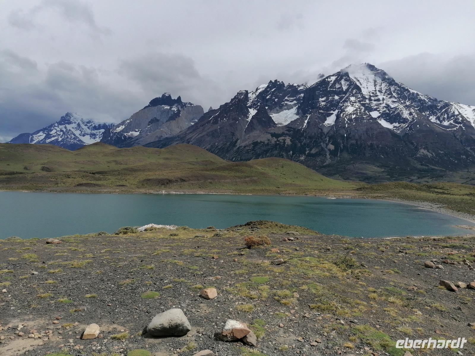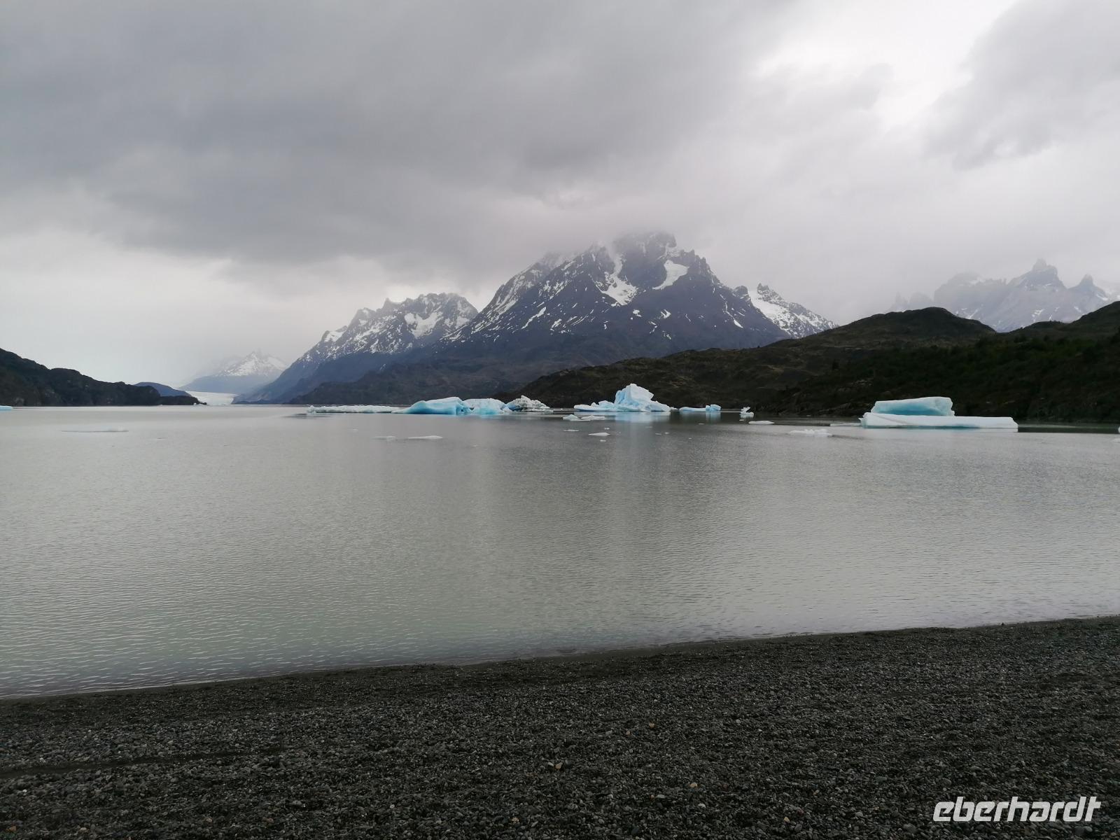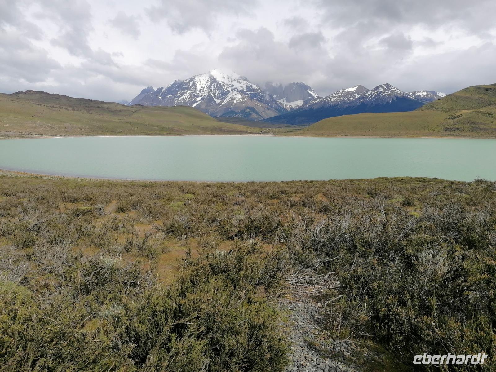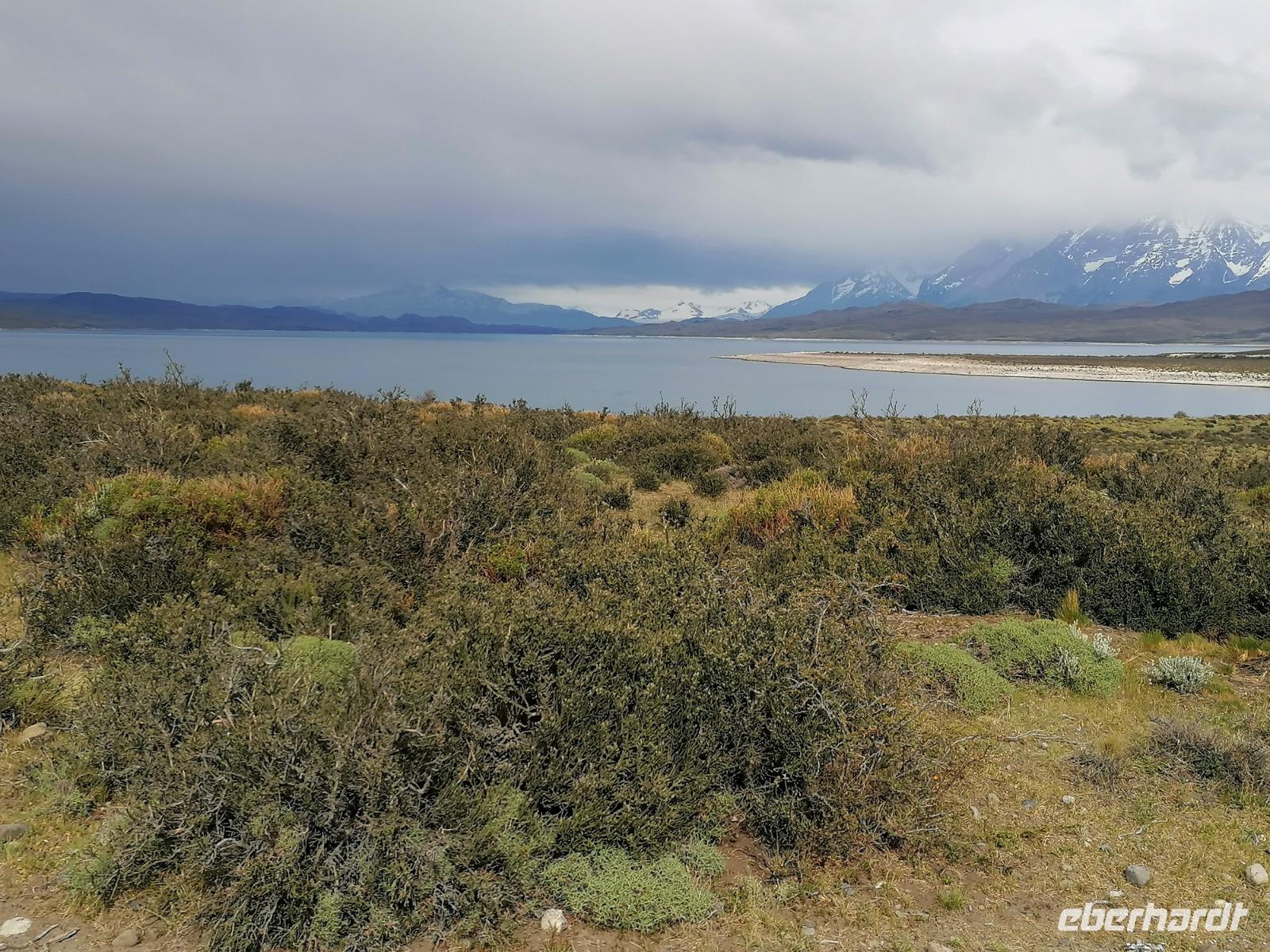 Schon früh am Morgen hieß es Abschied von der chilenischen Hauptstadt Santiago de Chile nehmen. Wir waren erleichtert, dass wir die Tage in Santiago de Chile so positiv gestalten konnten. Aber jetzt freuen wir uns auf Patagonien. Mit dem ersten Flieger flogen wir von der Hauptstadt nach Punta Arenas. Nachdem alle Koffer eingetroffen waren, wie uns mit Wasser versorgt hatten, gingen wir zum Bus. Leider hatten wir nicht ganz so viel Glück mit dem Wetter, aber wir waren guter Dinge und freuten uns auf Patagonien. In Puntarenas war es am Vortag zu Ausschreitungen gekommen, sodass wir nicht ins Zentrum fuhren. Nach einer kleinen Fahrtstrecke machten wir unseren ersten Stopp. Bei einem kleinen Café holen wir unser Frühstück nach und stärken uns mit einem frischen Sandwich und einen Kaffee. Weiter führt uns unser Route nach Puerto Natales. Hier machten wir einen kleinen Spaziergang entlang der Promenade und knipsen viele Bilder von dem wunderschönen Bergpanorama in Hintergrund und der Strandpromenade. Da wir mittlerweile die Mittagszeit erreicht hatten, beschlossen wir in einem Restaurant zu speisen. Wir bestellten frischen Fisch, Meeresspinne, Muscheln und andere Leckereien. Nach dem Mittagessen hielten wir noch bei einem kleinen Supermarkt und fuhren weiter in den Nationalpark Torres del Paine. Die letzte Teilstrecke unsere Route führte über eine Schotterstraße bis hin in unser Hotel, das mitten in den Nationalpark Torres del Paine gelegen war. Auch hier war das Wetter uns nicht hold, aber wir wärmten uns im hoteleigenen Restaurant und genossen den Ausblick auf die Bergkette.