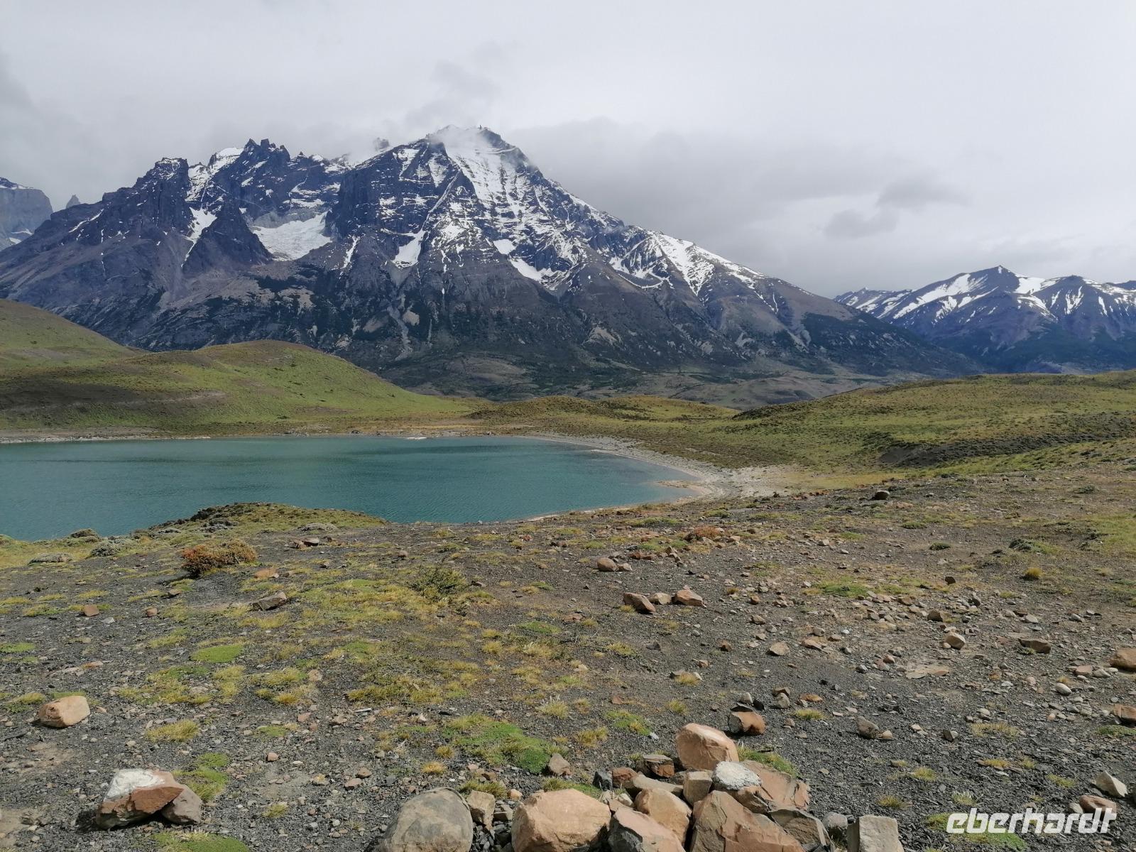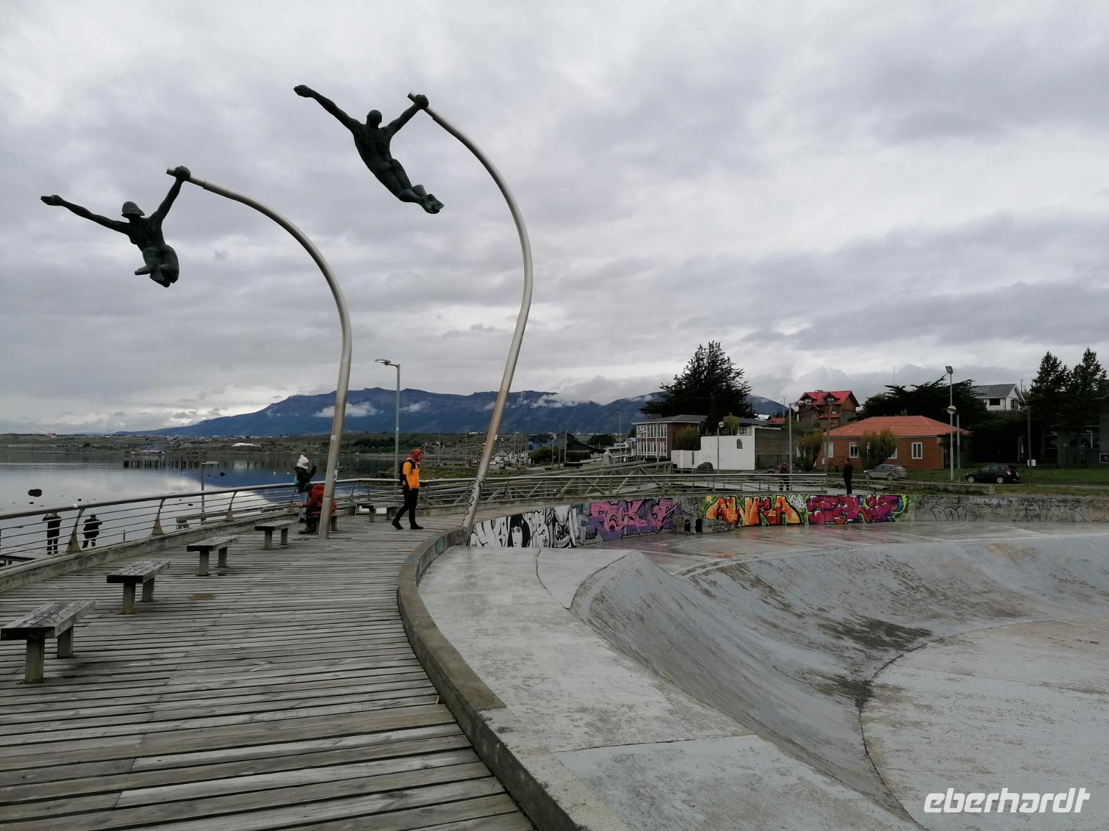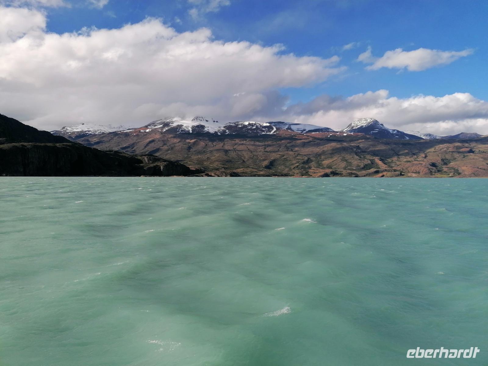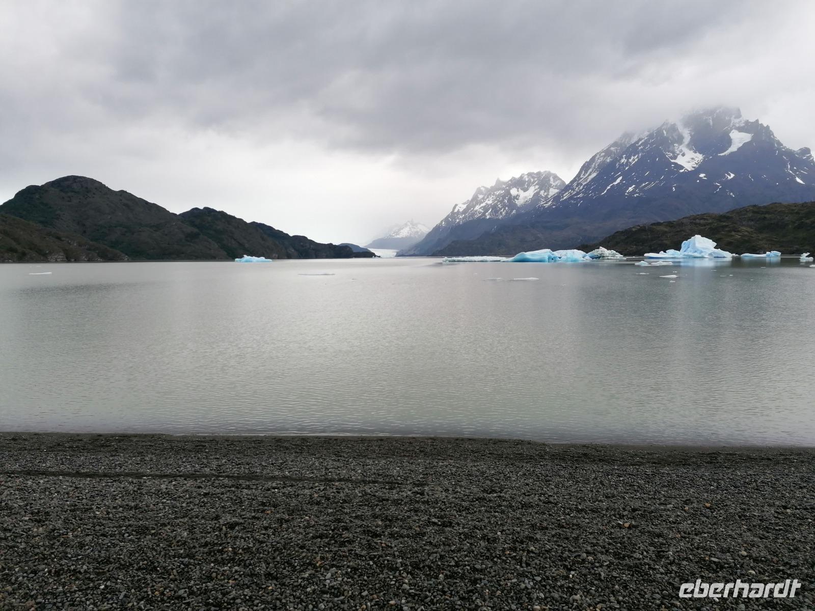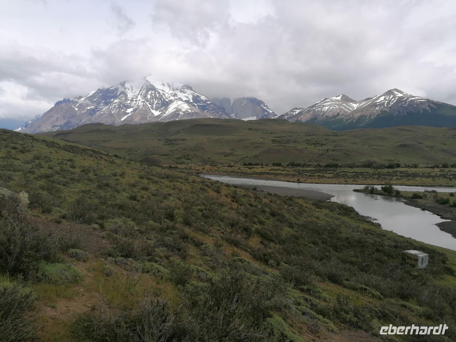 Schon früh am Morgen hieß es Abschied von der chilenischen Hauptstadt Santiago de Chile nehmen. Wir waren erleichtert, dass wir die Tage in Santiago de Chile so positiv gestalten konnten. Aber jetzt freuen wir uns auf Patagonien. Mit dem ersten Flieger flogen wir von der Hauptstadt nach Punta Arenas. Nachdem alle Koffer eingetroffen waren, wie uns mit Wasser versorgt hatten, gingen wir zum Bus. Leider hatten wir nicht ganz so viel Glück mit dem Wetter, aber wir waren guter Dinge und freuten uns auf Patagonien. In Puntarenas war es am Vortag zu Ausschreitungen gekommen, sodass wir nicht ins Zentrum fuhren. Nach einer kleinen Fahrtstrecke machten wir unseren ersten Stopp. Bei einem kleinen Café holen wir unser Frühstück nach und stärken uns mit einem frischen Sandwich und einen Kaffee. Weiter führt uns unser Route nach Puerto Natales. Hier machten wir einen kleinen Spaziergang entlang der Promenade und knipsen viele Bilder von dem wunderschönen Bergpanorama in Hintergrund und der Strandpromenade. Da wir mittlerweile die Mittagszeit erreicht hatten, beschlossen wir in einem Restaurant zu speisen. Wir bestellten frischen Fisch, Meeresspinne, Muscheln und andere Leckereien. Nach dem Mittagessen hielten wir noch bei einem kleinen Supermarkt und fuhren weiter in den Nationalpark Torres del Paine. Die letzte Teilstrecke unsere Route führte über eine Schotterstraße bis hin in unser Hotel, das mitten in den Nationalpark Torres del Paine gelegen war. Auch hier war das Wetter uns nicht hold, aber wir wärmten uns im hoteleigenen Restaurant und genossen den Ausblick auf die Bergkette.