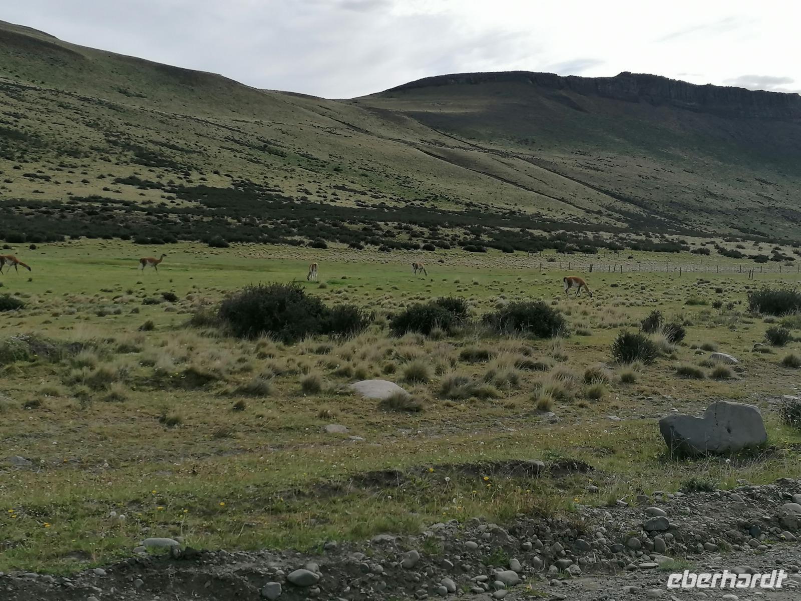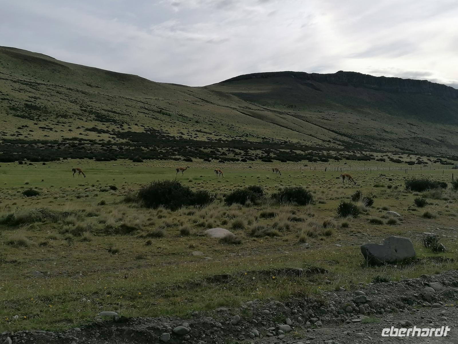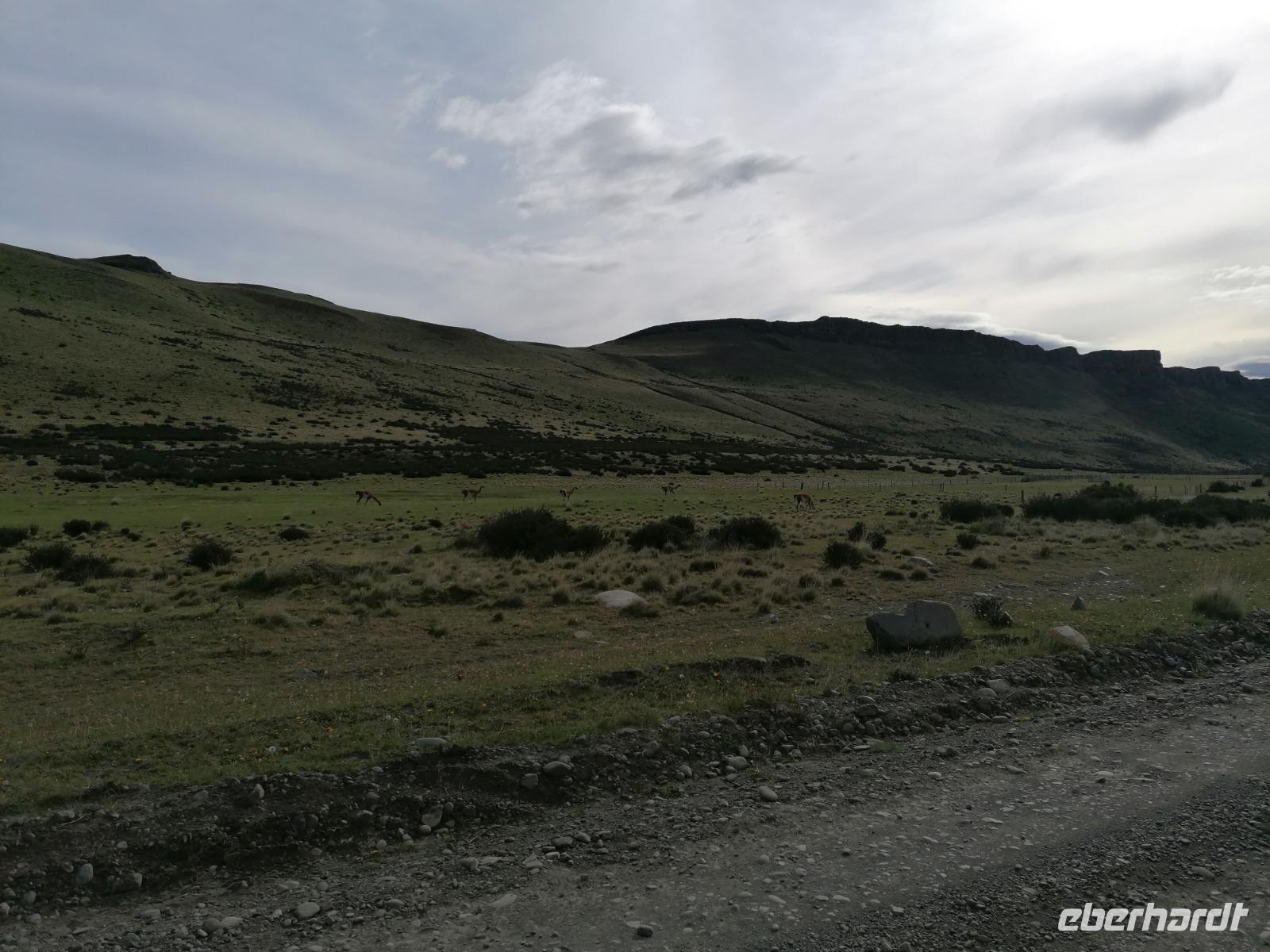 Am Morgen hieß es leider Abschied von Nationalpark Torres del Paine nehmen und wir fuhren zurück zum Ort Cerro Castillo. Hier gab es die letzte Möglichkeit, um chilenische Pesos umzutauschen, letzte chilenische Souvenirs zu kaufen und sich mit einem Kaffee zu stärken. Hier an der Grenze zwischen Chile und Argentinien mussten wir allerdings noch etwas auf weitere Dokumente warten, bevor wir die Grenze nach Argentinien überqueren konnten. Der Grenzübergang erfolgte problemlos und wir wunderten uns über die einfache Handhabung. Endlich in Argentinien angekommen stiegen wir wieder in den Bus und fuhren nach Emparanza. In Esperanza absolvierten wir unsere Mittagspause und probierten leckere selbstgemachte Empanadas. Die Fahrt weiter nach El Calafate verging wie im Flug. Gegen späten Nachmittag checken wir in unser Hotel in El Calafate ein. Nachdem wir etwas Freizeit in der Stadt verbringen konnten, trafen wir uns zu einem gemeinsamen Abendessen. Wir probierten leckeren Eintopf mit Vikunjas und den örtlichen leckeren Wein. Endlich in El Calafate angekommen freuten wir uns auf die nächsten Tage in Patagonien.