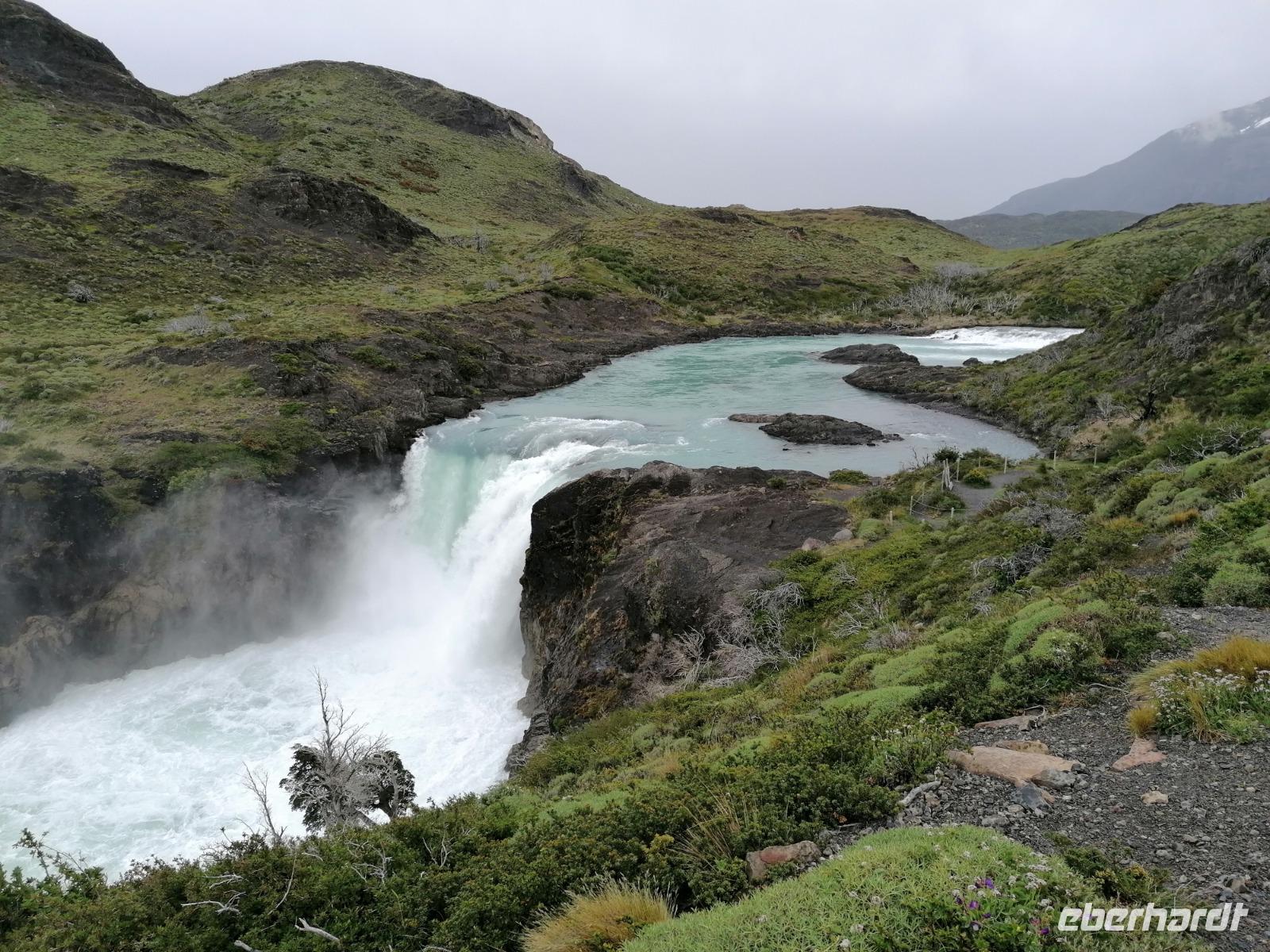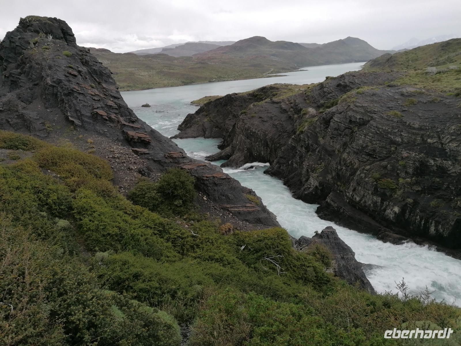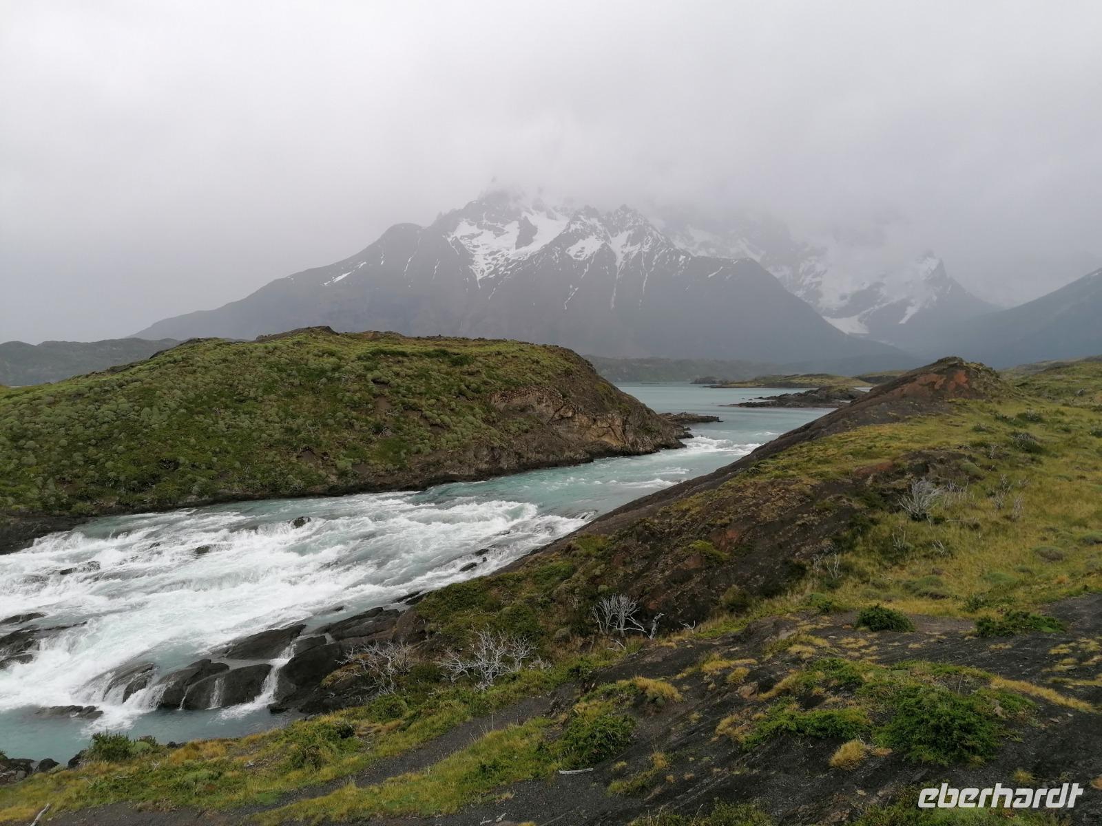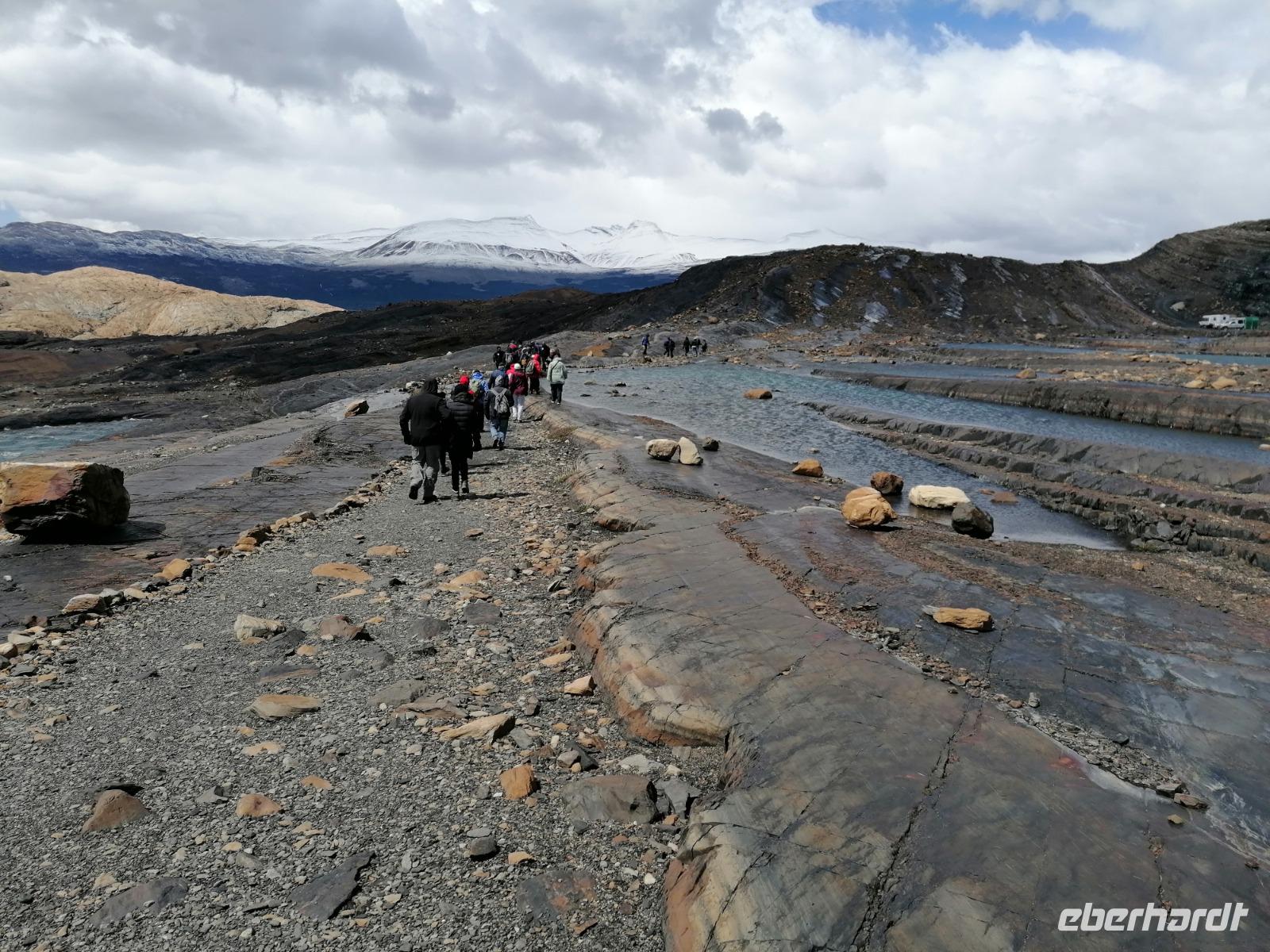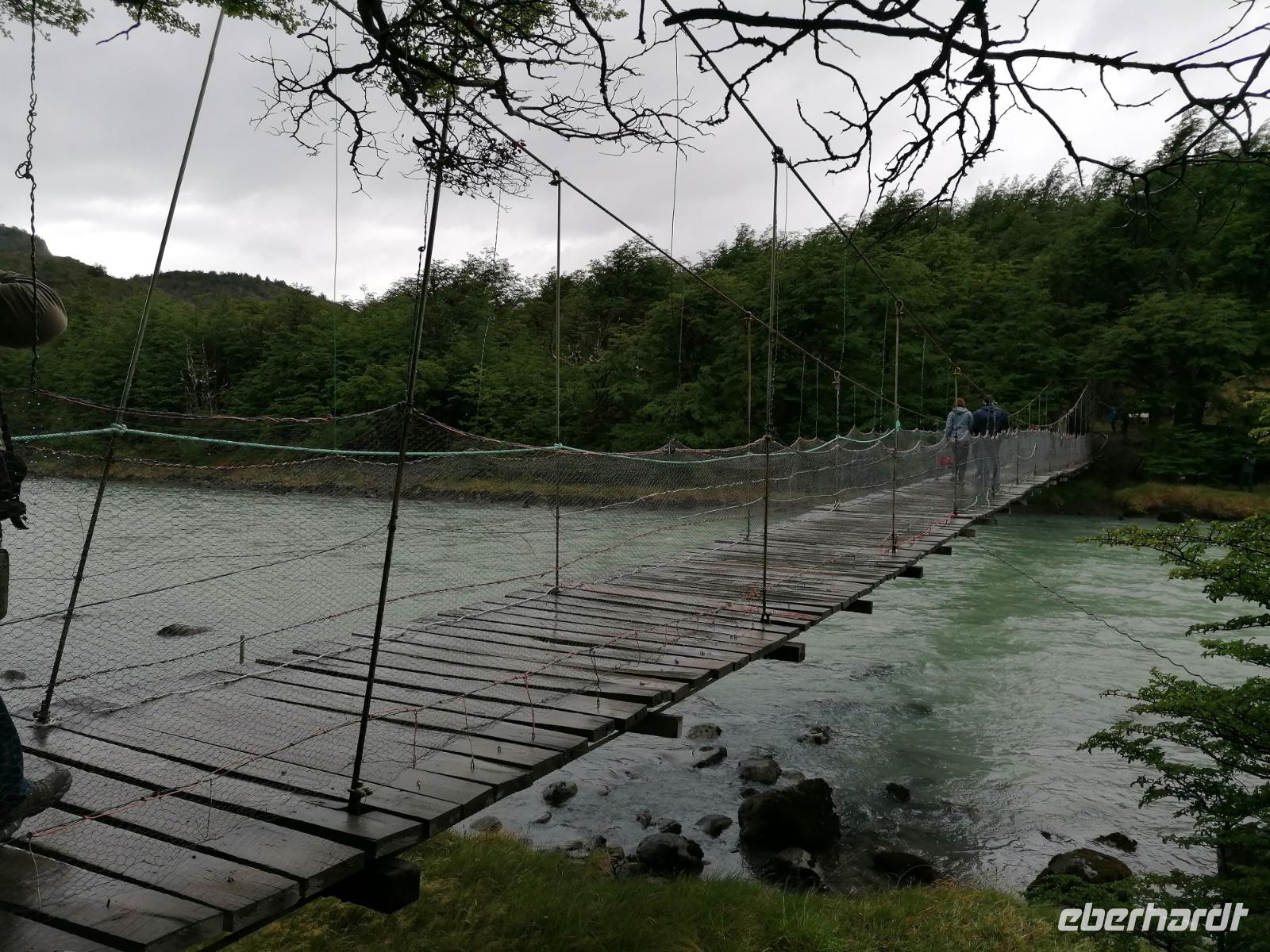 Auf unsere Agenda stand heute ein Tagesausflug im Nationalpark Torres del Paine. Nach einem gemeinsamen Frühstück brachen wir auf um den Nationalpark zu erkunden. Auf dem Weg begegneten wir einen echten Gaucho und hielten ausführlich bei einem schönen Fotostopp mit Vikunjas. Im Nationalpark machten wir einen kleinen Spaziergang zu einem Aussichtspunkt, um unsere Mittagssnack zu essen. Da auch heute das Wetter nicht besonders gut mitspielte, beschlossen wir zunächst einmal den Grey Gletscher anzufahren. Hier absolvierten wir eine gemeinsame Wanderung entlang des Strandes bis hin zum Gletscher. Doch zunächst einmal mussten wir eine Hängebrücke überqueren. Aufgeteilt in kleinere Gruppen meisterten wir die Aufgabe hervorragend. Unser Guide Erik erklärte uns eine Menge über die Gegend, wir machten einige Bilder zum Andenken und probierten das Gletschereis. Im Anschluss an die Wanderung konnten wir uns im Restaurant bei einem Kaffee aufwärmen. Weiter führt uns unsere Route zum Aussichtspunkt Mirador Nordenskjöld, wo wir eine kleine Wanderung machten. Unser letzter Halt erfolgte dann am Wasserfall. Wir bestaunten den Wasserfall und die Stromschnellen, bevor wir wieder vom Regen überrascht wurden. Schnell gingen wir zurück zum Bus und fuhren die Strecke zu unserem Hotel zurück. Im Hotel-Restaurant schlossen wir den schönen Tag bei einem gemeinsamen Abendessen und einem Pisco Sour ab.