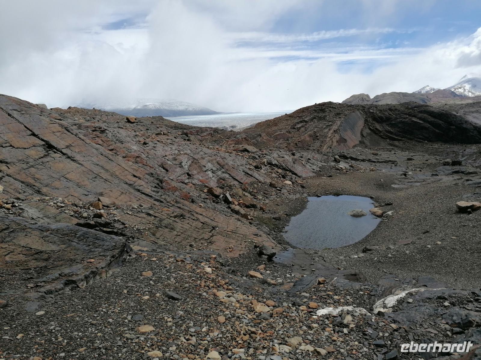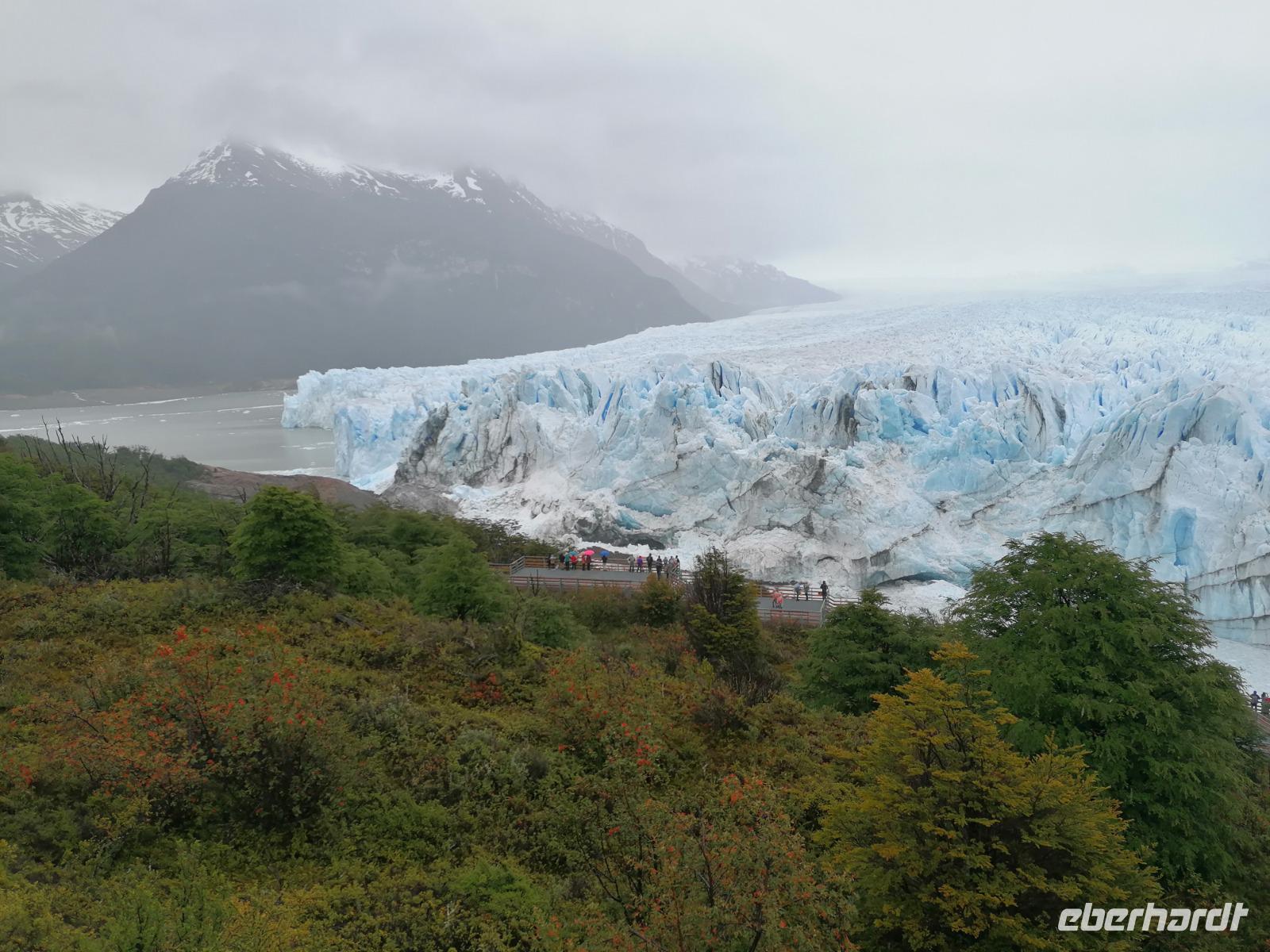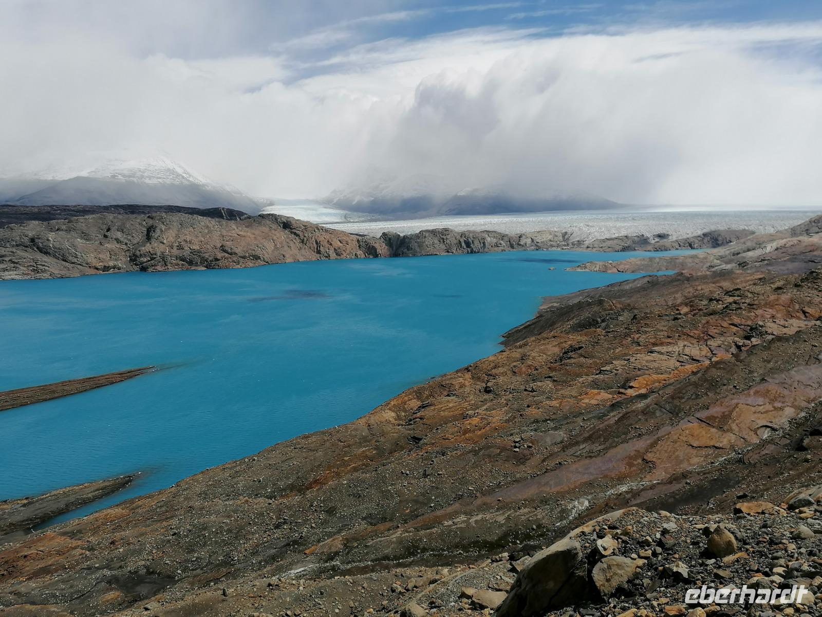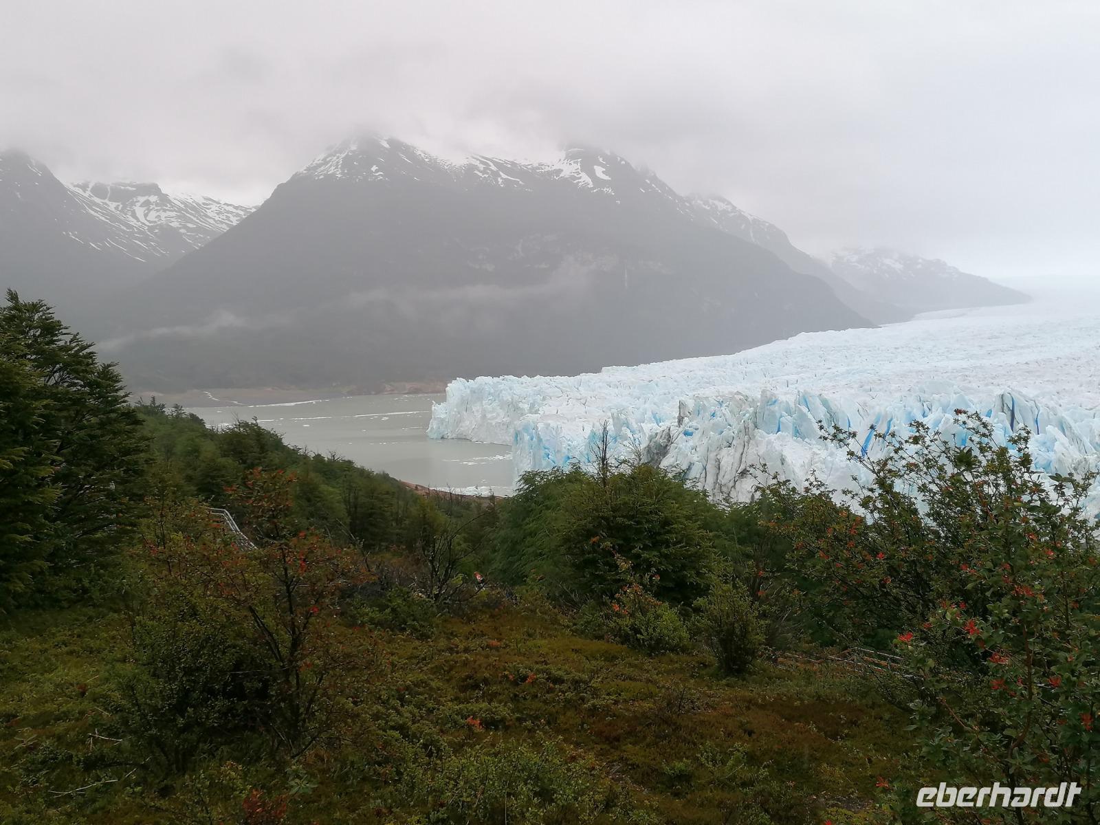 Nachdem wir schon so viel über die Gletscher in Patagonien gehört hatten, wollten wir nun endlich Gletscher aus nächster Nähe sehen. Mit unserem Bus und Reiseleiter Eric brachen wir auf und den Gletscher Perito Moreno zu erkunden. Mitarbeiter auch unser örtlicher Nationalpark Guide. Gemeinsam fuhren wir ca. eine Stunde bis wir den Nationalpark erreichten. Zwischendurch brach immer wieder die Sonne zwischen den Wolken hindurch, aber wir hofften das das Wetter sich hielt. Nach einer kurzen Toilettenpause erreichten wir schließlich den Kai, wo unser Boot bereits wartete. Schnell checken wir ein und freuen uns auf eine Bootsfahrt bis hin zum Perito-Moreno-Gletscher. Auf dem Bode hätten wir zuerst einmal Informationen über den Gletscher und fuhren schließlich sehr nah heran. Ein absolutes Highlight. Während der Fahrt machten wir uns selige Bilder von uns, dem Gletscher und auch Gruppenbilder. Am Gletscher gab es im Anschluss noch eine kleine Überraschung. Der örtliche Boots Guide half uns ein kleines Stück Eis aus dem Wasser zu fischen. Mit dem Eis bereitet mir einen leckeren Whisky on the rocks vor. Gemeinsam stießen wir auf die schöne Zeit in Patagonien an und genossen die Atmosphäre auf der Bootsfahrt. Gegen Mittag fuhren wir dann weiter mit dem Bus zum Aussichtspunkt. Hier steht ein kleines Restaurant wo wir uns aufwärmen konnten. Freundlicherweise hat uns das Hotel ein Lunchpaket mit auf dem Weg gegeben. Leider spielte das Wetter uns einen Streich und es regnete in Strömen. Getreu dem Motto es gibt kein schlechtes Wetter, sondern nur schlechte Kleidung, spazierten wir entlang den Laufstegen bis hin zu den Aussichtspunkten des Gletschers. Trotz Regen ein einzigartiges Erlebnis. Nach dem kleinen Spaziergang kamen wir nass, aber glücklich zum Bus zurück. Schnell machten wir uns zurück auf dem Weg nach El Calafate. Hier konnten wir uns etwas aufwärmen oder in den kleinen Städtchen bummeln gehen. Am Abend war kein Abendessen inklusive, sodass wir beschlossen ein Steakhouse zu besuchen. Die Atmosphäre war einzigartig und das Steak sehr lecker, so dass wir in voller Freude den Abend ausklingen ließen.
