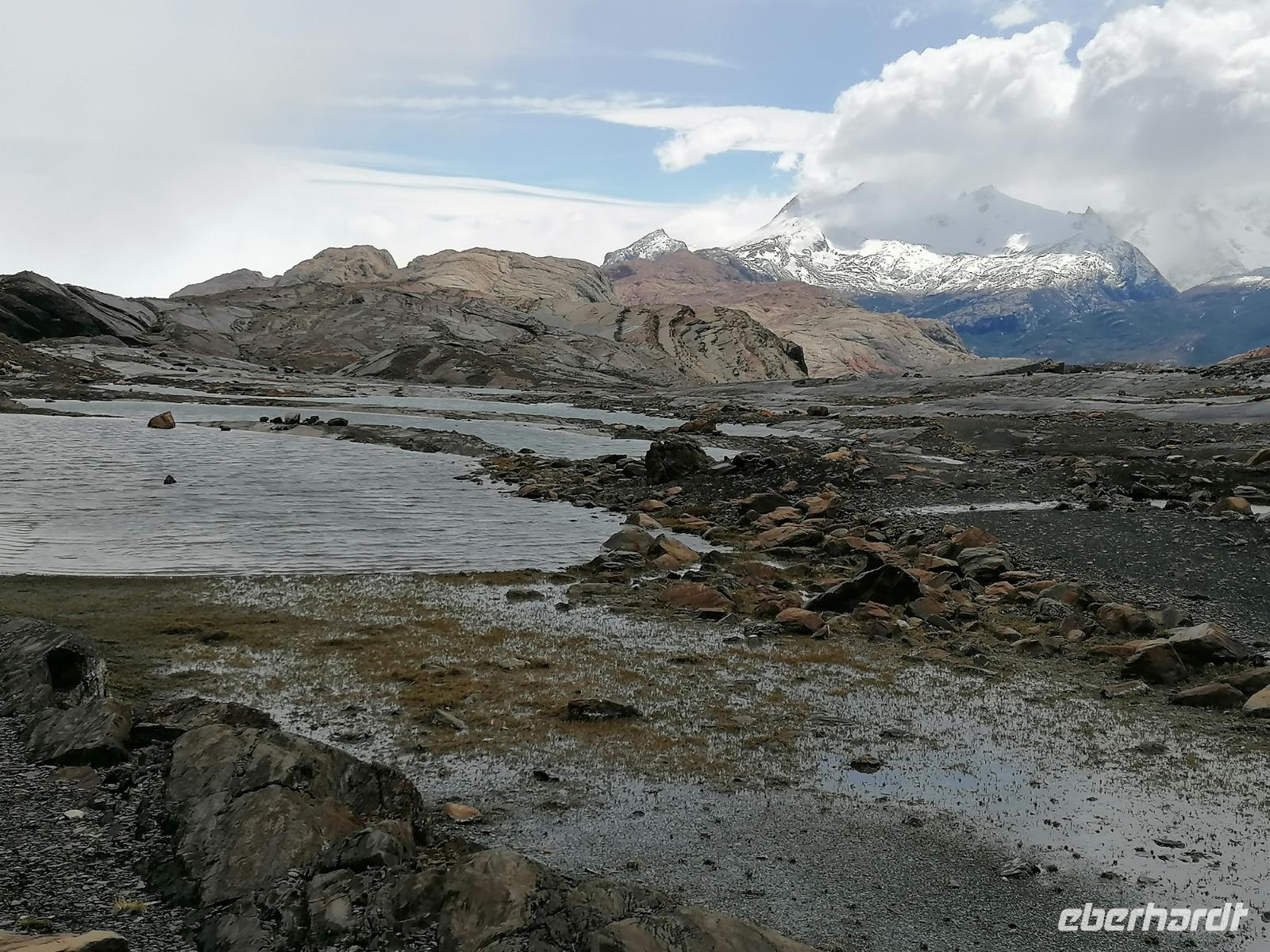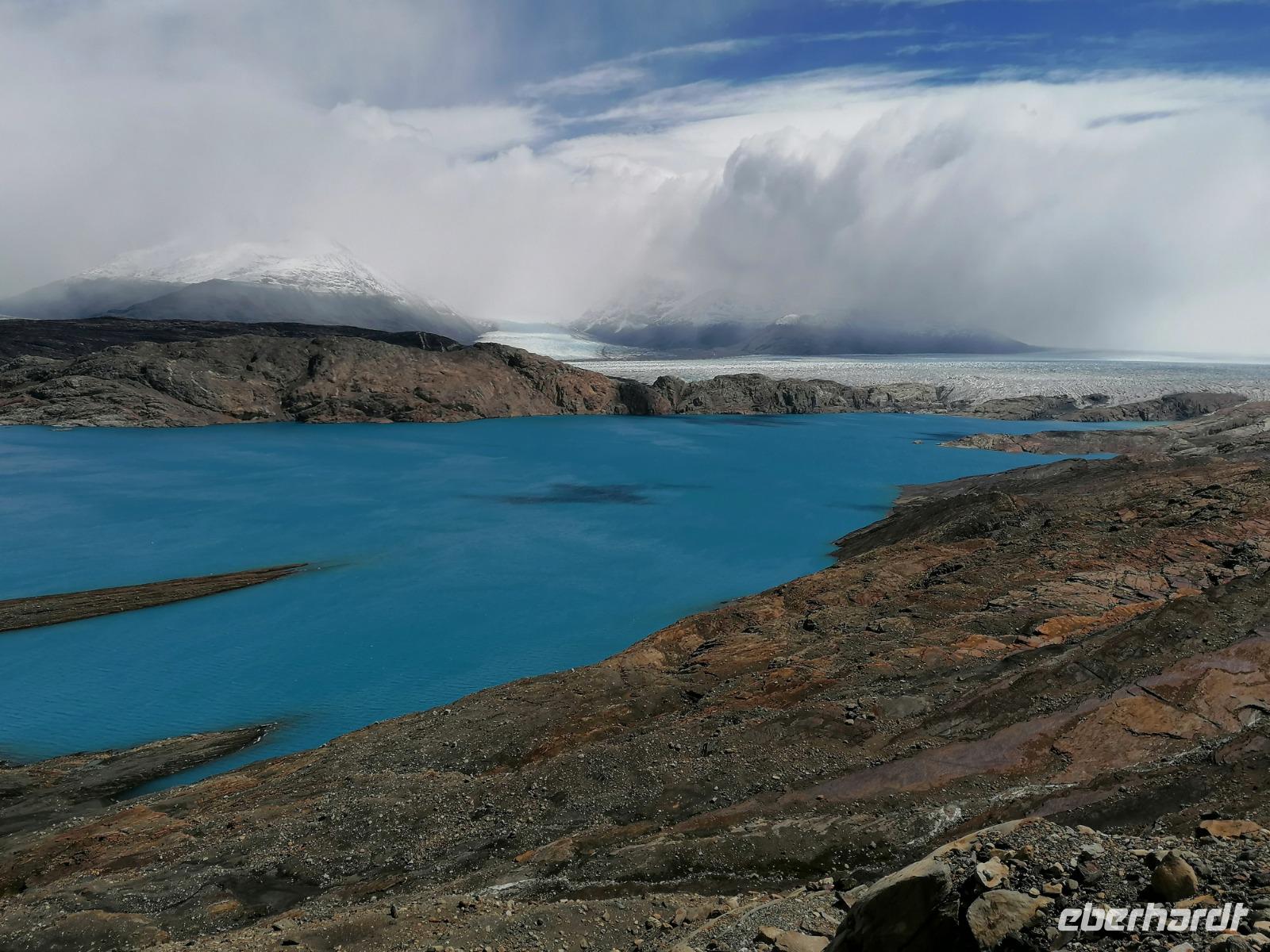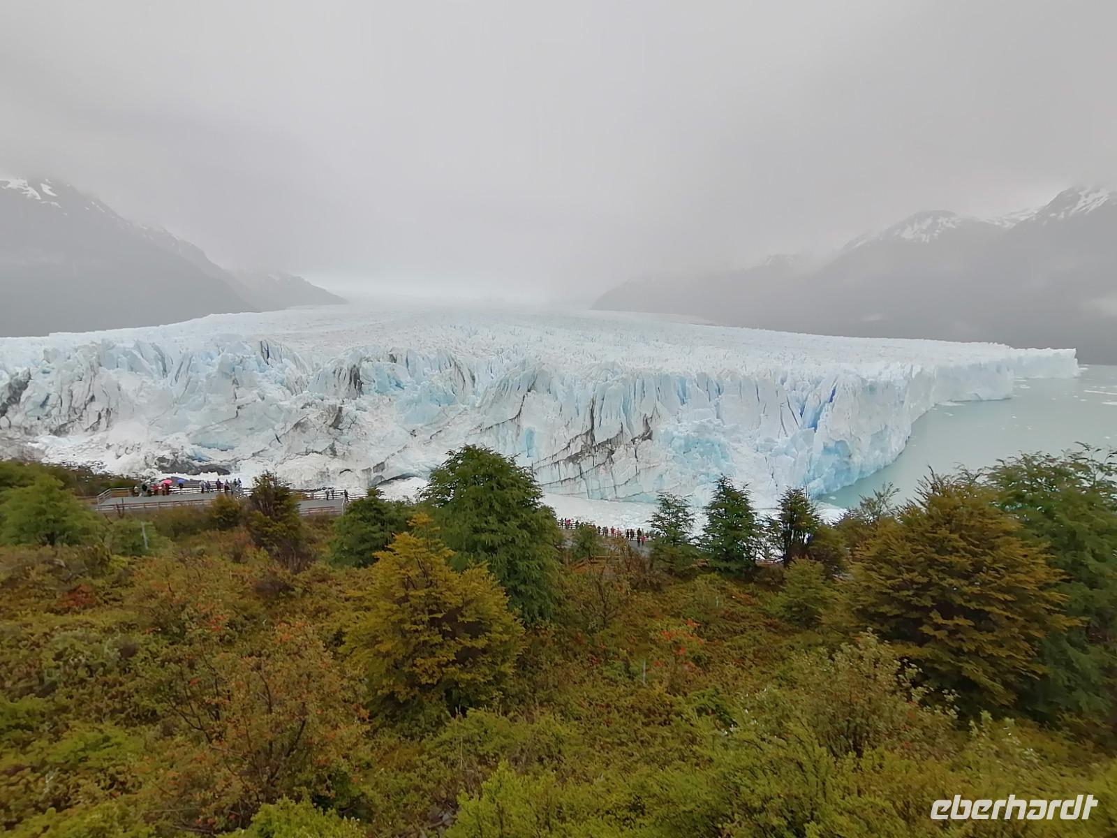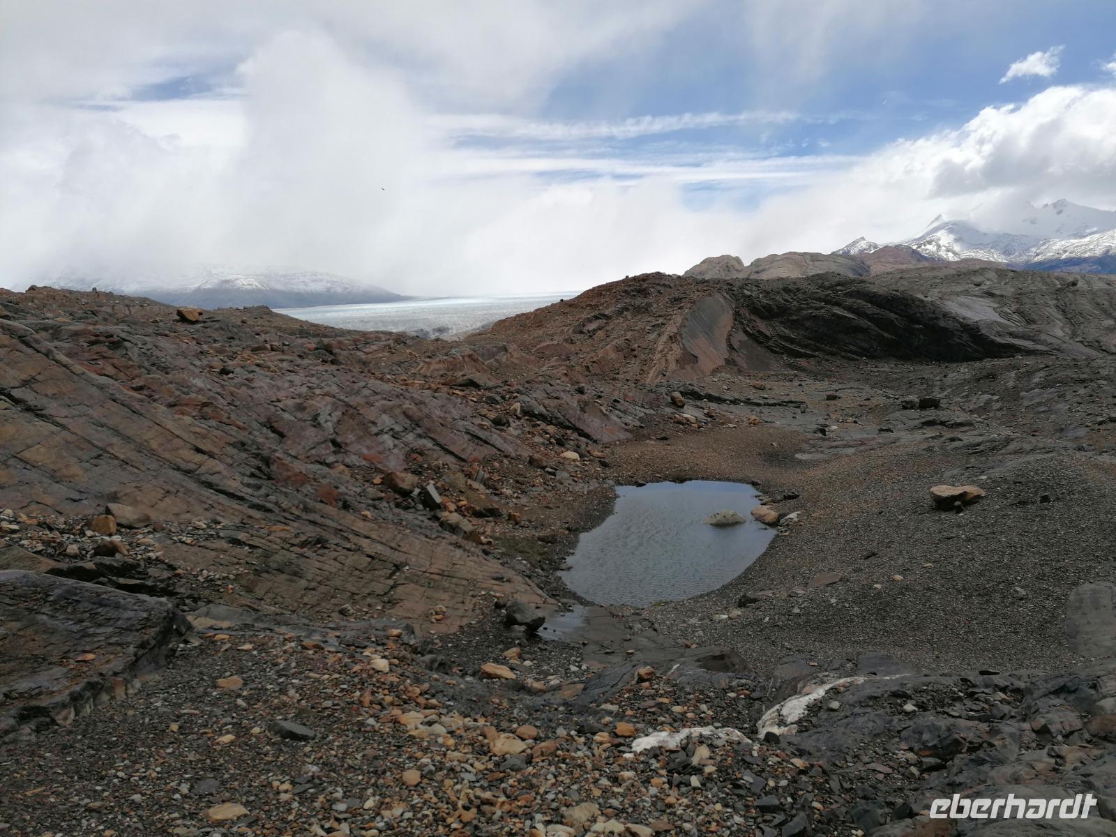 Nachdem wir schon so viel über die Gletscher in Patagonien gehört hatten, wollten wir nun endlich Gletscher aus nächster Nähe sehen. Mit unserem Bus und Reiseleiter Eric brachen wir auf und den Gletscher Perito Moreno zu erkunden. Mitarbeiter auch unser örtlicher Nationalpark Guide. Gemeinsam fuhren wir ca. eine Stunde bis wir den Nationalpark erreichten. Zwischendurch brach immer wieder die Sonne zwischen den Wolken hindurch, aber wir hofften das das Wetter sich hielt. Nach einer kurzen Toilettenpause erreichten wir schließlich den Kai, wo unser Boot bereits wartete. Schnell checken wir ein und freuen uns auf eine Bootsfahrt bis hin zum Perito-Moreno-Gletscher. Auf dem Bode hätten wir zuerst einmal Informationen über den Gletscher und fuhren schließlich sehr nah heran. Ein absolutes Highlight. Während der Fahrt machten wir uns selige Bilder von uns, dem Gletscher und auch Gruppenbilder. Am Gletscher gab es im Anschluss noch eine kleine Überraschung. Der örtliche Boots Guide half uns ein kleines Stück Eis aus dem Wasser zu fischen. Mit dem Eis bereitet mir einen leckeren Whisky on the rocks vor. Gemeinsam stießen wir auf die schöne Zeit in Patagonien an und genossen die Atmosphäre auf der Bootsfahrt. Gegen Mittag fuhren wir dann weiter mit dem Bus zum Aussichtspunkt. Hier steht ein kleines Restaurant wo wir uns aufwärmen konnten. Freundlicherweise hat uns das Hotel ein Lunchpaket mit auf dem Weg gegeben. Leider spielte das Wetter uns einen Streich und es regnete in Strömen. Getreu dem Motto es gibt kein schlechtes Wetter, sondern nur schlechte Kleidung, spazierten wir entlang den Laufstegen bis hin zu den Aussichtspunkten des Gletschers. Trotz Regen ein einzigartiges Erlebnis. Nach dem kleinen Spaziergang kamen wir nass, aber glücklich zum Bus zurück. Schnell machten wir uns zurück auf dem Weg nach El Calafate. Hier konnten wir uns etwas aufwärmen oder in den kleinen Städtchen bummeln gehen. Am Abend war kein Abendessen inklusive, sodass wir beschlossen ein Steakhouse zu besuchen. Die Atmosphäre war einzigartig und das Steak sehr lecker, so dass wir in voller Freude den Abend ausklingen ließen.