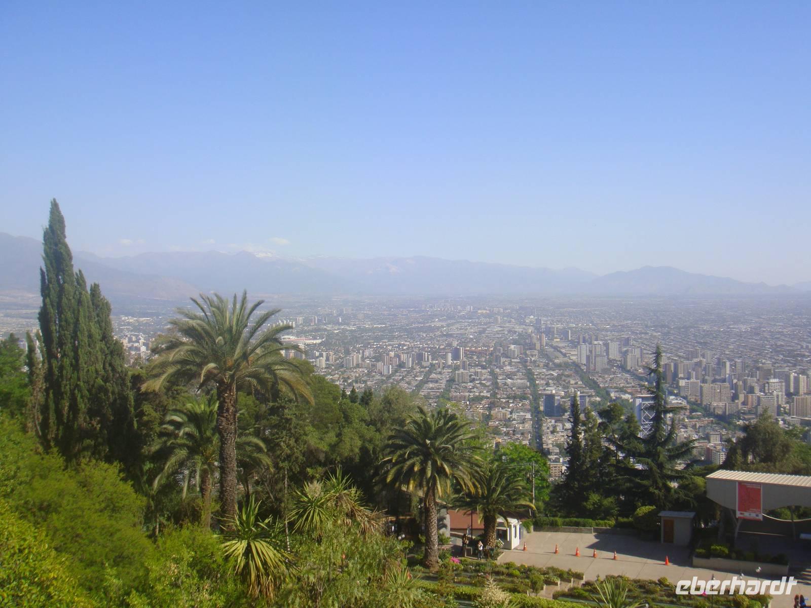 Mit einer Standseilbahn fahren wir auf den beliebten Aussichtspunkt „ Cerro San Cristobal" im Stadtteil Bellavista. Da es das Wetter gut mit uns meint, haben wir einen wunderbaren Ausblick auf die verschieden Stadtteile von Santiago und bekommen einen Überblick von der Größe der Stadt.