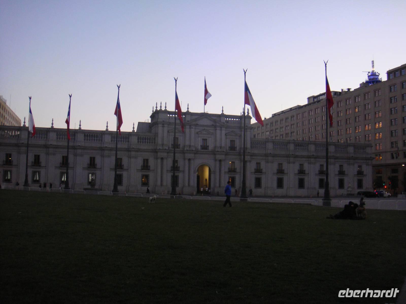 Wir fahren zurück ins Stadtzentrum um im Mercado Central leckersten Fisch zu essen. Mit einem Pisco Sour dem Nationalgetränk stoßen wir auf eine schöne Reise an. Anschließend genießen wir verschieden verschiedene Fischarten, die frischer nicht sein konnten. Das weckt die Lebensgeister und wir nehmen unsere letzten Kräfte für diesen Tag zusammen und folgen Bhavito auf einen kleinen Rundgang durch die Stadt. Über eine Einkaufsstraße, die uns zum Plaza de Armas mit der Kathedrale am Gerichtsgebäude führt gehen wir weiter zum Präsidentenpalast. Dort erläutert uns Bhavito die Geschichte des Putsches. Es hat sich gelohnt. Nun trennen uns nur noch wenige Meter vom Hotel und wir wünschen uns eine Gute Nacht.