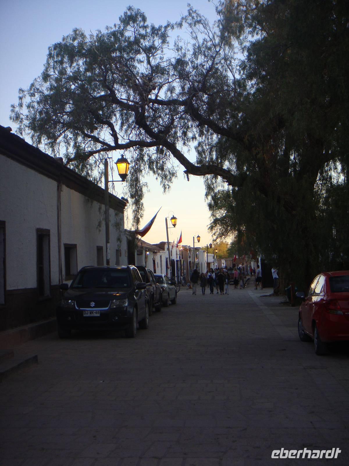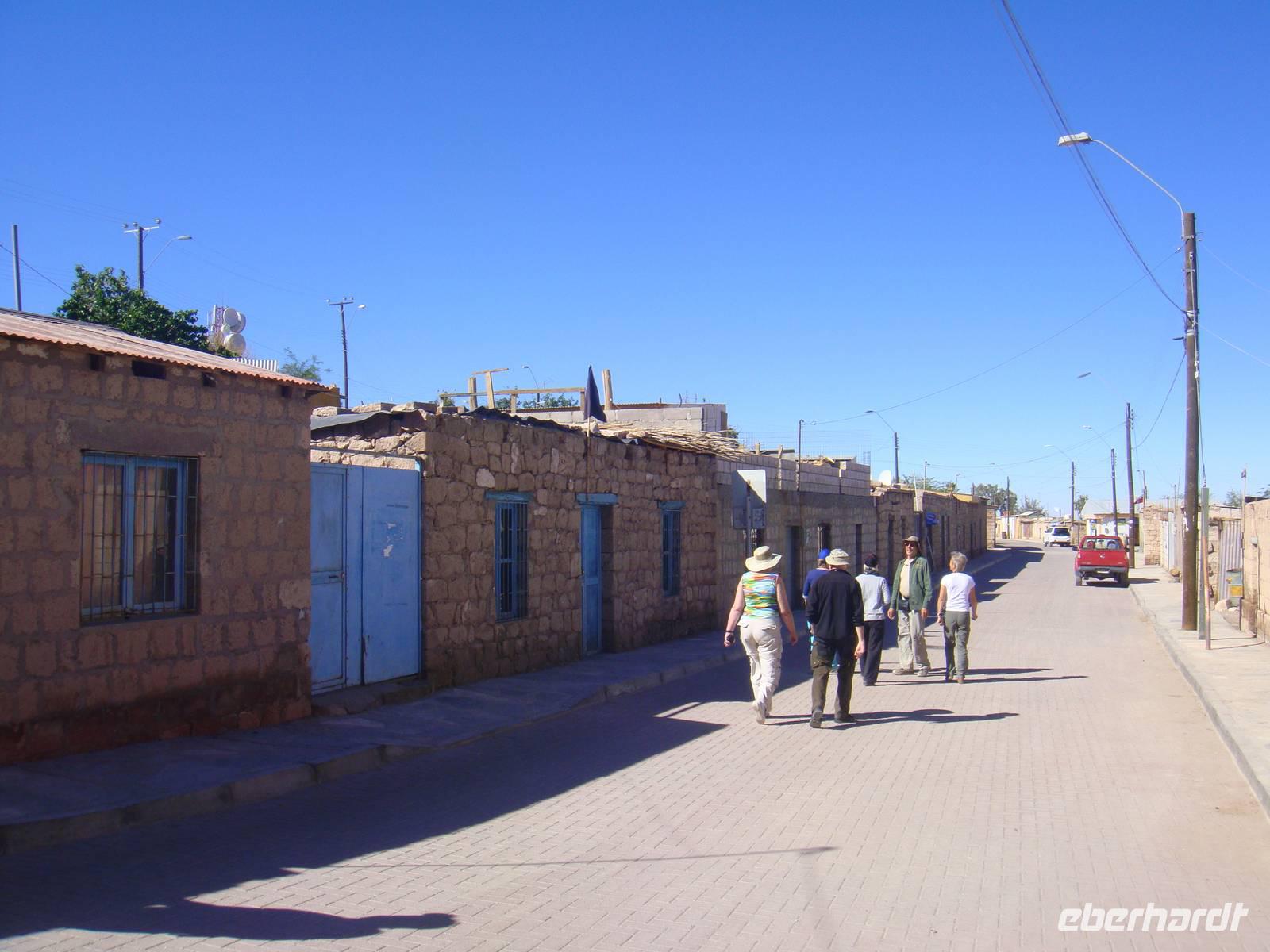 In Calama wohnen die Arbeiter der Kupferminen. Hier befindet sich die weltweit größte Kupfermine. Nach einem kurzen Fotostopp und durchqueren des Dinotal´s erreichen wir das Oasendorf San Pedro de Atacama. Wir beziehen die Zimmer in unserem wirklich sehr hübschen im bungalowartigen Stiel angelegten Hotel und verabreden uns dann um durch die Stadt zu gehen.