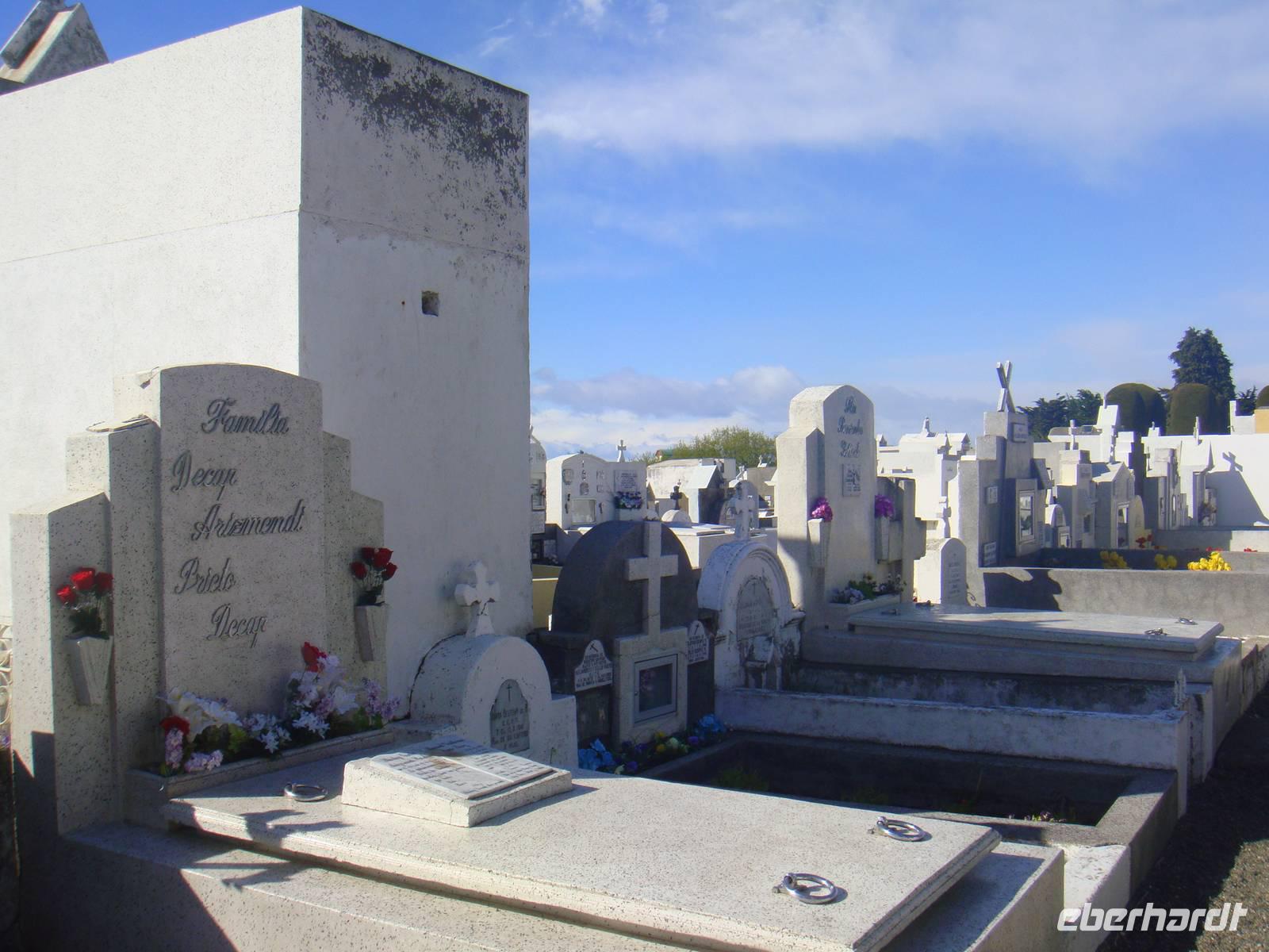 Es geht weiter direkt zum berühmten Friedhof von Punta Arenas. Hier erinnern riesige alte Grabmale an die Zeit der reichen Familien, die hier ihre letzte Ruhestätte gefunden haben. Auch das Grabmal von Sarah Braun ursprünglich aus Russland kommend und ist in Chile eingewandert und zu einer der reichsten Familien gehört hatte können wir sehen. Wir beenden diesen Rundgang und haben noch etwas Zeit uns mit Wasser und anderen Kleinigkeiten zu versorgen. Es zieht uns in die Natur und verlassen Punta Arenas. Auf zur Pinguinkolonie „Seno Otway" Unsere Spannung überhaupt die dort nistenden Magellanpinguine zu sehen stieg enorm an. Aber wir haben Glück und bekommen sie vor unsere Kameras. Wir lassen uns den kräftigen Wind um die Nase wehen und spazieren auf den festgelegten Wegen durch das Gebiet der Nisthöhlen.