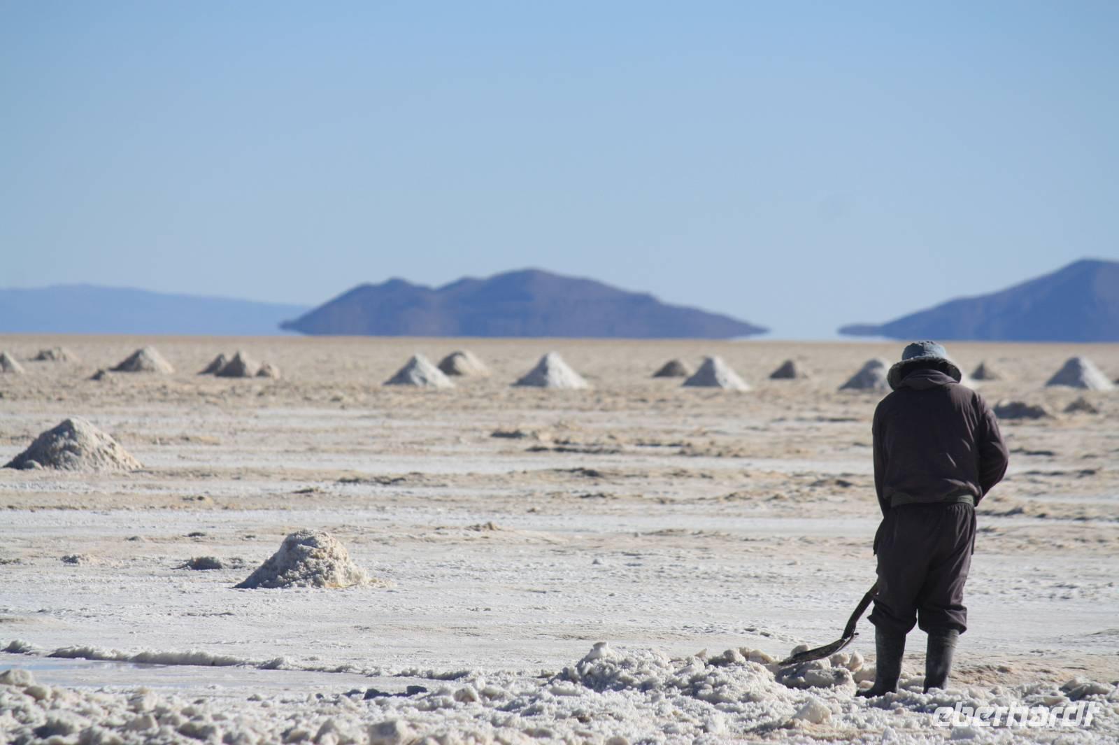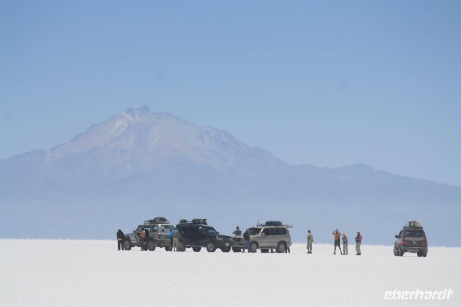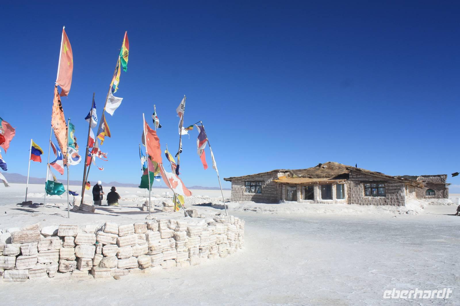 Wieder einigermaßen fitt verlließen wir am Dienstag, den 06.11.2012 Chile und reisten via Hito Cajon nach Bolivien ein. Inmitten von Nichts erwarteten uns nicht nur eine kleine Holzbaracke als Grenzübergang sondern zugleich unsere munteren 5 Jeepfahrer, treue Begleiter für die kommenden 3 Tage. Komplettiert wurde das Team durch Maribel, unsere bolivianische Reiseleiterin. Quirrlig, stets mit Hut gekleidet bleibt sie uns in Erinnerung. Vielmehr allerdings brannten sich die Eindrücke dieses Landes in unsere Köpfe ein. Natur pur zwischen 4.000 und 5.000 Höhenmetern. Farbenpracht soweit das Auge reicht: ob Laguna verde, Laguna salada oder Laguna colorada, Las Damas de Dali oder der überwältigende Salar de Uyuni. In drei Tagen Jeeptour kamen wir aus dem Staunen nicht heraus. Wer kann schon von sich behaupten auf dem über 10.000 km² großen See aus Salz gespeist zu haben oder in einem Hotel aus Salz übernachtet zu haben?! Wahrlich einmalig ...