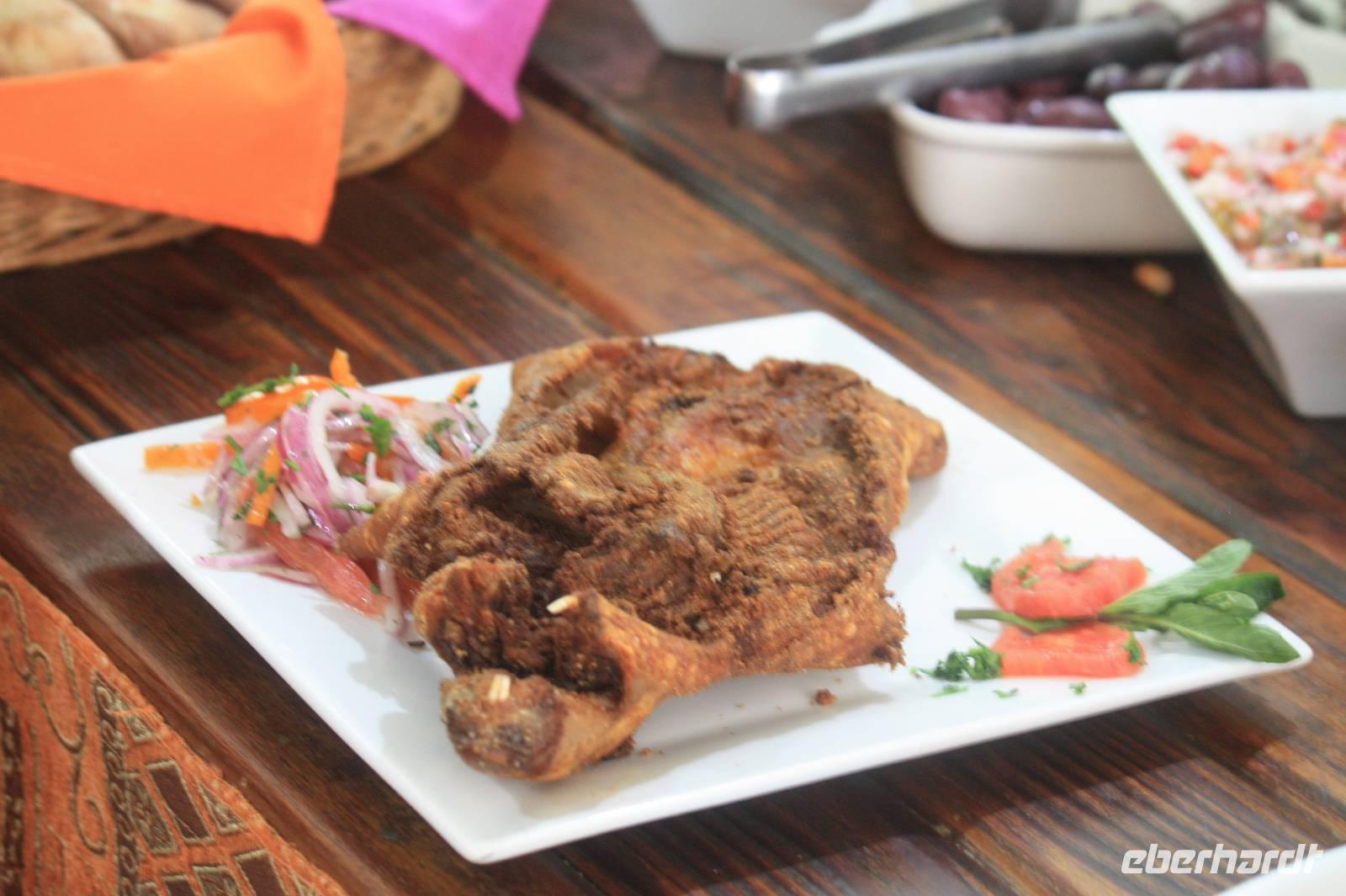 In Peru begrüßte uns César. Mittlerweile war es später Nachmittag, des 14.11.2012. Bergfest! Auf dem Weg nach Puno stimmte er uns auf Peru ein, legte den Grundstein (im wahrsten Sinne des Wortes) für Ruinenstätten und deren Bedeutung und sang mit uns „Alle meine Entchen, ..." auf den schwimmenden Inseln der Uros. Auf unserer 10'stündigen Busfahrt im Inkaexpress durfte er natürlich auch nicht fehlen, um uns exklusiv durch das Museum Lytic in Pukara sowie die Anlage Raqchi und die Kirche Andahuaylillas zu führen.
