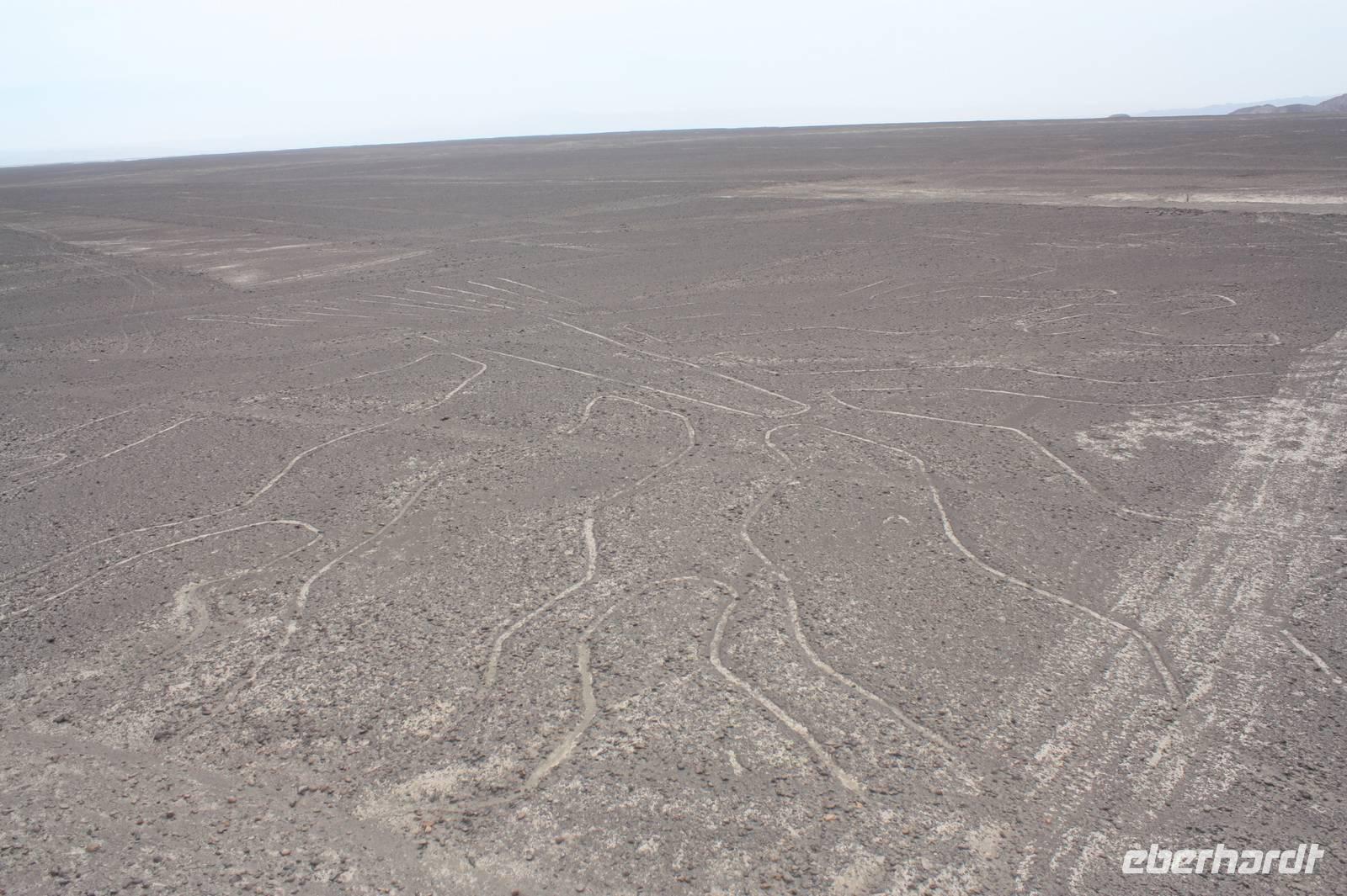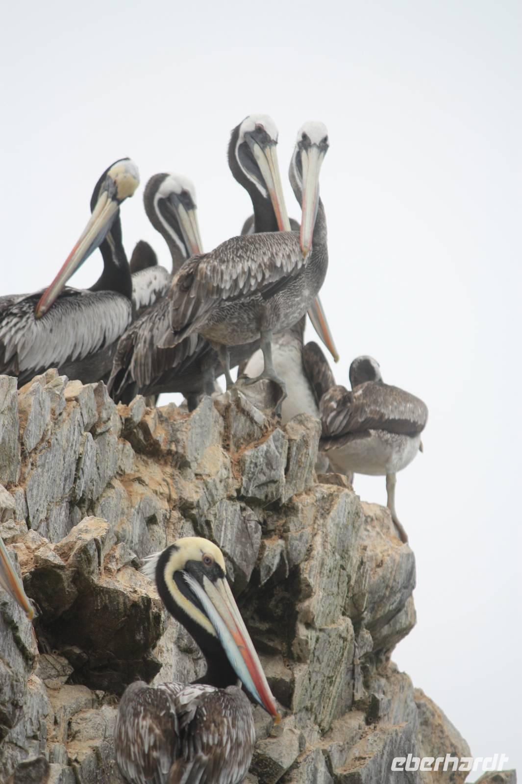 Also, um all das sehen zu können lagen noch quälende 11 Stunden Busfahrt nach Nasca vor uns. Auch wenn wir es nun mit einer der wohl best ausgebautesten Straßen in Peru zu tun hatten, die Panamericana, so sind ca. 570 km kein Pappenstil. Also hieß es Durchhalten, denn morgen erwartete uns das Lebenswerk der Dresdnerin Maria Reiche. Im 30'minütigen Flug über die Nasca Linien schauten wir uns die Scharrbilder wie Kolibri, Affe und Astronaut von oben an. Danach ging es jedoch weiter im Bus, die Pazifikküste entlang um per Boot Sonntagmorgen klein Galapagos einen Besuch abzustatten. Bei trübem Wetter aber einem warmen Lüftchen ging es im Schnellboot geradewegs zu den Ballestas Inseln, wo uns bereits Seelöwen, Humboldt-Pinguine und Blaufußtölpel erwarteten.