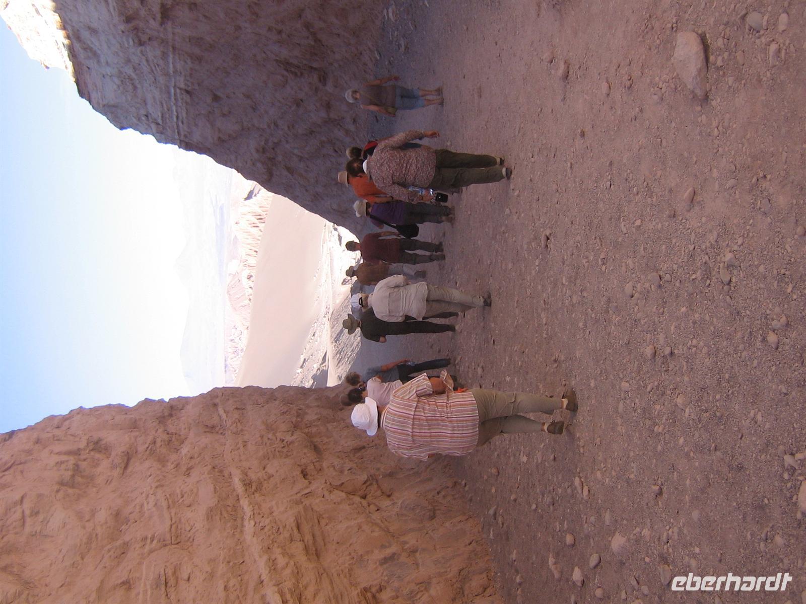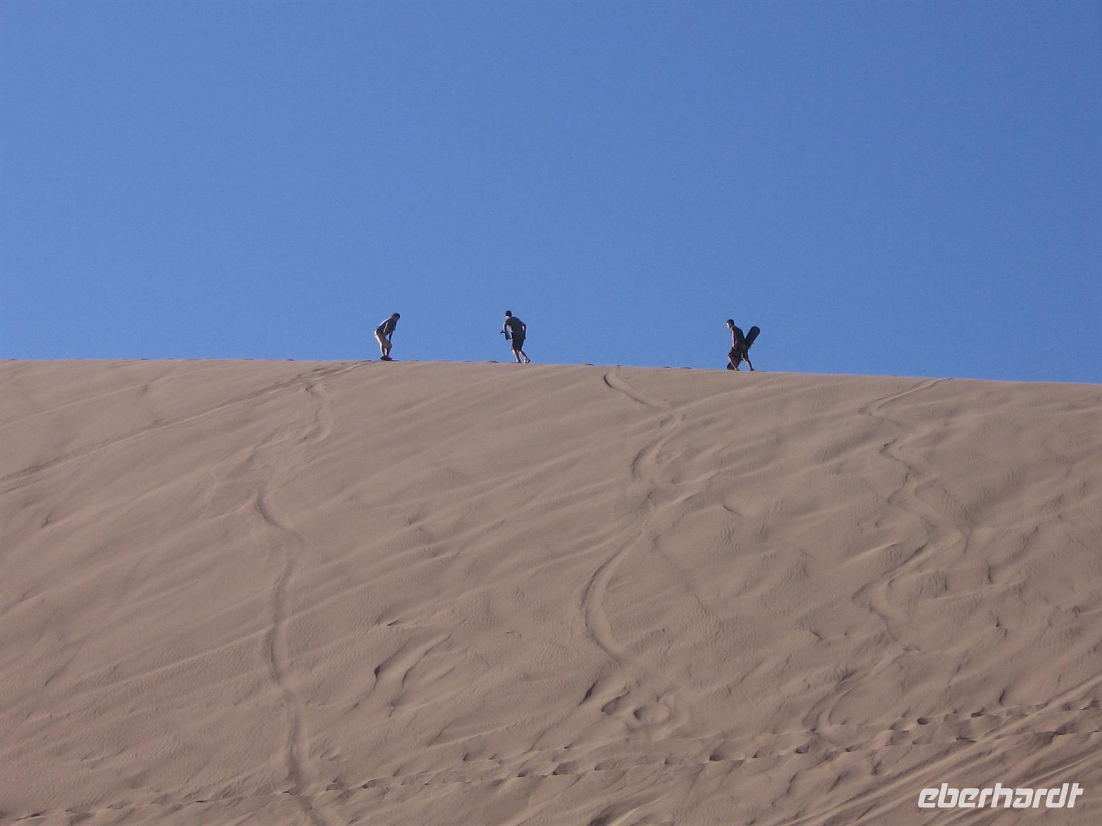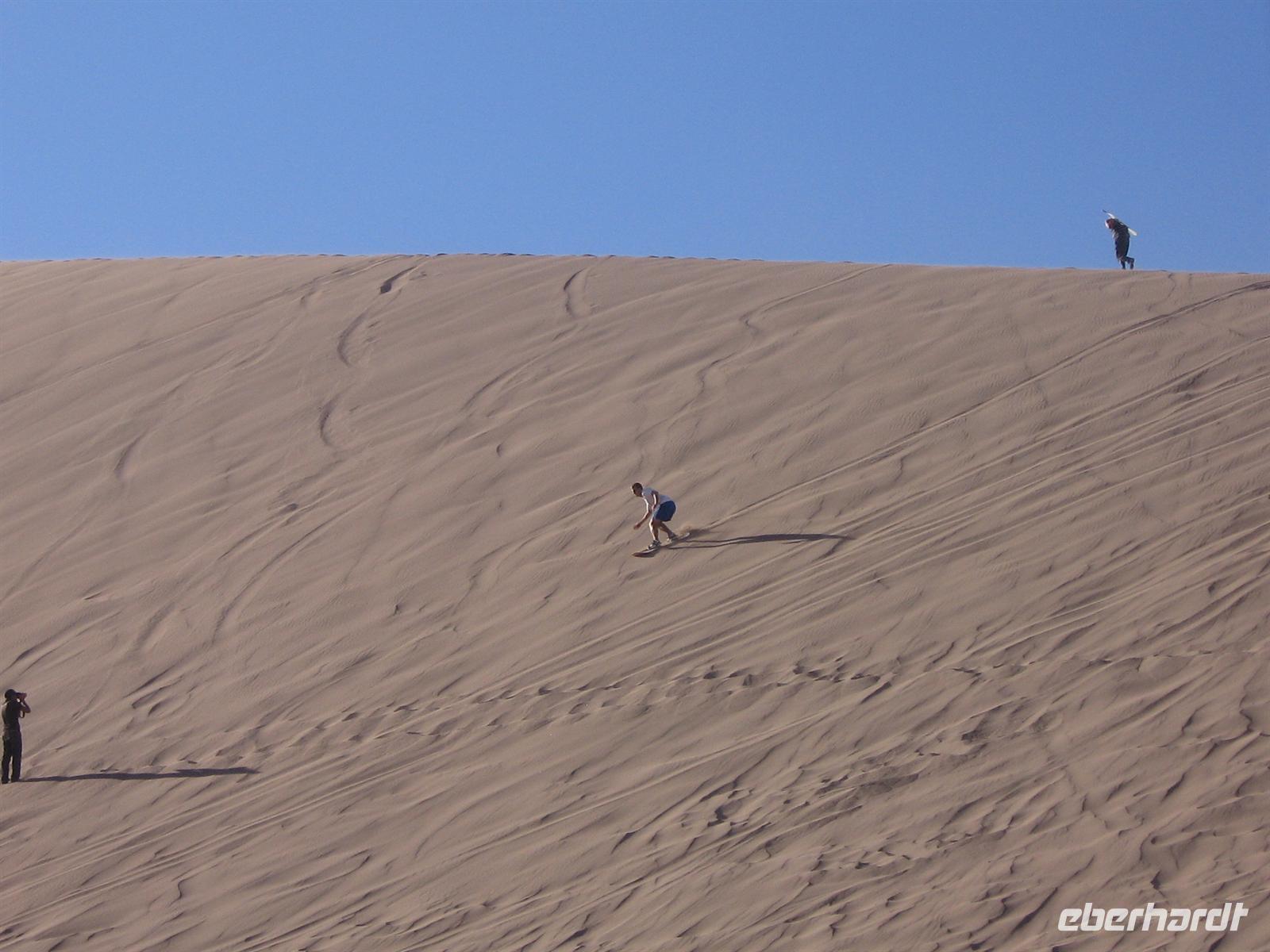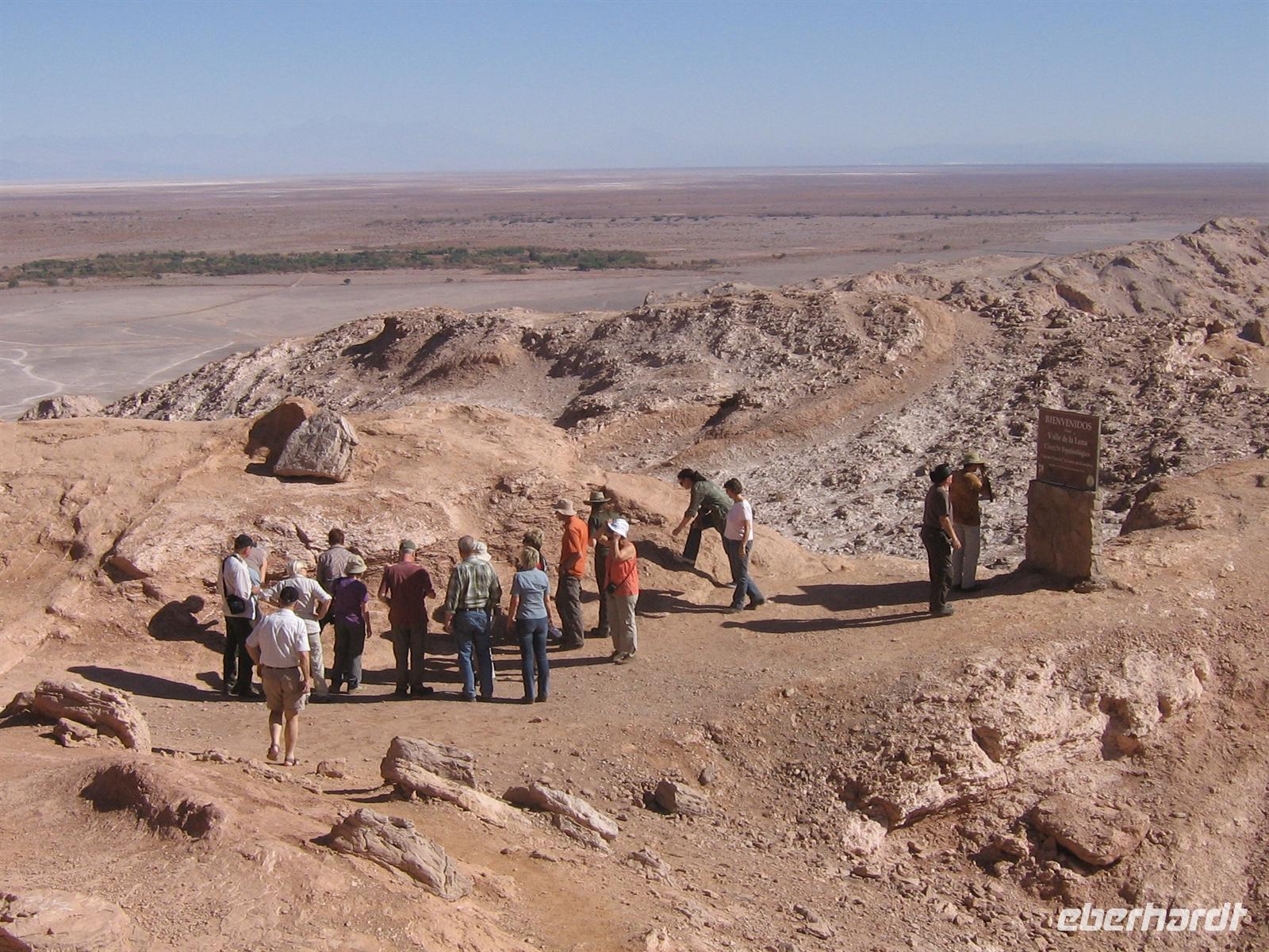 Heute mussten wir früh aufstehen. Bereits 5.30 Uhr war ein kleines Frühstück vorbereitet und 6.00 Uhr fuhren wir zum Flughafen. Die Maschine flog pünktlich nach Calama. Elena wartete bereits auf uns. Willkommen in Chile! Nach 1,5 Stunde erreichten wir San Petro de Atacama. Der Ort ist eine kleine Oasenstadt mitten in der Atacama-Wüste. Im Restaurant „De Sole“ ließen wir uns das Mittagessen schmecken. Anschließend hatten wir etwas Zeit, die Stadt zu entdecken und den Handwerkermarkt zu besuchen. 16.30 Uhr fuhren wir in das Dinosaurier-Tal. Durch Erosion sind die Berge so ausgewaschen, dass diese wie die Rücken der Dinosaurier aussahen. Anschließend besuchten wir das Marstal und unternahmen eine kleine Wanderung von ca. 40 Minuten. Wir bestaunten nicht nur die bizzarre, in Millionen von Jahren entstandene Landschaft, sondern schauten auch den Dünen-Surfern zu. Anschließend fuhren wir zum Sonnenuntergang in das Mondtal. Nachdem wir die Düne erklommen hatten, erfreuten wir uns an einem faszinierenden Panoramablick in alle Himmelsrichtungen. Wir beobachteten die Schatten- und Farbspiele in der Landschaft. Nun wurde es etwas kühl und wir fuhren zurück zum Hotel, wo eine kleine Überraschung auf uns wartete. Auf der Terrasse des Hotels wurden uns kleine Snacks und Pisco Sauer gereicht. Es war ein sehr schöner Abend in lustiger Runde.