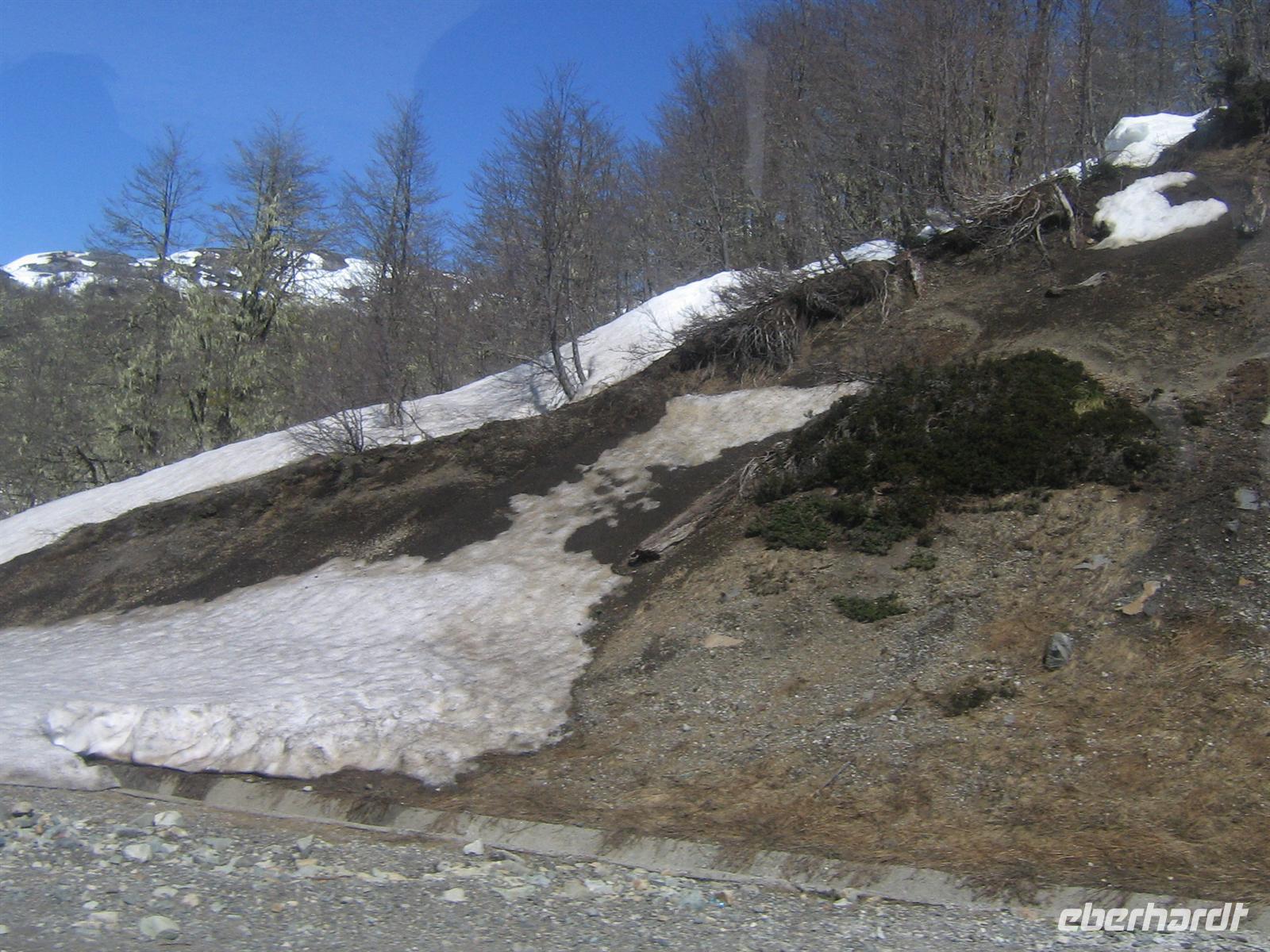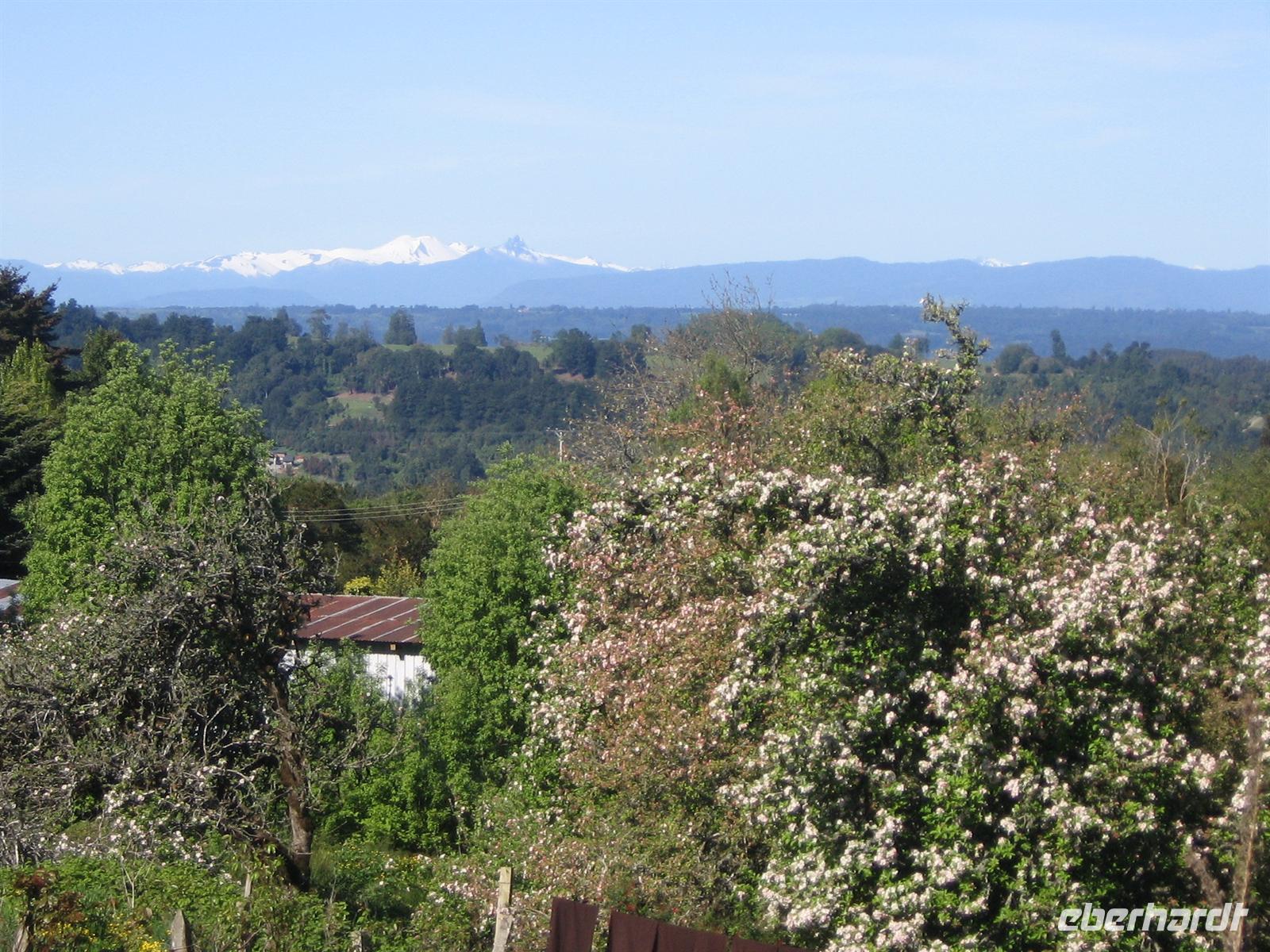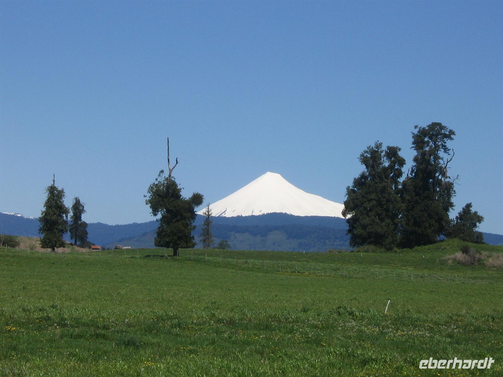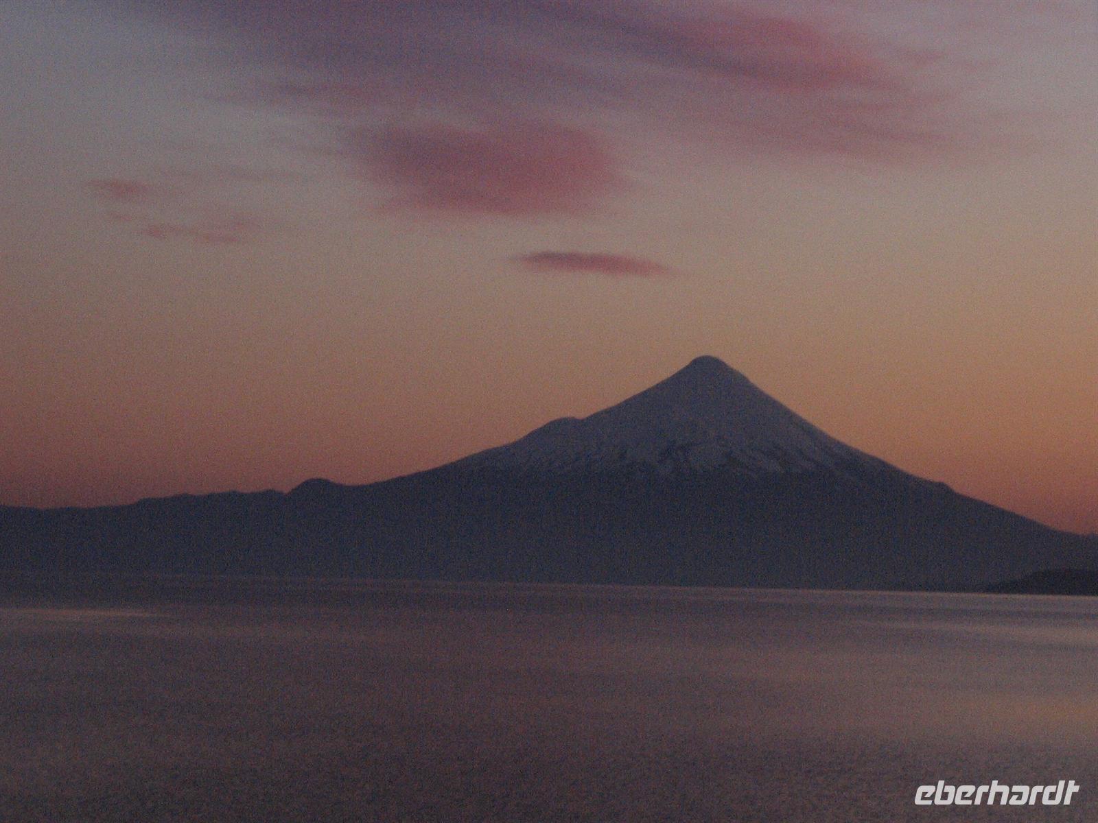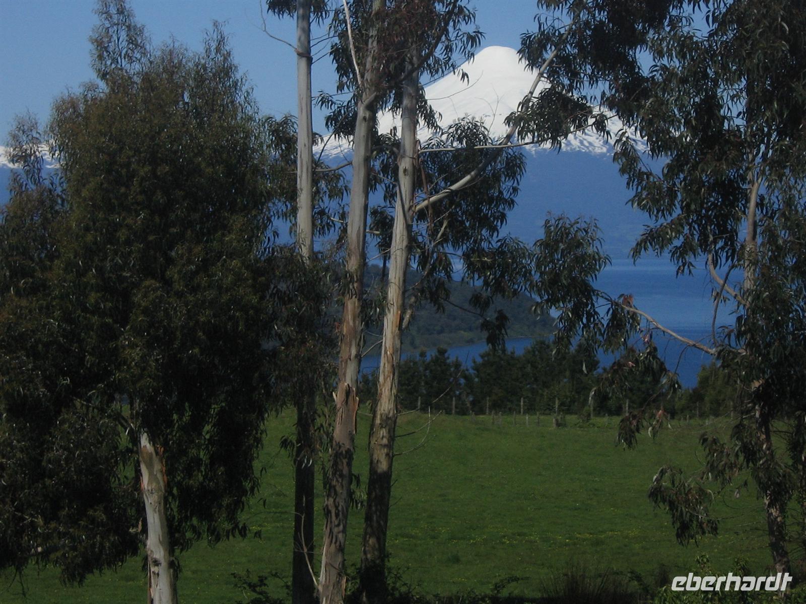 Heute fuhren wir bei strahlend blauem Himmel zur argentinischen Grenze. Es verlief alles reibungslos. Wir erreichten den Pass und befanden uns an der Schneegrenze. Einige konnten es nicht lassen und veranstalteten eine Schneeballschlacht. Auch an der chilenischen Grenze hatten wir Glück. Das ganze Gepäck wurde durchleuchtet. Wir setzten unser schönstes Lächeln auf und ohne Probleme konnten wir die Grenze passieren. Oh Schreck auf einmal war unsere Isolde weg. Nach einigen hundert Metern wurde Sie vermisst. Schnell fuhren wir zurück zur Grenze und nahmen eine glückliche Isolde wieder auf. Wir nutzten das schöne Wetter und legten bei jeder sich bietenden Gelegenheit einen Fotostopp ein. Es boten sich uns sehr schöne Ausblicke auf die Vulkane und die Seen. Etwas spät erreichten wir das Restaurant „Vogelscheuche“. Von außen sah es eigentlich nicht wie ein gemütliches Lokal aus. Aber wir wurden eines Besseren belehrt. Besitzer des Restaurants sind deutsche Auswandern. Es gab ein sehr gutes Buffet mit verschiedenen Salaten, Beilagen und als Spezialität am Spieß gebratenes Wildschein. Ein leckeres Dessertbuffet mit frischem Kaffee rundete das sehr gute Essen ab. Zur Verdauung luden wir die Gäste zu einem argentinischen Whisky mit sehr schönem Blick auf die Vulkane ein. Wir erreichen Porte Verde - unser Hotel lag direkt am Llanquihue-See und war nicht weit vom Zentrum entfernt. Wir hatten Zeit für einen Bummel und suchten schöne Fotomotive. Einige Gäste trafen sich am Abend zu einem Pisco. Ein sehr schöner Tag ging zu Ende.