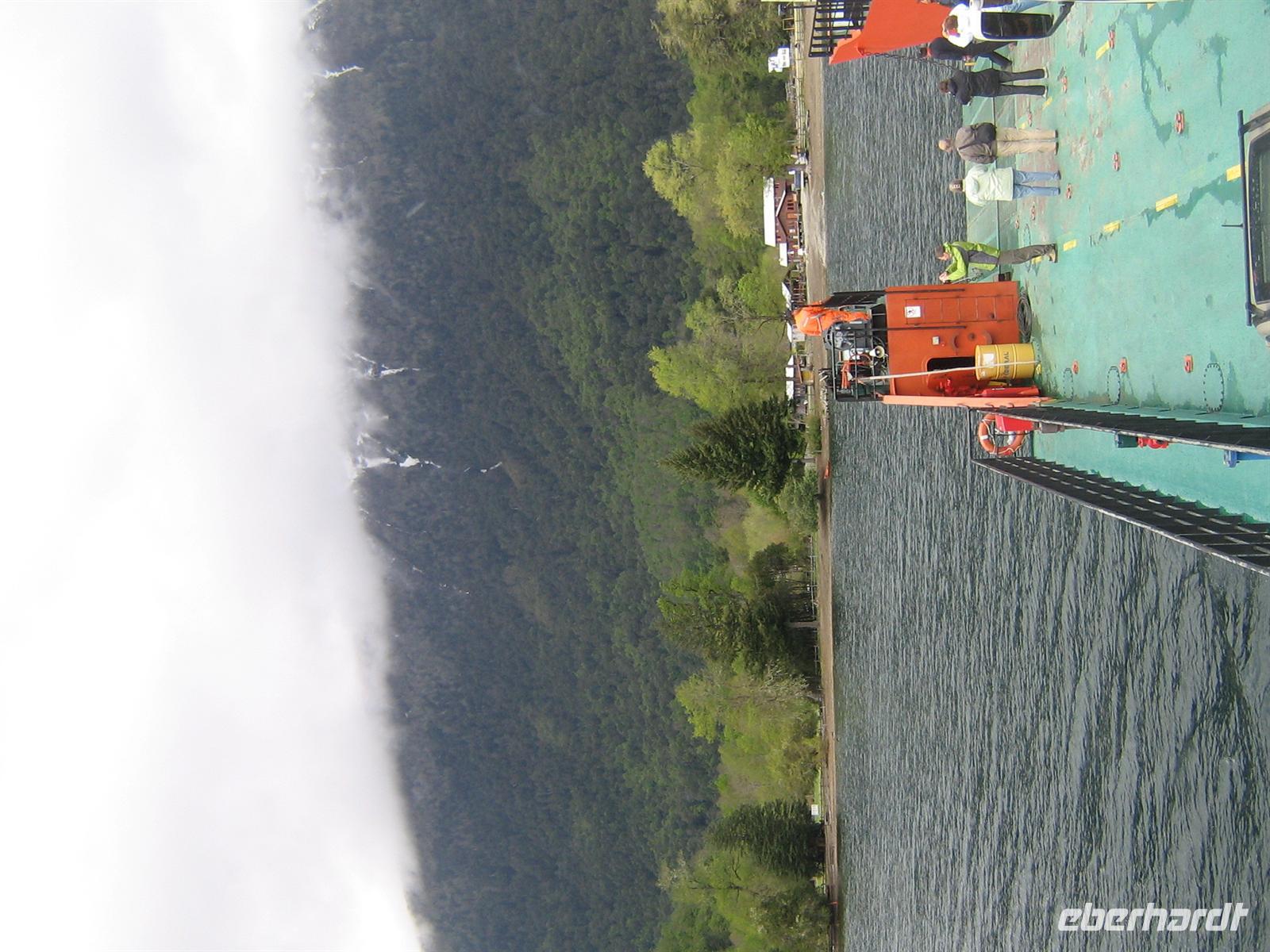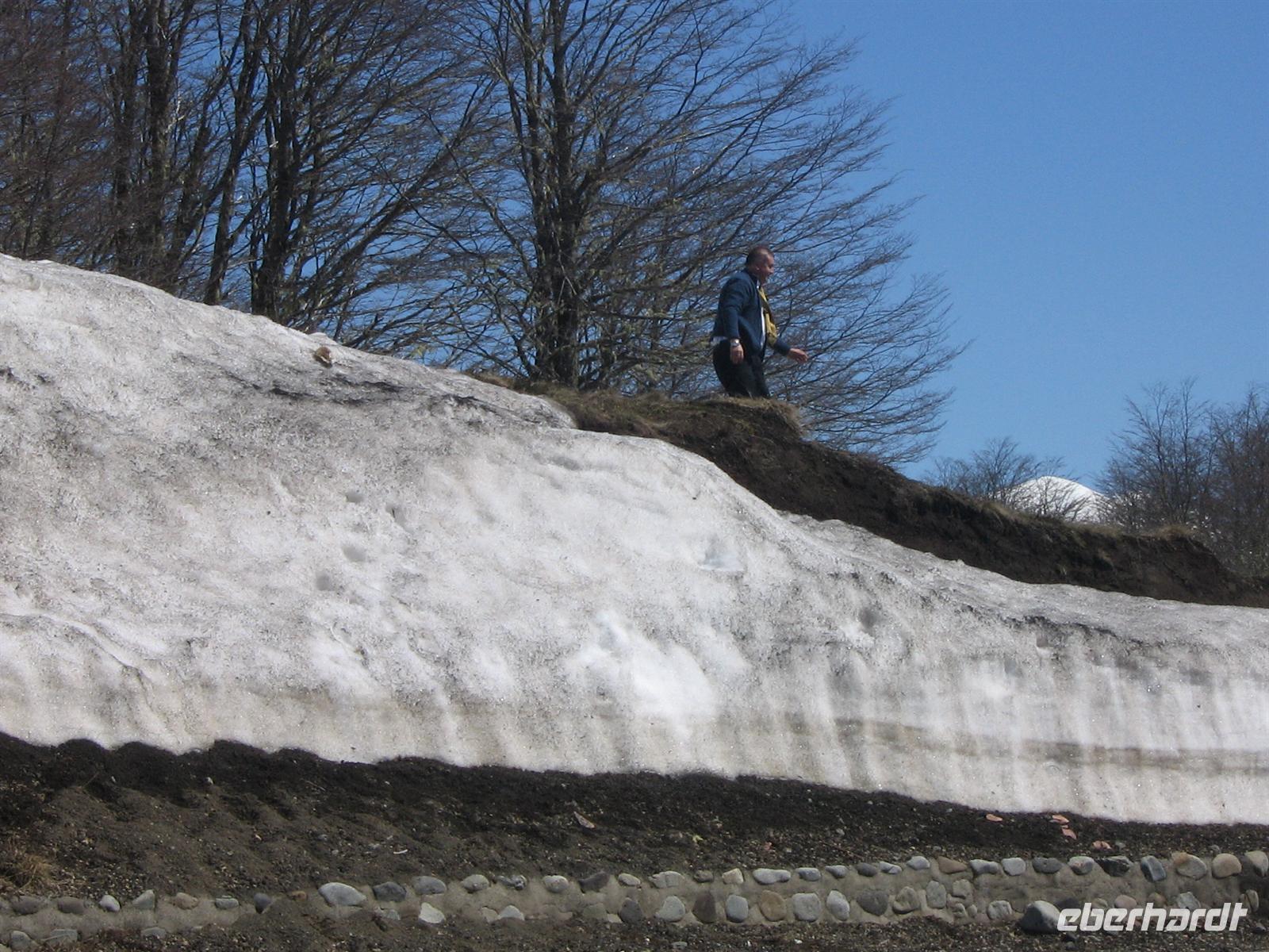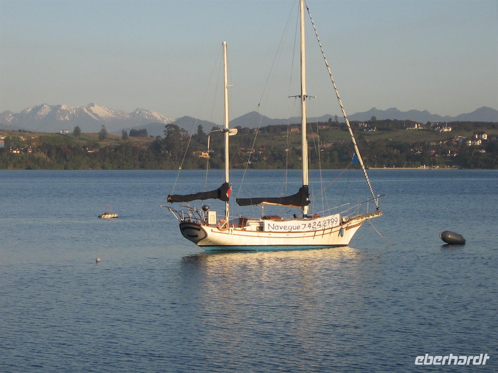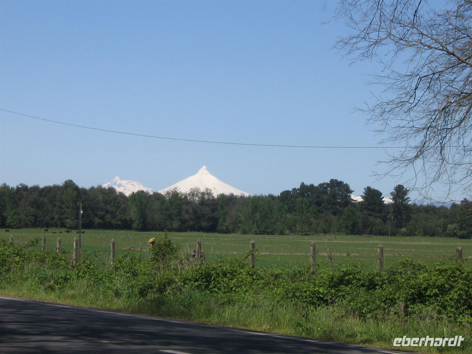 Heute fuhren wir bei strahlend blauem Himmel zur argentinischen Grenze. Es verlief alles reibungslos. Wir erreichten den Pass und befanden uns an der Schneegrenze. Einige konnten es nicht lassen und veranstalteten eine Schneeballschlacht. Auch an der chilenischen Grenze hatten wir Glück. Das ganze Gepäck wurde durchleuchtet. Wir setzten unser schönstes Lächeln auf und ohne Probleme konnten wir die Grenze passieren. Oh Schreck auf einmal war unsere Isolde weg. Nach einigen hundert Metern wurde Sie vermisst. Schnell fuhren wir zurück zur Grenze und nahmen eine glückliche Isolde wieder auf. Wir nutzten das schöne Wetter und legten bei jeder sich bietenden Gelegenheit einen Fotostopp ein. Es boten sich uns sehr schöne Ausblicke auf die Vulkane und die Seen. Etwas spät erreichten wir das Restaurant „Vogelscheuche“. Von außen sah es eigentlich nicht wie ein gemütliches Lokal aus. Aber wir wurden eines Besseren belehrt. Besitzer des Restaurants sind deutsche Auswandern. Es gab ein sehr gutes Buffet mit verschiedenen Salaten, Beilagen und als Spezialität am Spieß gebratenes Wildschein. Ein leckeres Dessertbuffet mit frischem Kaffee rundete das sehr gute Essen ab. Zur Verdauung luden wir die Gäste zu einem argentinischen Whisky mit sehr schönem Blick auf die Vulkane ein. Wir erreichen Porte Verde - unser Hotel lag direkt am Llanquihue-See und war nicht weit vom Zentrum entfernt. Wir hatten Zeit für einen Bummel und suchten schöne Fotomotive. Einige Gäste trafen sich am Abend zu einem Pisco. Ein sehr schöner Tag ging zu Ende.