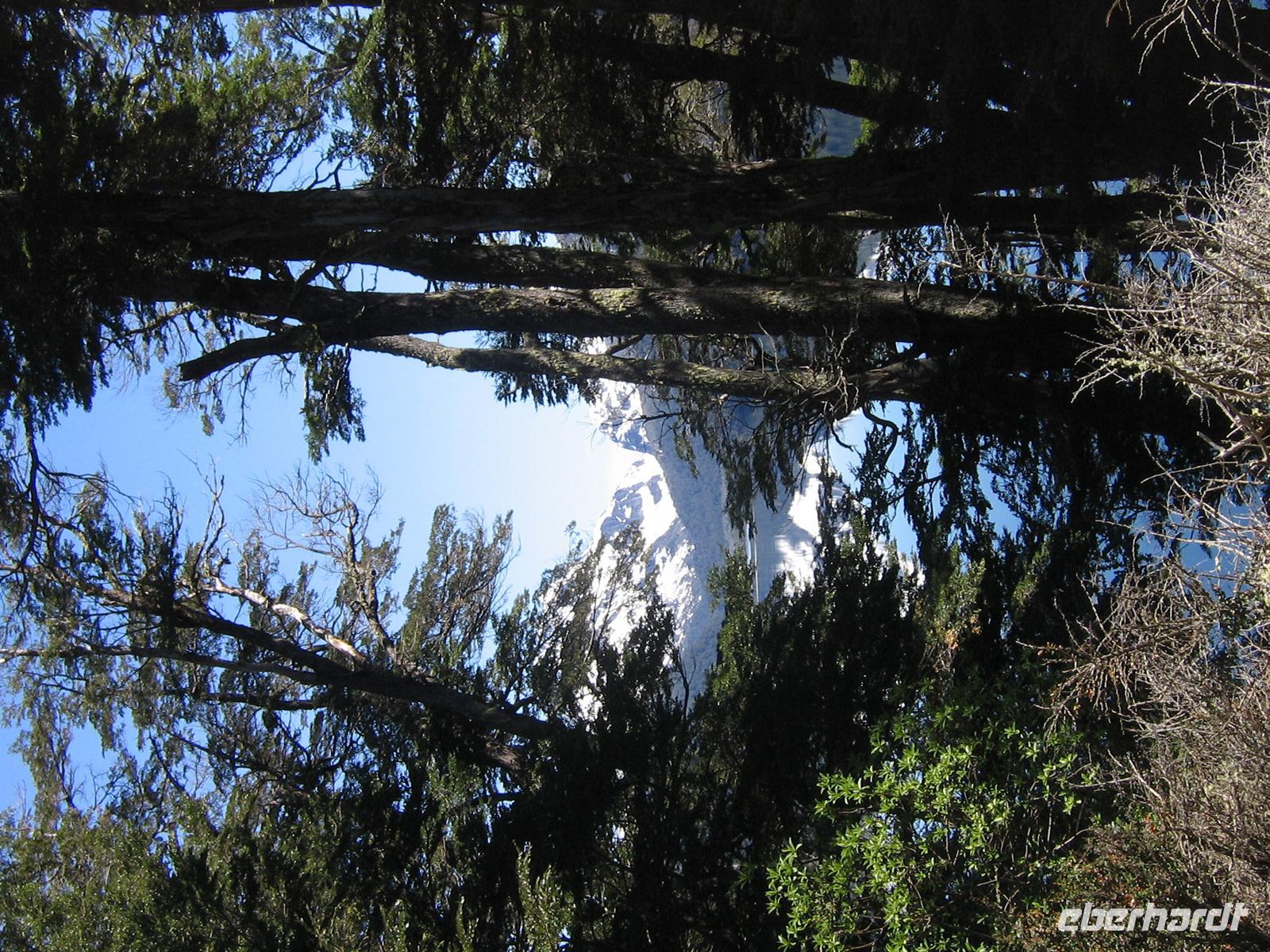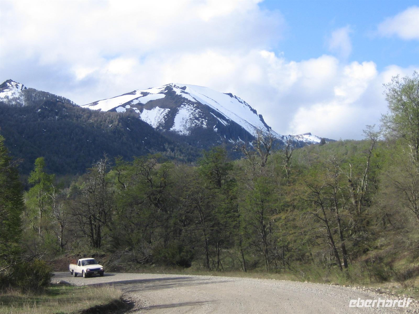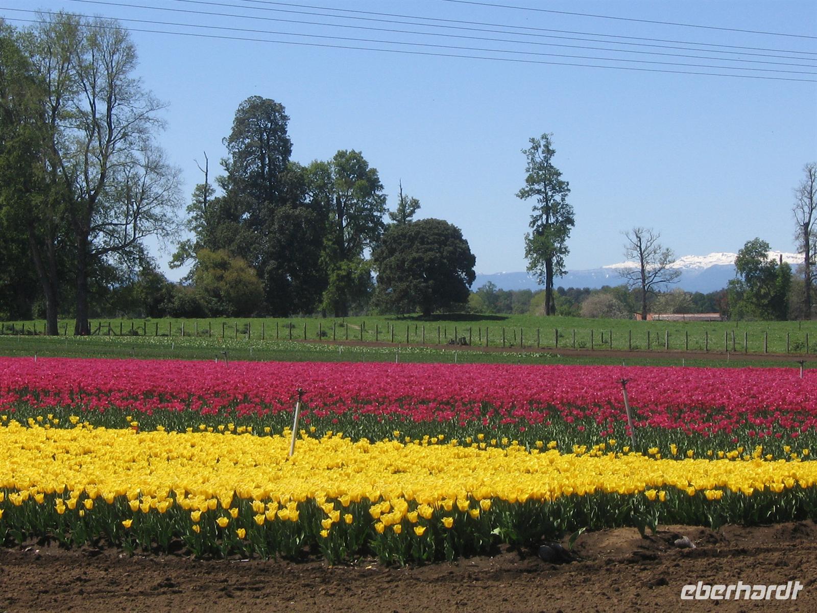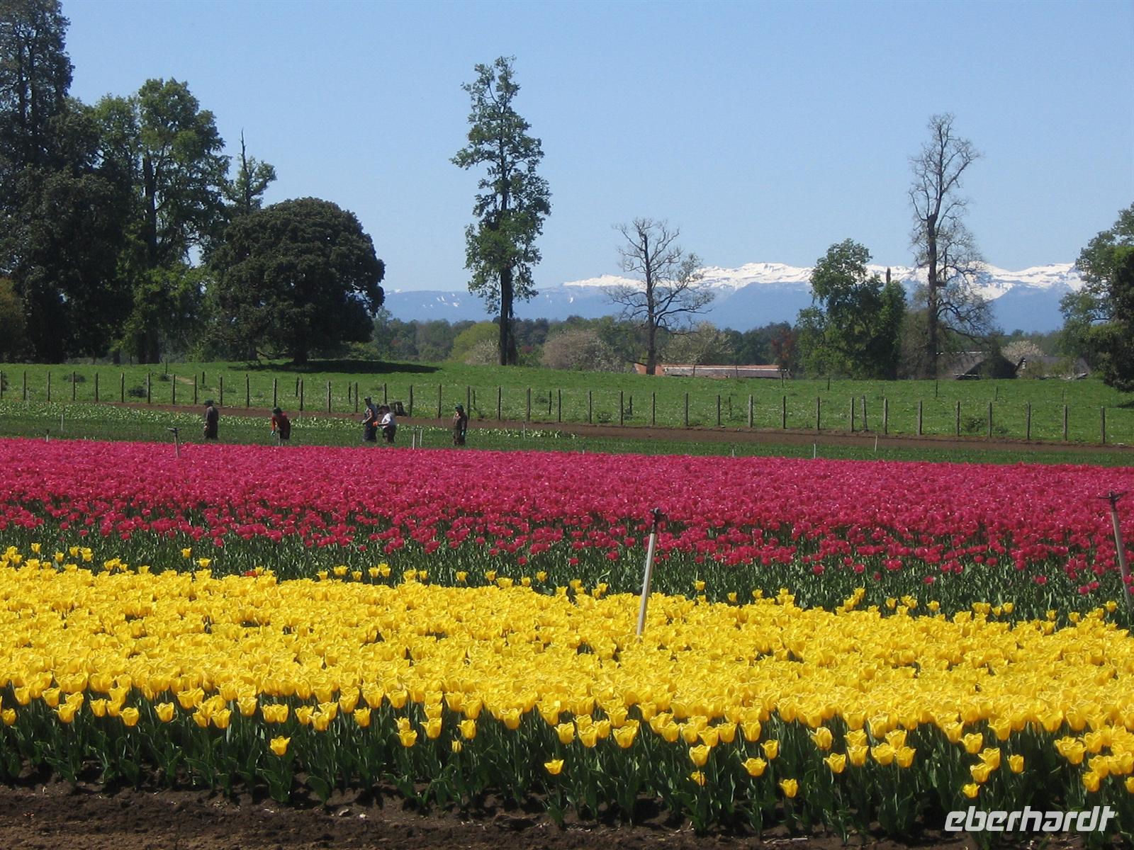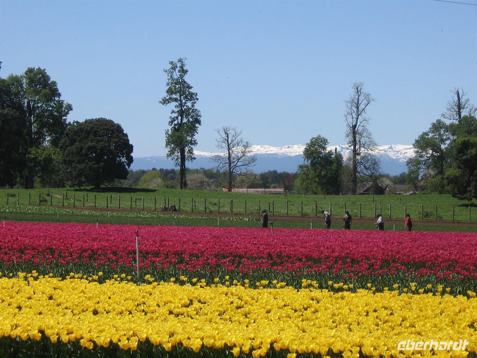 Heute fuhren wir bei strahlend blauem Himmel zur argentinischen Grenze. Es verlief alles reibungslos. Wir erreichten den Pass und befanden uns an der Schneegrenze. Einige konnten es nicht lassen und veranstalteten eine Schneeballschlacht. Auch an der chilenischen Grenze hatten wir Glück. Das ganze Gepäck wurde durchleuchtet. Wir setzten unser schönstes Lächeln auf und ohne Probleme konnten wir die Grenze passieren. Oh Schreck auf einmal war unsere Isolde weg. Nach einigen hundert Metern wurde Sie vermisst. Schnell fuhren wir zurück zur Grenze und nahmen eine glückliche Isolde wieder auf. Wir nutzten das schöne Wetter und legten bei jeder sich bietenden Gelegenheit einen Fotostopp ein. Es boten sich uns sehr schöne Ausblicke auf die Vulkane und die Seen. Etwas spät erreichten wir das Restaurant „Vogelscheuche“. Von außen sah es eigentlich nicht wie ein gemütliches Lokal aus. Aber wir wurden eines Besseren belehrt. Besitzer des Restaurants sind deutsche Auswandern. Es gab ein sehr gutes Buffet mit verschiedenen Salaten, Beilagen und als Spezialität am Spieß gebratenes Wildschein. Ein leckeres Dessertbuffet mit frischem Kaffee rundete das sehr gute Essen ab. Zur Verdauung luden wir die Gäste zu einem argentinischen Whisky mit sehr schönem Blick auf die Vulkane ein. Wir erreichen Porte Verde - unser Hotel lag direkt am Llanquihue-See und war nicht weit vom Zentrum entfernt. Wir hatten Zeit für einen Bummel und suchten schöne Fotomotive. Einige Gäste trafen sich am Abend zu einem Pisco. Ein sehr schöner Tag ging zu Ende.