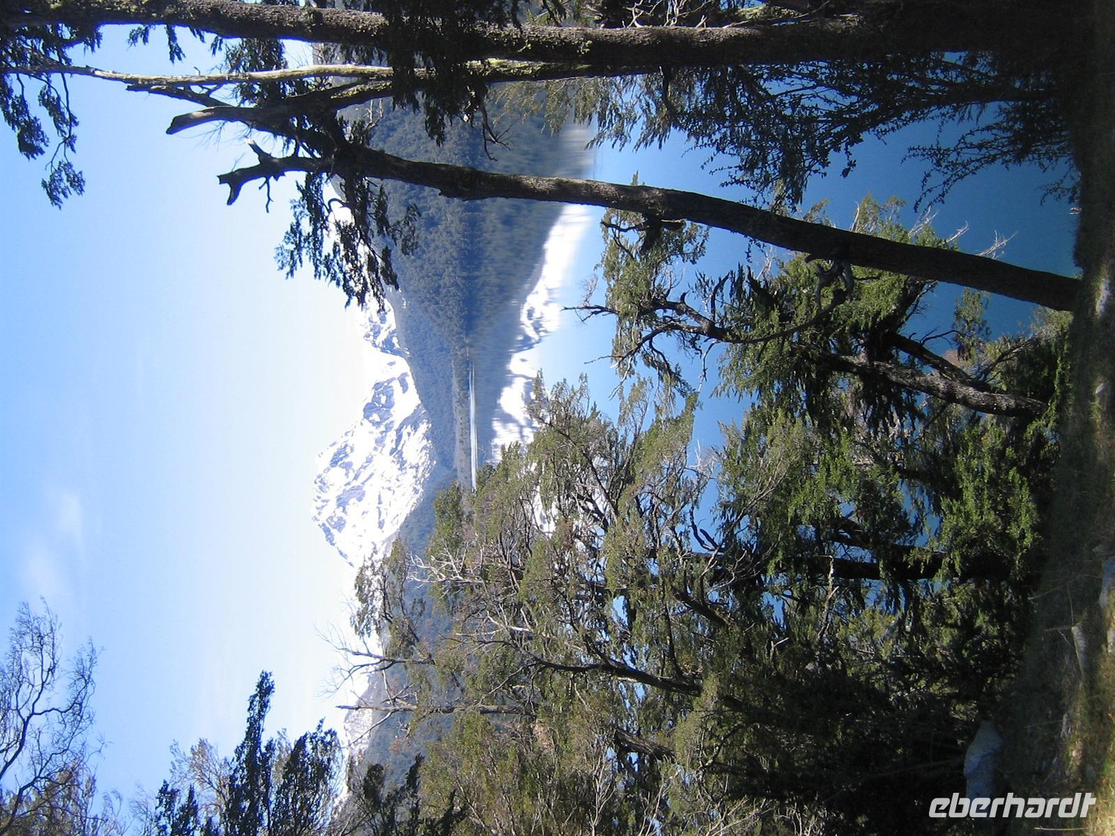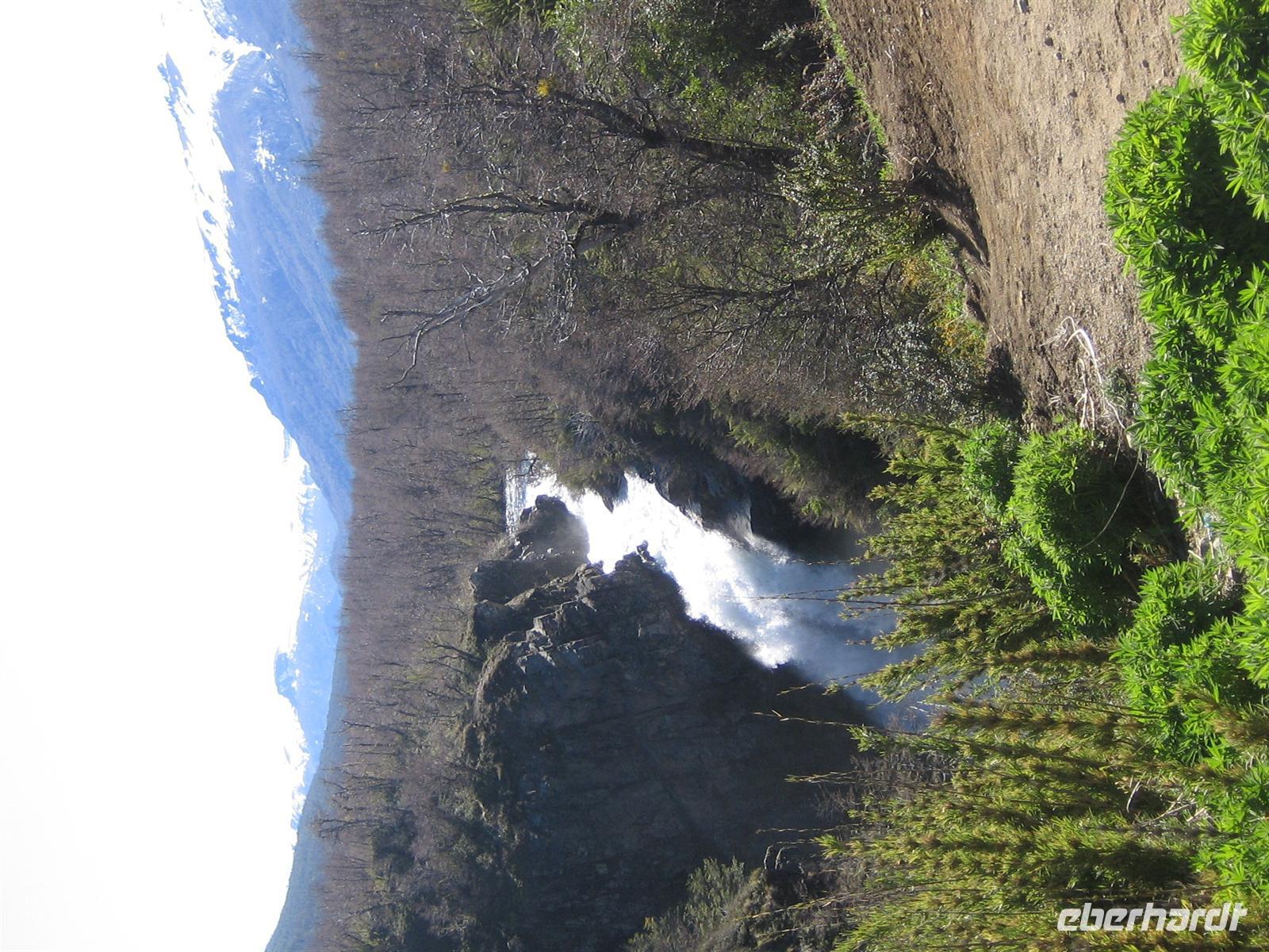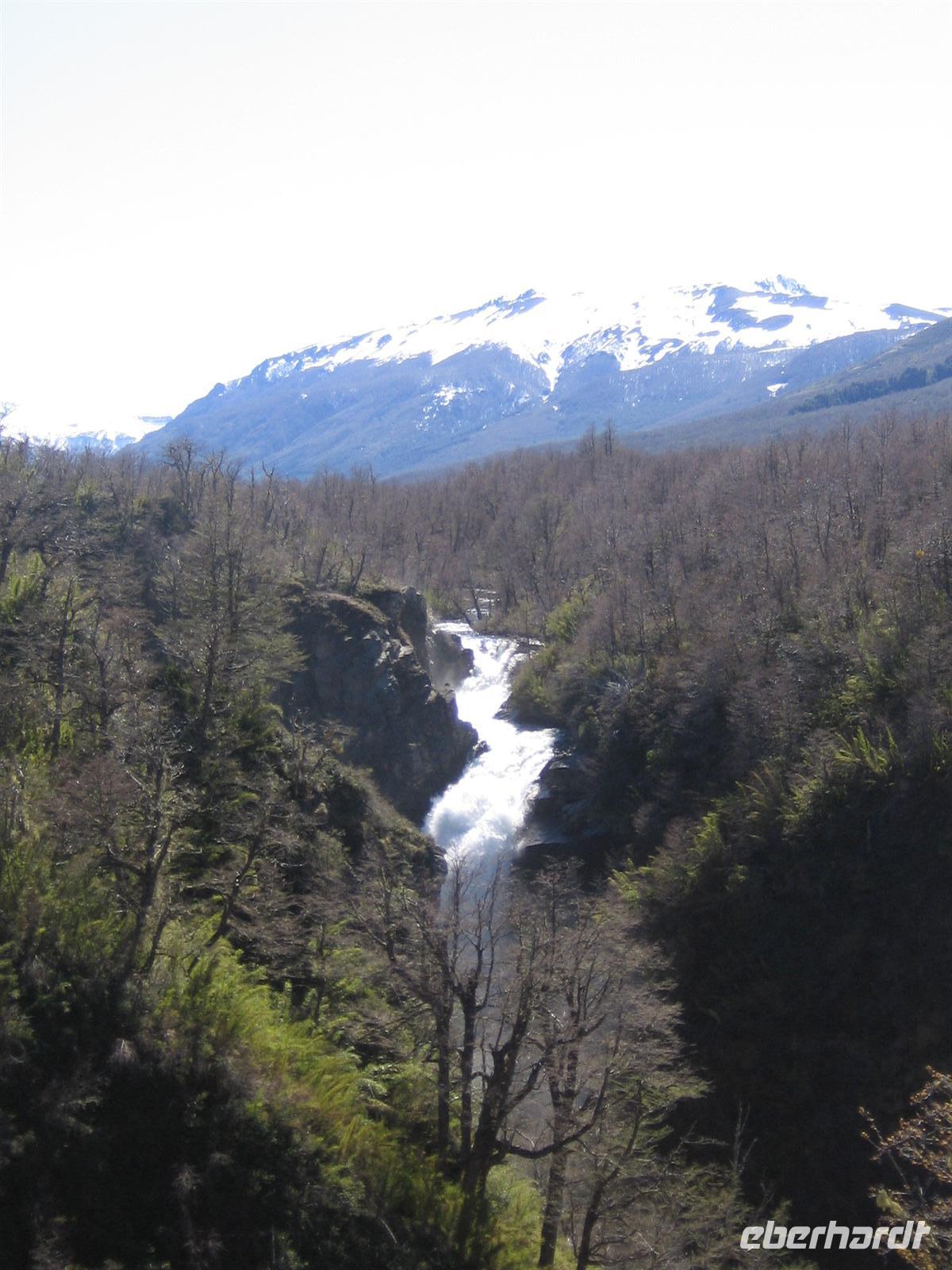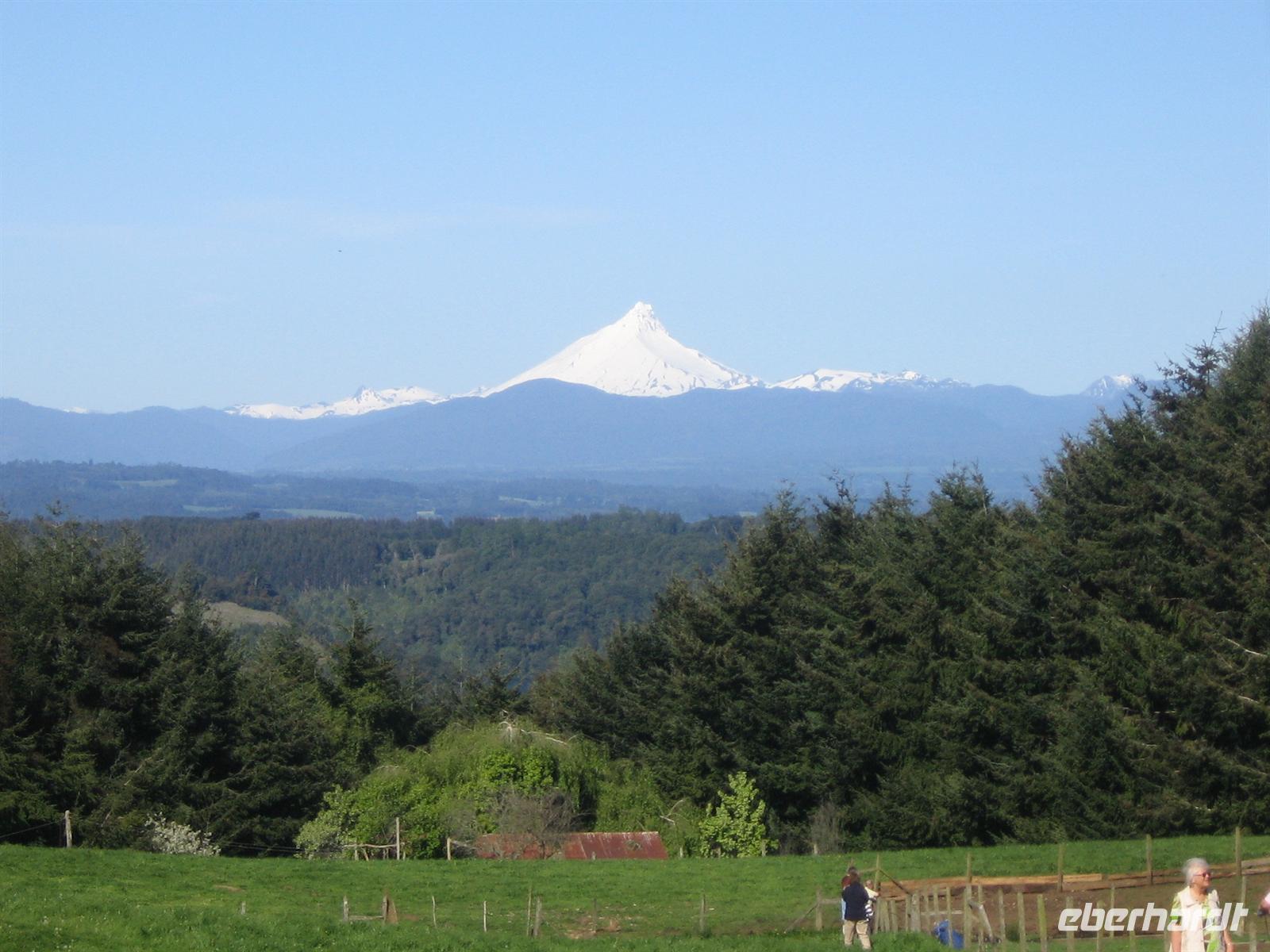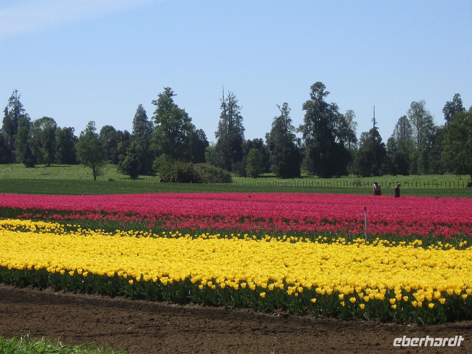 Heute fuhren wir bei strahlend blauem Himmel zur argentinischen Grenze. Es verlief alles reibungslos. Wir erreichten den Pass und befanden uns an der Schneegrenze. Einige konnten es nicht lassen und veranstalteten eine Schneeballschlacht. Auch an der chilenischen Grenze hatten wir Glück. Das ganze Gepäck wurde durchleuchtet. Wir setzten unser schönstes Lächeln auf und ohne Probleme konnten wir die Grenze passieren. Oh Schreck auf einmal war unsere Isolde weg. Nach einigen hundert Metern wurde Sie vermisst. Schnell fuhren wir zurück zur Grenze und nahmen eine glückliche Isolde wieder auf. Wir nutzten das schöne Wetter und legten bei jeder sich bietenden Gelegenheit einen Fotostopp ein. Es boten sich uns sehr schöne Ausblicke auf die Vulkane und die Seen. Etwas spät erreichten wir das Restaurant „Vogelscheuche“. Von außen sah es eigentlich nicht wie ein gemütliches Lokal aus. Aber wir wurden eines Besseren belehrt. Besitzer des Restaurants sind deutsche Auswandern. Es gab ein sehr gutes Buffet mit verschiedenen Salaten, Beilagen und als Spezialität am Spieß gebratenes Wildschein. Ein leckeres Dessertbuffet mit frischem Kaffee rundete das sehr gute Essen ab. Zur Verdauung luden wir die Gäste zu einem argentinischen Whisky mit sehr schönem Blick auf die Vulkane ein. Wir erreichen Porte Verde - unser Hotel lag direkt am Llanquihue-See und war nicht weit vom Zentrum entfernt. Wir hatten Zeit für einen Bummel und suchten schöne Fotomotive. Einige Gäste trafen sich am Abend zu einem Pisco. Ein sehr schöner Tag ging zu Ende.