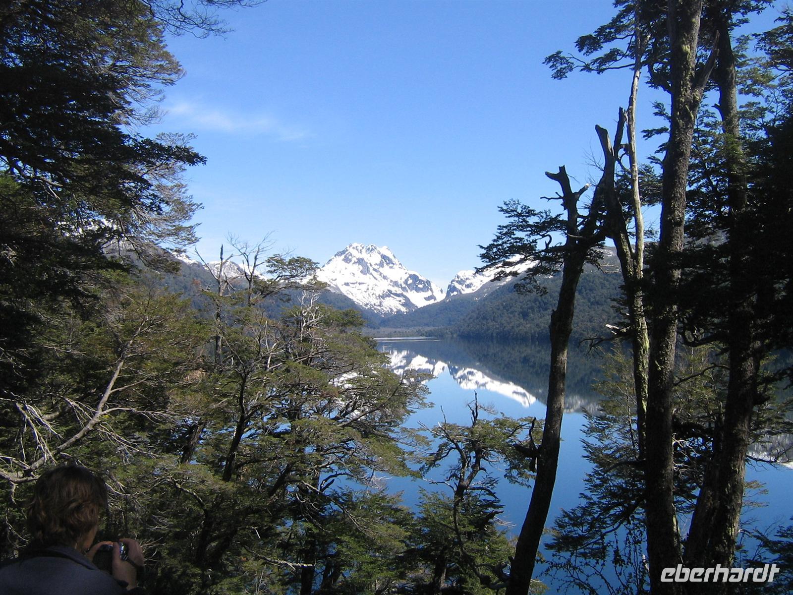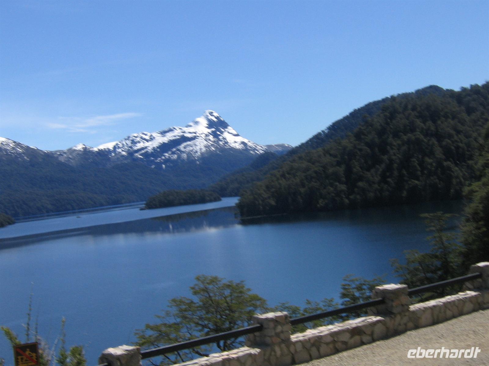 Heute fuhren wir durch das Siebenseen-Gebiet. Die Sonne lacht - nehme Blende acht. Ein wunderschöner Tag mit blauem Himmel und Sonneschein erwartete uns. Eine sehr schöne Landschaft mit verschiedenen Seen und schneebedeckten Bergen, die sich wundervoll in den Seen spiegelten, konnte uns begeistern. Es waren Postkartenmotive, die man nur glaubt, wenn man sie selbst gesehen hat. Wir erreichten einen Campingplatz direkt an einem See mit Blick auf die schneebedeckten Berge und nutzten die Gelegenheit, unserem heutigen Geburtstagskind Monika zu gratulieren. Schnell war der Tisch mit Blumen dekoriert und das Geschenk überreicht. Wir sangen ein Geburtstagslied und stießen gemeinsam mit einem Glas Rotwein an - eine gelungene Überraschung! Weiter führte unsere Fahrt nach Bariloche. Auch hier befindet sich das Hotel direkt im Zentrum und lädt zu einem Bummel ein. Das Abendessen wurde heute in einer italienischen Trattioria serviert. Nach einem kleinen Spaziergang erreichten wir das Restaurant und Monika lud uns zu einem Cocktail ein.