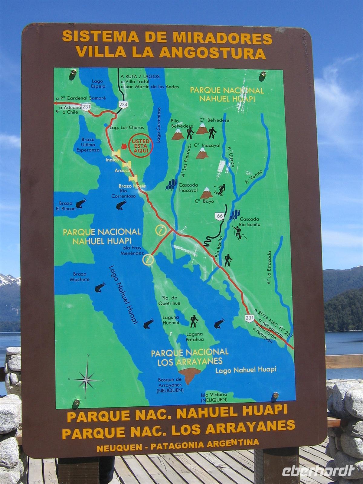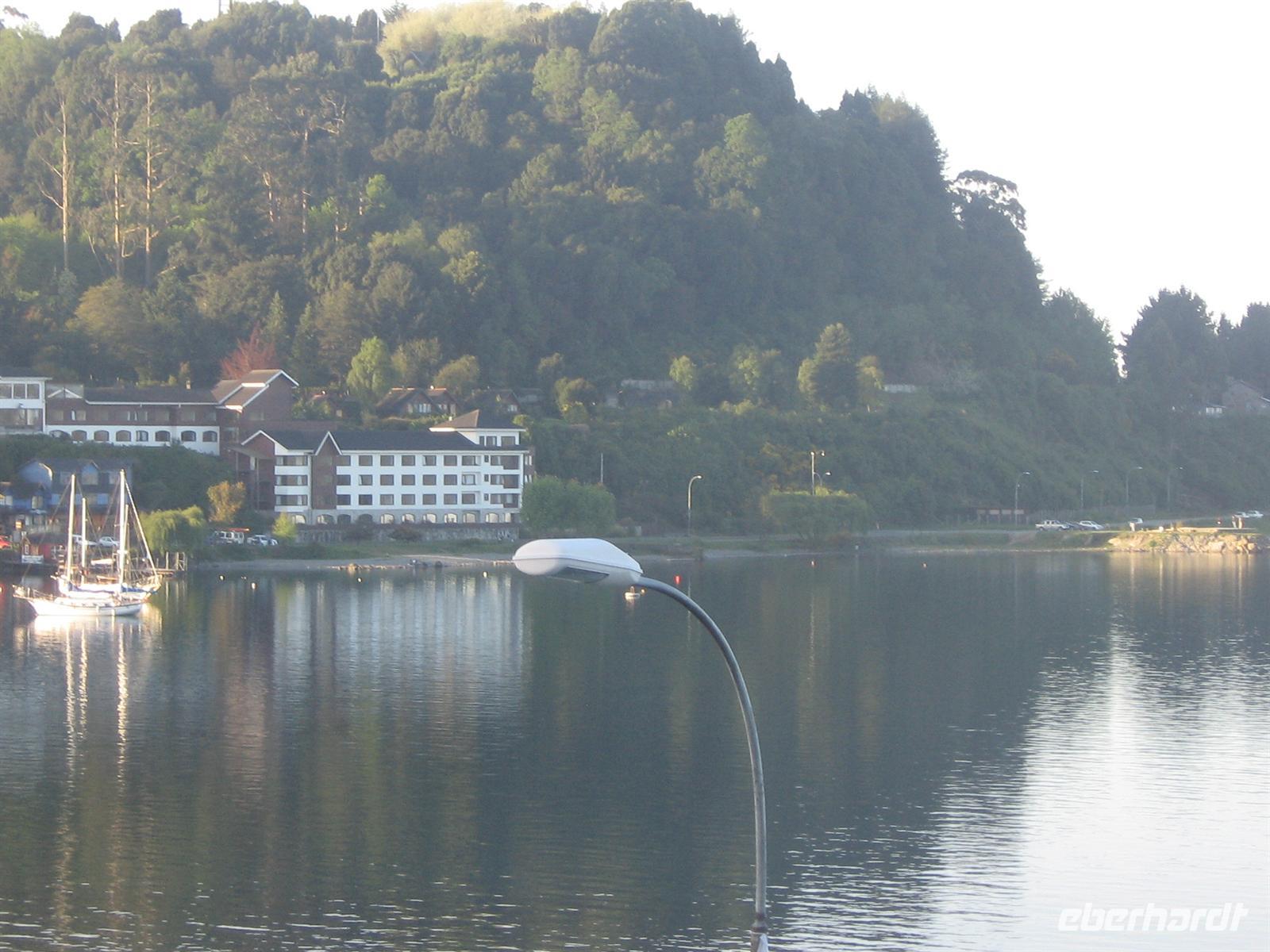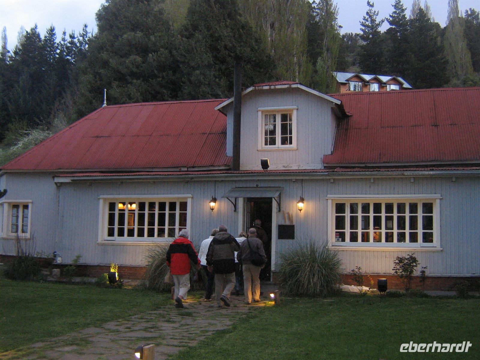 Leider regnet es heute, aber nur bis zu unserer Ankunft an der Fähre. Auf dem Weg dahin besuchten wir ein Baumhotel. Während unserer Fährüberfahrt auf dem Pirihueico-See, der an einen norwegischen Fjorde erinnert, zog auch der Himmel wieder auf. An der Grenze verlief alles reibungslos. Wir sind nun in Argentinien und erreichten den Gebirgsort San Martin de los Andes. Er liegt am Ostufer des Lago Lacar auf 642 Metern Höhe. Er erinnert durch seine Architektur an ein Alpendorf. Nach einem Bummel im Ort fuhren wir zum Abendessen in das Restaurant „KU“. Hier wurde vor einigen Jahren ein koloniales Wohnhaus in ein Restaurant umgewandelt. Es erwartete uns eine gemütliche Atmosphäre. Nach einer kurzen Führung freuten wir uns auf eine Spezialität Argentiniens, frisch gegrilltes Lamm oder Rindersteak - schmackhaft und ein wahrer Genuss!