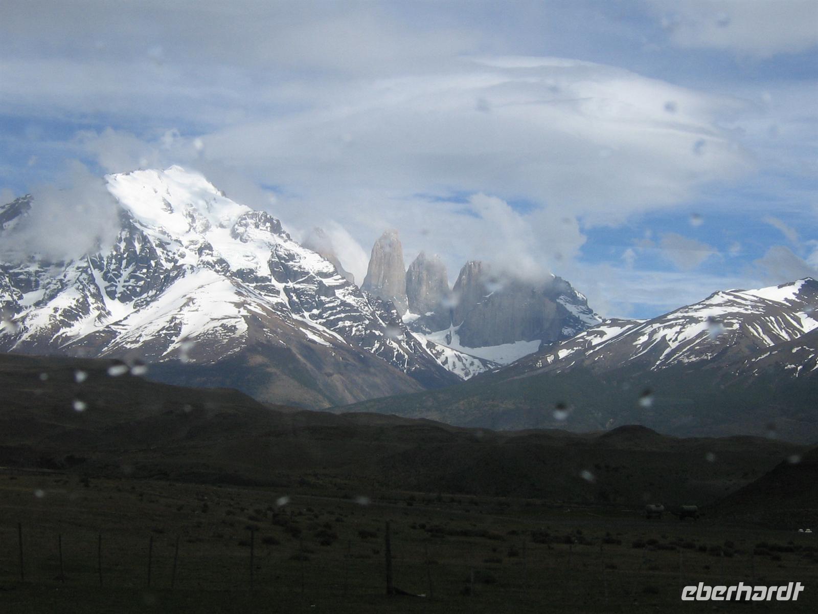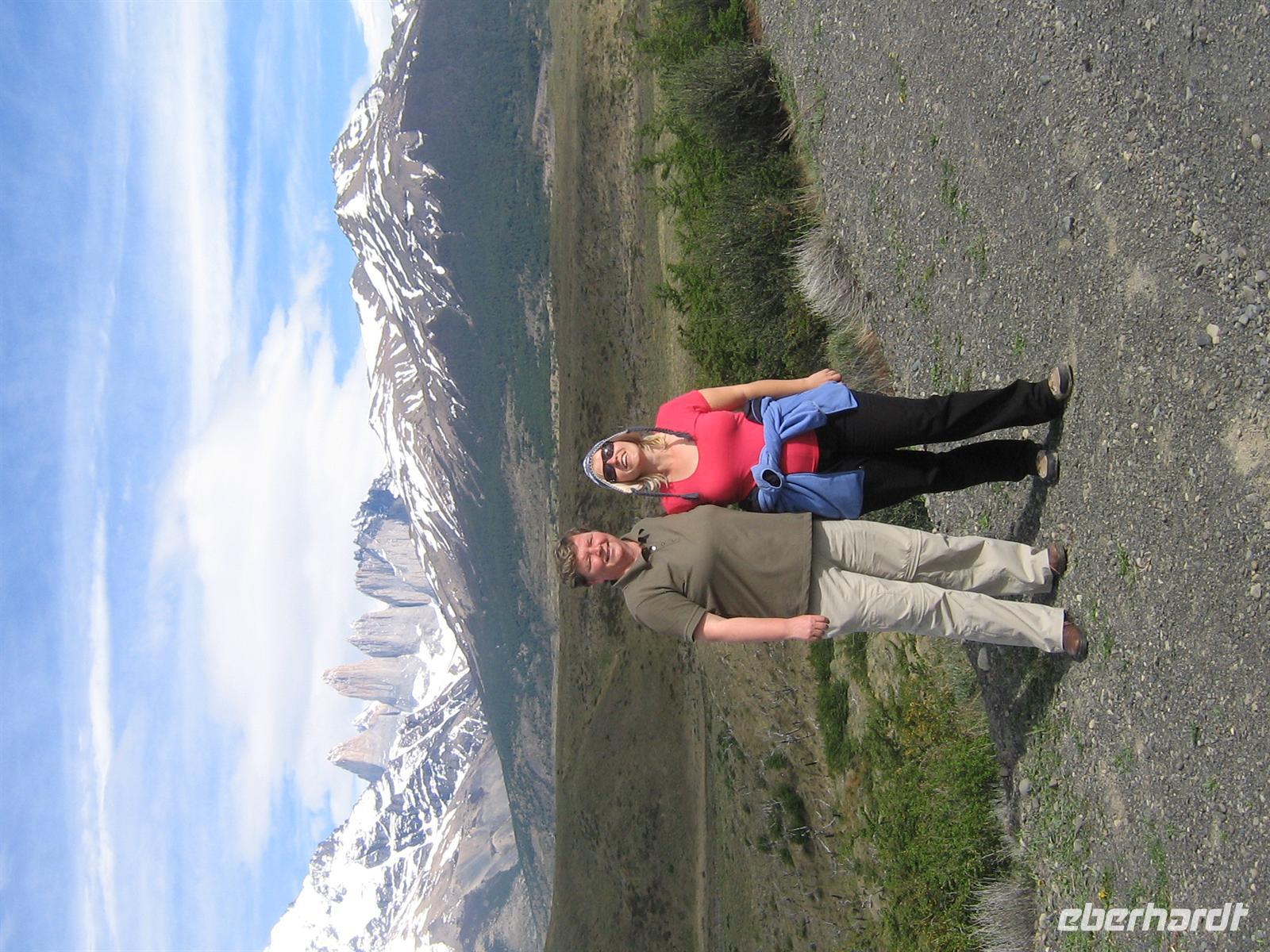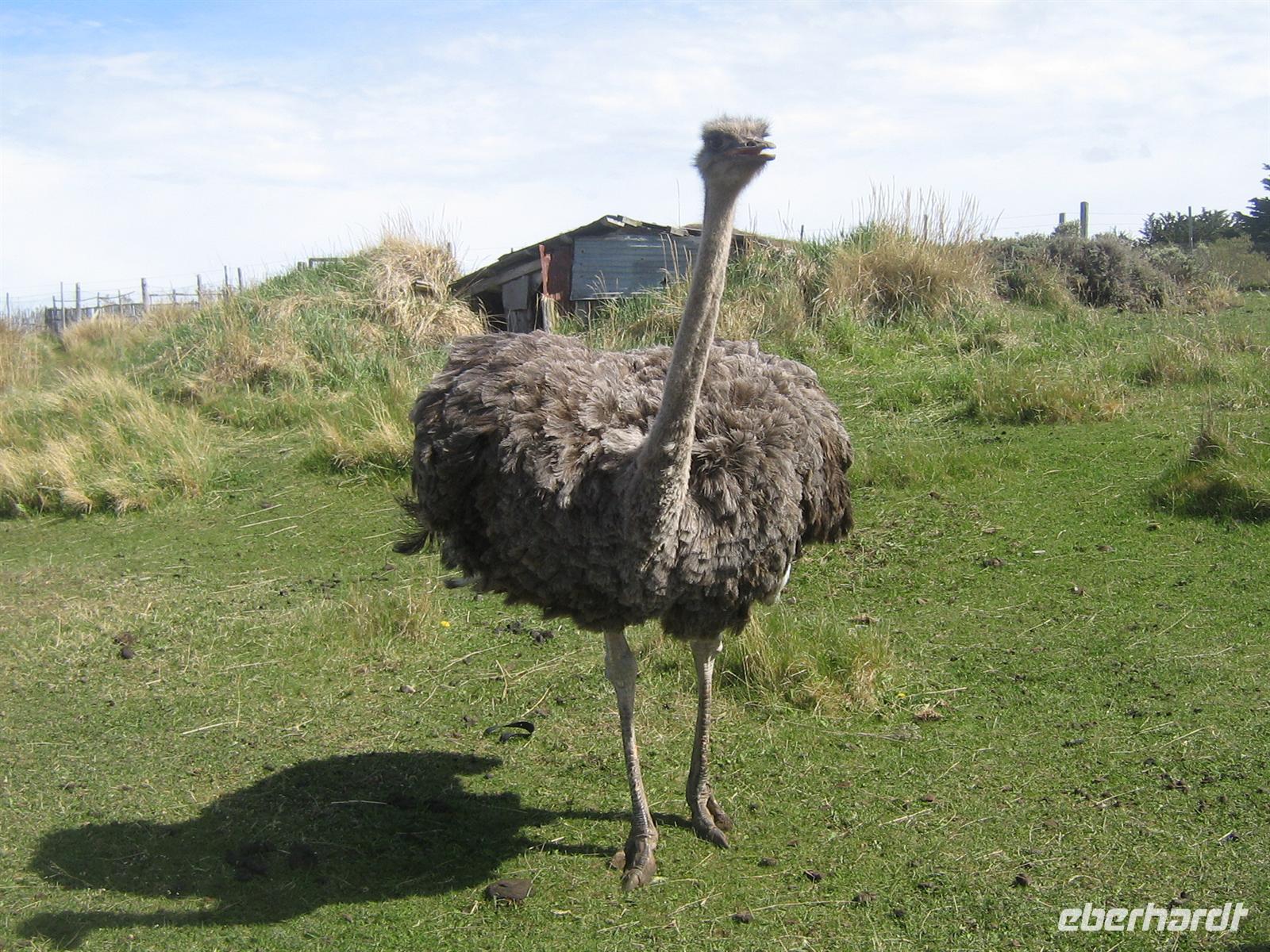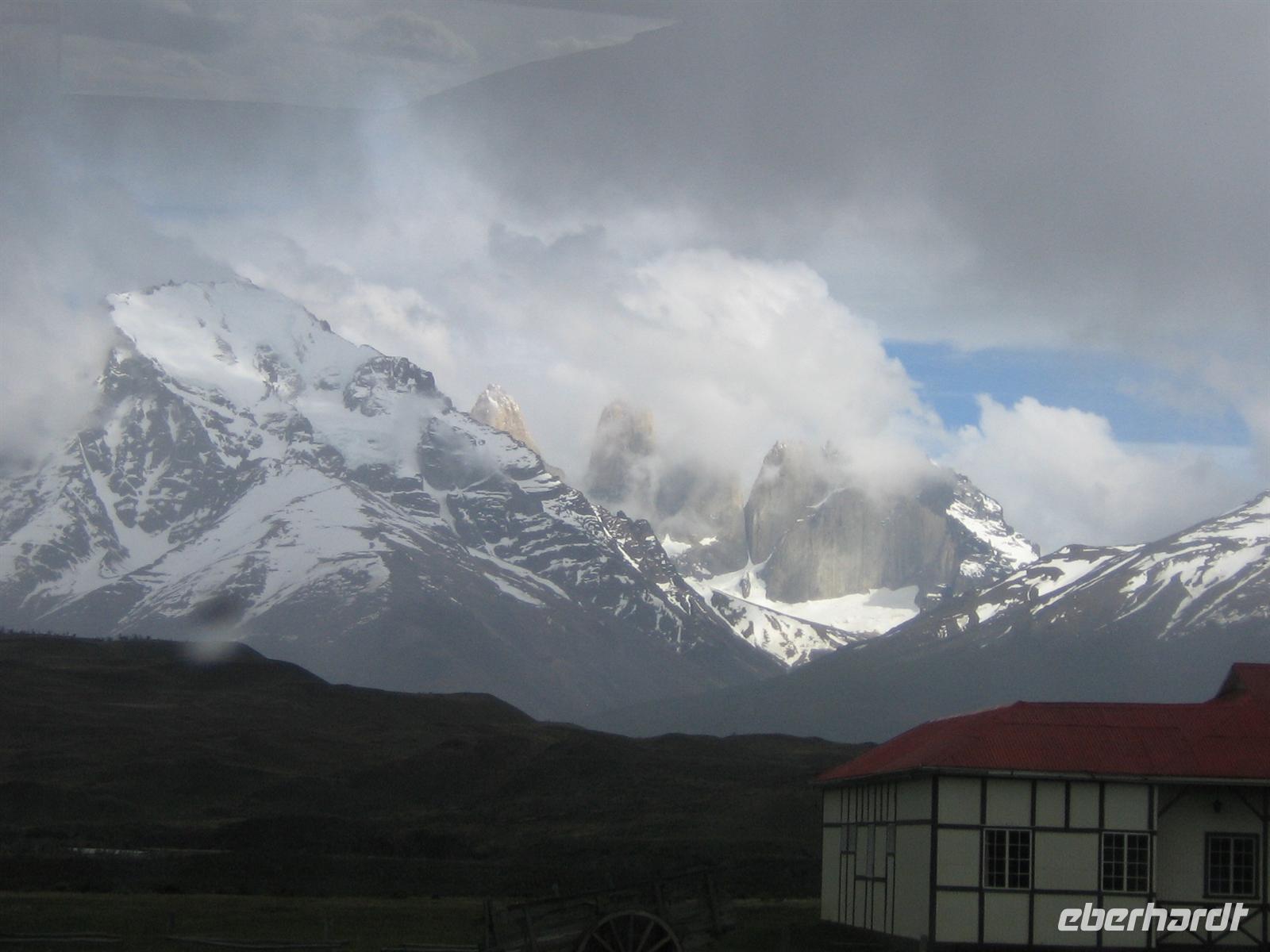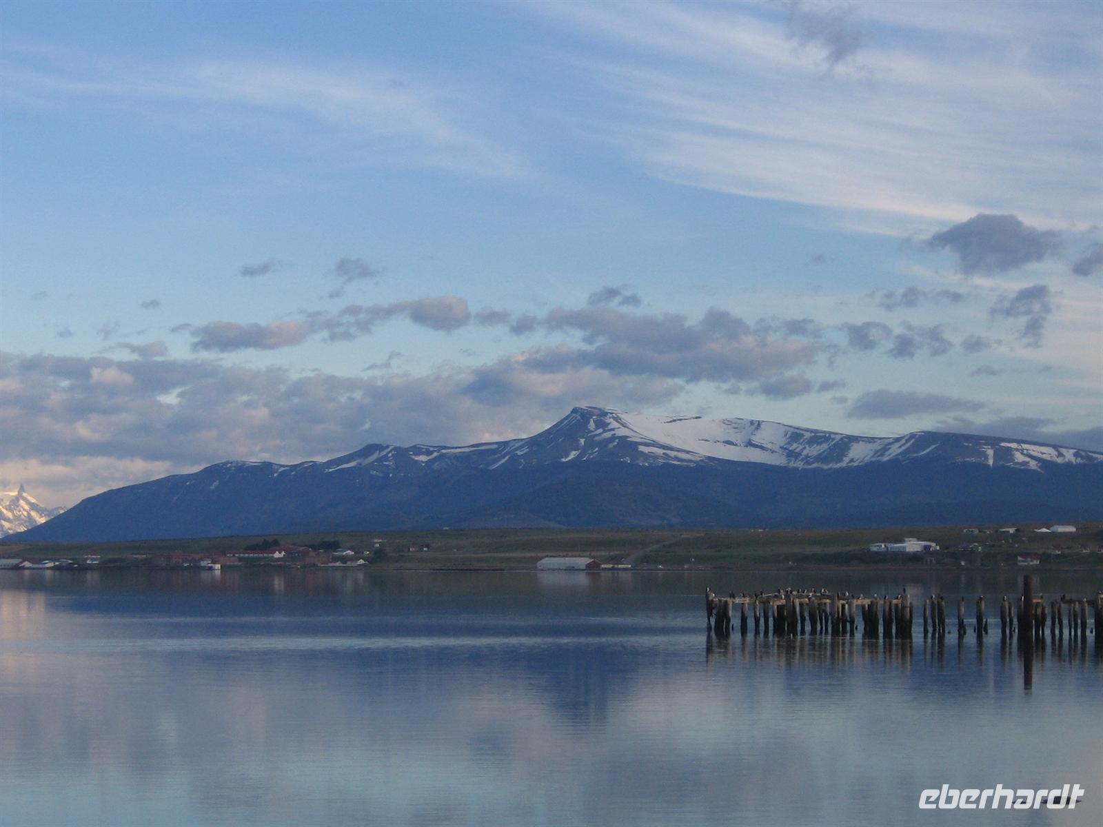Wieder hieß es Koffer packen. Vom Flughafen Porte Mont flogen wir nach Punte Arenas. Es erwartete uns ein sehr schöner Flug, besonders für alle, die einen Fensterplatz hatten. Wir flogen über schneebedeckte Berge und verschiedene Gletscher. Sehr schön konnte man die Gletscherzungen sehen. Kristin musste gleich an das Lied von Reinhard May denken „Über den Wolken muss die Freiheit wohl Grenzenlos sein“. Die letzten Tage hatte es hier geregnet, doch heute wurden wir mit schönem Wetter begrüßt. Unser Besuch bei den Pinguinen musste leider ausfallen. Irgendwie hatten Sie noch keine Landeerlaubnis, sie sind noch nicht angekommen und so war der Park noch geschlossen. Deshalb fuhren wir zu einer Nandu-Farm. Hier konnten wir auch weitere Tierarten beobachten. Zur Überraschung gab es für alle einen kleinen Snack. Eine gefüllte Teigtasche, Limonade und Bier. Danach setzten wir unsere Fahrt nach Puerto Natales fort. Es lagen 250 Kilometer vor uns. Nach den Anden mit schönen schneebedeckten Bergen sahen wir auf dieser Fahrt eine ganz andere Landschaft - Steppe mit Schafen und Magelan-Gänsen. Je näher wir unserem Ziel kamen so freier wurde unser Blick auf die Cordilera Riesco. Wir erreichten den kleinen Ort Puerto Natales, der sich in den letzten Jahren gemausert hat. Er liegt an der Bucht der Hoffnung und gilt als Ausgangsort für den Besuch des Park Torres del Paine.