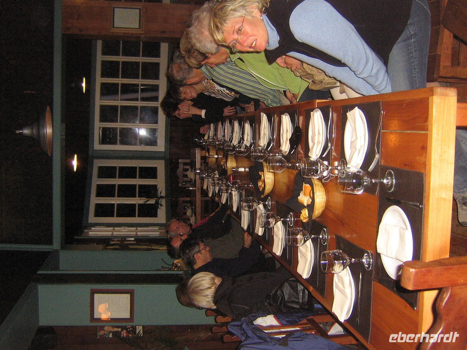 Santiago begrüßte uns mit Regen. Deshalb fuhren wir gleich in das Cholchagua-Tal, eines der besten Weinanbaugebiete Chiles, wo wieder die Sonne strahlte. Im Weingut „Casa Silva“ erhielten wir eine interessante Führung in verschiedenen Weinkellern. Das traditionelle Weingut wird schon in der vierten Generation von ausgewanderten Franzosen geführt. Neben dem Weinanbau wird auch ein kleines Hotel betrieben. Es befindet sich in dem ehemaligen Wohnhaus und vermittelt nostalgisches Flair, wovon wir uns in den Zimmern überzeugten. Nach einer kleinen Weinprobe freuten wir uns bereits auf das Mittagessen im Weingut. In einem herrschaftlichen Raum mit Kamin erwartete uns ein sehr schön gedeckter Tisch. Das Essen war hervorragend. Zu jedem Gang wurde ein Glas Wein gereicht. Es viel uns schwer Abschied zu nehmen. Doch wir wollten zum St. Christophal, dem Hausberg von Santiago. Auf Grund von Erdrutschen konnten wir nicht ganz nach oben fahren. Aber wir hatten auch so einen phantastischen Blick auf die Stadt und die schneebedeckten Anden. Um diese Jahreszeit ist es sehr ungewöhnlich. Wir köpften einige Flaschen Sekt und stoßen auf unser Geburtstagskind Gisela an. Unser Abendessen war heute im Bari Hauri-Restaurant reserviert. Es wurden uns Tänze aus den verschiedenen Regionen Chiles und Tahitis vorgetragen. Gisela ließ es sich nicht nehmen, eine Geburtstagsrunde auszugeben. In einem Budha wurde uns ein polinesische Cocktail Iti Iti gereicht. Recht müde erreichten wir das Hotel, wo wir im Foyer unsere Reise Revue passieren ließen.