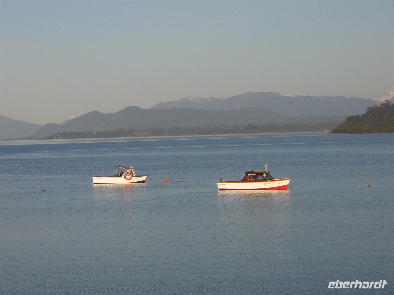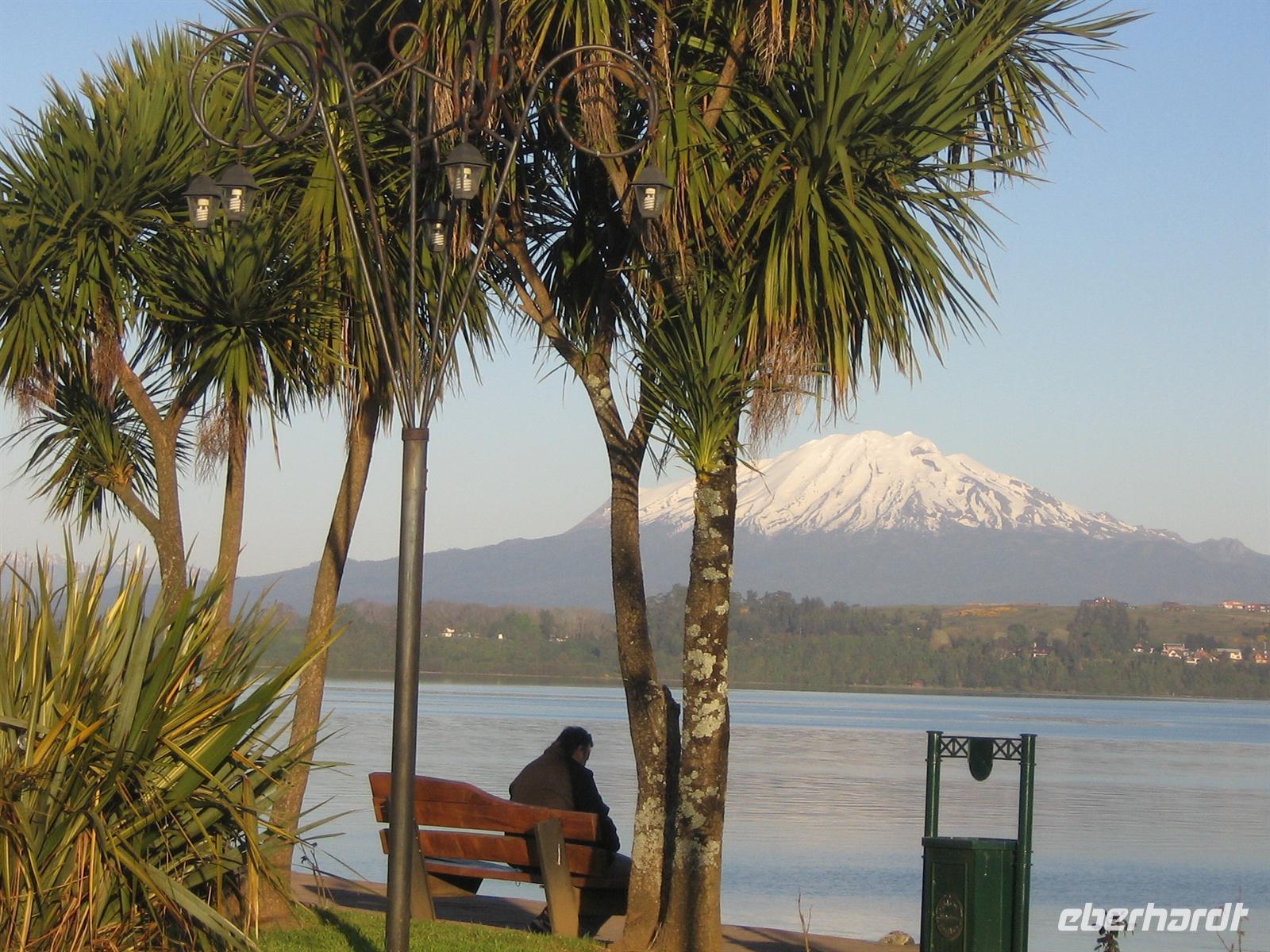 Nach einem deftigen Frühstück brachten uns Taxis wieder zum Flughafen und wir flogen nach Temuco. Die fünftgrößte Stadt Chiles ist Zentrum der Mapuche-Indianer, die vermutlich im 12. und 13. Jahrhundert aus der ostpatagonischen Steppe in das Gebiet des heutigen Chiles gekommen sind. Einst lebten sie als Nomaden von Jagd und Sammelwirtschaft. Heute gibt es in ganz Chile nur noch ca. 500.000 Mapuche, die meistens von Landwirtschaft oder Kunsthandwerk leben. Nach dem Besuch einer Markthalle und eines Gewürzmarktes besichtigten wir das Eisenbahnmuseum. Auf dem Gelände der ehemaligen Lokomotiv-Werkstätte wurde 2004 ein Museum eingerichtet, wo alte Dampflokomotiven, Waggons und die Zugkompositionen zu bestaunen sind. Danach fuhren wir ins Stadtzentrum zum überdachten Markt „Mercado Municipal“. Er ist eine Mischung aus Versorgungsmarkt, Restaurants und Kunsthandwerk. Hier findet man in Chile die größte Dichte an Kunsthandwerker-Ständen. Das erste Geld wurde ausgegeben und die ersten Souvenirs gekauft. Wir verließen die Stadt und begaben uns in Richtung Pucon. Nach dem Einchecken im Hotel brachte uns der Bus in den kleinen Ort. Er liegt direkt am Ostufer des Lago Villarirca, direkt zu Füßen des Vulkans Villarrica. Hier werden viele Sportaktivitäten angeboten und zum Ausspannen lockt der schwarze Sandstrand. Doch wir wollten nur bummeln und Kaffeetrinken. Bei einem schönen Abendessen im Hotel ließen wir den Tag ausklingen.