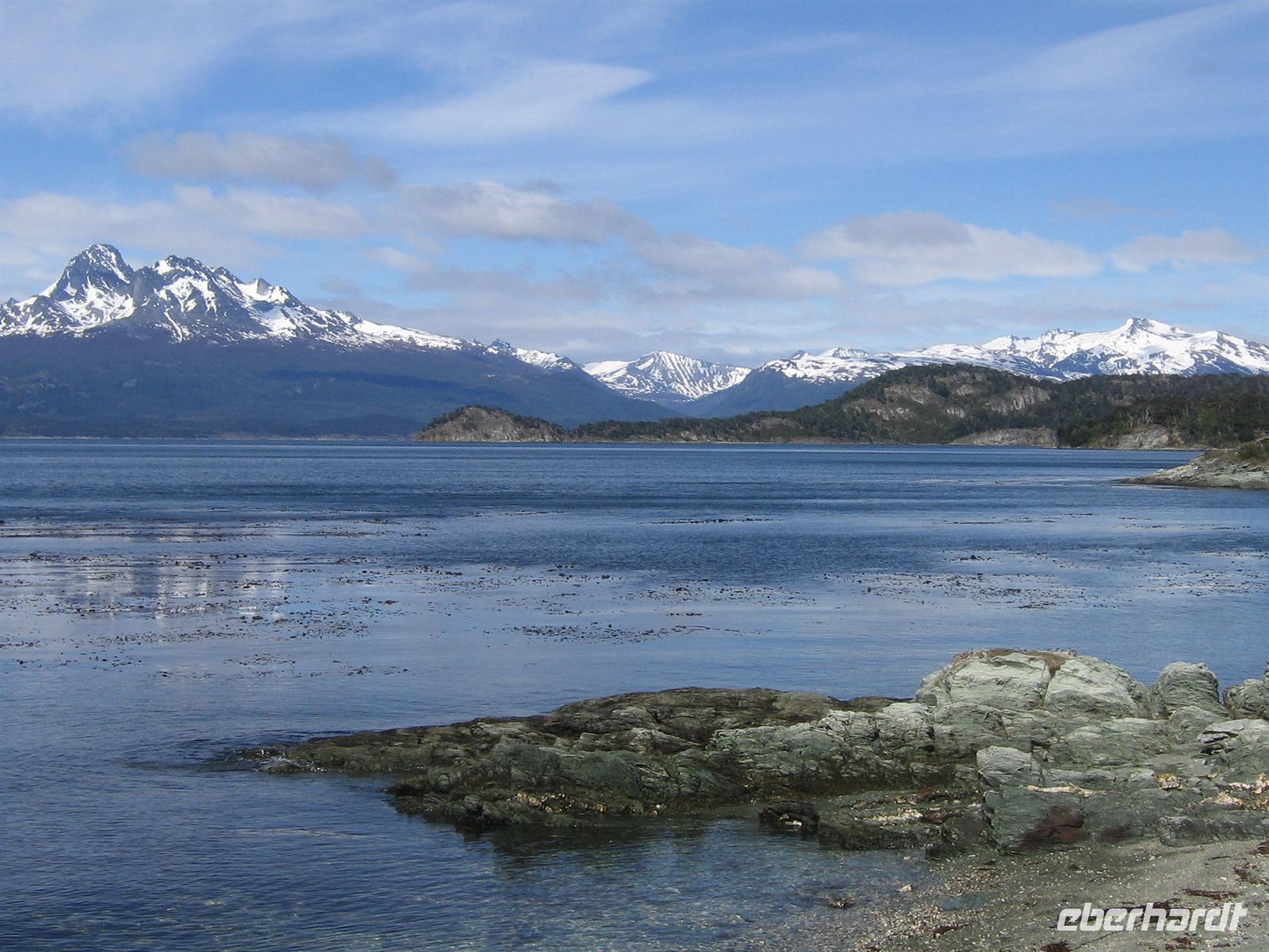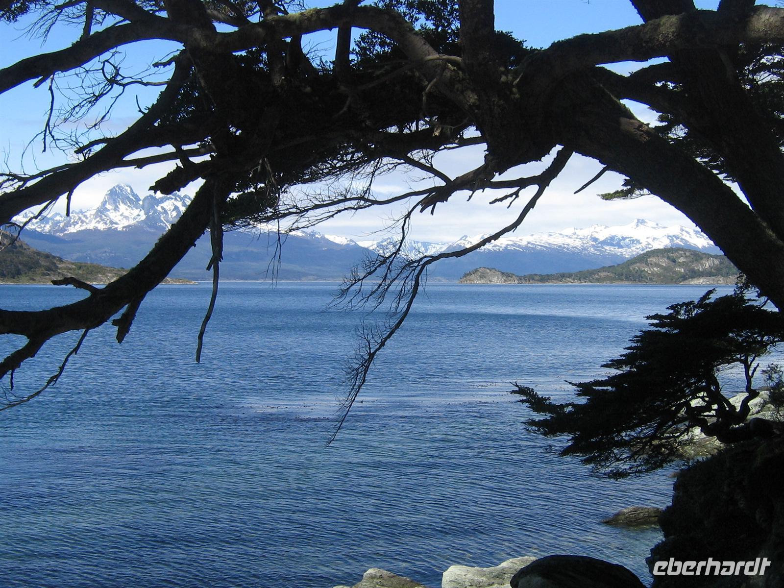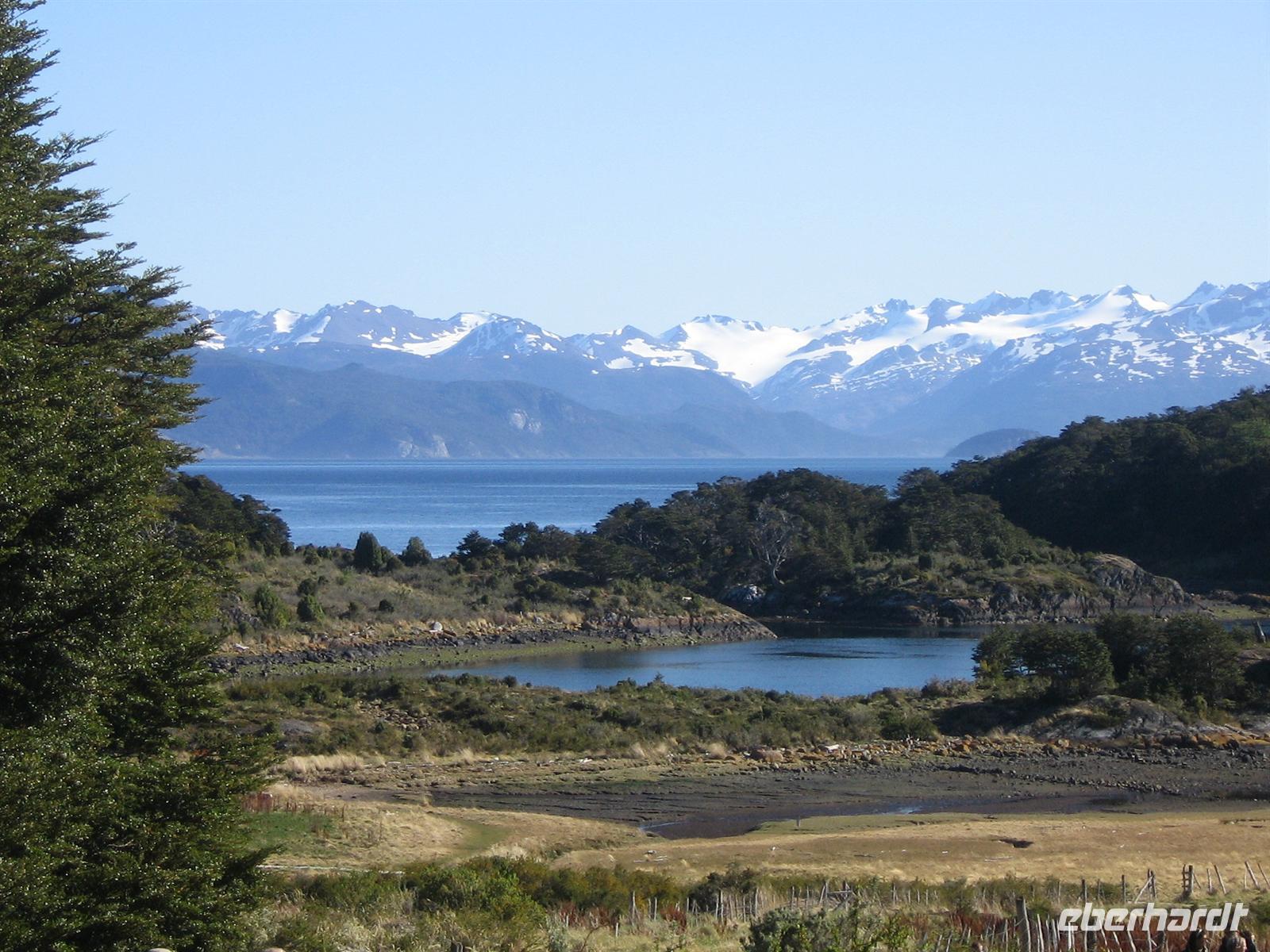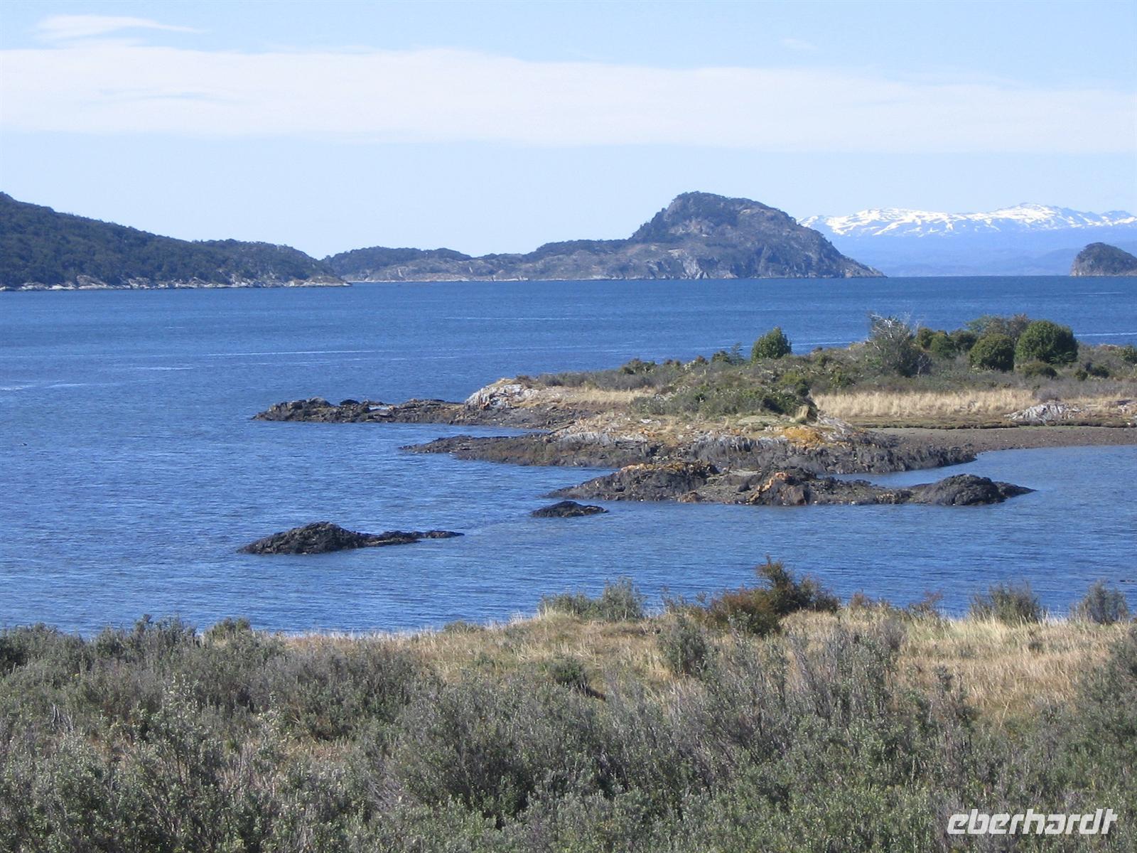 Heute klingelte der Wecker sehr zeitig. Wir fuhren nach Puente Arena zum Hafen. Unterwegs improvisierten wir ein kleines Frühstück im Bus. Mit der Fähre überquerten wir die Magelan-Straße, bei ruhiger See und schönem Wetter, und erreichten Porvenir. Jetzt war es nicht mehr weit bis zur chilenischen Grenze in San Sebastian. Vorher präsentierten wir unser organisiertes Picknick direkt am Atlantik. Neben Wurst und Käse wurden auch selbst hergestellte Sushi gereicht. Da wir gestern wunderschönes Wetter im Nationalpark vorfanden, löste Jürgen seine Wette ein und spendierte die Getränke. Wir erreichen Feuerland, das seinen Namen von seinem Entdecker Magellan bei der Umseglung der Meerenge hat. Er sah in der Dunkelheit die Ufer sehr erhellt von flackernden Feuern. Wir erreichen Rio Grande am Atlantischen Ozean. Jetzt liegen bis nach Ushuaia noch 200 Kilometer vor uns. Es sind alles Asphaltstraßen, jedoch darf man an einigen Stellen nur mit einer Geschwindigkeit von 40 bzw. 60 Kilometer pro Stunde fahren. Wir verließen die Steppenlandschaft und sahen wieder schneebedeckte Berge und tiefe Schluchten. Viele tote Bäume sind ein Zeichen dafür, dass hier Biber ganze Arbeit geleistet haben. Sie wurden aus Kanada mitgebracht. Von ehemals 25 Bibern ist die Population heute auf ca. 3.000 angewachsen. Da sie keine natürlichen Feinde haben, können sie sich schnell vermehren. Nach einer langen Fahrt erreichten wir endlich Ushuaia. Wir waren alle sehr müde und so gingen wir nach dem Abendessen gleich schlafen.