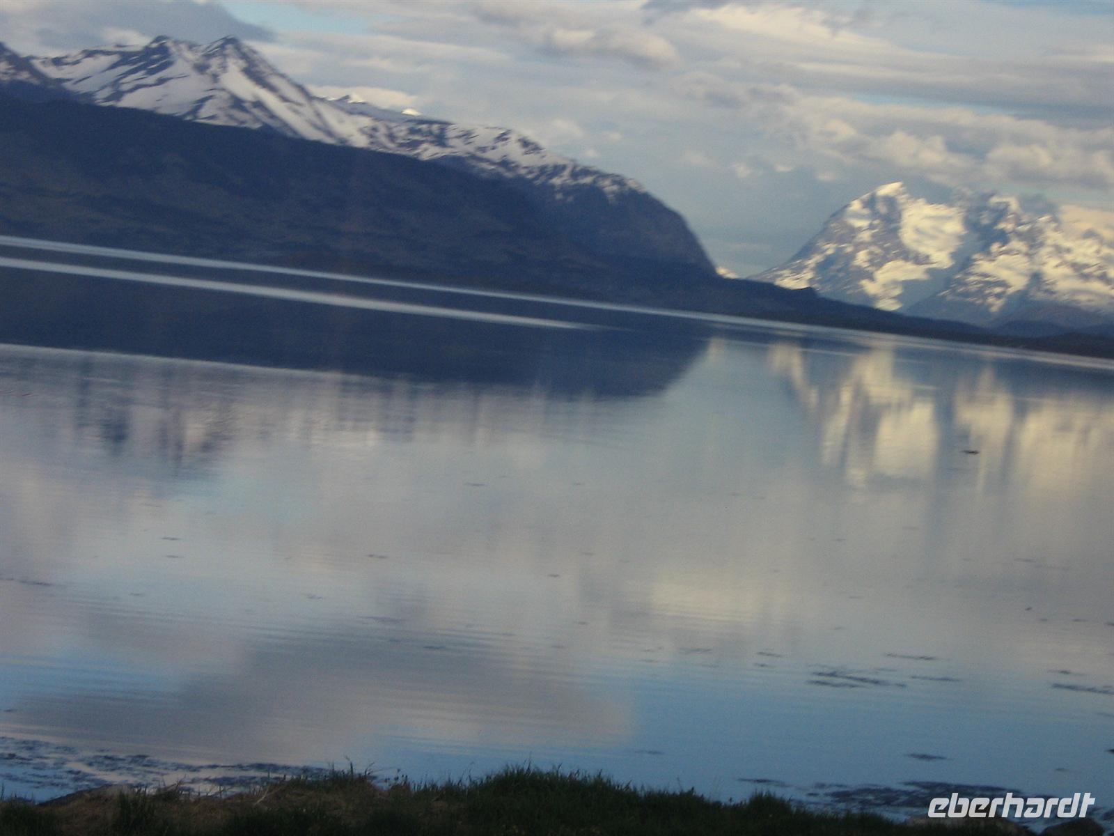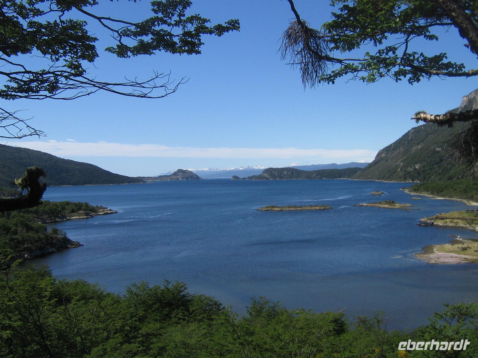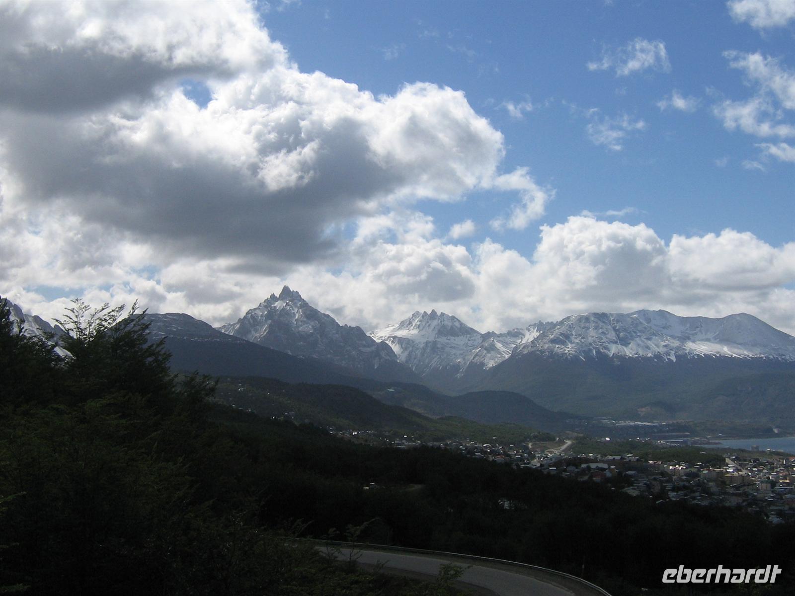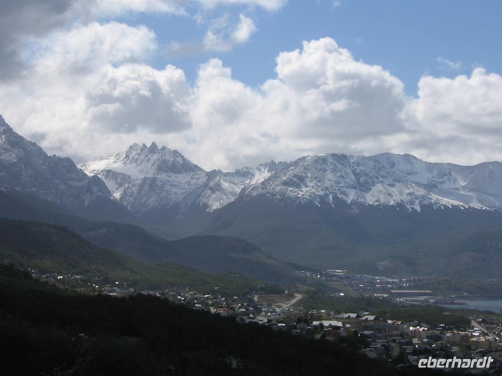 Heute klingelte der Wecker sehr zeitig. Wir fuhren nach Puente Arena zum Hafen. Unterwegs improvisierten wir ein kleines Frühstück im Bus. Mit der Fähre überquerten wir die Magelan-Straße, bei ruhiger See und schönem Wetter, und erreichten Porvenir. Jetzt war es nicht mehr weit bis zur chilenischen Grenze in San Sebastian. Vorher präsentierten wir unser organisiertes Picknick direkt am Atlantik. Neben Wurst und Käse wurden auch selbst hergestellte Sushi gereicht. Da wir gestern wunderschönes Wetter im Nationalpark vorfanden, löste Jürgen seine Wette ein und spendierte die Getränke. Wir erreichen Feuerland, das seinen Namen von seinem Entdecker Magellan bei der Umseglung der Meerenge hat. Er sah in der Dunkelheit die Ufer sehr erhellt von flackernden Feuern. Wir erreichen Rio Grande am Atlantischen Ozean. Jetzt liegen bis nach Ushuaia noch 200 Kilometer vor uns. Es sind alles Asphaltstraßen, jedoch darf man an einigen Stellen nur mit einer Geschwindigkeit von 40 bzw. 60 Kilometer pro Stunde fahren. Wir verließen die Steppenlandschaft und sahen wieder schneebedeckte Berge und tiefe Schluchten. Viele tote Bäume sind ein Zeichen dafür, dass hier Biber ganze Arbeit geleistet haben. Sie wurden aus Kanada mitgebracht. Von ehemals 25 Bibern ist die Population heute auf ca. 3.000 angewachsen. Da sie keine natürlichen Feinde haben, können sie sich schnell vermehren. Nach einer langen Fahrt erreichten wir endlich Ushuaia. Wir waren alle sehr müde und so gingen wir nach dem Abendessen gleich schlafen.