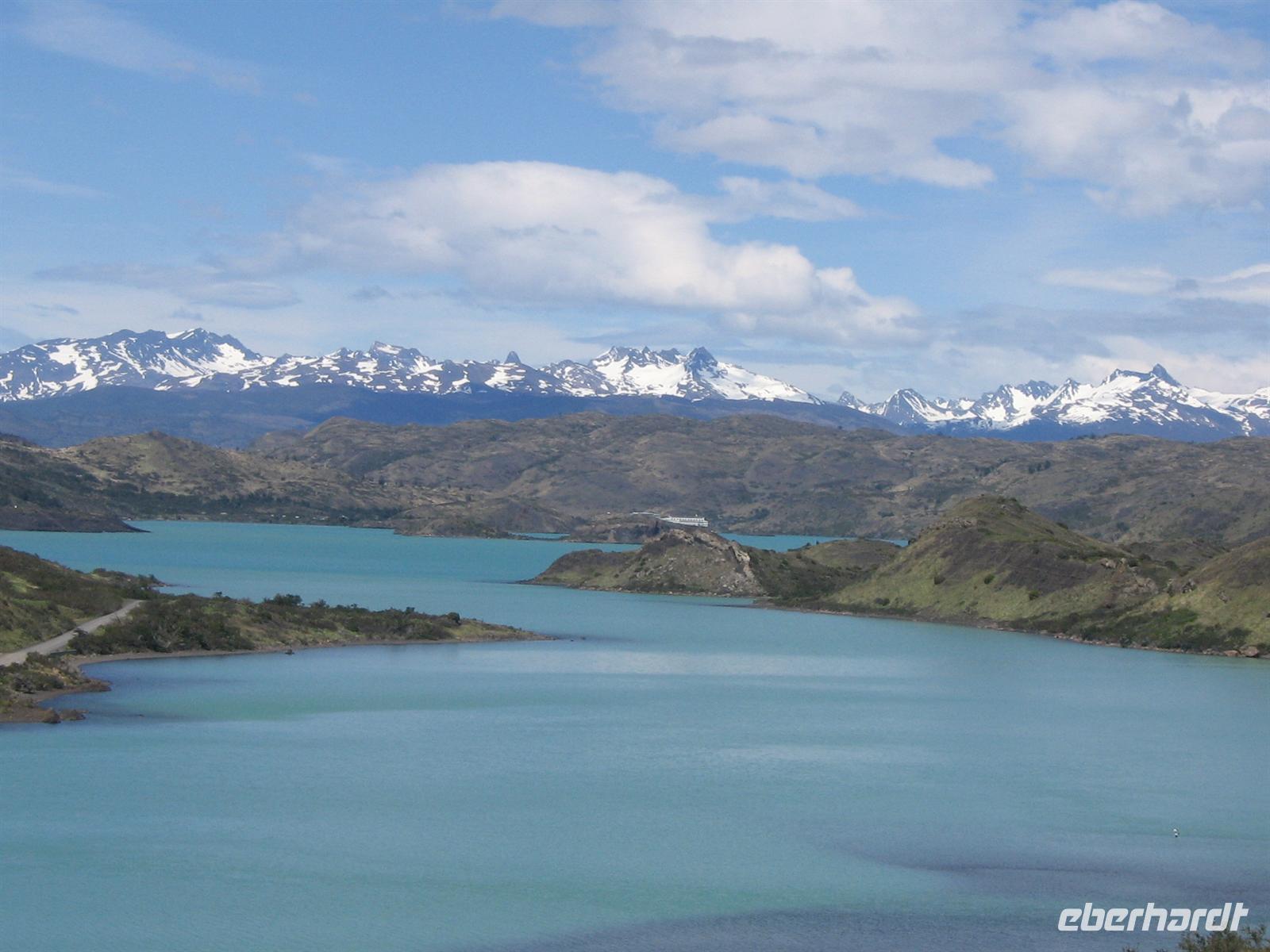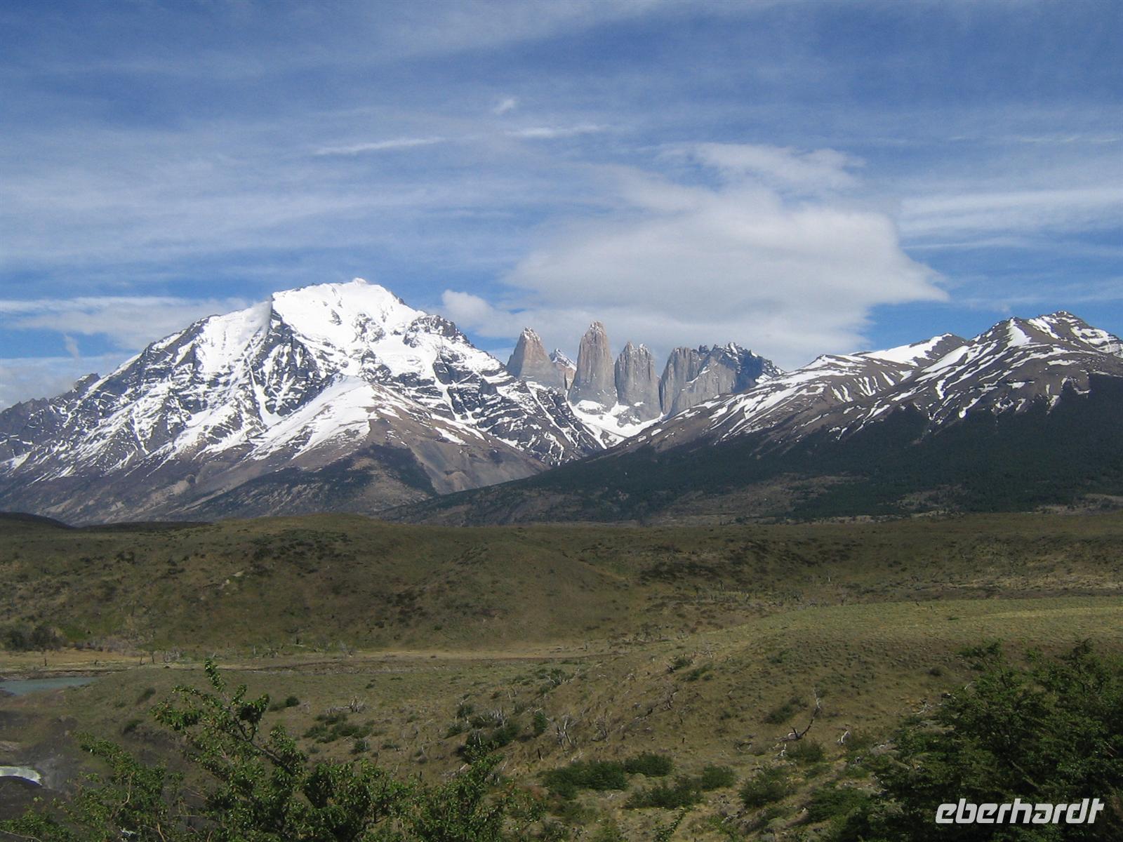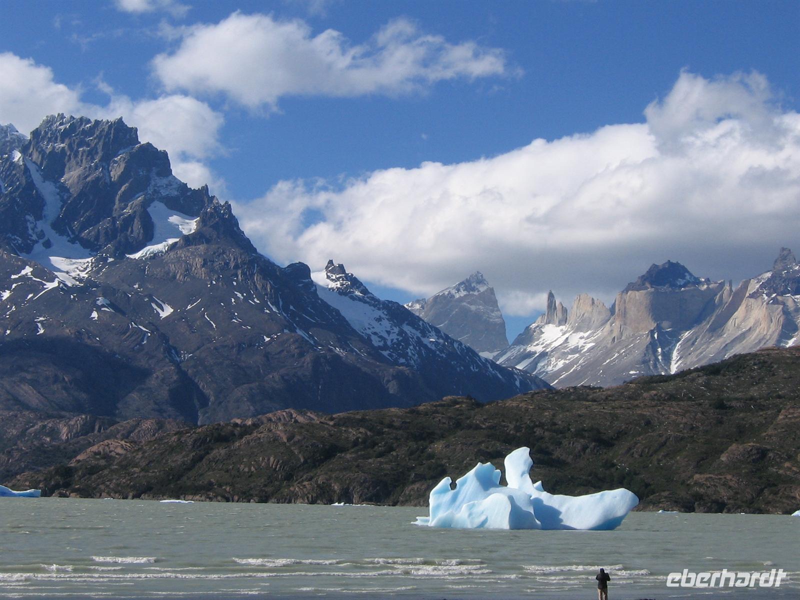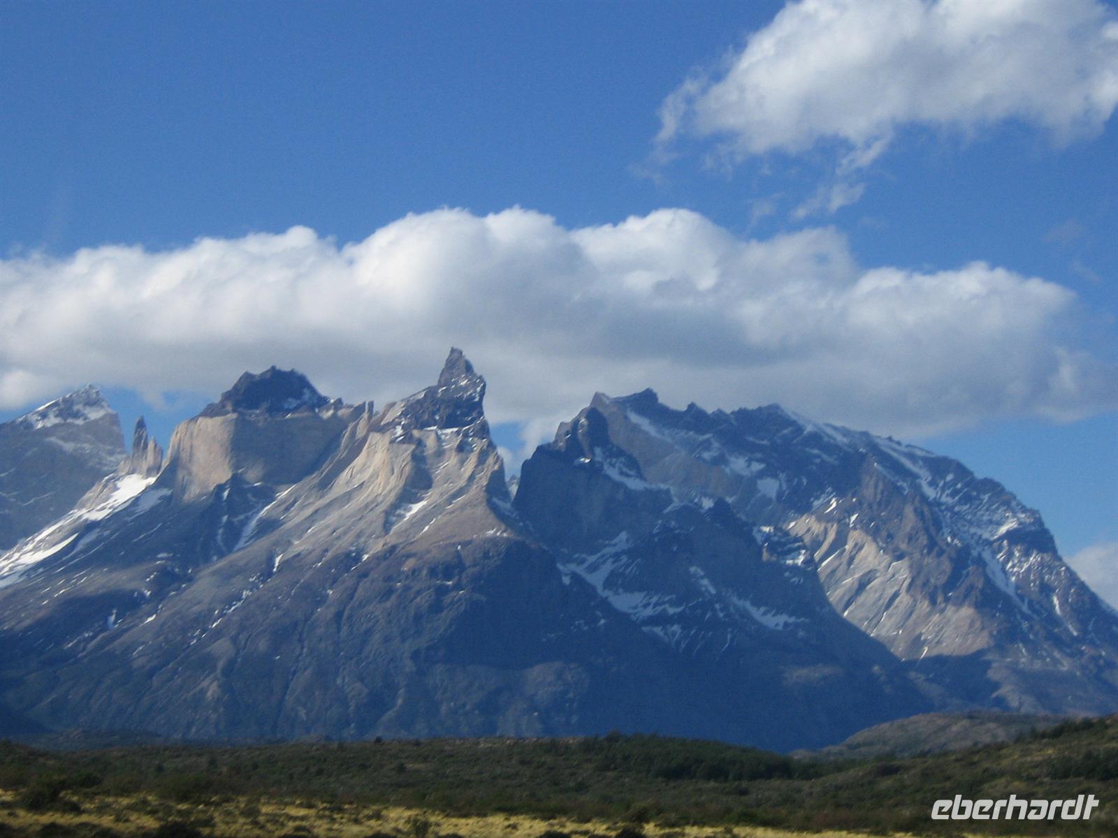 Heute begannen wir unseren Tag auch wieder früh, denn der Nationalpark Torre del Paine wartete auf unseren Besuch. Die weite Landschaft mit Gletschern, tiefblauen Seen und Wasserfällen ist einzigartig schön! Zur Entdeckung des Nationalparks mit einer Fläche von 1.800 Quadratkilometern bräuchte man mehrere Tage. Wir versuchten, während der Rundfahrt soviel wie möglich zu entdecken. Der Tag begrüßte uns mit einigen Wolken und es fielen sogar einige Regentropfen. Doch wie es bei Engeln so ist, zog der Himmel auf und ein strahlend blauer Himmel mit einigen Wolken gab uns den Blick auf den Torre del Paine mit seinen markanten Türmen frei. Nach mehreren Fotostopp erreichten wir den Eingang des Nationalpark und kurz danach den Wasserfall. Der wichtigste Fluss ist der Rio Paine, der im Dickson-Gletscher entspringt. Auf Grund des schönen Wetters entschlossen wir uns für eine Wanderung zum Nordenskjöld-See. Alle dachten schon wir haben unseren Picknick-Platz erreicht, doch wir wanderten etwas weiter zum See. Ein schöner Ausblick auf den See, die Hörner und den Gletscher entschädigte uns für die Strapazen. Es war ein wunderschöner Platz, wo wir aus unser Lunchbox essen konnten. Die Freude war groß als wir dazu ein gut gekühltes Bier reichten. Niemand hatte den Kiosk entdeckt, wo wir heimlich das Bier kauften - ha, ha. Wieder zurück am Wasserfall fuhren wir zum Grey-See. Wir spazierten am See entlang und bestaunten die hellblau leuchtenden Eisblöcke, die vom Grey-Gletscher abgebrochen waren und im See trieben. Es war sehr beeindruckend. Nach dem Verlassen des Nationalparks besuchten wir die Milodon-Höhle. In einer gut zugänglichen Höhle wurden die Reste eines urzeitlichen Wesens entdeckt. Es handelte sich dabei um die Überreste eines Mlodons, eines knapp 12.000 Jahre alten Riesenfaultiers. Und wieder ging ein wunderschöner Tag zu Ende. Wie uns Elena versicherte mit einem Traumwetter, welches sie selbst so noch nicht erlebt hatte.