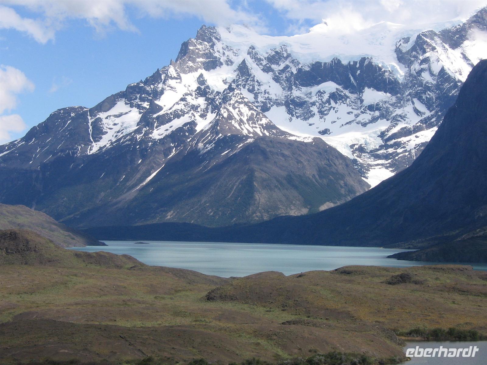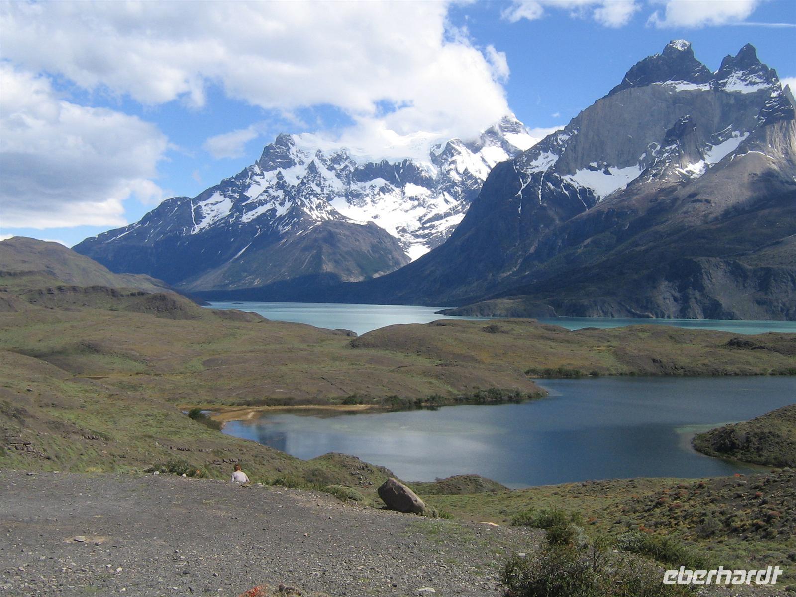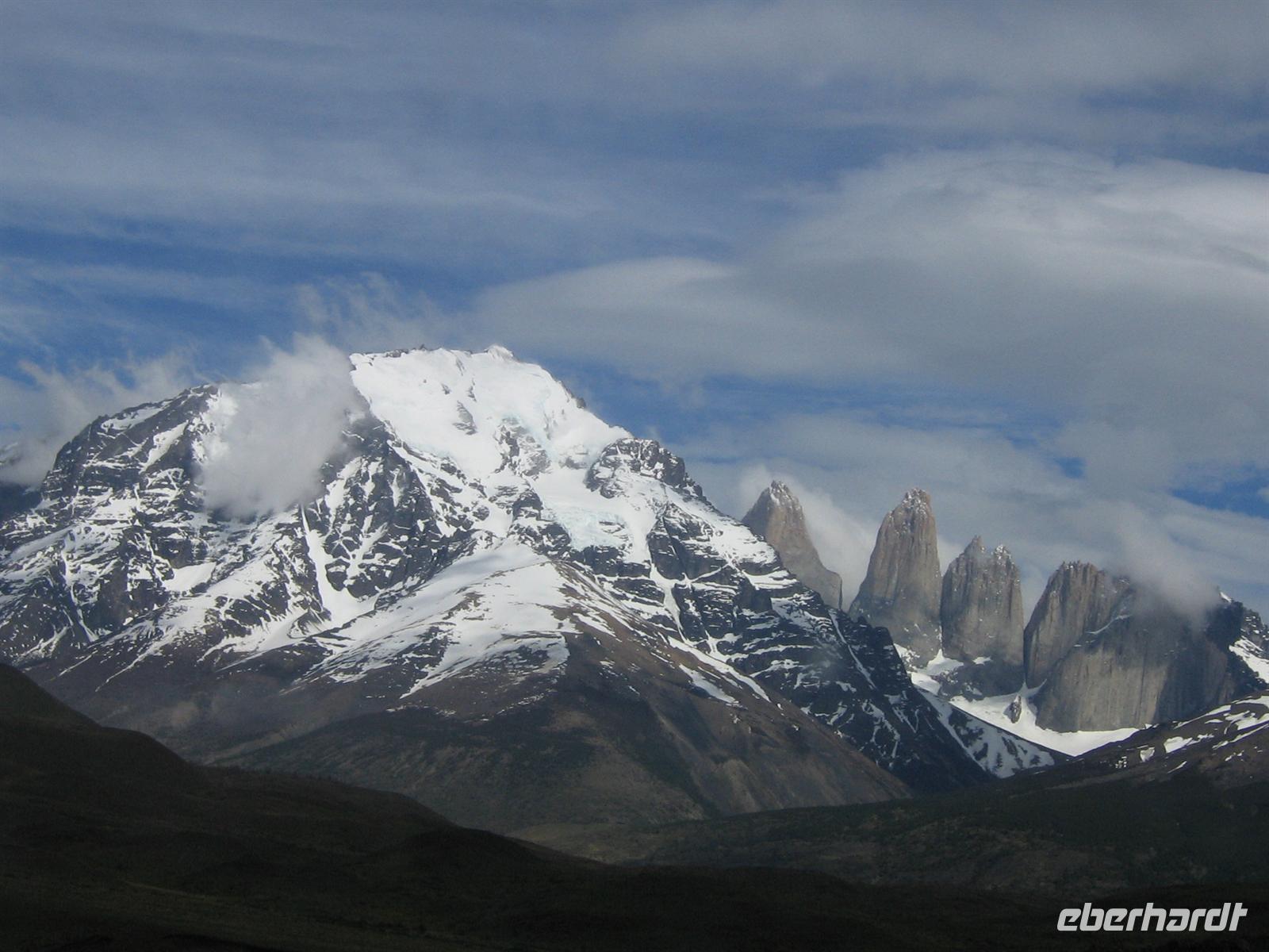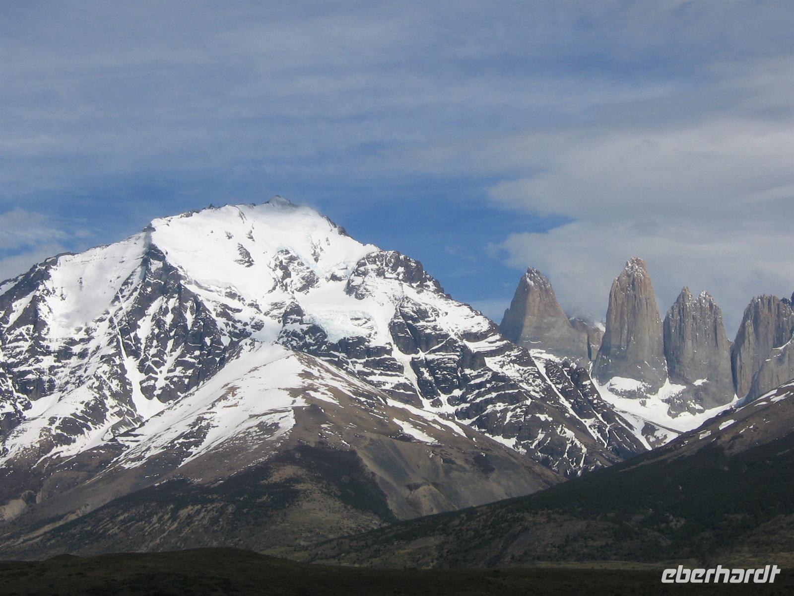 Heute begannen wir unseren Tag auch wieder früh, denn der Nationalpark Torre del Paine wartete auf unseren Besuch. Die weite Landschaft mit Gletschern, tiefblauen Seen und Wasserfällen ist einzigartig schön! Zur Entdeckung des Nationalparks mit einer Fläche von 1.800 Quadratkilometern bräuchte man mehrere Tage. Wir versuchten, während der Rundfahrt soviel wie möglich zu entdecken. Der Tag begrüßte uns mit einigen Wolken und es fielen sogar einige Regentropfen. Doch wie es bei Engeln so ist, zog der Himmel auf und ein strahlend blauer Himmel mit einigen Wolken gab uns den Blick auf den Torre del Paine mit seinen markanten Türmen frei. Nach mehreren Fotostopp erreichten wir den Eingang des Nationalpark und kurz danach den Wasserfall. Der wichtigste Fluss ist der Rio Paine, der im Dickson-Gletscher entspringt. Auf Grund des schönen Wetters entschlossen wir uns für eine Wanderung zum Nordenskjöld-See. Alle dachten schon wir haben unseren Picknick-Platz erreicht, doch wir wanderten etwas weiter zum See. Ein schöner Ausblick auf den See, die Hörner und den Gletscher entschädigte uns für die Strapazen. Es war ein wunderschöner Platz, wo wir aus unser Lunchbox essen konnten. Die Freude war groß als wir dazu ein gut gekühltes Bier reichten. Niemand hatte den Kiosk entdeckt, wo wir heimlich das Bier kauften - ha, ha. Wieder zurück am Wasserfall fuhren wir zum Grey-See. Wir spazierten am See entlang und bestaunten die hellblau leuchtenden Eisblöcke, die vom Grey-Gletscher abgebrochen waren und im See trieben. Es war sehr beeindruckend. Nach dem Verlassen des Nationalparks besuchten wir die Milodon-Höhle. In einer gut zugänglichen Höhle wurden die Reste eines urzeitlichen Wesens entdeckt. Es handelte sich dabei um die Überreste eines Mlodons, eines knapp 12.000 Jahre alten Riesenfaultiers. Und wieder ging ein wunderschöner Tag zu Ende. Wie uns Elena versicherte mit einem Traumwetter, welches sie selbst so noch nicht erlebt hatte.