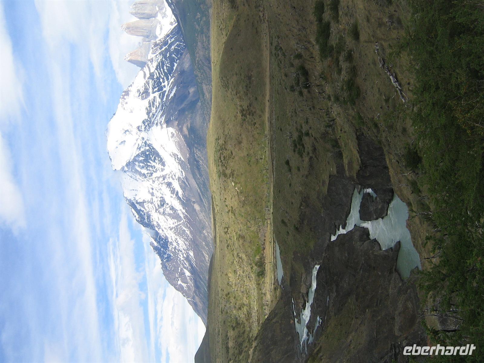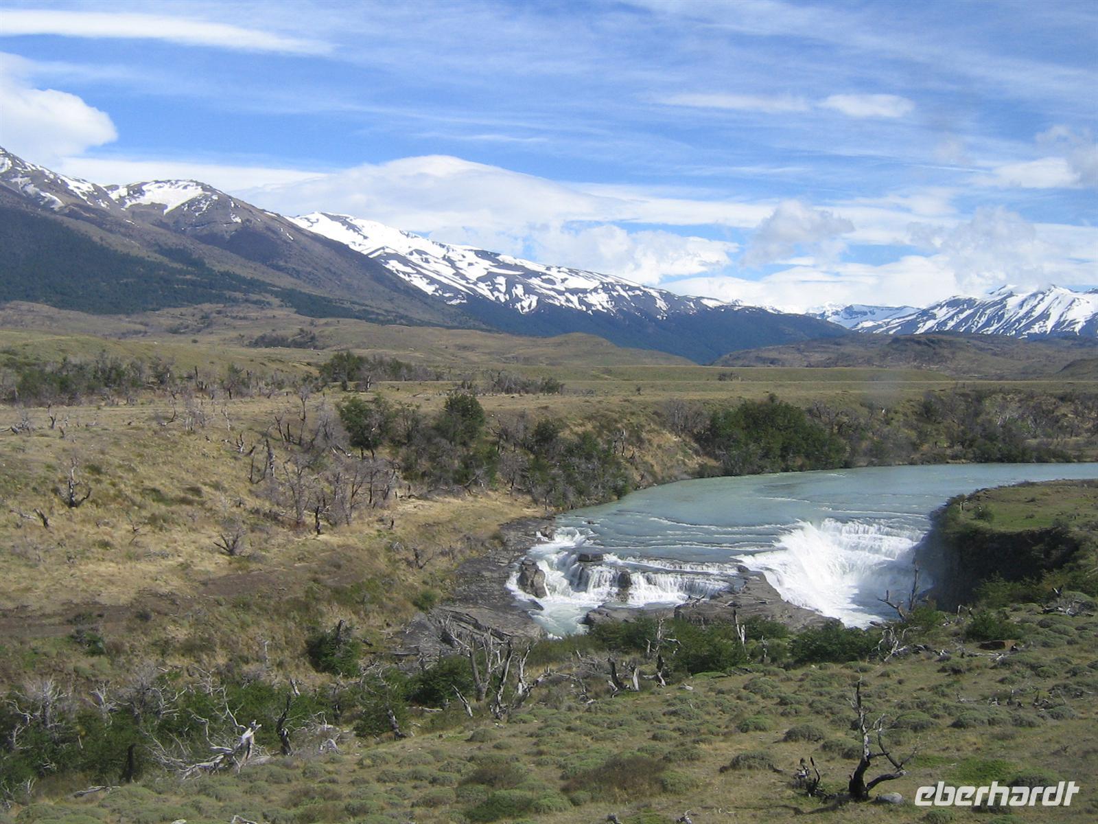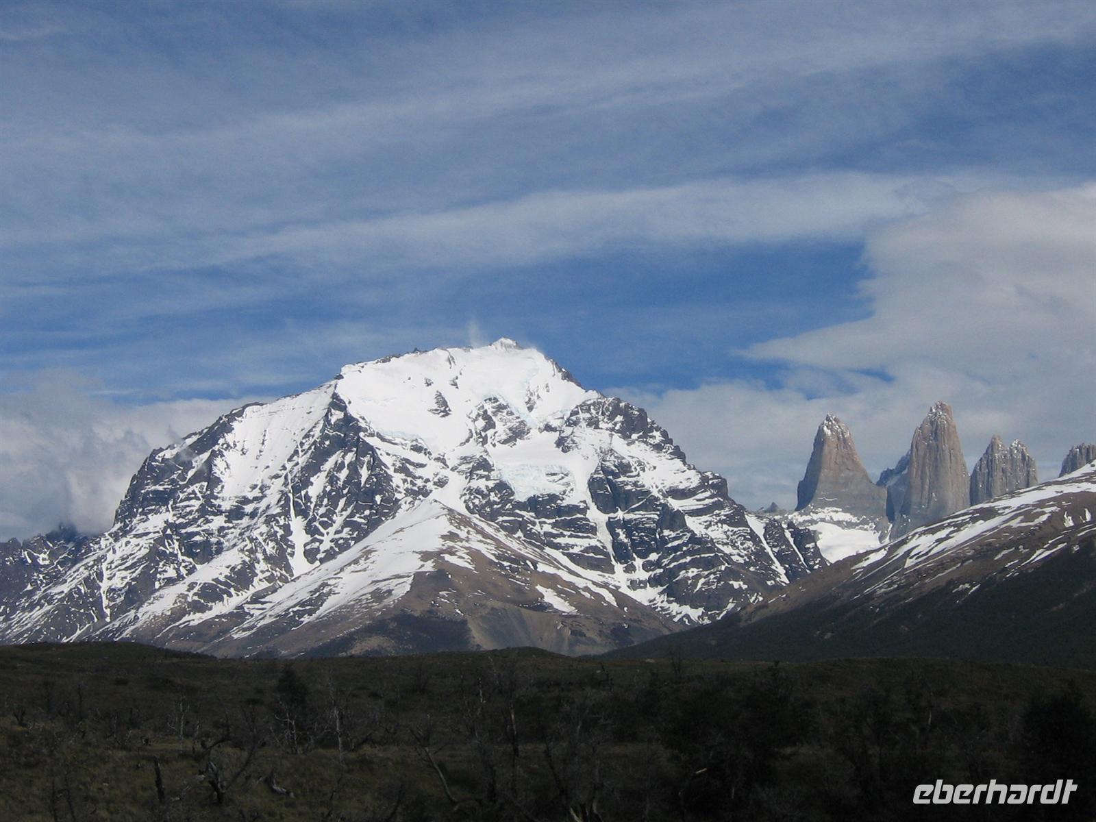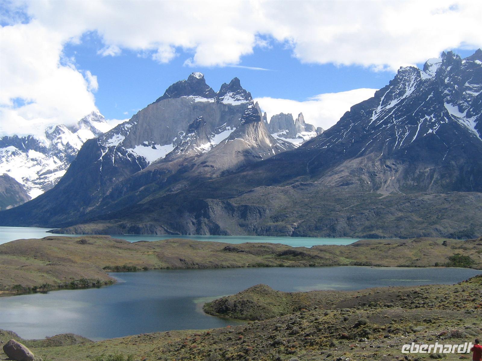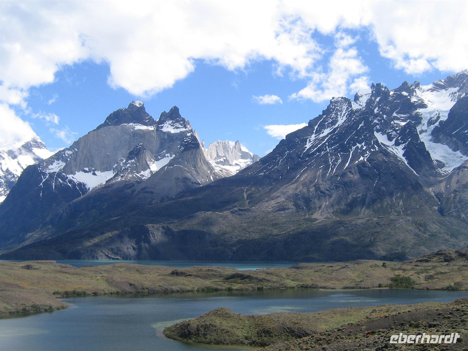 Heute begannen wir unseren Tag auch wieder früh, denn der Nationalpark Torre del Paine wartete auf unseren Besuch. Die weite Landschaft mit Gletschern, tiefblauen Seen und Wasserfällen ist einzigartig schön! Zur Entdeckung des Nationalparks mit einer Fläche von 1.800 Quadratkilometern bräuchte man mehrere Tage. Wir versuchten, während der Rundfahrt soviel wie möglich zu entdecken. Der Tag begrüßte uns mit einigen Wolken und es fielen sogar einige Regentropfen. Doch wie es bei Engeln so ist, zog der Himmel auf und ein strahlend blauer Himmel mit einigen Wolken gab uns den Blick auf den Torre del Paine mit seinen markanten Türmen frei. Nach mehreren Fotostopp erreichten wir den Eingang des Nationalpark und kurz danach den Wasserfall. Der wichtigste Fluss ist der Rio Paine, der im Dickson-Gletscher entspringt. Auf Grund des schönen Wetters entschlossen wir uns für eine Wanderung zum Nordenskjöld-See. Alle dachten schon wir haben unseren Picknick-Platz erreicht, doch wir wanderten etwas weiter zum See. Ein schöner Ausblick auf den See, die Hörner und den Gletscher entschädigte uns für die Strapazen. Es war ein wunderschöner Platz, wo wir aus unser Lunchbox essen konnten. Die Freude war groß als wir dazu ein gut gekühltes Bier reichten. Niemand hatte den Kiosk entdeckt, wo wir heimlich das Bier kauften - ha, ha. Wieder zurück am Wasserfall fuhren wir zum Grey-See. Wir spazierten am See entlang und bestaunten die hellblau leuchtenden Eisblöcke, die vom Grey-Gletscher abgebrochen waren und im See trieben. Es war sehr beeindruckend. Nach dem Verlassen des Nationalparks besuchten wir die Milodon-Höhle. In einer gut zugänglichen Höhle wurden die Reste eines urzeitlichen Wesens entdeckt. Es handelte sich dabei um die Überreste eines Mlodons, eines knapp 12.000 Jahre alten Riesenfaultiers. Und wieder ging ein wunderschöner Tag zu Ende. Wie uns Elena versicherte mit einem Traumwetter, welches sie selbst so noch nicht erlebt hatte.