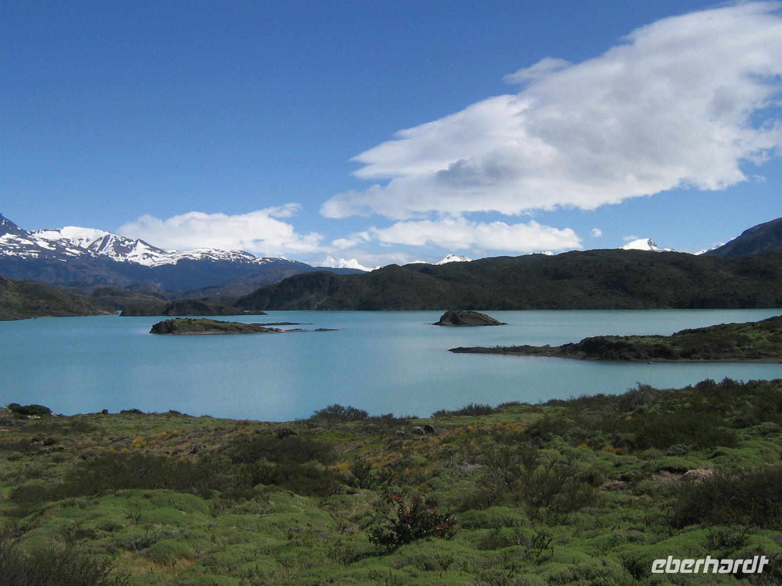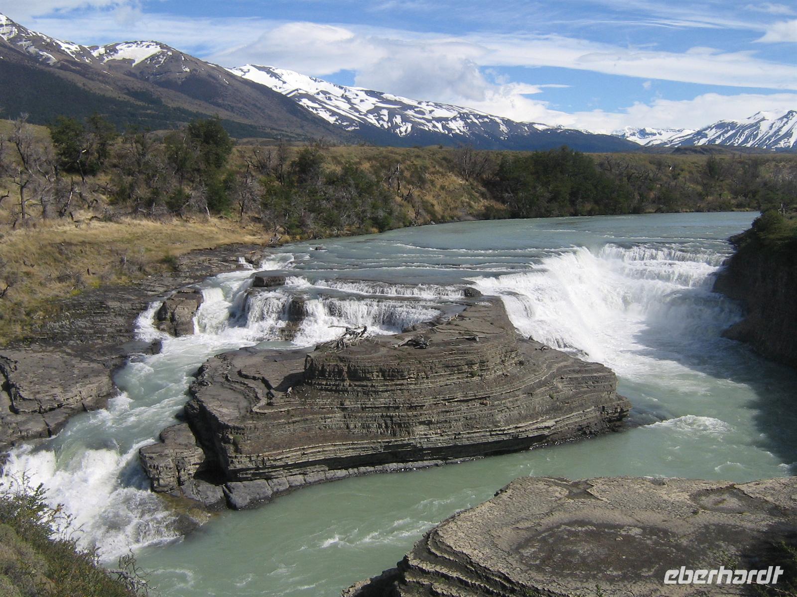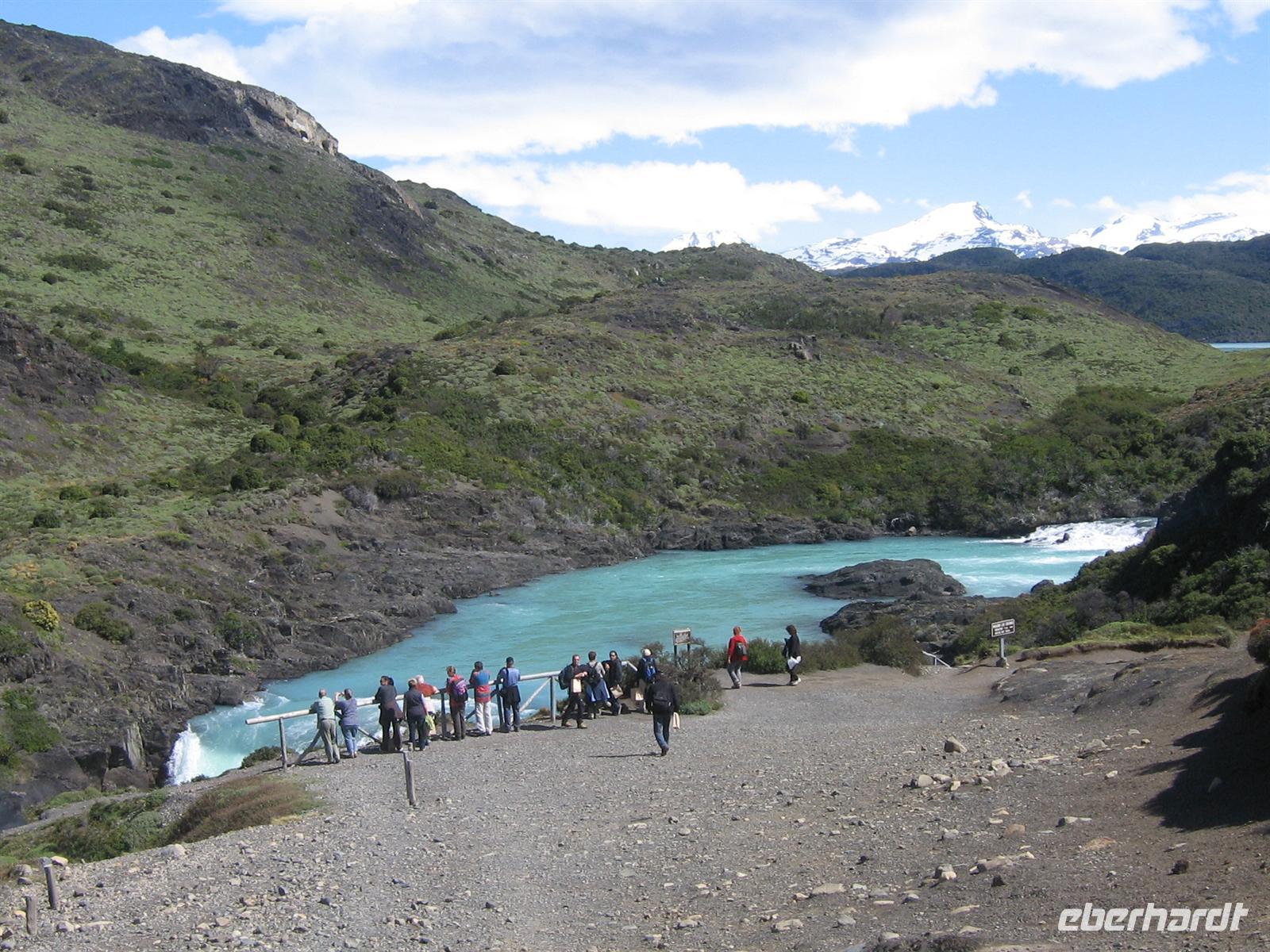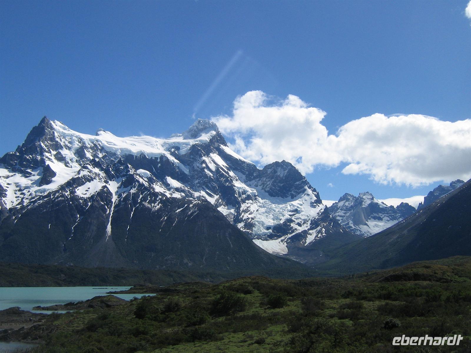 Heute begannen wir unseren Tag auch wieder früh, denn der Nationalpark Torre del Paine wartete auf unseren Besuch. Die weite Landschaft mit Gletschern, tiefblauen Seen und Wasserfällen ist einzigartig schön! Zur Entdeckung des Nationalparks mit einer Fläche von 1.800 Quadratkilometern bräuchte man mehrere Tage. Wir versuchten, während der Rundfahrt soviel wie möglich zu entdecken. Der Tag begrüßte uns mit einigen Wolken und es fielen sogar einige Regentropfen. Doch wie es bei Engeln so ist, zog der Himmel auf und ein strahlend blauer Himmel mit einigen Wolken gab uns den Blick auf den Torre del Paine mit seinen markanten Türmen frei. Nach mehreren Fotostopp erreichten wir den Eingang des Nationalpark und kurz danach den Wasserfall. Der wichtigste Fluss ist der Rio Paine, der im Dickson-Gletscher entspringt. Auf Grund des schönen Wetters entschlossen wir uns für eine Wanderung zum Nordenskjöld-See. Alle dachten schon wir haben unseren Picknick-Platz erreicht, doch wir wanderten etwas weiter zum See. Ein schöner Ausblick auf den See, die Hörner und den Gletscher entschädigte uns für die Strapazen. Es war ein wunderschöner Platz, wo wir aus unser Lunchbox essen konnten. Die Freude war groß als wir dazu ein gut gekühltes Bier reichten. Niemand hatte den Kiosk entdeckt, wo wir heimlich das Bier kauften - ha, ha. Wieder zurück am Wasserfall fuhren wir zum Grey-See. Wir spazierten am See entlang und bestaunten die hellblau leuchtenden Eisblöcke, die vom Grey-Gletscher abgebrochen waren und im See trieben. Es war sehr beeindruckend. Nach dem Verlassen des Nationalparks besuchten wir die Milodon-Höhle. In einer gut zugänglichen Höhle wurden die Reste eines urzeitlichen Wesens entdeckt. Es handelte sich dabei um die Überreste eines Mlodons, eines knapp 12.000 Jahre alten Riesenfaultiers. Und wieder ging ein wunderschöner Tag zu Ende. Wie uns Elena versicherte mit einem Traumwetter, welches sie selbst so noch nicht erlebt hatte.