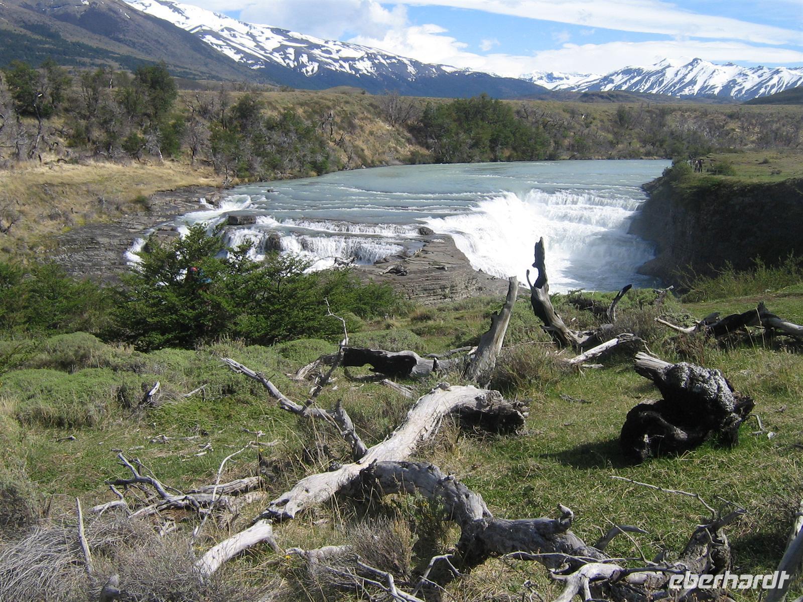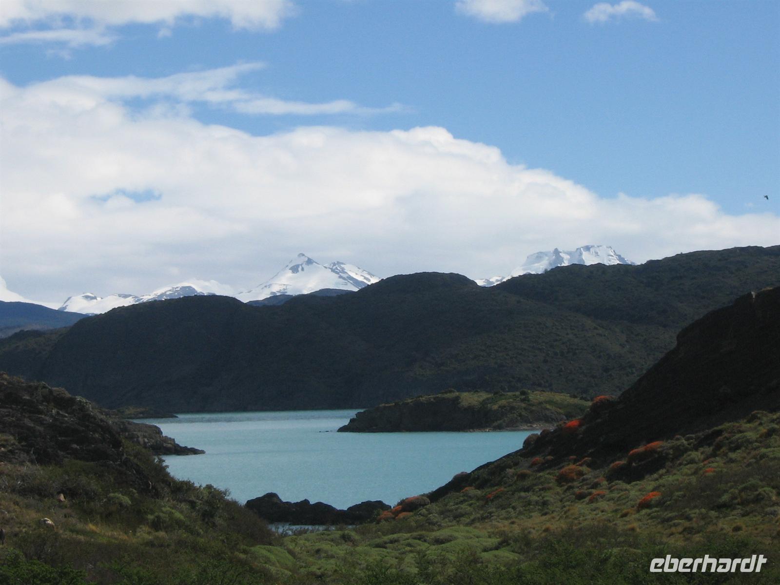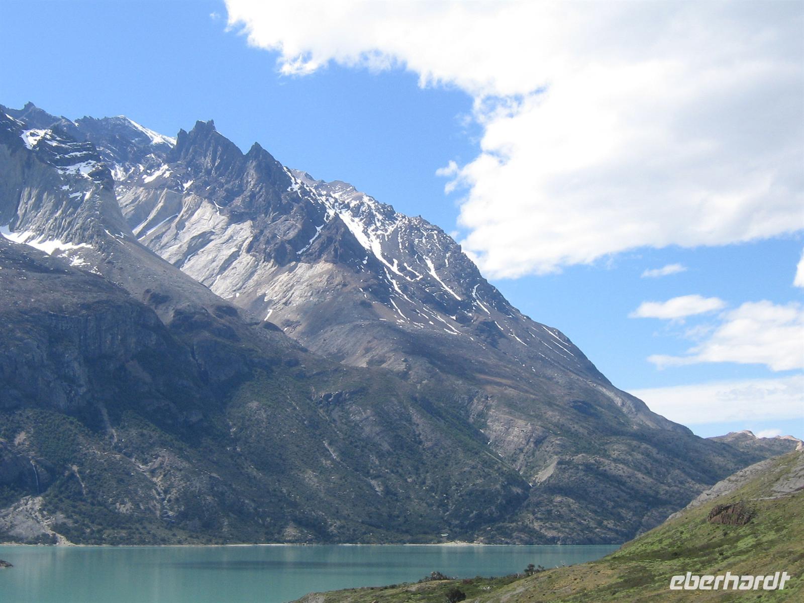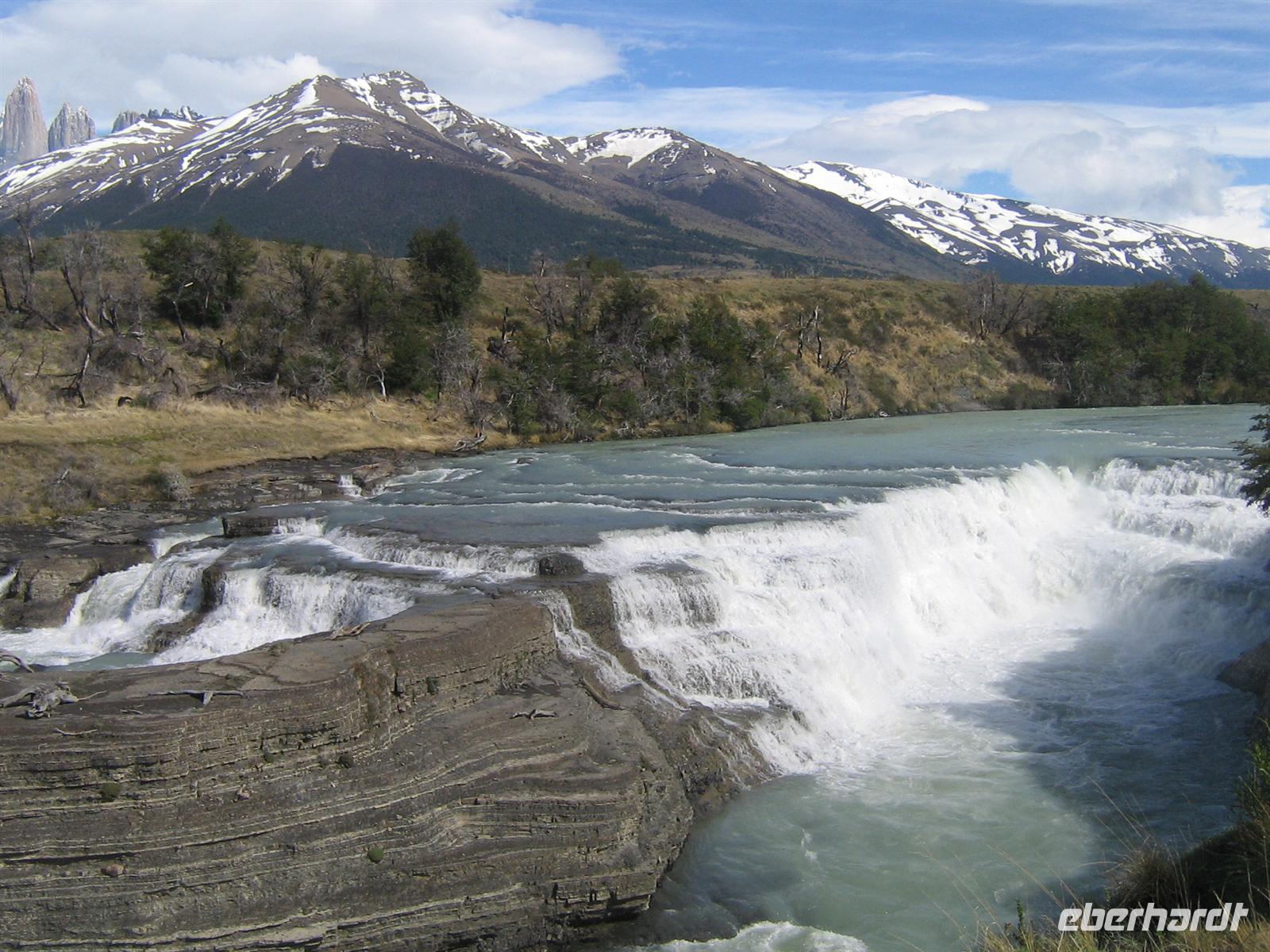 Heute begannen wir unseren Tag auch wieder früh, denn der Nationalpark Torre del Paine wartete auf unseren Besuch. Die weite Landschaft mit Gletschern, tiefblauen Seen und Wasserfällen ist einzigartig schön! Zur Entdeckung des Nationalparks mit einer Fläche von 1.800 Quadratkilometern bräuchte man mehrere Tage. Wir versuchten, während der Rundfahrt soviel wie möglich zu entdecken. Der Tag begrüßte uns mit einigen Wolken und es fielen sogar einige Regentropfen. Doch wie es bei Engeln so ist, zog der Himmel auf und ein strahlend blauer Himmel mit einigen Wolken gab uns den Blick auf den Torre del Paine mit seinen markanten Türmen frei. Nach mehreren Fotostopp erreichten wir den Eingang des Nationalpark und kurz danach den Wasserfall. Der wichtigste Fluss ist der Rio Paine, der im Dickson-Gletscher entspringt. Auf Grund des schönen Wetters entschlossen wir uns für eine Wanderung zum Nordenskjöld-See. Alle dachten schon wir haben unseren Picknick-Platz erreicht, doch wir wanderten etwas weiter zum See. Ein schöner Ausblick auf den See, die Hörner und den Gletscher entschädigte uns für die Strapazen. Es war ein wunderschöner Platz, wo wir aus unser Lunchbox essen konnten. Die Freude war groß als wir dazu ein gut gekühltes Bier reichten. Niemand hatte den Kiosk entdeckt, wo wir heimlich das Bier kauften - ha, ha. Wieder zurück am Wasserfall fuhren wir zum Grey-See. Wir spazierten am See entlang und bestaunten die hellblau leuchtenden Eisblöcke, die vom Grey-Gletscher abgebrochen waren und im See trieben. Es war sehr beeindruckend. Nach dem Verlassen des Nationalparks besuchten wir die Milodon-Höhle. In einer gut zugänglichen Höhle wurden die Reste eines urzeitlichen Wesens entdeckt. Es handelte sich dabei um die Überreste eines Mlodons, eines knapp 12.000 Jahre alten Riesenfaultiers. Und wieder ging ein wunderschöner Tag zu Ende. Wie uns Elena versicherte mit einem Traumwetter, welches sie selbst so noch nicht erlebt hatte.