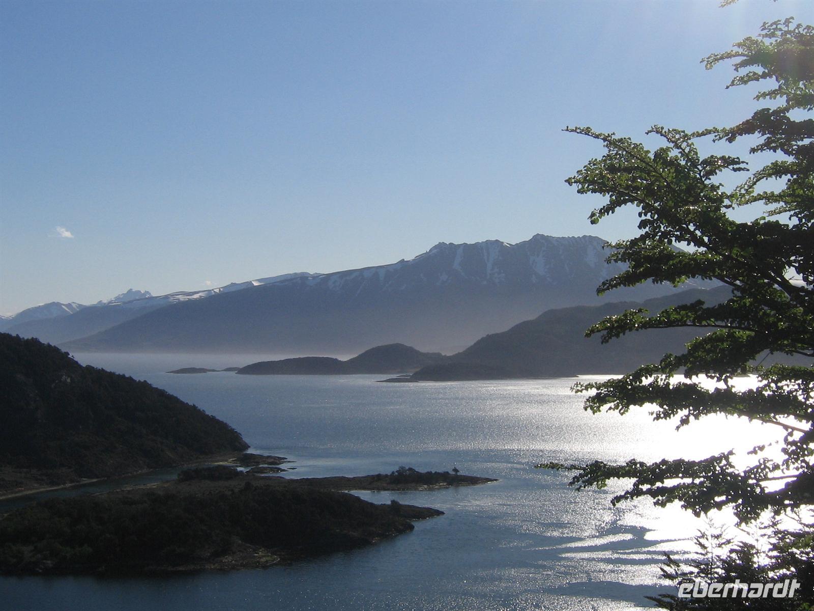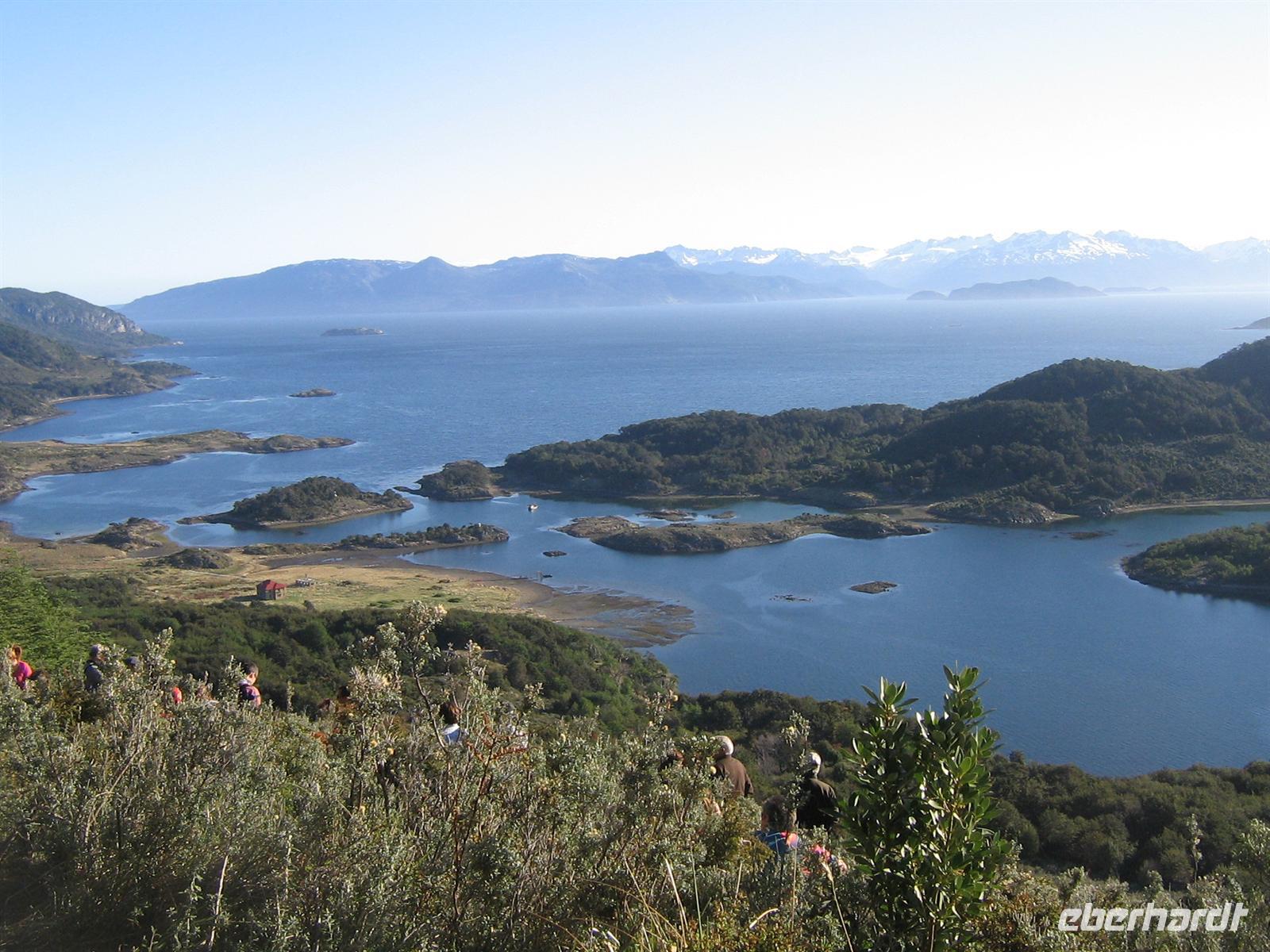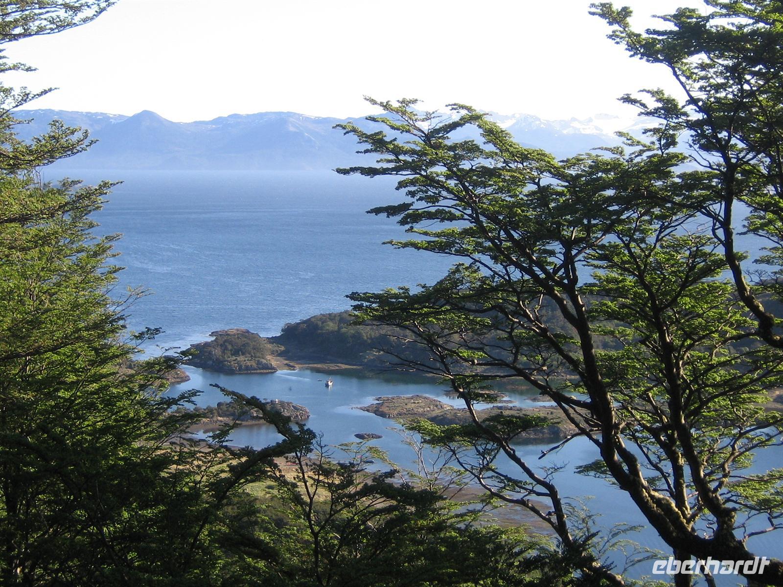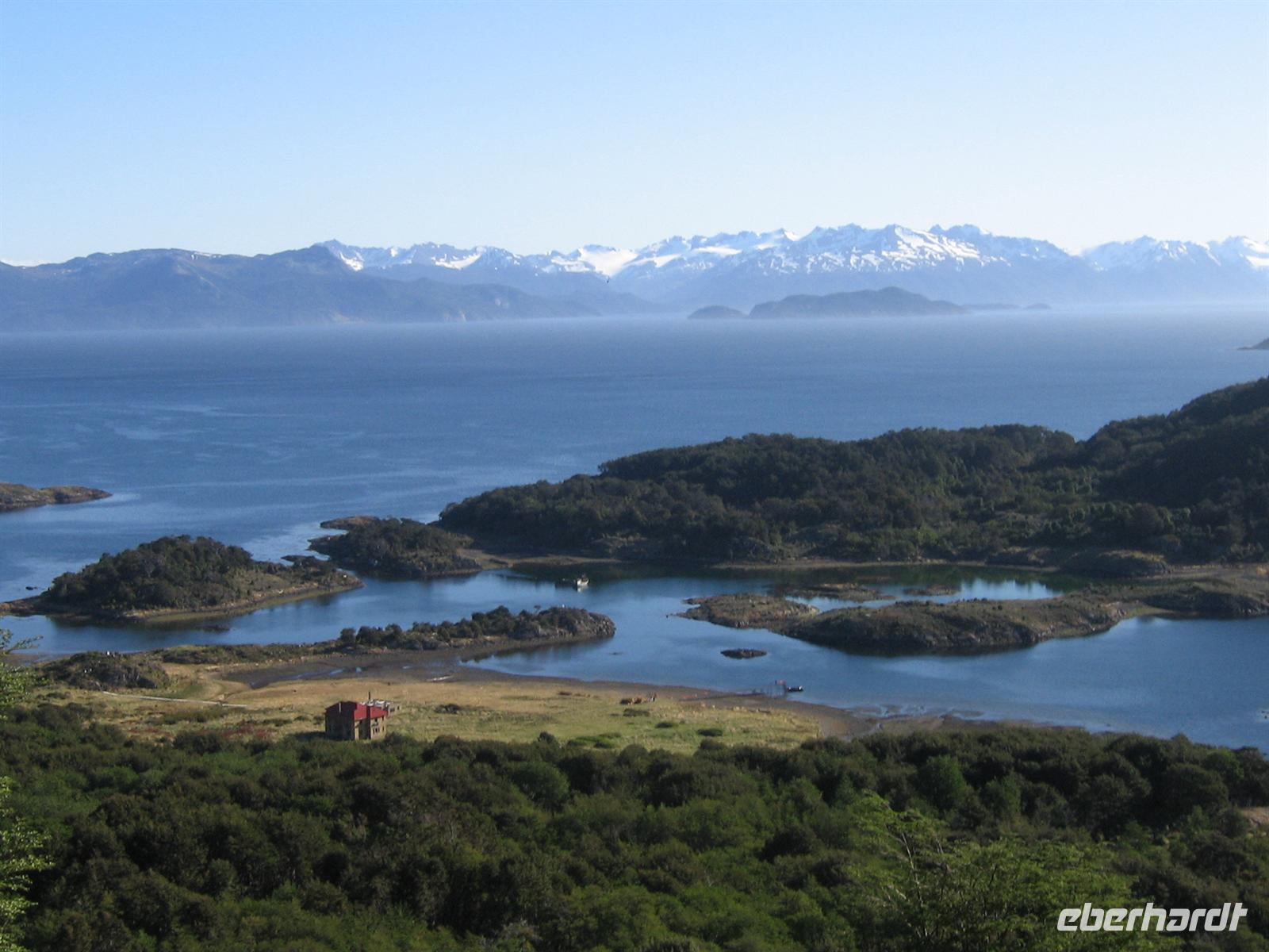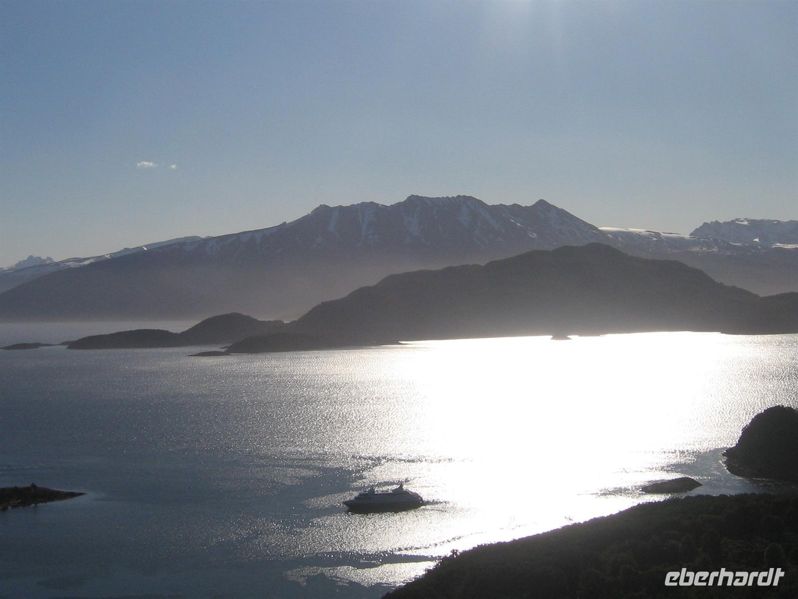 Im Leuchtturm konnte man sich in ein „Gipfelbuch“ eintragen und ein Zertifikat von Kap Horn erhalten. Am Nachmittag besuchten wir die Wulaia-Bucht. Wir fuhren an Land und besichtigten ein kleines Museum. Cruceros Australis baute dazu die ehemalige Marine Radio-Station um. Ein Teil der Gruppe wanderte den Berg hinauf. Unterwegs hofften wir, Biber zu beobachten, aber sie hatten sich gut versteckt. Wir erreichen den Gipfel und uns erwartete ein einmaliger Blick auf die Bucht. Eine gespenstige Stille ließ uns alle inne halten und jeder hing seinen Gedanken nach. Während des Abstieges plötzlich ein Murmeln, es wurden Biber gesichtet. In aller Ruhe schwammen und tauchten sie in einem selbst angefertigten Tümpel. Am Ufer angekommen hielt die Crew noch eine Überraschung bereit. Ein Drink zum Abschluss eines sehr schönen und eindrucksvollen Tages.
