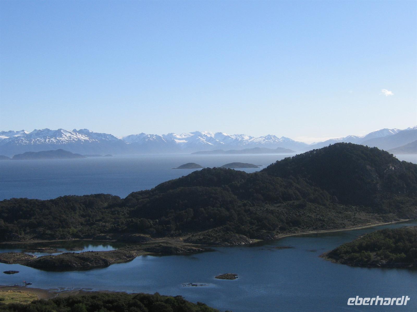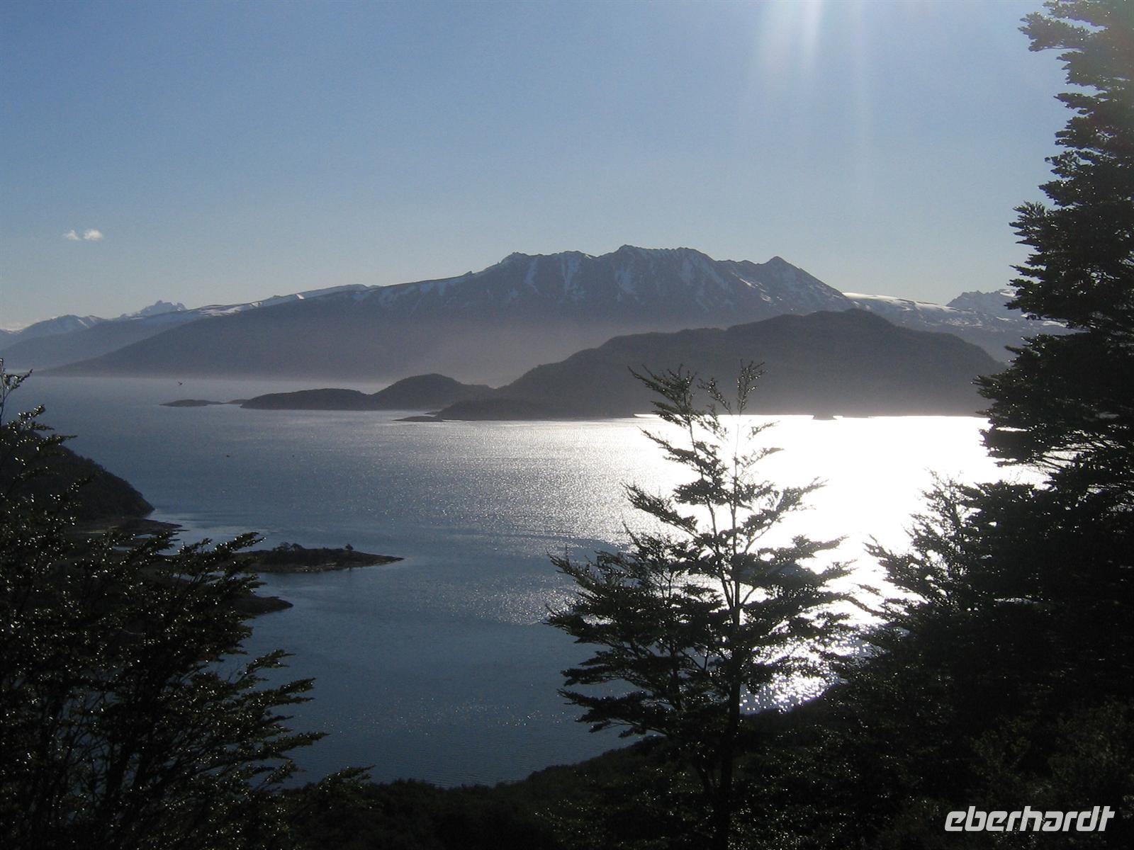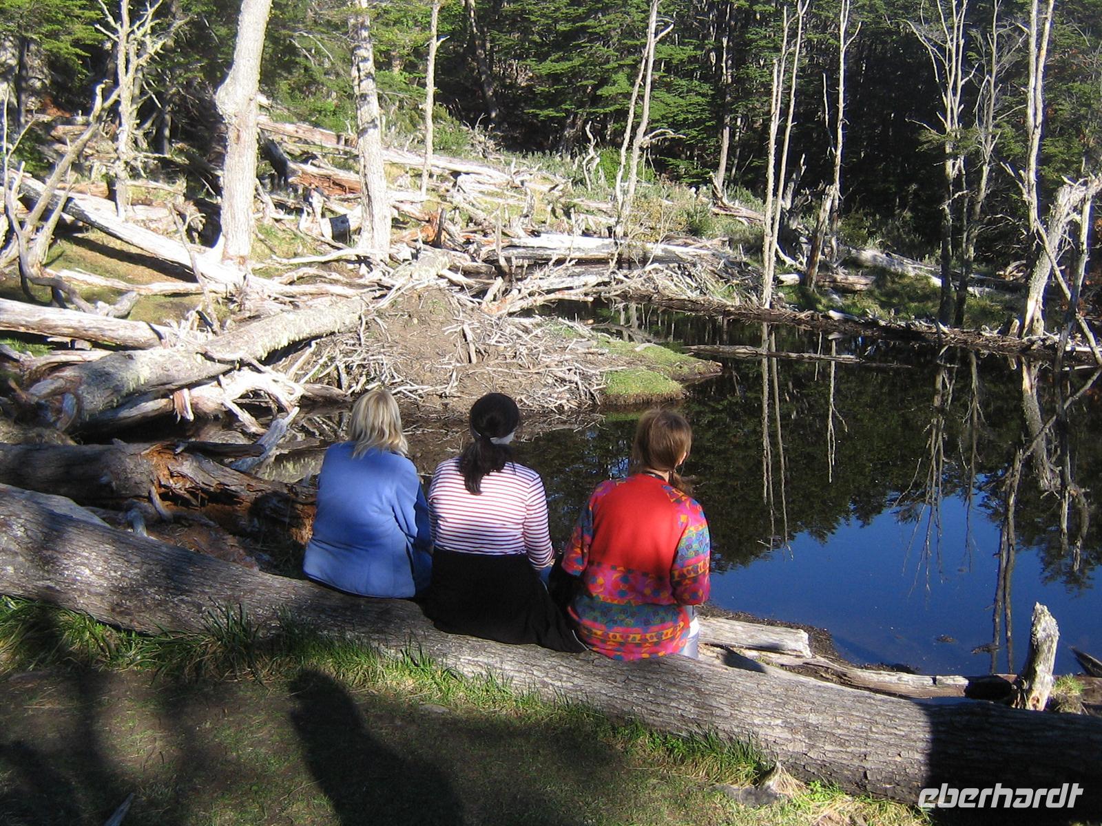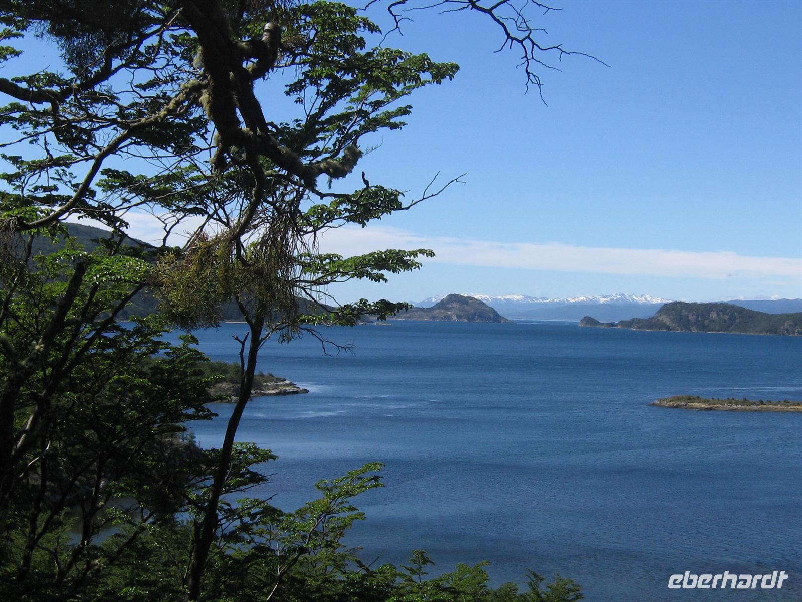 Im Leuchtturm konnte man sich in ein „Gipfelbuch“ eintragen und ein Zertifikat von Kap Horn erhalten. Am Nachmittag besuchten wir die Wulaia-Bucht. Wir fuhren an Land und besichtigten ein kleines Museum. Cruceros Australis baute dazu die ehemalige Marine Radio-Station um. Ein Teil der Gruppe wanderte den Berg hinauf. Unterwegs hofften wir, Biber zu beobachten, aber sie hatten sich gut versteckt. Wir erreichen den Gipfel und uns erwartete ein einmaliger Blick auf die Bucht. Eine gespenstige Stille ließ uns alle inne halten und jeder hing seinen Gedanken nach. Während des Abstieges plötzlich ein Murmeln, es wurden Biber gesichtet. In aller Ruhe schwammen und tauchten sie in einem selbst angefertigten Tümpel. Am Ufer angekommen hielt die Crew noch eine Überraschung bereit. Ein Drink zum Abschluss eines sehr schönen und eindrucksvollen Tages.