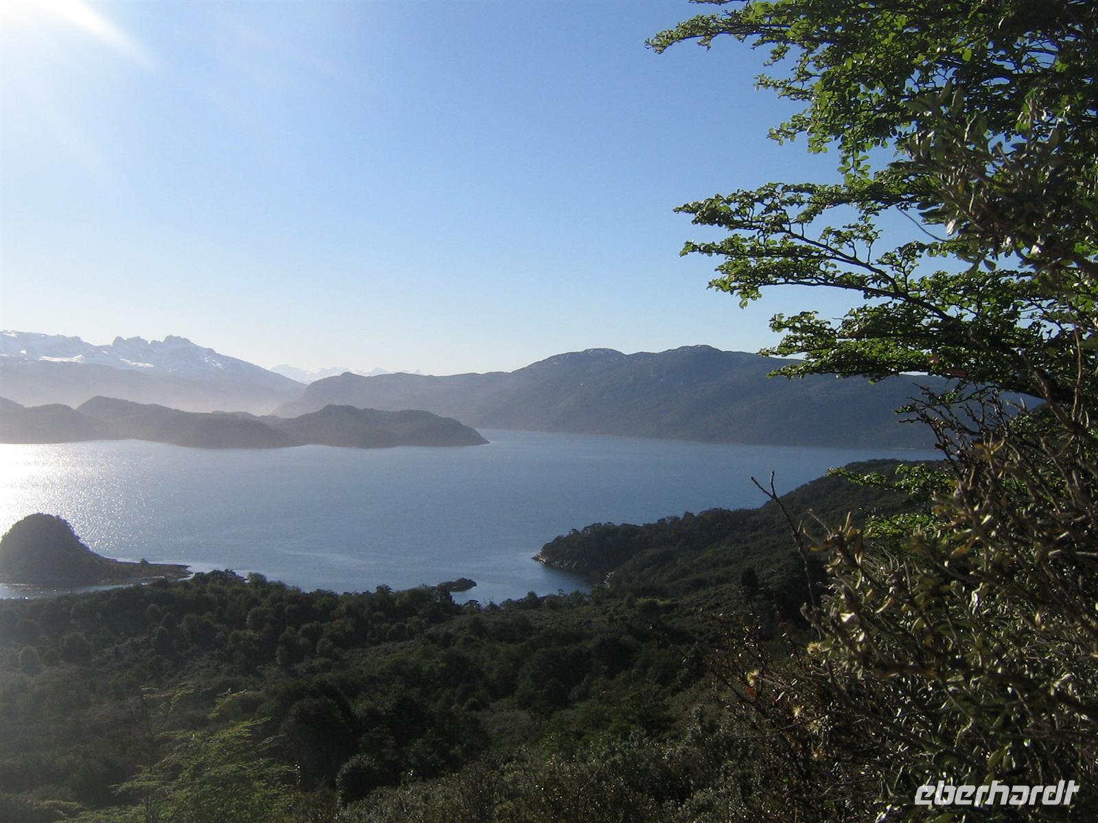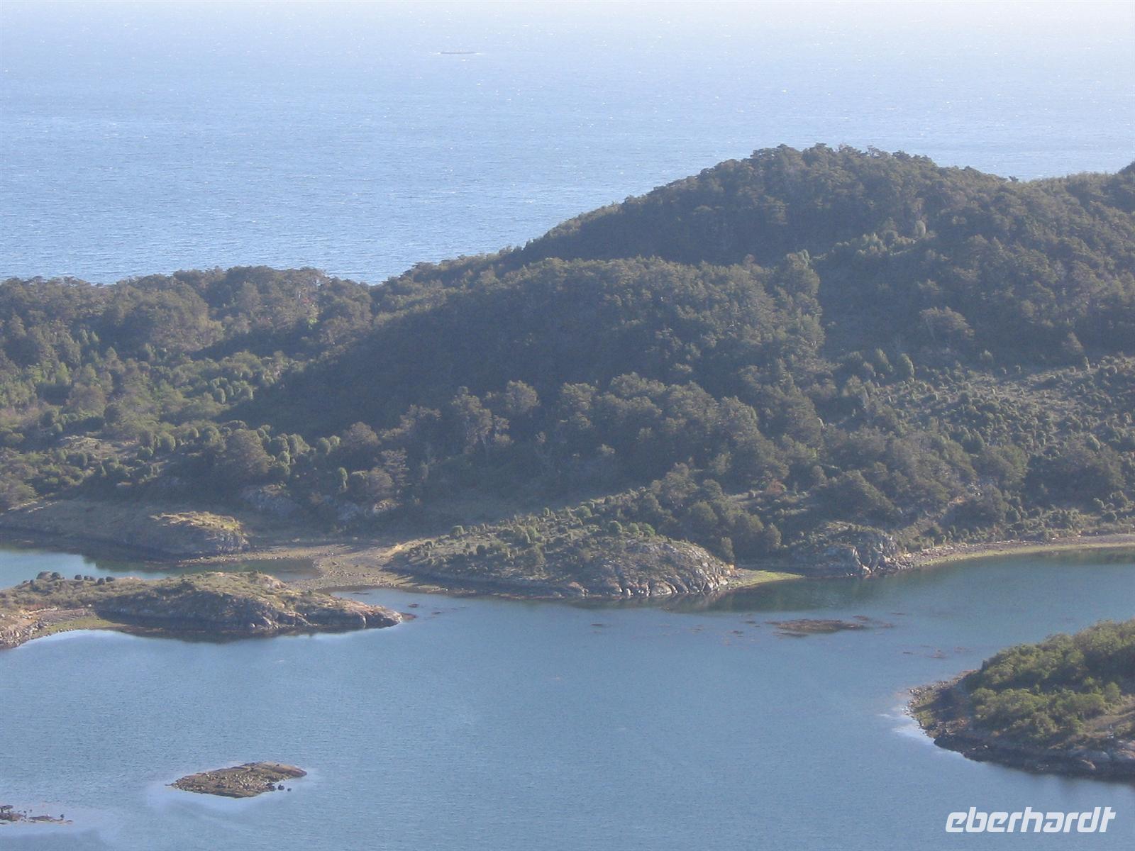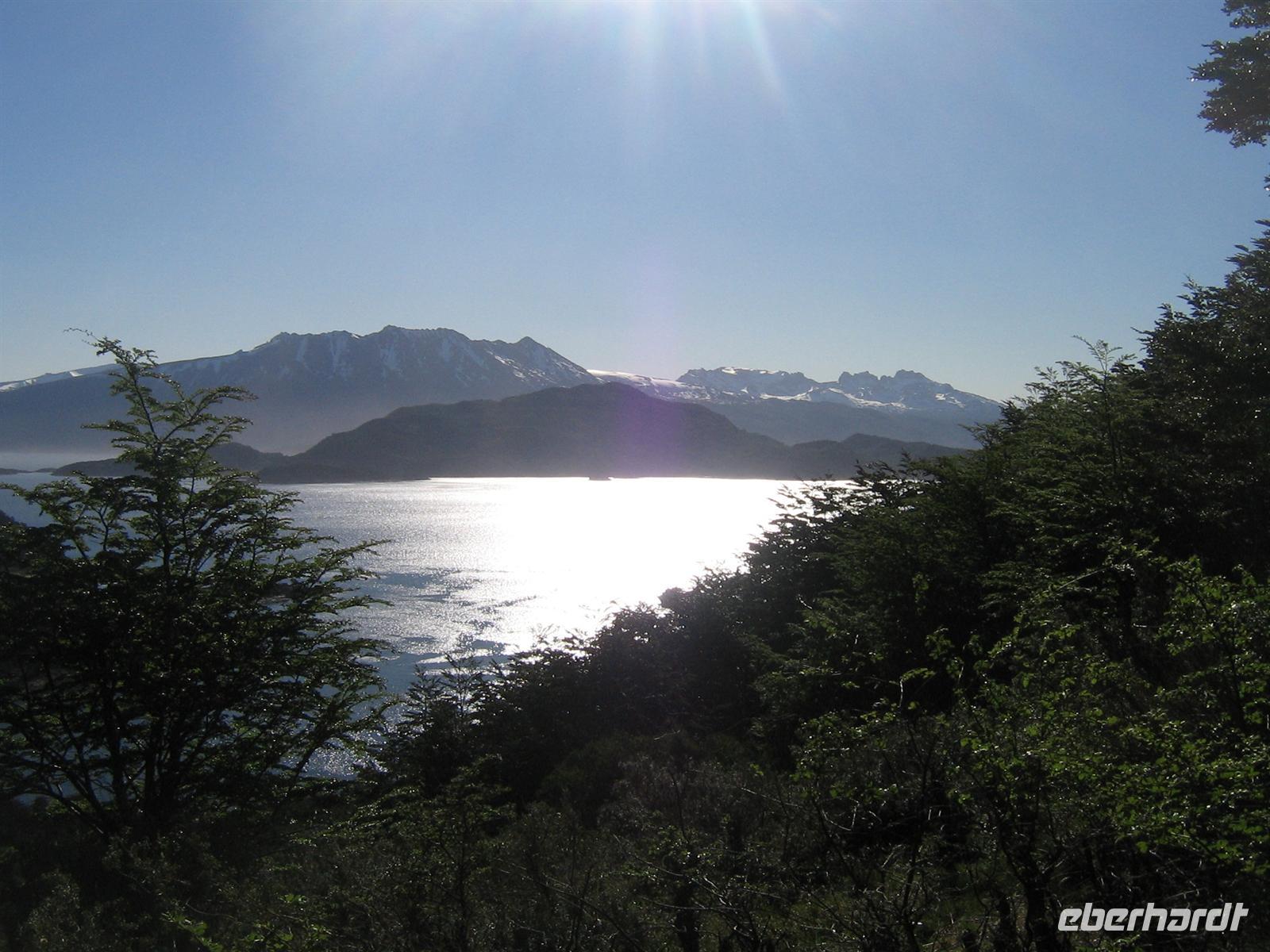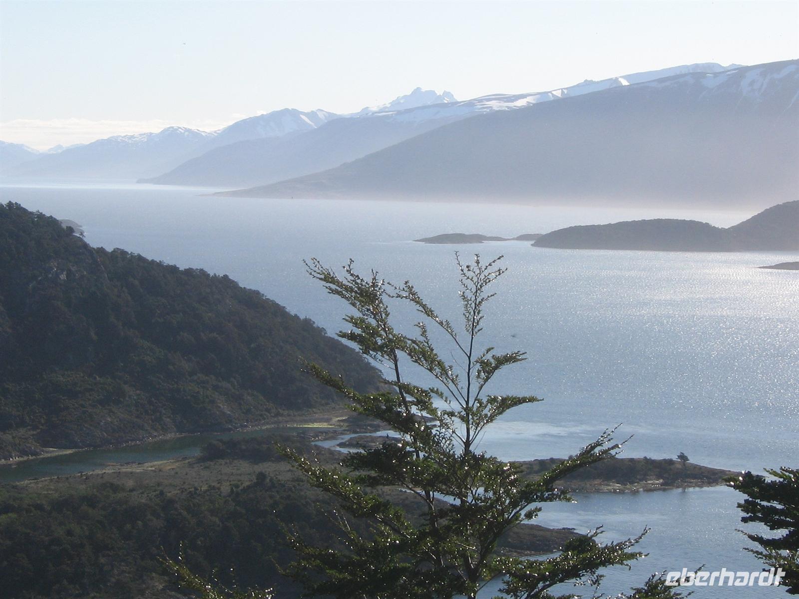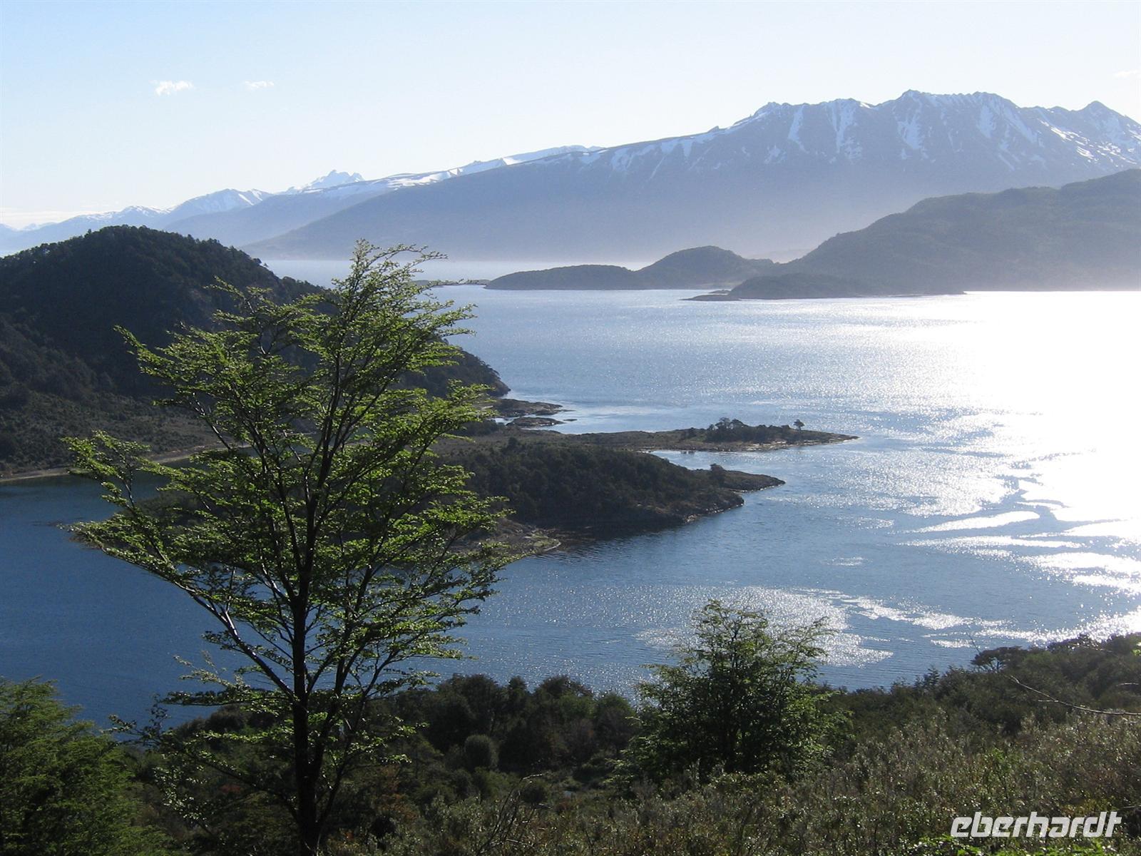 Im Leuchtturm konnte man sich in ein „Gipfelbuch“ eintragen und ein Zertifikat von Kap Horn erhalten. Am Nachmittag besuchten wir die Wulaia-Bucht. Wir fuhren an Land und besichtigten ein kleines Museum. Cruceros Australis baute dazu die ehemalige Marine Radio-Station um. Ein Teil der Gruppe wanderte den Berg hinauf. Unterwegs hofften wir, Biber zu beobachten, aber sie hatten sich gut versteckt. Wir erreichen den Gipfel und uns erwartete ein einmaliger Blick auf die Bucht. Eine gespenstige Stille ließ uns alle inne halten und jeder hing seinen Gedanken nach. Während des Abstieges plötzlich ein Murmeln, es wurden Biber gesichtet. In aller Ruhe schwammen und tauchten sie in einem selbst angefertigten Tümpel. Am Ufer angekommen hielt die Crew noch eine Überraschung bereit. Ein Drink zum Abschluss eines sehr schönen und eindrucksvollen Tages.