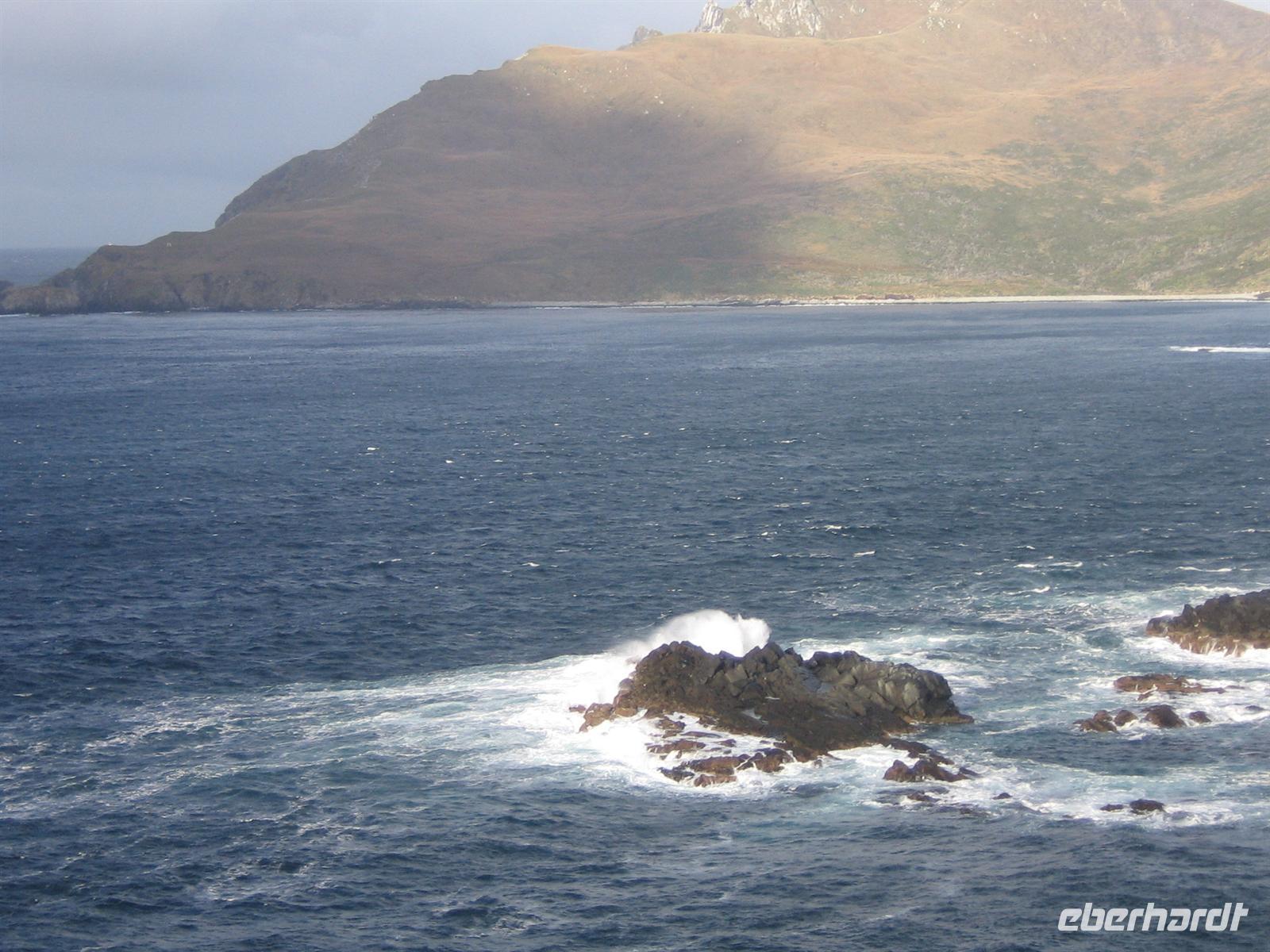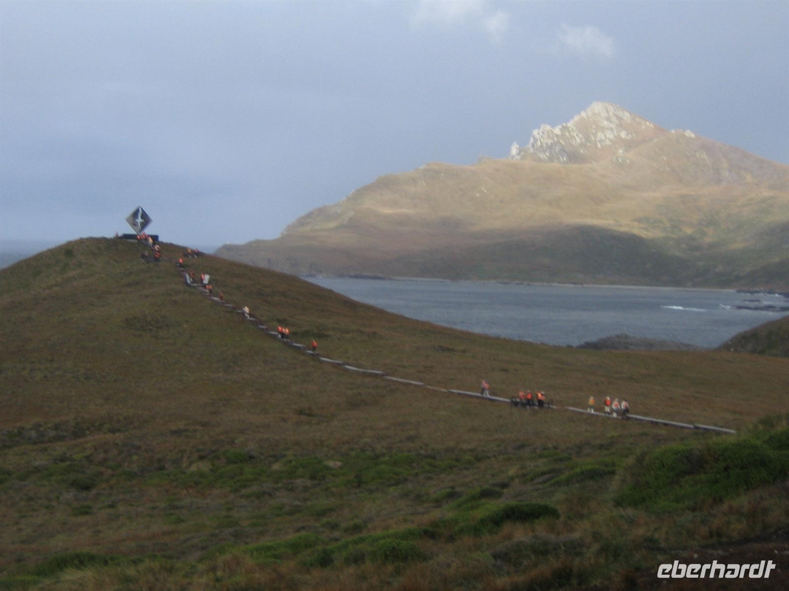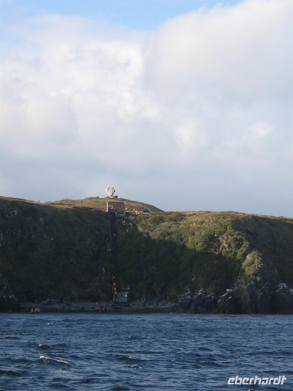 Ein schöner Sonnenaufgang ließ uns erahnen, dass uns auch heute ein schöner Tag erwartete. Jeder hat schon davon geträumt, das legendäre Kap Horn zu besuchen. Es wurde am 30.01.1616 von einer holländischen Handelsexpedition entdeckt. Eine ruhige See und Sonnenschein ließ unseren Traum wahr werden! Nur unsere 120 Gäste kletterten die 160 Holzstufen zum Kap hinauf. Etwas ungewohnt in Gummistiefeln erreichten wir das Kap Horn-Denkmal. Eine einzigartige Stille erwartete uns. Auf dem Weg zum Denkmal sind zwei Marmorplatten aufgestellt. Auf einer von Ihnen befindet sich die Widmung des Denkmals und auf der anderen folgender Vers: