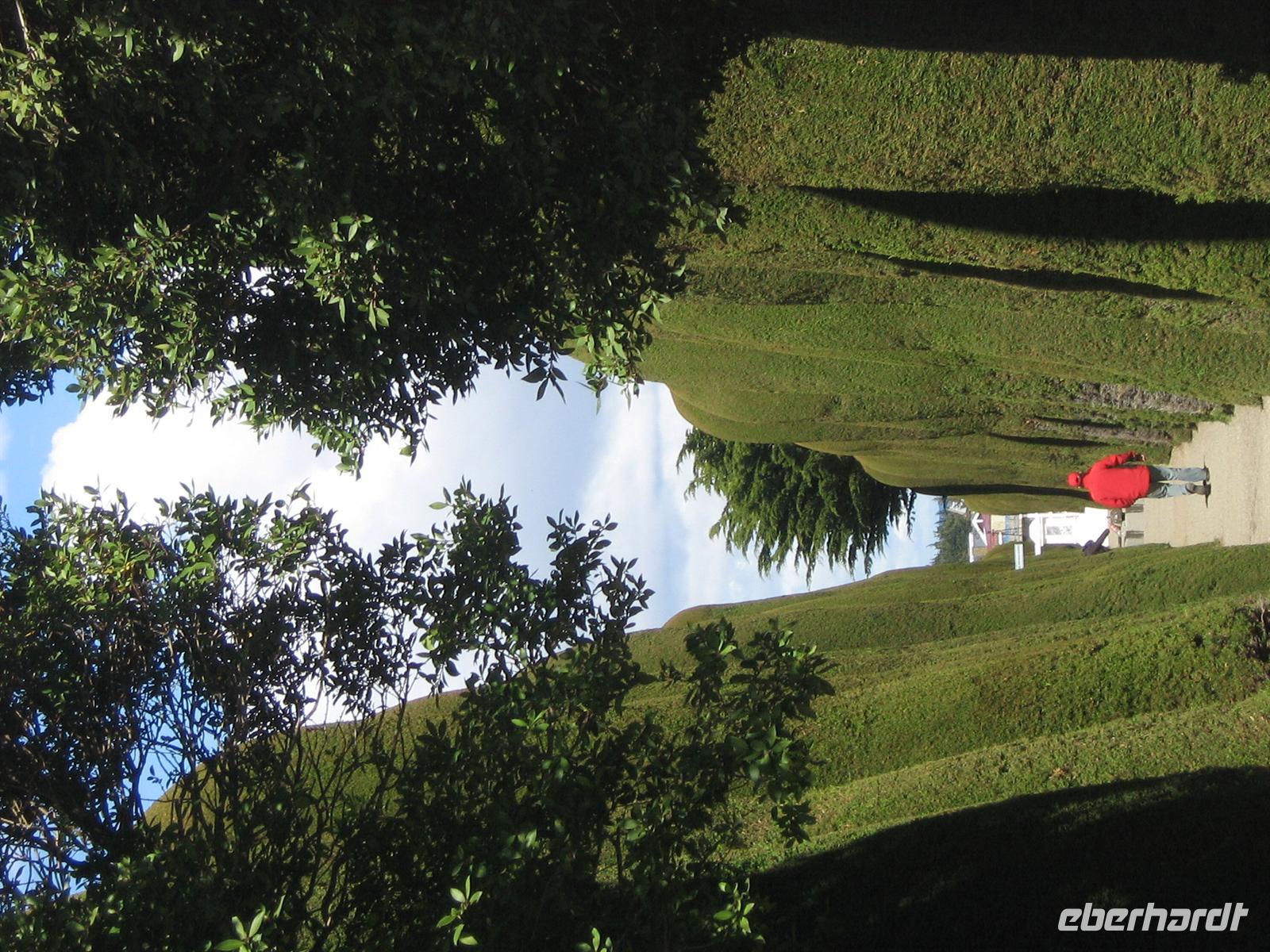 Unser Halbtagesausflug führte uns zuerst zum dem Zeremonienplatz Thahai. Der Puna Pau-Steinbruch brachte uns auch zum Staunen. Einige Kilometer vom Meer werden hier aus roter vulkanischer Schlacke die Pukaos, die roten Hüte der Moai, angefertigt. Viele der roten Kopfbedeckungen liegen hier verstreut auf der Wiese. Anschließend fahren wir nach Ahu Akivi. Da standen sie vor uns, die sieben Moai, die einzigen, die aufs Meer schauen! Der Legende zufolge repräsentieren sie die sieben Kundschafter, die als Vorhut auf die Insel kamen. Wir besuchten die Lavahöhle Ana Te Pahu, die früher als Wohnstätte diente. Der Eingang führte durch einen tropischen Garten. Wir waren überrascht, das hier auch Bananen und Wein wachsen. Der Nachmittag stand zur freien Verfügung zum Kaffeetrinken oder zu einem Bummel im Ort bzw. entlang der Pazifikküste.