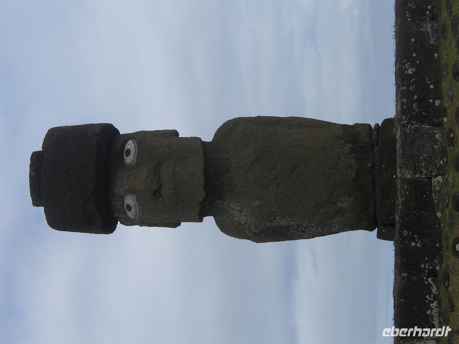 Heute besuchten wir den Rano Kau-Vulkan. Wir fuhren entlang der Küste und erreichten das Zeremoniedorf Orongo. Es besteht aus ehemaligen höhlenartigen Steinhäusern, mit einer Grundfläche von 7 Metern Länge und 1,80 Metern Breite. Die ehemaligen Wohnhäuser waren nur 1,30 Meter hoch und konnten nur kriechend erreicht werden. Im Mittelpunkt des Dorfes befindet sich das Höhlenhaus den Vogelmannes. Das Dorf entstand gemeinsam mit dem Vogelmann-Kult. In diesem Kult ist der Makemake der Oberste Gott - der Schöpfer der Erde, der Sonne, des Mondes und der Menschen. Er belohnt das Gute und bestraft das Böse und der Vogelmann ist sein oberster Priester. In einem Ritual wurde der Vogelmann bestimmt, der dann ein Jahr herrschte. Die Krieger der verschiedenen Stämme traten gegeneinander an. Sie mussten ein Ei der Rauchseeschwalbe finden. Dafür stiegen sie die steilen Klippen herab und schwammen hinüber zur Insel, suchten das Ei und schwammen damit zurück. Derjenige, der mit dem Ei zuerst zurück war, war der Vogelmann für ein Jahr. Er lebte sehr zurück gezogen und zog sich danach in sein Alltagsleben zurück. In der Nähe des Kraters liegen die beiden Ahu Vinapu. Sie verblüffen durch ihre fugen- und mörtellos zusammengesetzte Mauer. Sie erinnerten an die Bauten der Inkas. Doch keiner kennt bis heute das Geheimnis dieser Anlage.