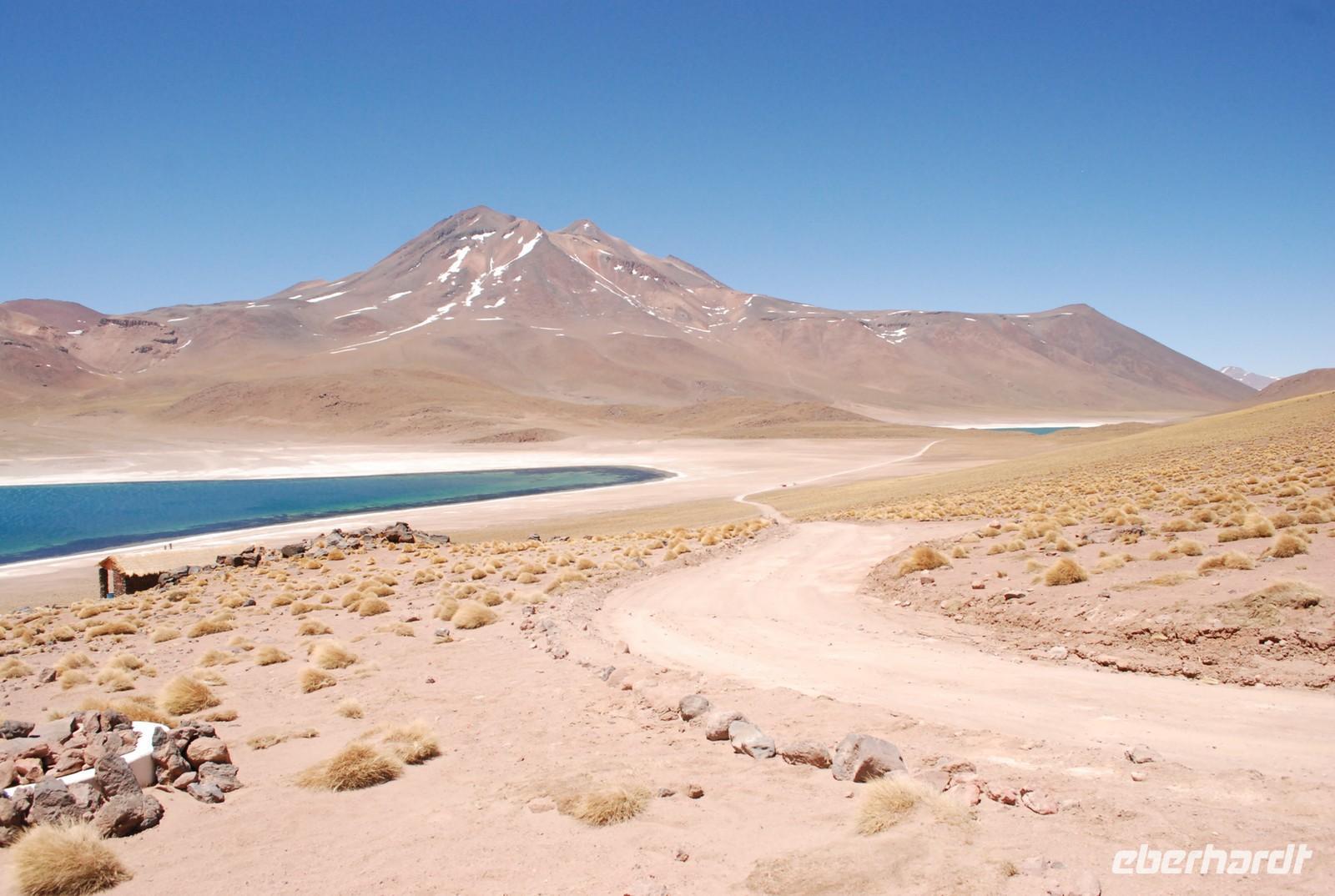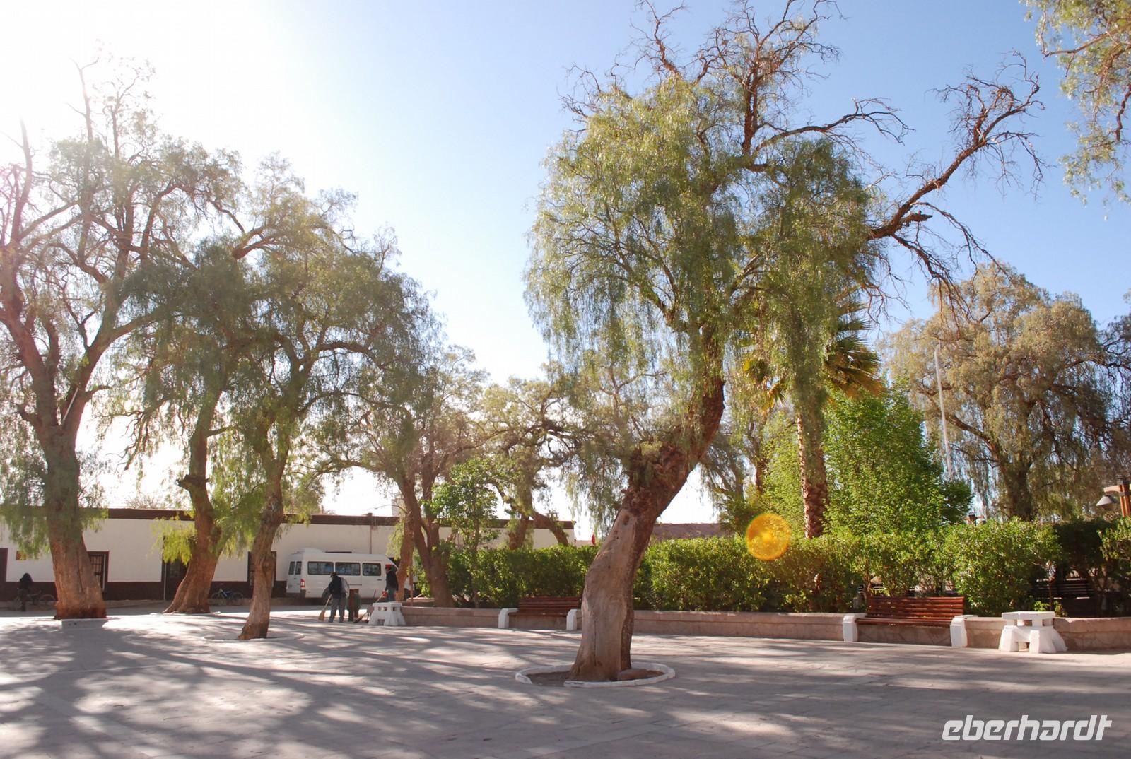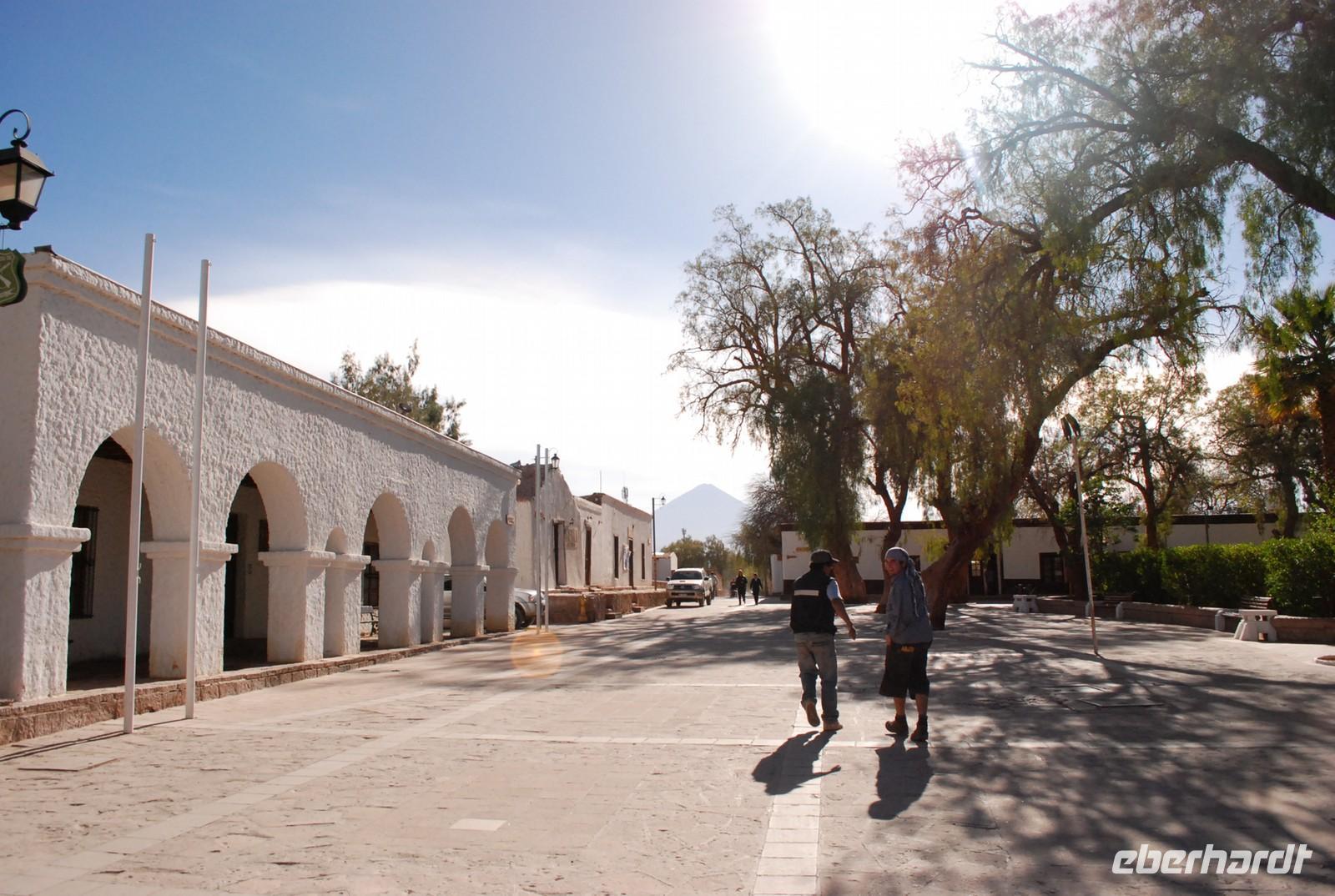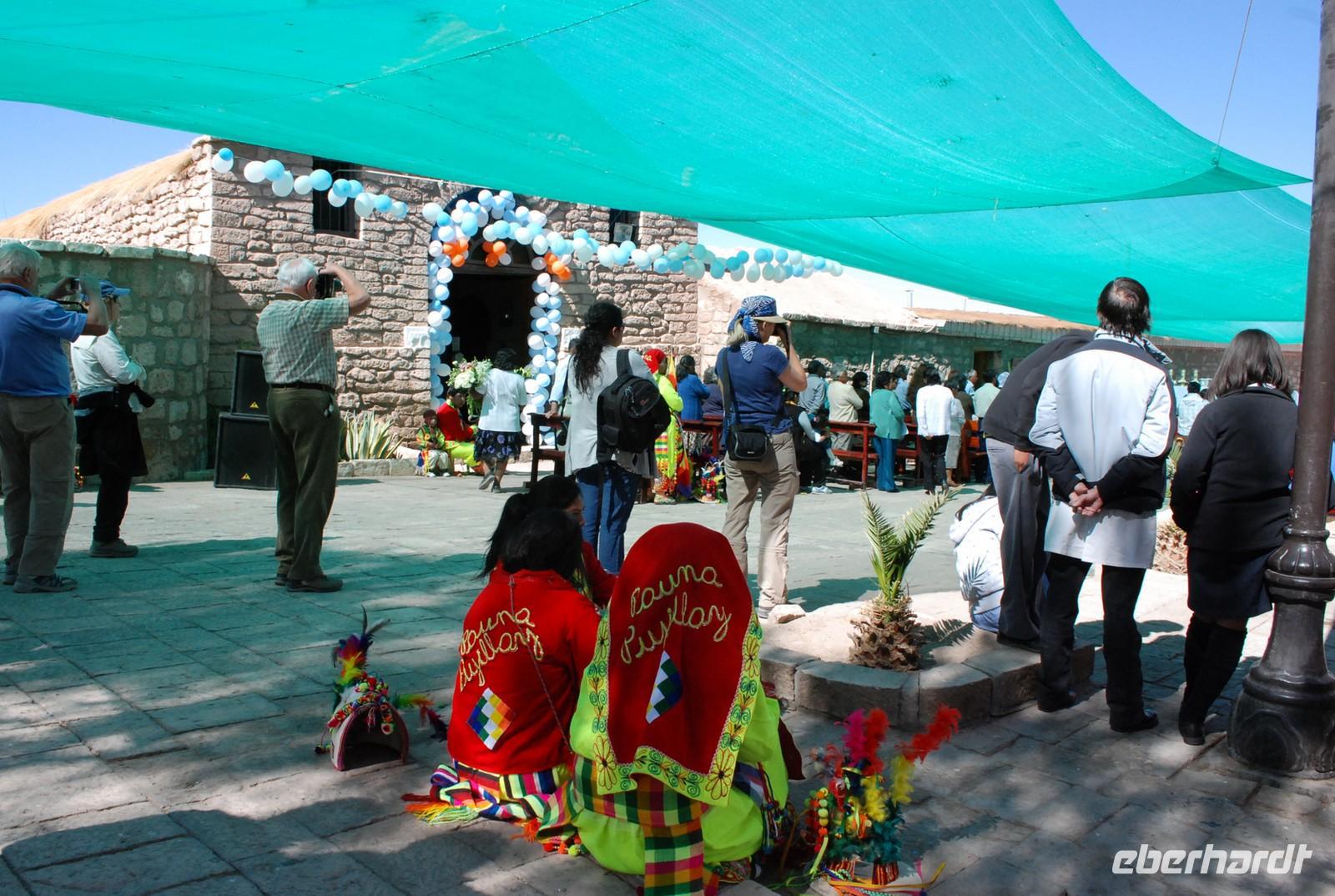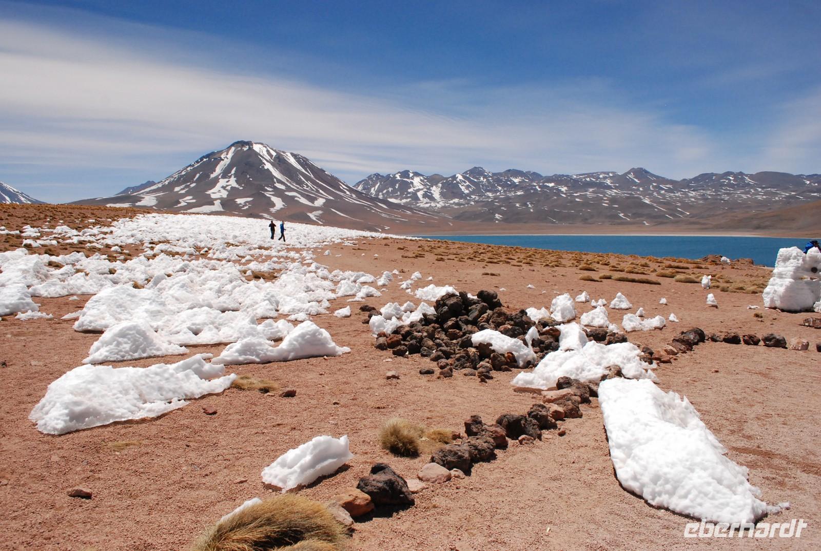 Heute beginnen wir unseren Tag mit einem Rundgang in San Pedro. Wir besichtigen die Kirche, deren Dachkonstruktion aus Kakteenholz angefertigt wurde, und wir "stürmen" die Post. Wir reisen nun in Richtung Süden und passieren als erstes das Dorf Socaire, wo wir in der Schlucht allerhand Blühendes entdecken und einen Gottesdienst zu Ehren San Lucas auf dem Marktplatz erleben. Über Socaire fahren wir nun auf 4000 Meter Höhe und werden hier von den letzten Überresten des Schnees überrascht. Die blau schimmernden Lagunen Miscanti und Miniques liegen wunderschön zwischen den gleichnamigen Vulkanen. Wir laufen bei circa 7 Grad Celsius dick eingepackt in Richtung Picknickplatz und werden zu einem gesunden Buffet mit Salaten, Pebre und frischer Lasagne und Braten eingeladen. Dazu ein Schlückchen Rotwein und die Höhe lässt sich ganz gut aushalten. Am Nachmittag befinden wir uns dann wieder auf circa 2400 Metern Höhe und besuchen die Lagune Chaxa inmitten des Atacama-Salzsees. Die Lagunen, die Flamingos, die unwirkliche Umgebung des Salzsees und die Andengipfel im Hintergrund - ein einmaliges Erlebnis! Wieder zurück in San Pedro lassen wir den Abend gemütlich ausklingen!
