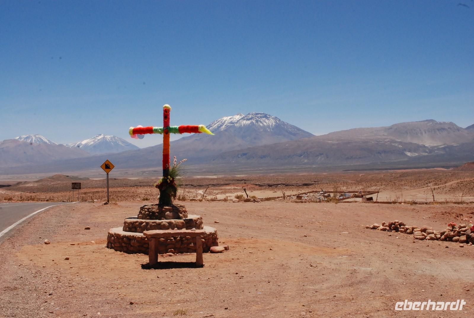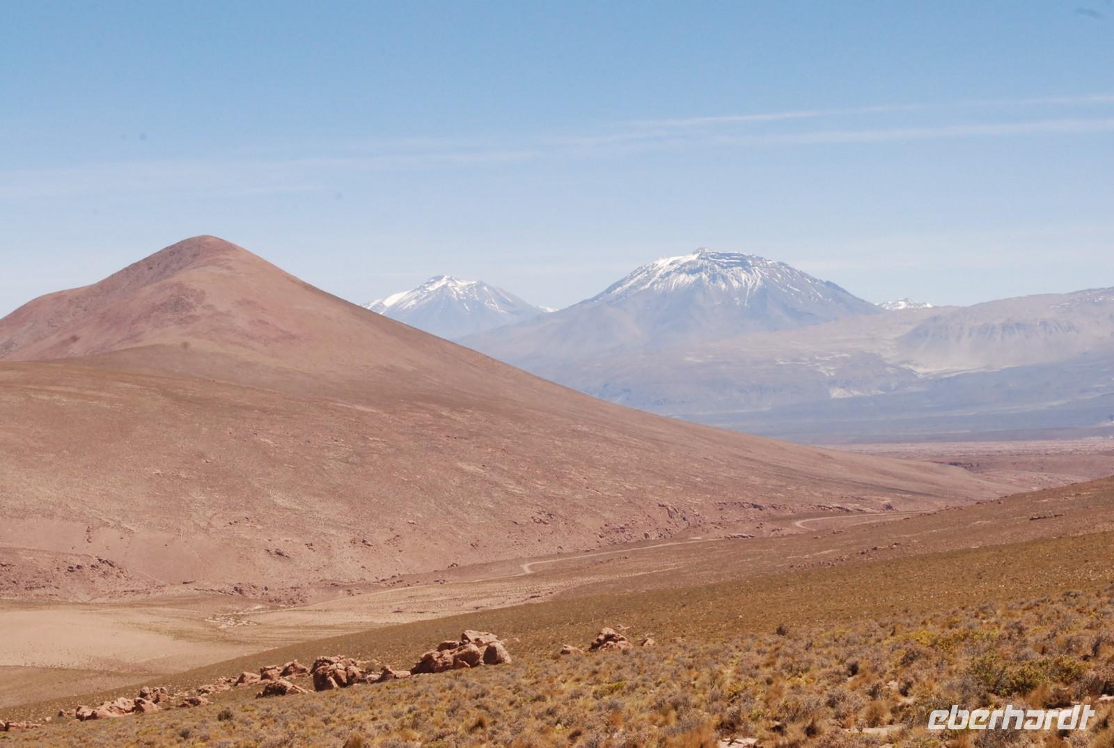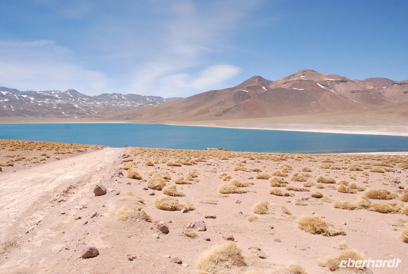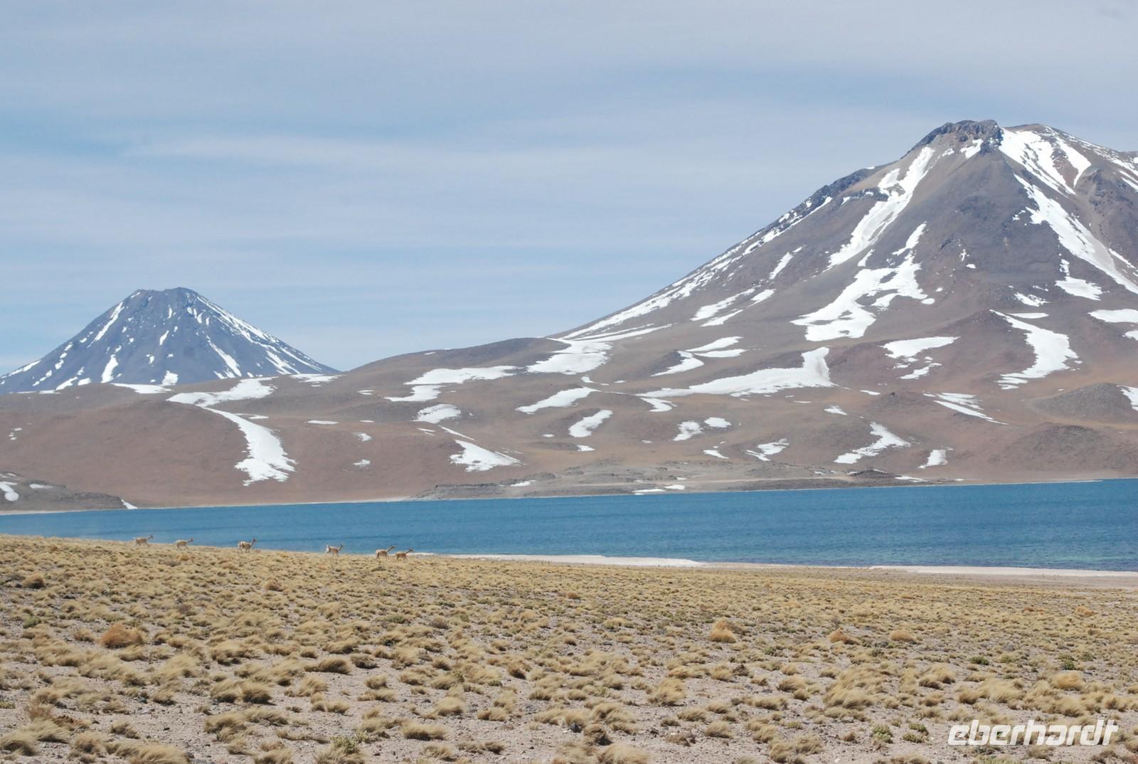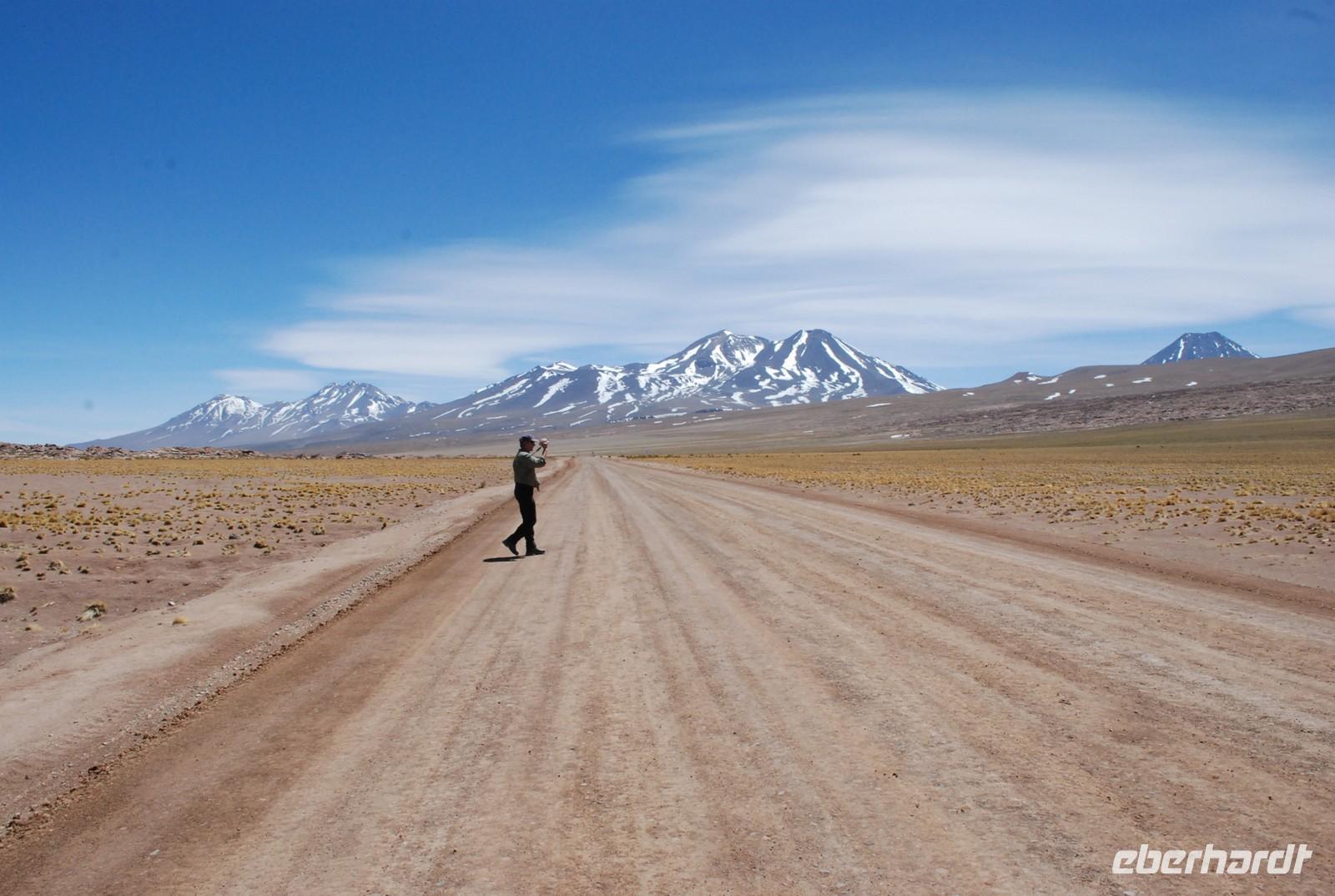 Heute beginnen wir unseren Tag mit einem Rundgang in San Pedro. Wir besichtigen die Kirche, deren Dachkonstruktion aus Kakteenholz angefertigt wurde, und wir "stürmen" die Post. Wir reisen nun in Richtung Süden und passieren als erstes das Dorf Socaire, wo wir in der Schlucht allerhand Blühendes entdecken und einen Gottesdienst zu Ehren San Lucas auf dem Marktplatz erleben. Über Socaire fahren wir nun auf 4000 Meter Höhe und werden hier von den letzten Überresten des Schnees überrascht. Die blau schimmernden Lagunen Miscanti und Miniques liegen wunderschön zwischen den gleichnamigen Vulkanen. Wir laufen bei circa 7 Grad Celsius dick eingepackt in Richtung Picknickplatz und werden zu einem gesunden Buffet mit Salaten, Pebre und frischer Lasagne und Braten eingeladen. Dazu ein Schlückchen Rotwein und die Höhe lässt sich ganz gut aushalten. Am Nachmittag befinden wir uns dann wieder auf circa 2400 Metern Höhe und besuchen die Lagune Chaxa inmitten des Atacama-Salzsees. Die Lagunen, die Flamingos, die unwirkliche Umgebung des Salzsees und die Andengipfel im Hintergrund - ein einmaliges Erlebnis! Wieder zurück in San Pedro lassen wir den Abend gemütlich ausklingen!