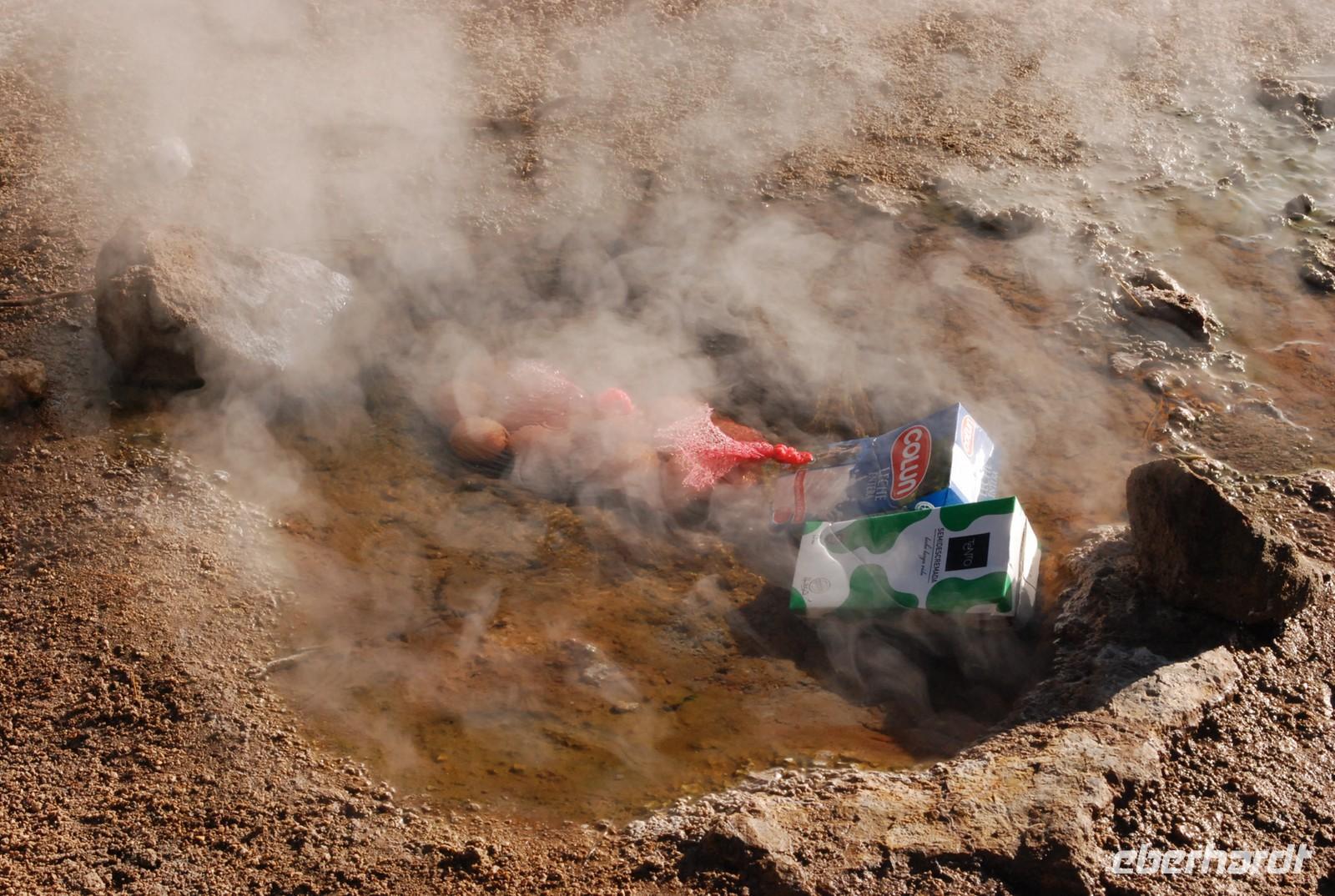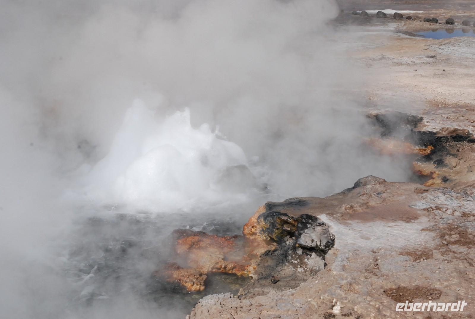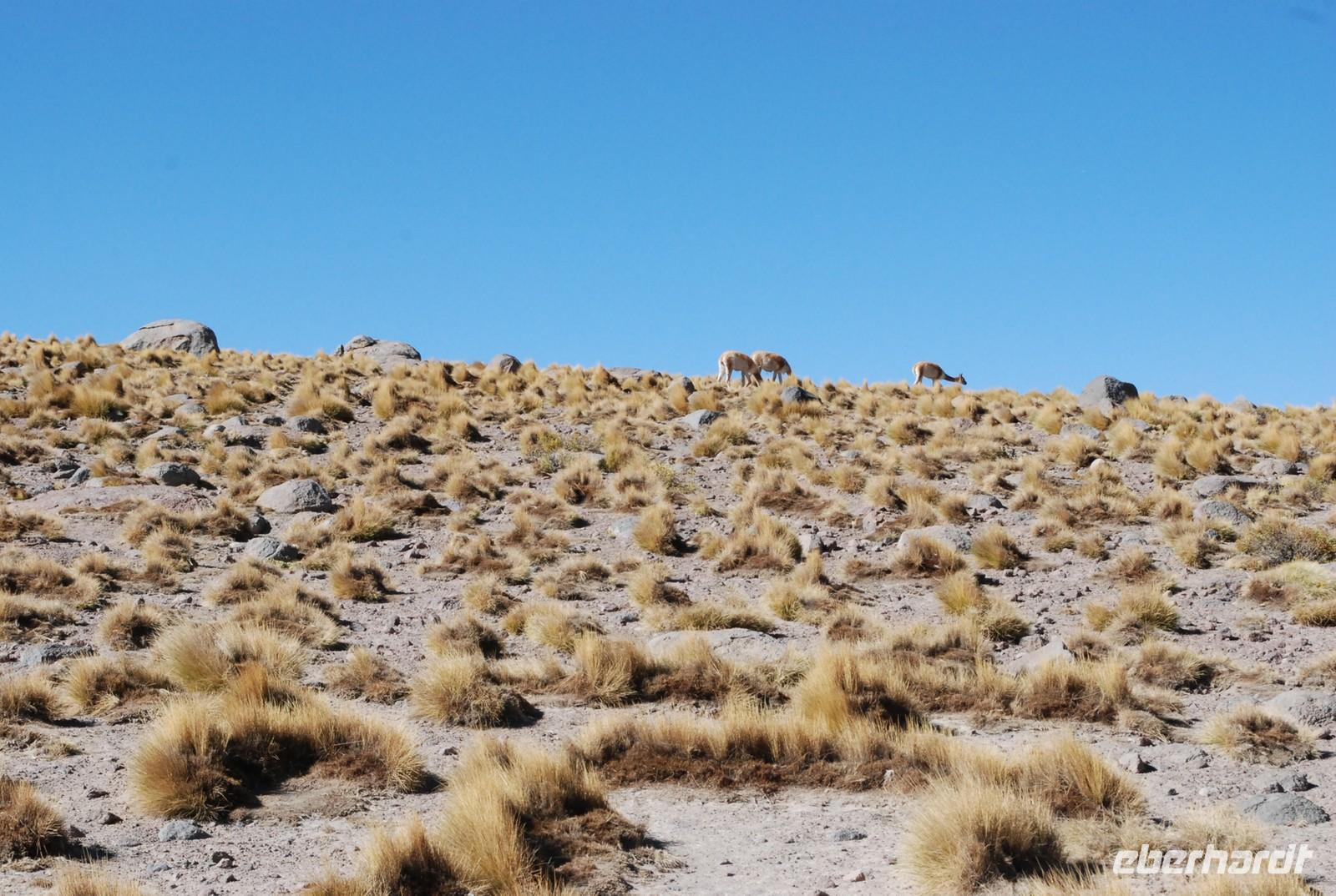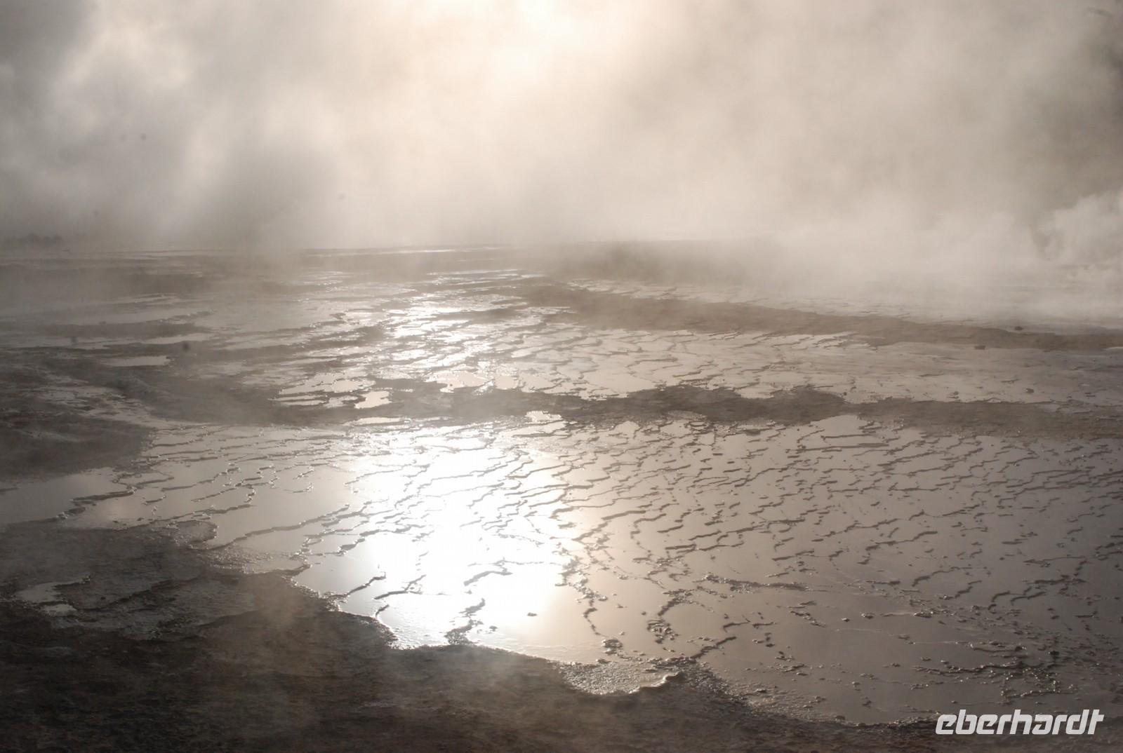 Ein langer, erlebnisreicher Tag erwartet uns, als um vier der Wecker klingelt. Nach einem warmen Tee starten wir die zweistündige Fahrt zu dem höchstgelegenen Geysirfeld der Welt - El Tatio. Schon im Bus müssen wir uns warm anziehen, denn auf 4300 Metern Höhe sind klirrend kalte 12 Grad Minus. Mit Handschuhen und Mütze bewaffnet wandern wir zwischen den Fumarolen während die Sonne über die Berge steigt. Wir beobachten das Naturschauspiel aus nächster Nähe! In der Zwischenzeit werden die Milch und die Eier gekocht und rasch haben Carolina und unser Fahrer Wilson den Frühstückstisch gedeckt. Hier am Geysirfeld können wir auch die scheuen Vicuñas und Vizcachas beobachten. Unsere Reise führt uns nun wieder auf niedrigere Höhen wo wir Guanakos und Lamas sehen. Wir unternehmen einen Spaziergang durch Caspana, welches in einem grünen Tal inmitten der Wüste liegt. In Lasana sind wir zum Essen in einem einheimischen Lokal eingeladen und lassen uns einen Maiseintopf schmecken. Anschließend besichtigen wir noch die Ruine der Atacamena-Siedlung und die älteste Kirche der Region in Chui Chui. Von Calama und der Atacama-Wüste heißt es nun Abschied nehmen, denn wir fliegen zurück nach Santiago de Chile.