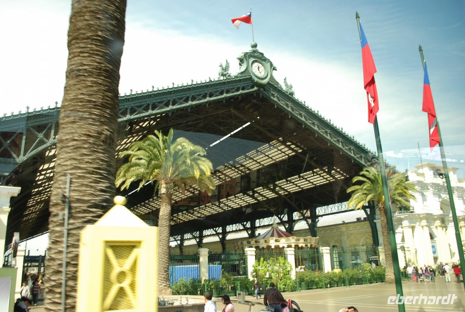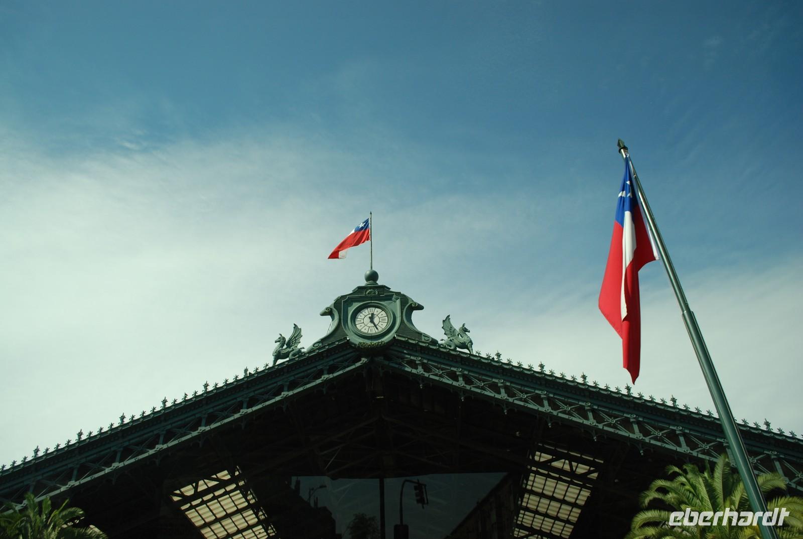 Nachdem wir unten sind, steuern wir wieder das Zentrum von Santiago an und kehren im Restaurant El Galepon im Mercado Central ein. Hier werden wir gut bewirtet und können uns am fliegenden Buffet auf unserem Tisch mehr als satt essen. Nachdem wir unsere Zimmer bezogen haben, erhalten wir bei einem gemeinsamen, kleinen Spaziergang einen Eindruck vom grünen Stadtteil Providencia und verkosten das chilenische Bier und den Wein. |