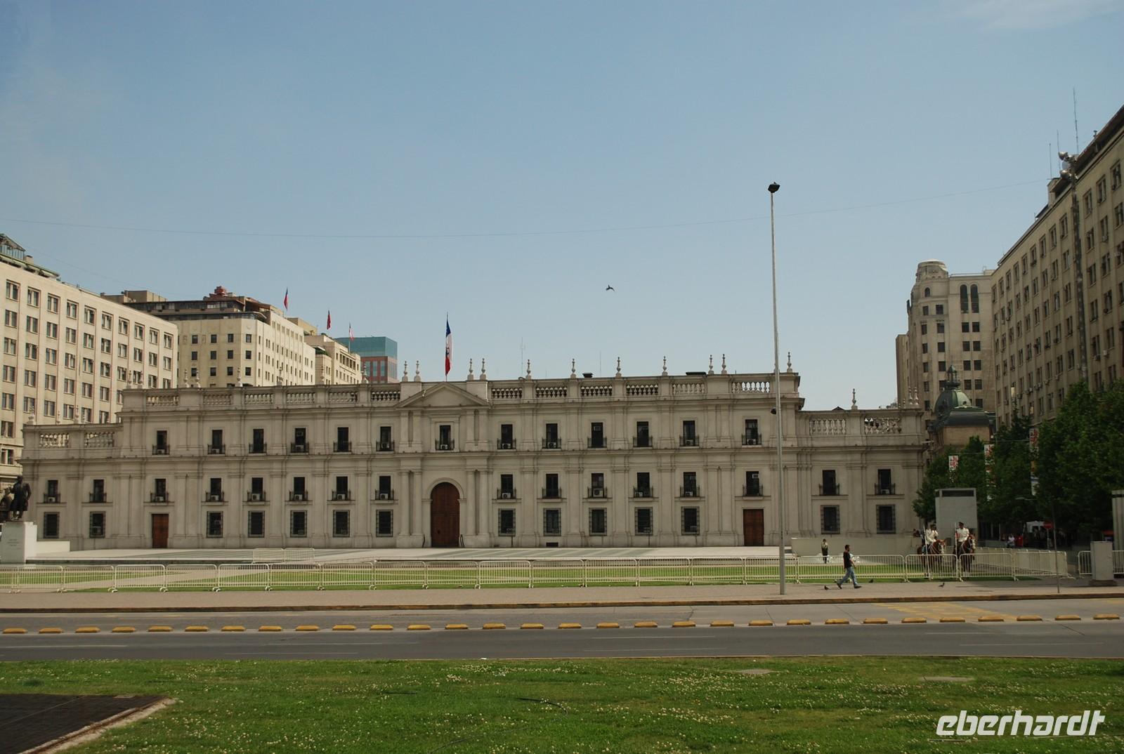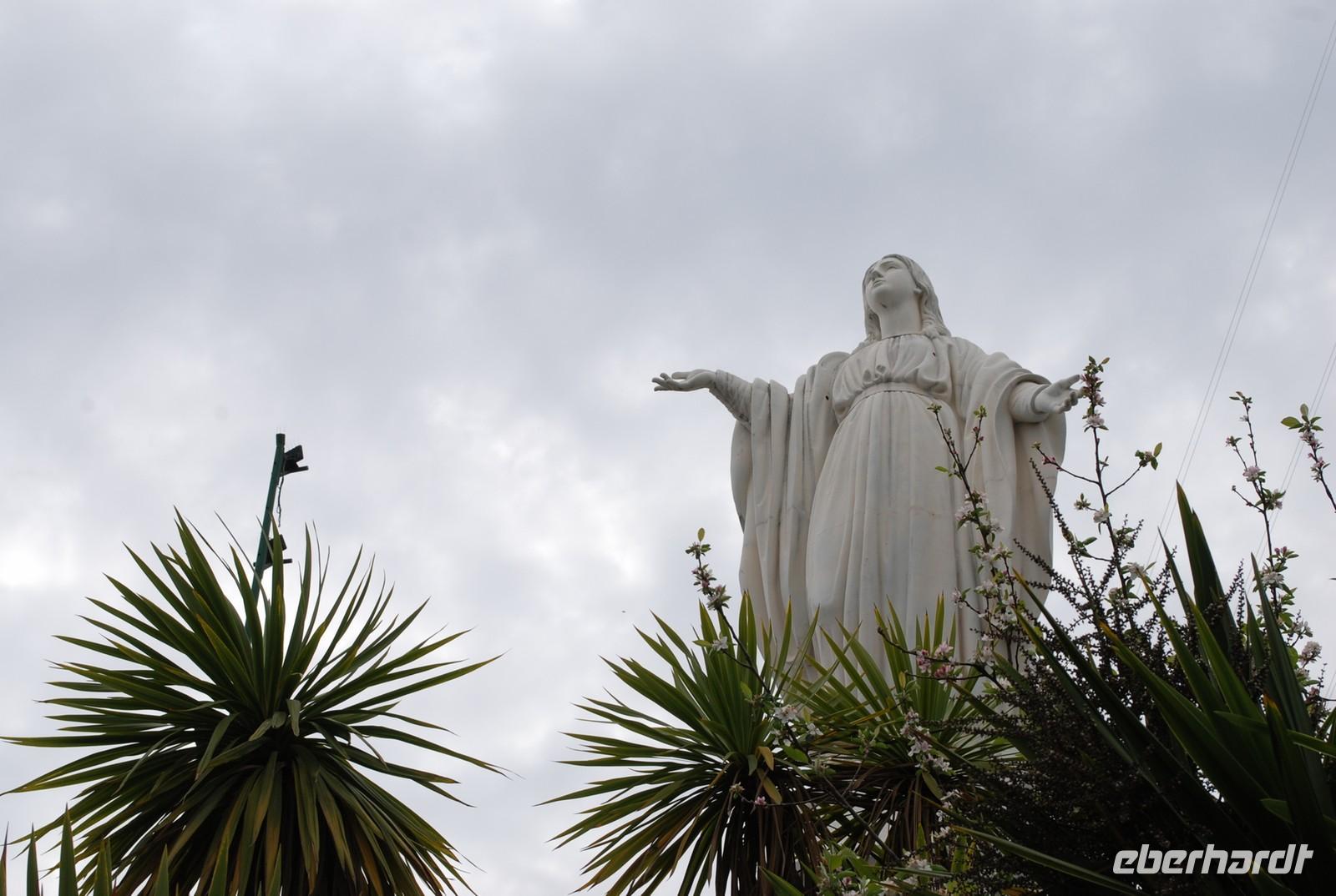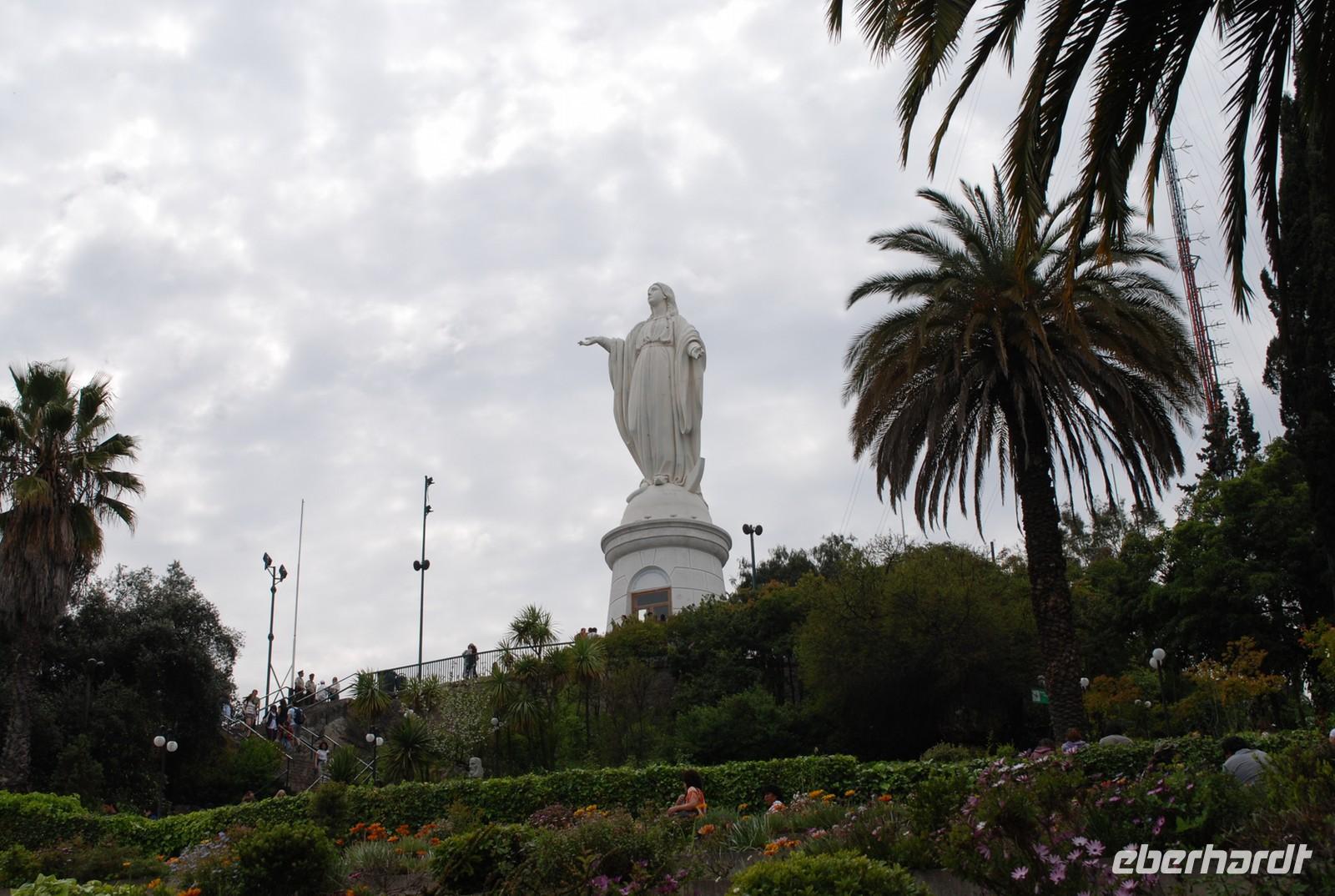 An einem sonnigen Nachmittag begeben wir uns auf die Reise ans andere Ende der Welt und erreichen nach insgesamt 26 Stunden inklusive 16 Flugstunden das schmalste und zugleich längste Land Südamerikas, Chile. Unser Reiseleiter Javier begrüßt uns und wir fahren vor der schneebedeckten Anden-Kulisse ins Zentrum von Santiago de Chile. Wir passieren die Pferderennbahn, die Alameda mit der Estacion Central (dem Bahnhof) und schauen uns aus nächster Nähe den Regierungspalast - La Moneda - an. Von dort schlendern wir durch die Fußgängerzone zum Plaza de Armas. Später fahren wir mit der Standseilbahn auf den Cerro San Cristobal und genießen aus der Höhe bei der Madonna ("der unbefleckten Empfängnis") die Aussicht auf Santiago.