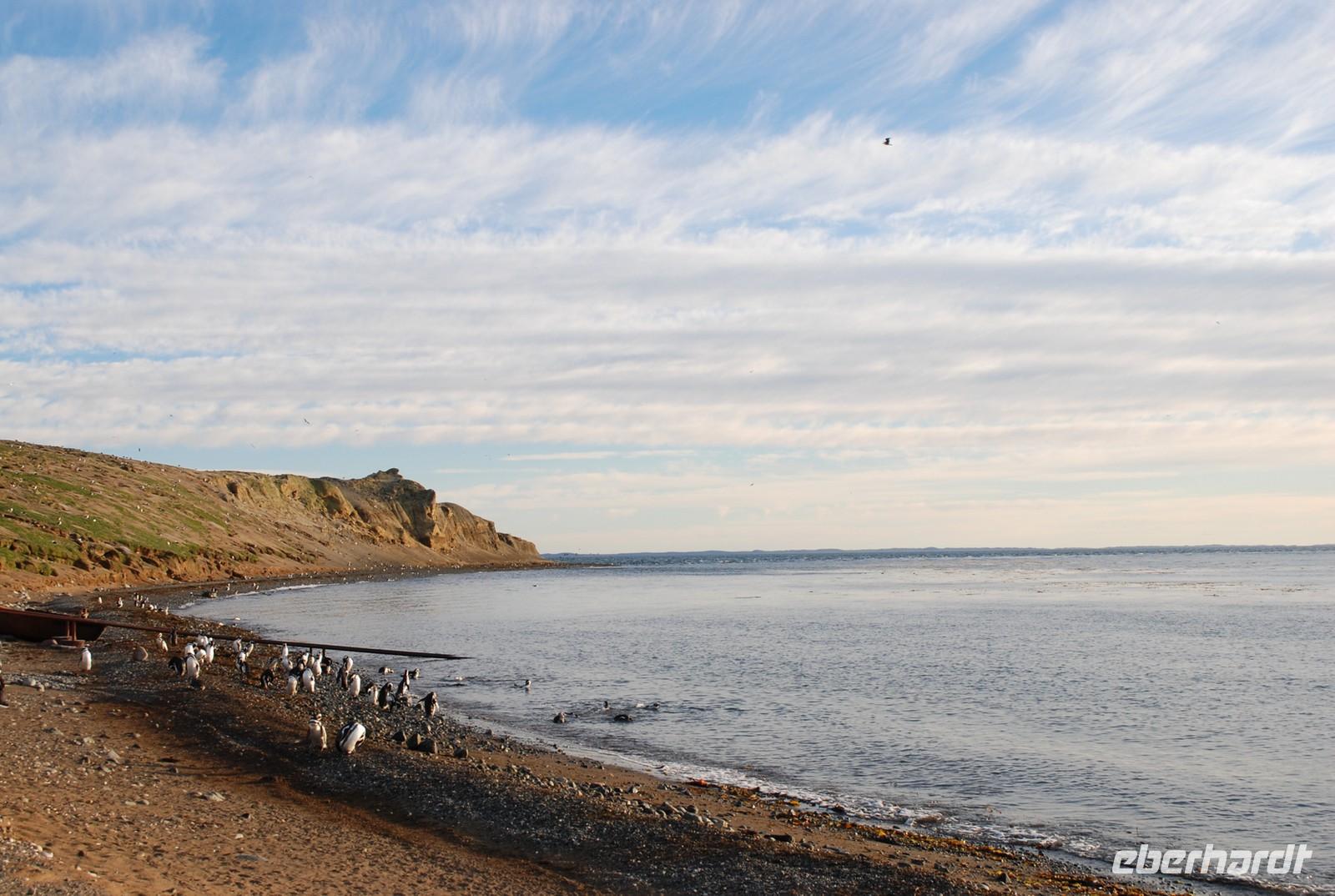 Wir verabschieden uns heute vom südamerikanischen Festland und setzen mit der Fähre von Punta Delgada über die Magellan-Straße über. Die See ist ruhig und so haben wir bereits nach 20 Minuten das Land der Feuer erreicht. Nach ein paar Kilometern geteerter Straße geht die Reise bis zur chilenisch-argentinischen Grenze nun auf Schotterpiste weiter. Die endlos erscheinende Steppe wird durch kleine Seen, Guanako-Herden, Schafe, Nandus und grasende Kühe unterbrochen. Am frühen Abend erreichen wir den Fagnano-See, wo wir auf unsere Reise anstoßen. Wir sind nun 13 Tage unterwegs und freuen uns auf den zweiten Teil des Chile-Erlebnisses!