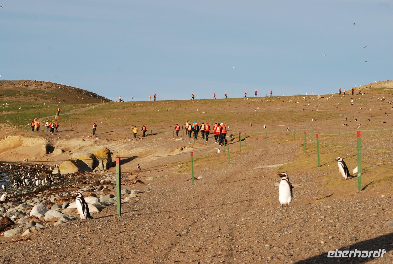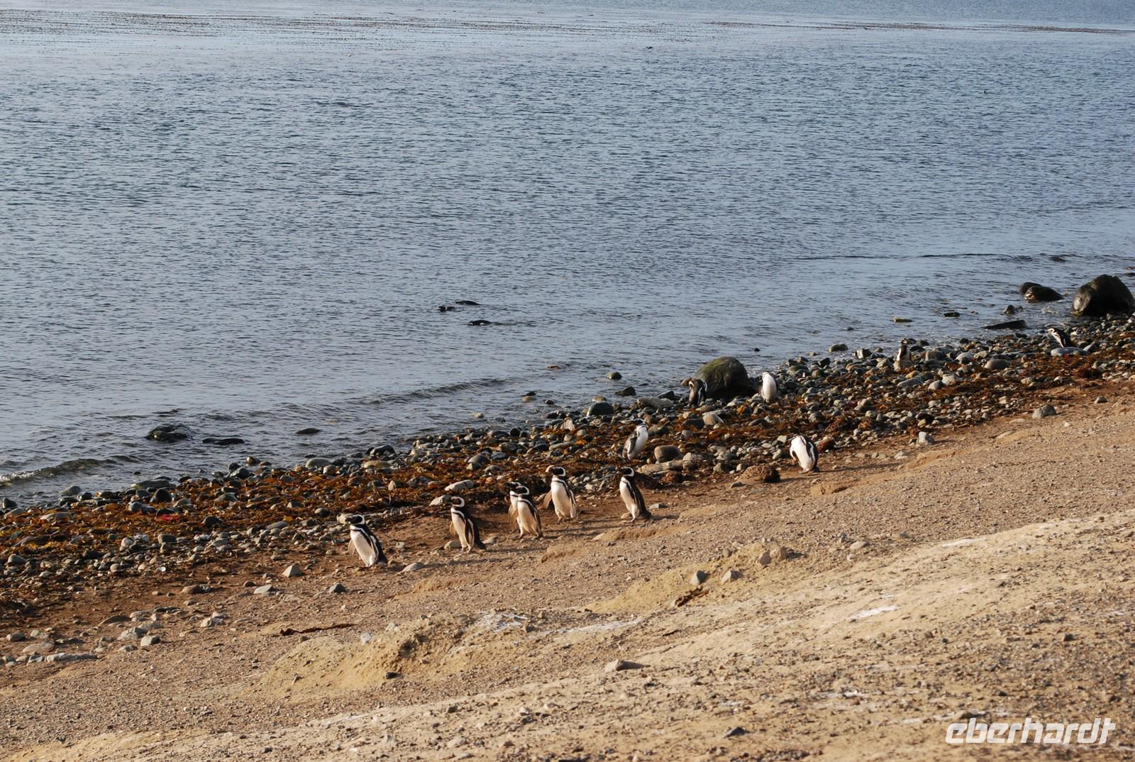 Wieder einmal klingelt der Wecker kurz nach sechs Uhr damit wir in einer herrlichen Morgenstimmung auf der Isla Magdalena anlanden können. Hier tummeln sich tausende von Magellan-Pinguinen. Die putzigen Tiere können wir direkt nach unserer Landung beim Schwimmen und Putzen am Strand herrlich beobachten. Wir folgen einem markierten Weg, der uns durch die riesige Pinguin-Kolonie führt. Wir sehen die Tiere in ihren Nestern, die sie überall auf der Insel verteilt gebaut haben. Nach einer guten Stunde geht es zurück aufs Schiff. Wir frühstücken, packen unsere Koffer und schon nähern wir uns dem Hafen von Punta Arenas. Es empfängt uns unsere Reiseleiterin Susanna und wir erkunden den Hauptplatz der Stadt, die heute zum Allerheiligen-Feiertag völlig ausgestorben wirkt. Der Friedhof mit seinen Mausoleen und Akazien-Alleen gilt als schönster Chiles weswegen wir diesem einen Besuch abstatten. Nach dem üppigen Mittagessen heißt es nun Abschied nehmen vom großen Süden Chiles und wir fliegen über Puerto Montt nach Santiago de Chile. Bei der Zwischenlandung in Puerto Montt verlässt uns Eric, der uns fast zwei Wochen als Reiseleiter durch die Seen- und Vulkanregion und durch Patagonien und Feuerland begleitet hat. Vielen Dank für die schöne Zeit! Wir erreichen am späten Abend wieder Santiago.