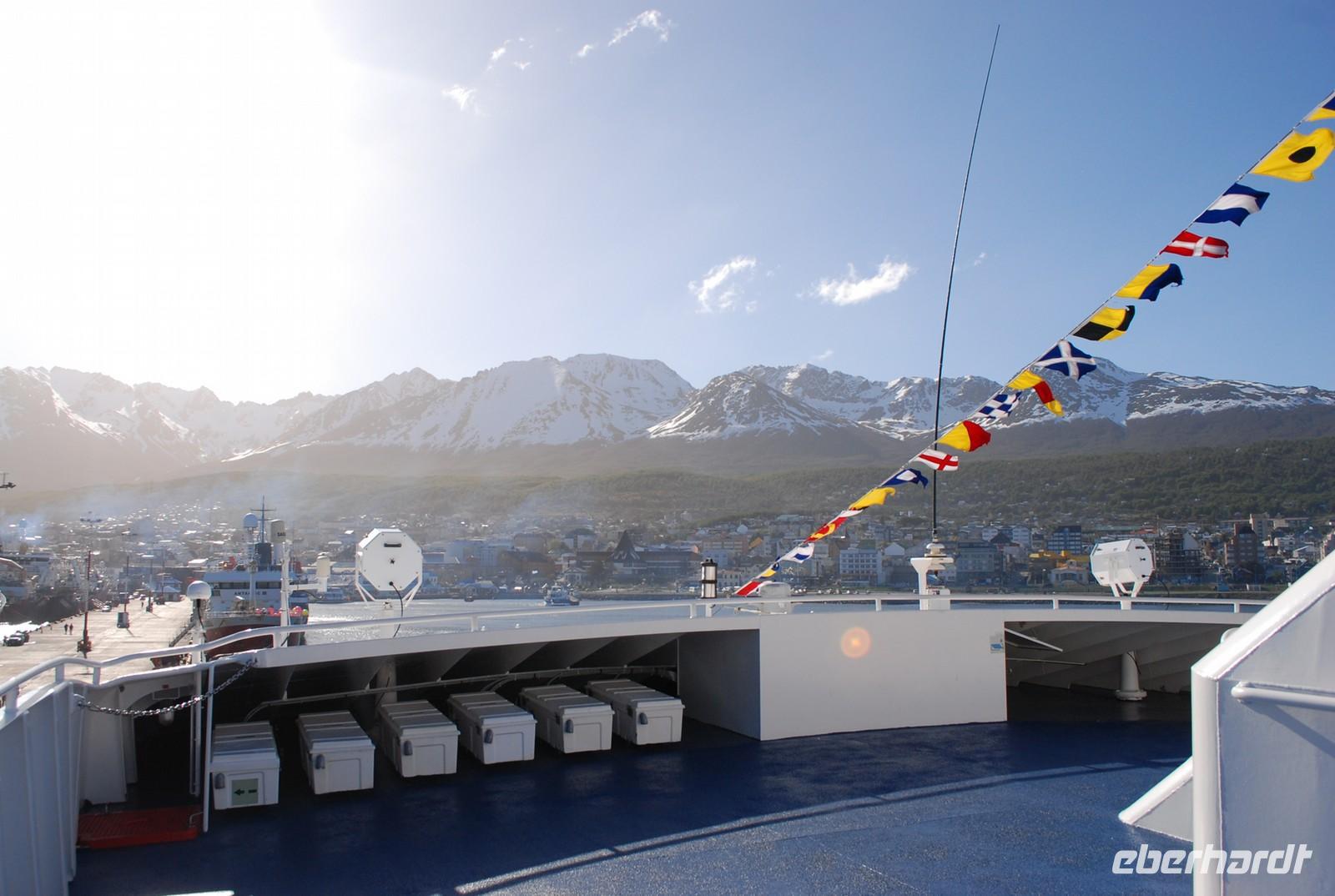Das Wetter zeigt sich heute ganz so, wie man es am Ende der Welt vermutet - abwechslungsreich und unbeständig. Bei einer Rundfahrt haben wir einen verregneten Ausblick auf die Stadt und den Beagle-Kanal. Anschließend besuchen wir das Museo del Fin de Mundo, wo über die Einheimischen Feuerlands und die Geschichte Ushuaias ausgestellt wird. Unser Mittagessen nehmen wir im Lokal "almacen" ein, welches ein Sammelsurium voller Kuriositäten ist.