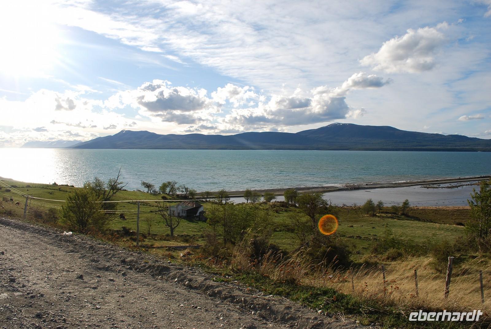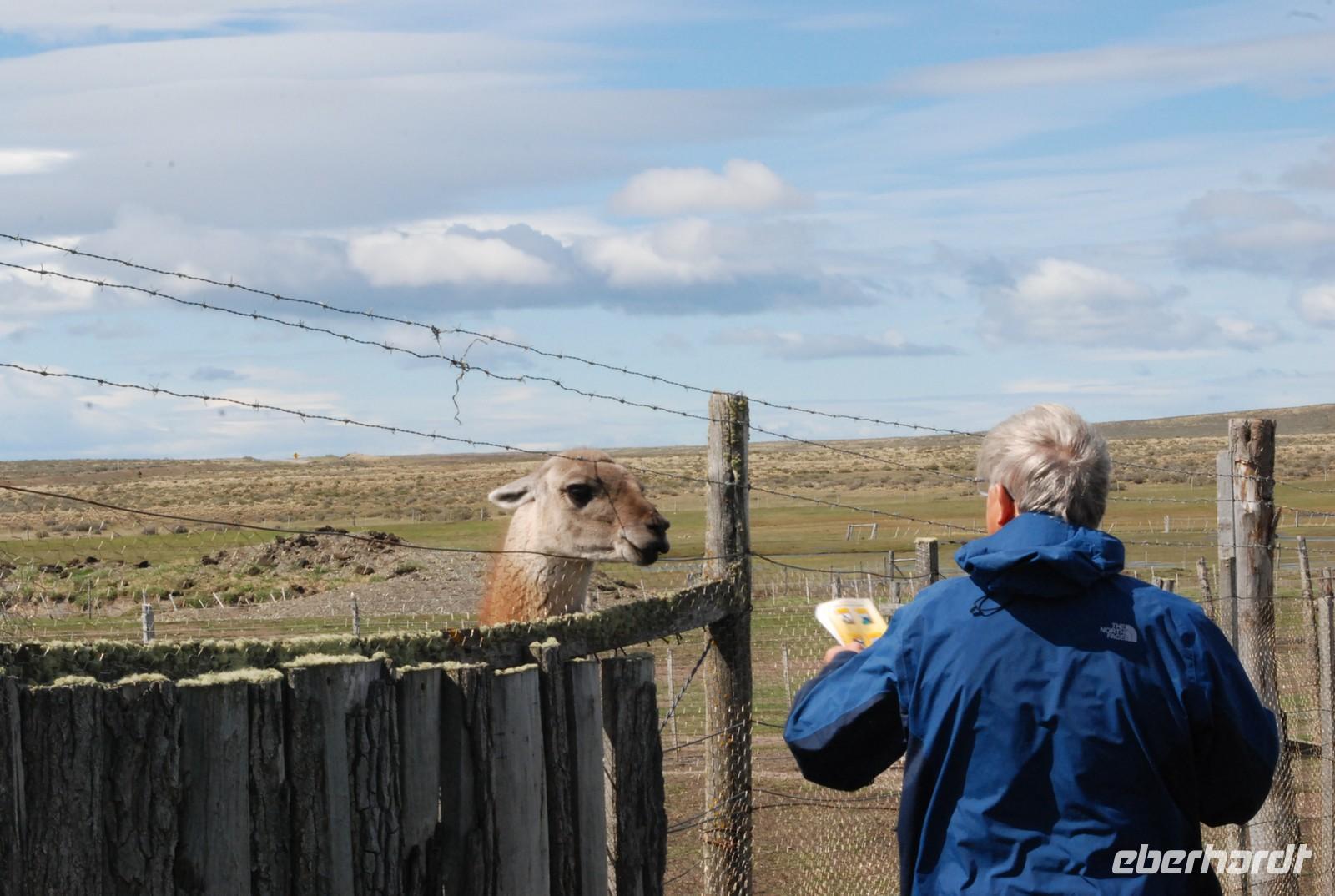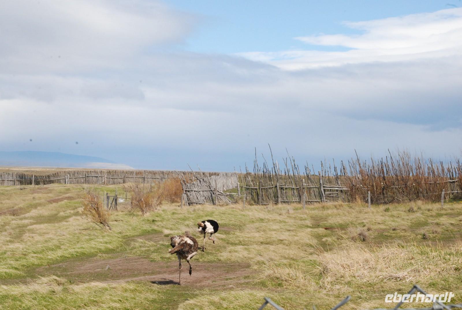Nach einem guten Frühstück mit Blick auf den Llanquihue-See - leider ohne Vulkan - begeben wir uns auf den Weg zum Flughafen Puerto Montt. Hier startet unser Flug nach Punta Arenas, wo wir kurz nach Mittag landen. Wir werden von Susanna und Eric begrüßt und reisen in Richtung Puerto Natales. Dabei passieren wir die Magellan-Straße und besichtigen eine Farm, wo Nandus, Sträuße und Guanakos wohnen. Gestärkt durch eine ofenwarme Empanada treten wir unsere Weiterreise an. Nach einigen Fotostopps erreichen wir das Hotel am Seno Última Esperanza. Die Lage des Ortes vermittelt schon jetzt das Gefühl am Ende der Welt angekommen zu sein!